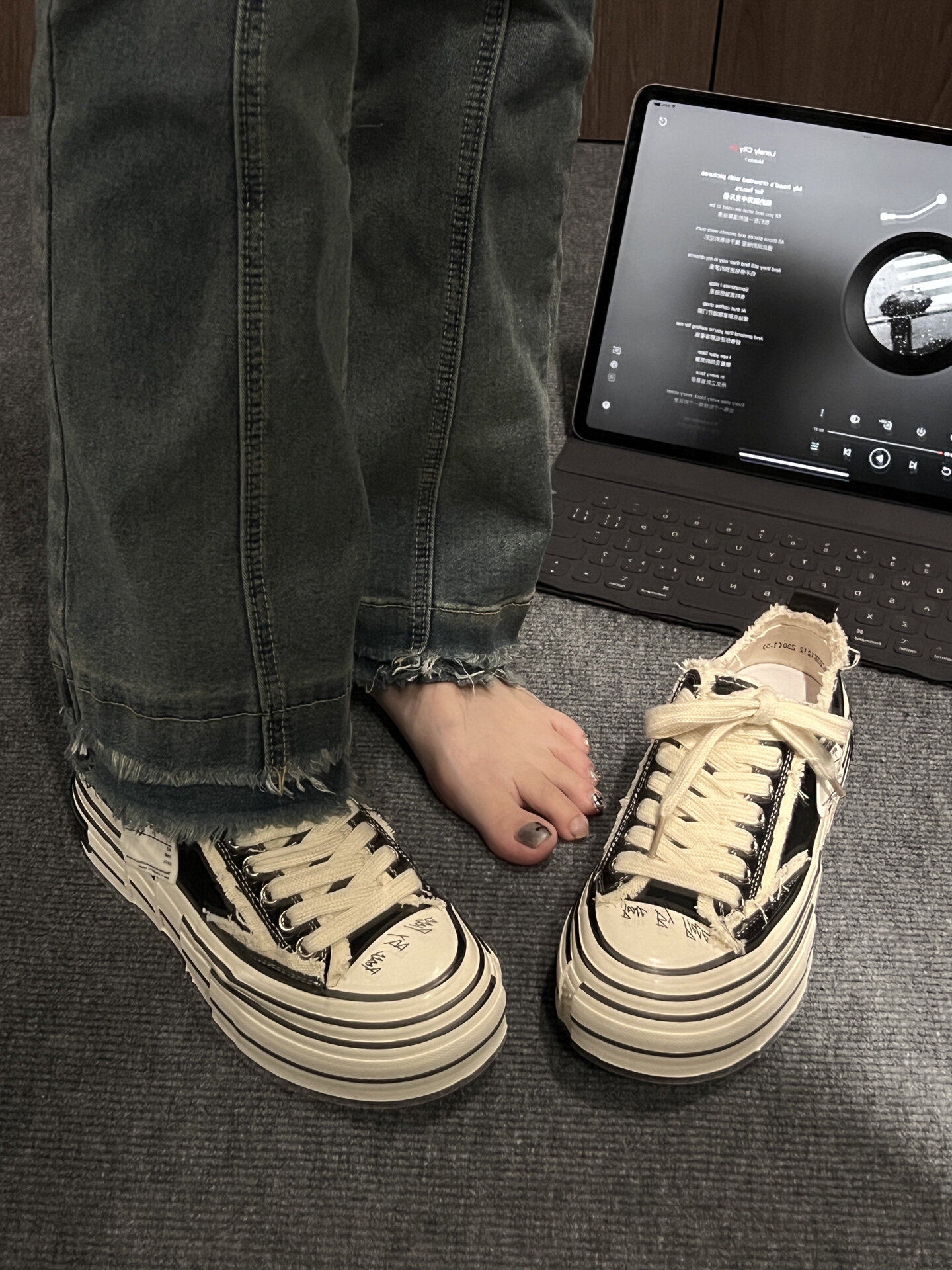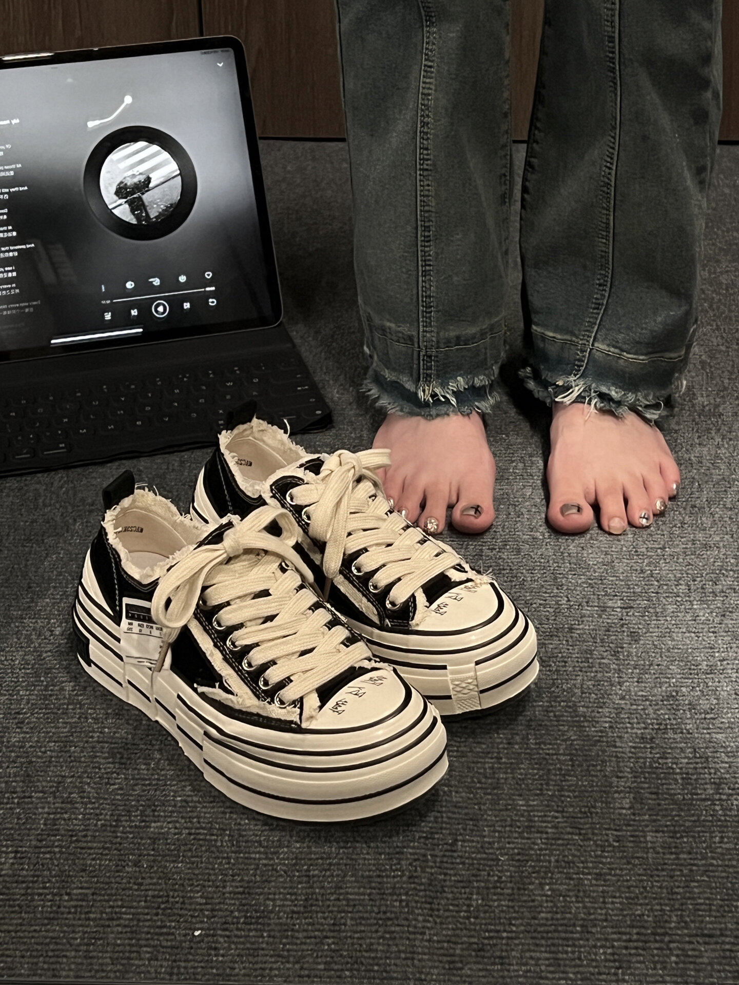 High-End Version! Celebrity-Style Canvas Shoes for Women, Versatile Thick-Soled Beggar Shoes, Height-Increasing, Breathable, Student Sports and Casual Shoes