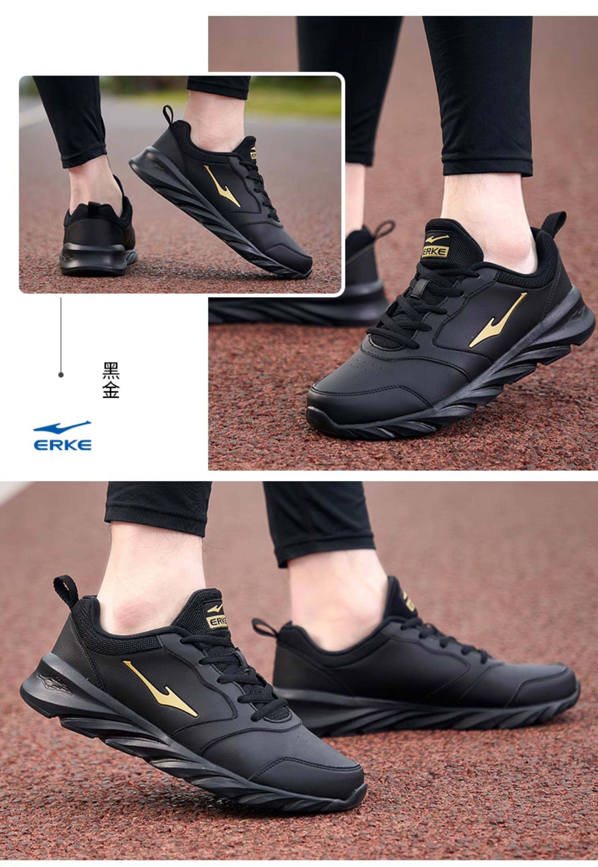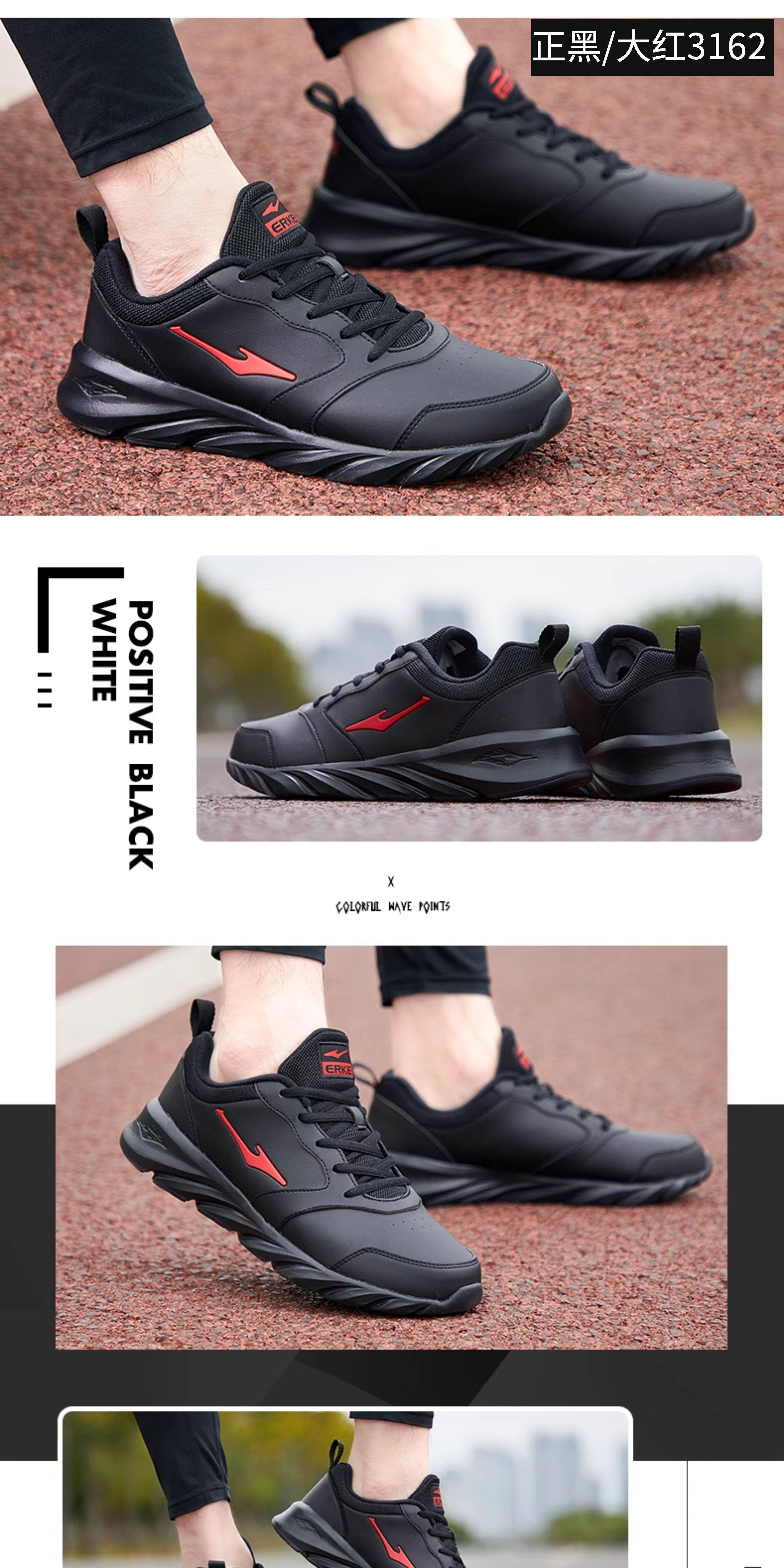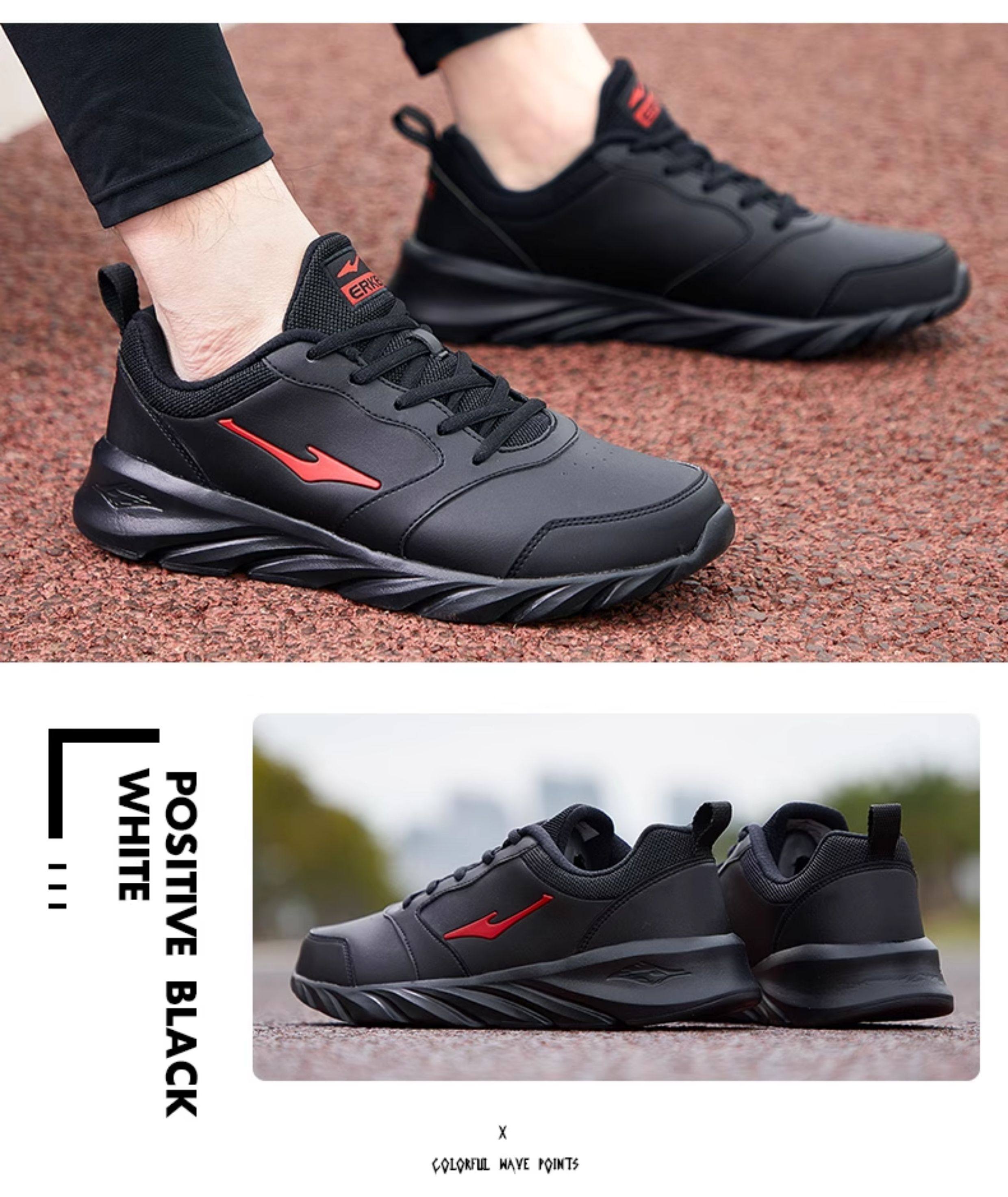 Hongxing Erke Men's Sports Shoes, Winter Waterproof Leather Upper, Middle-Aged Dad Style, Mesh Breathable Black Running Shoes