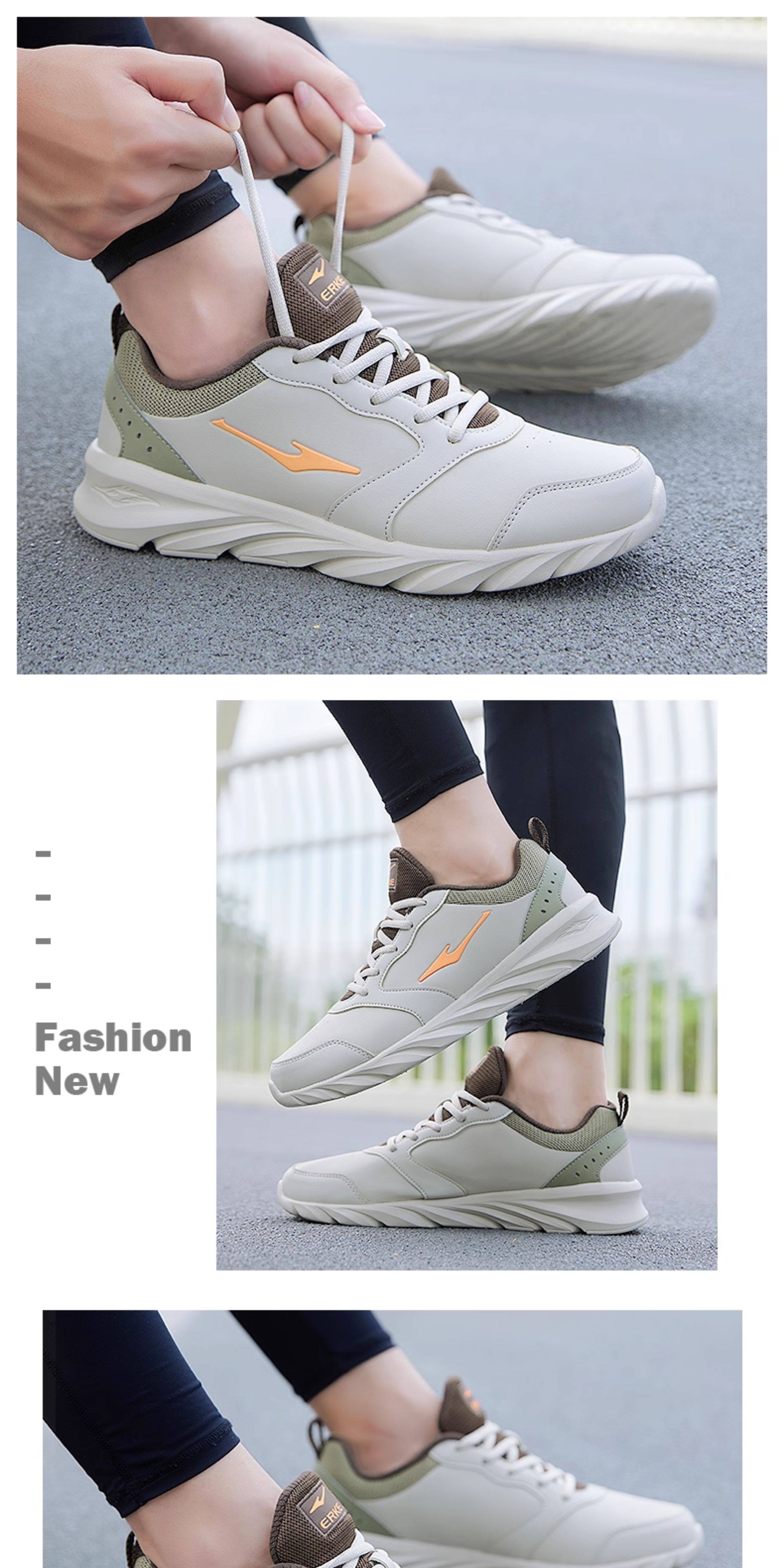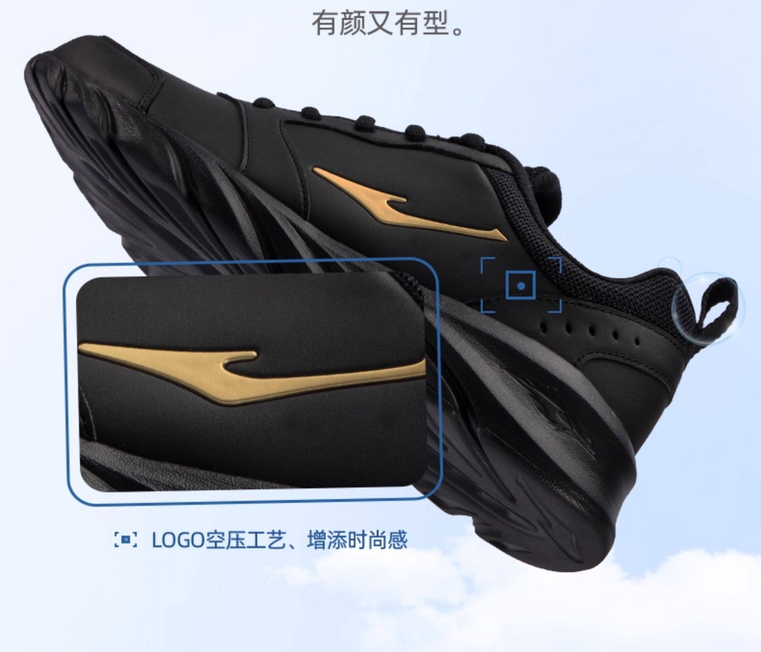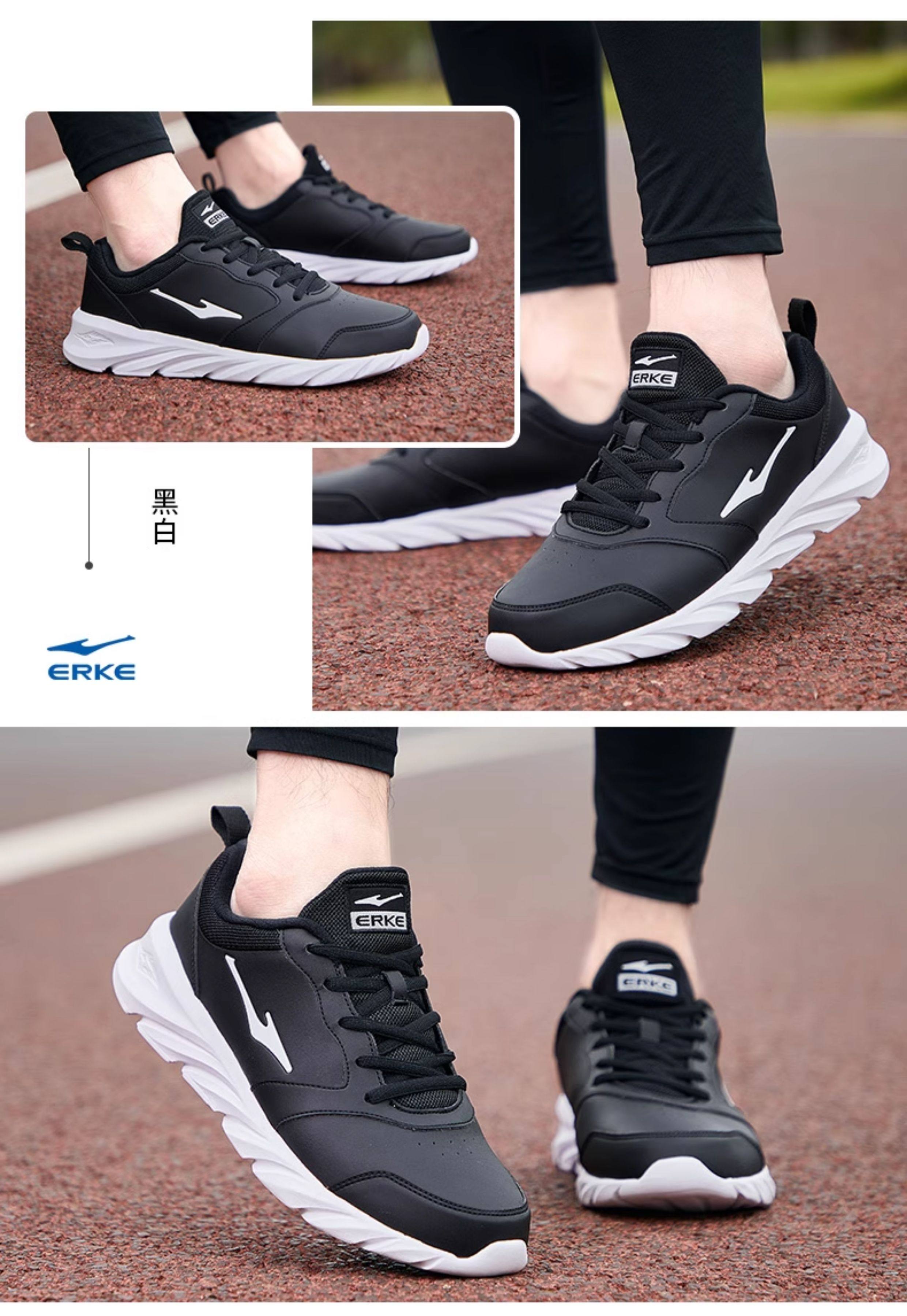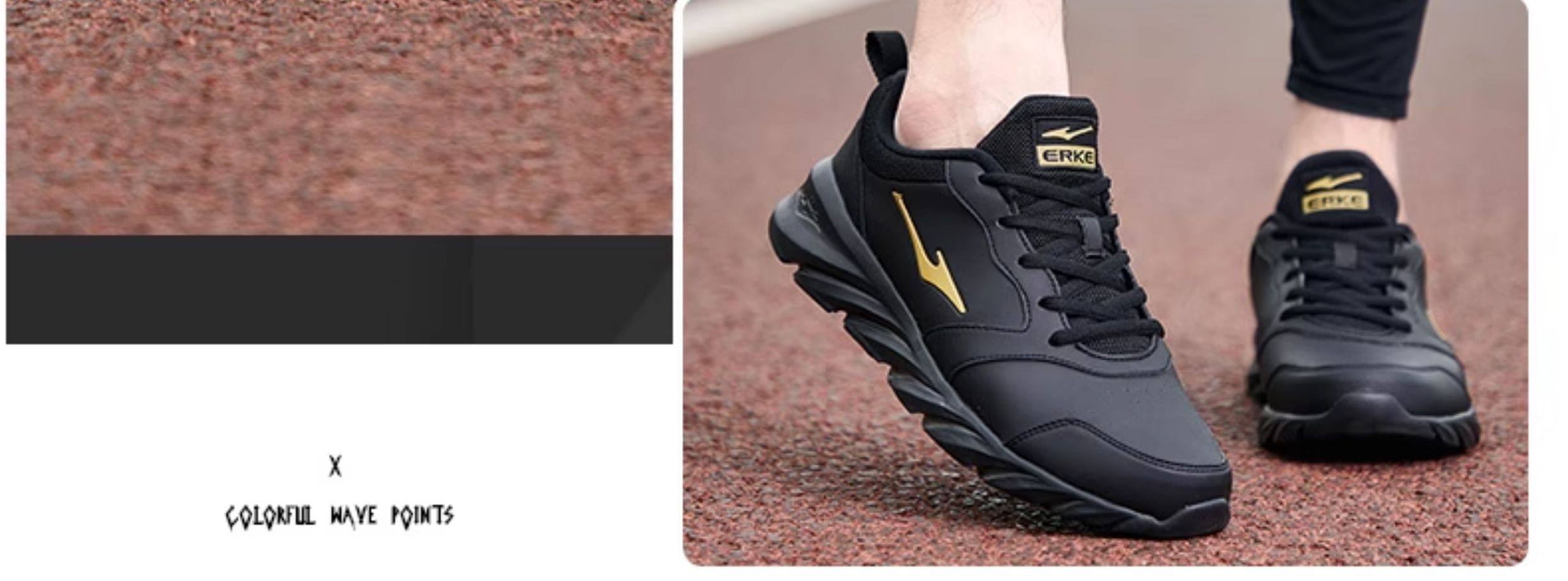 Hongxing Erke Men's Sports Shoes, Winter Waterproof Leather Upper, Middle-Aged Dad Style, Mesh Breathable Black Running Shoes