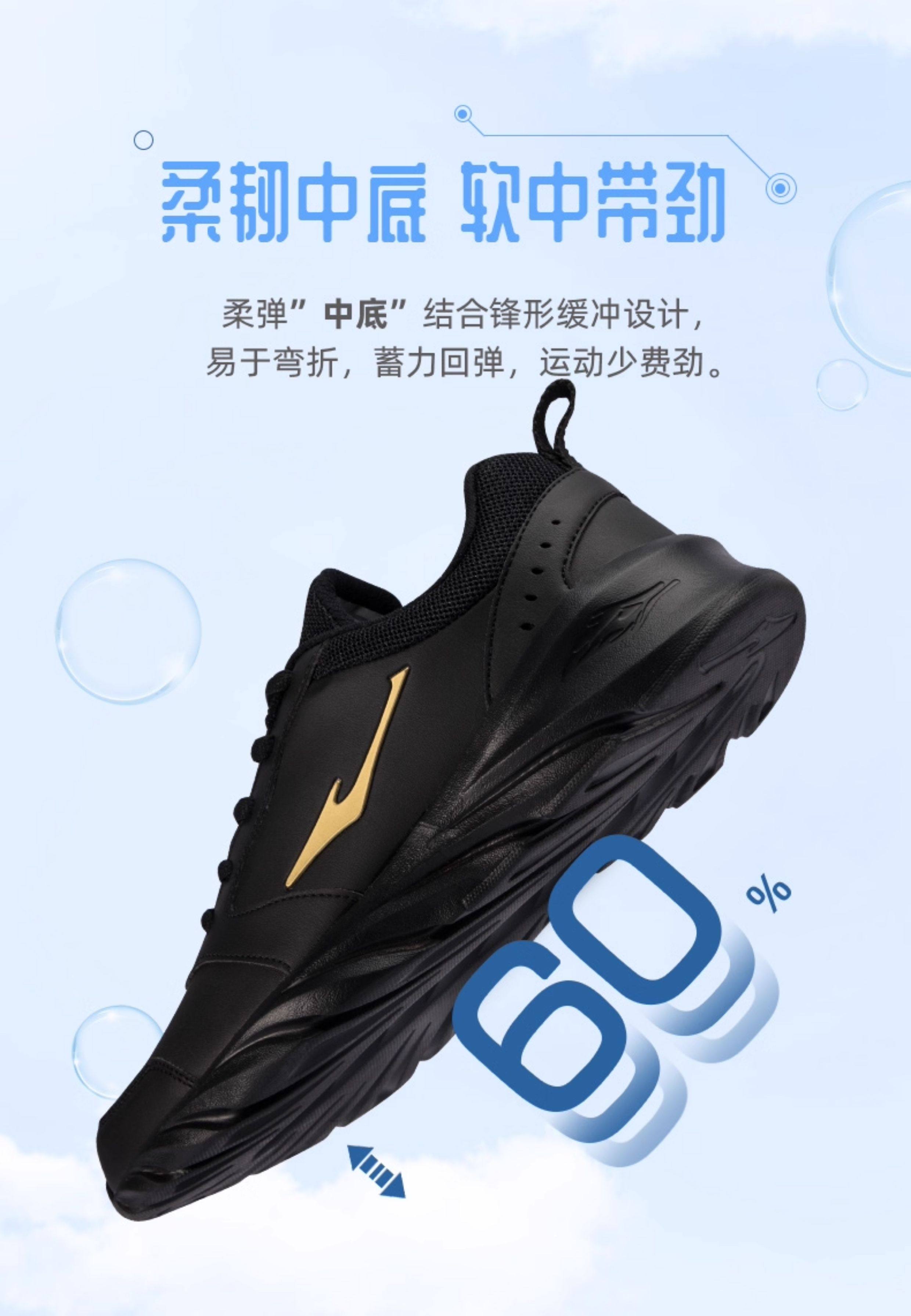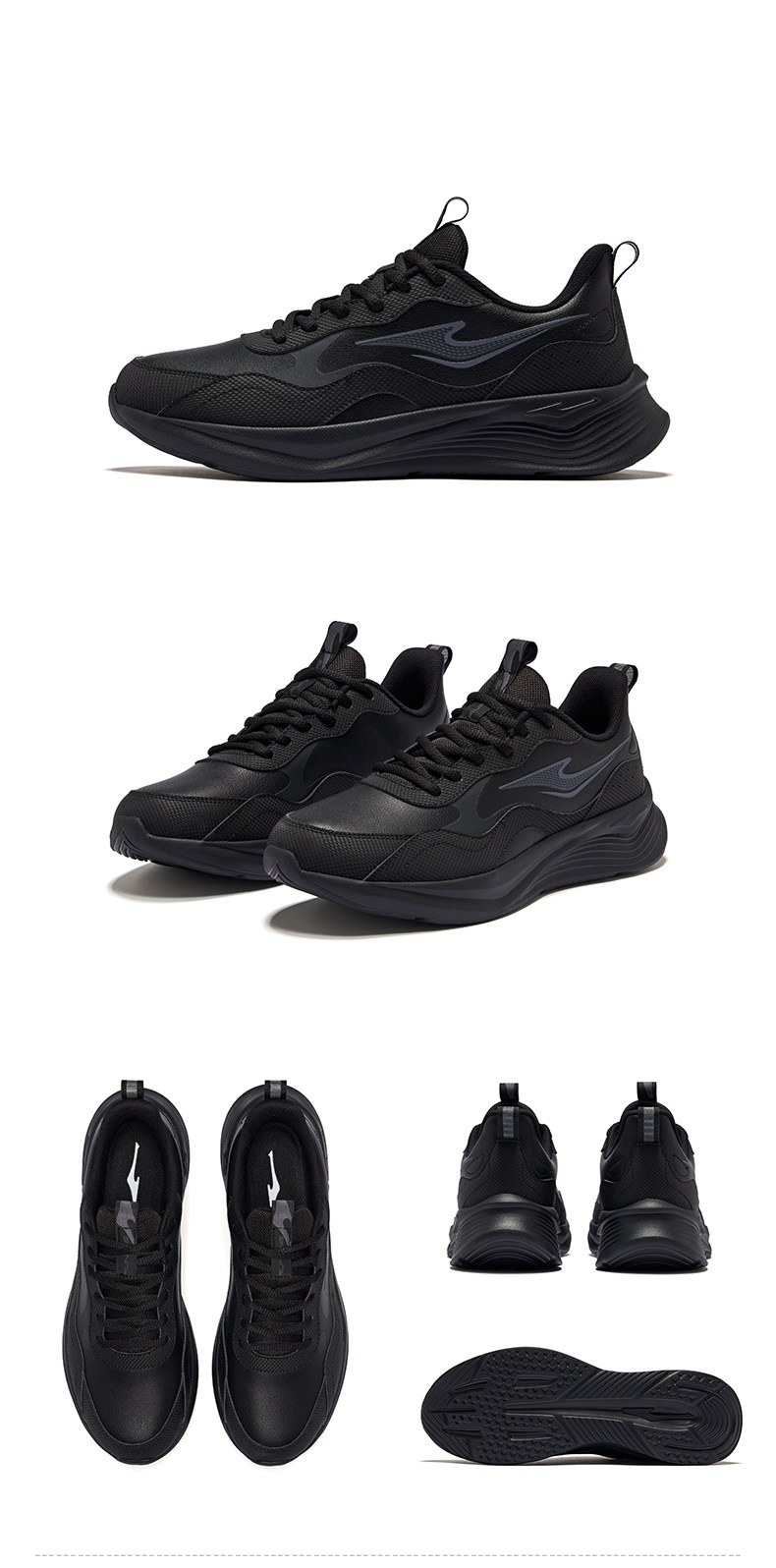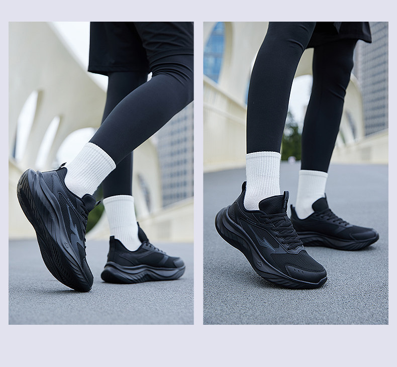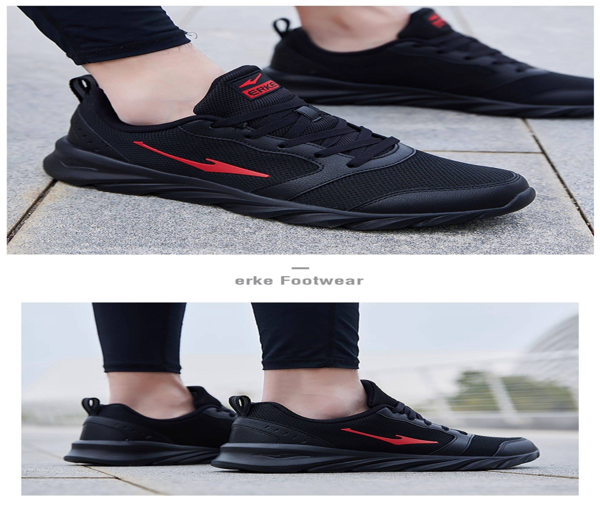 Hongxing Erke Men's Sports Shoes, Winter Waterproof Leather Upper, Middle-Aged Dad Style, Mesh Breathable Black Running Shoes