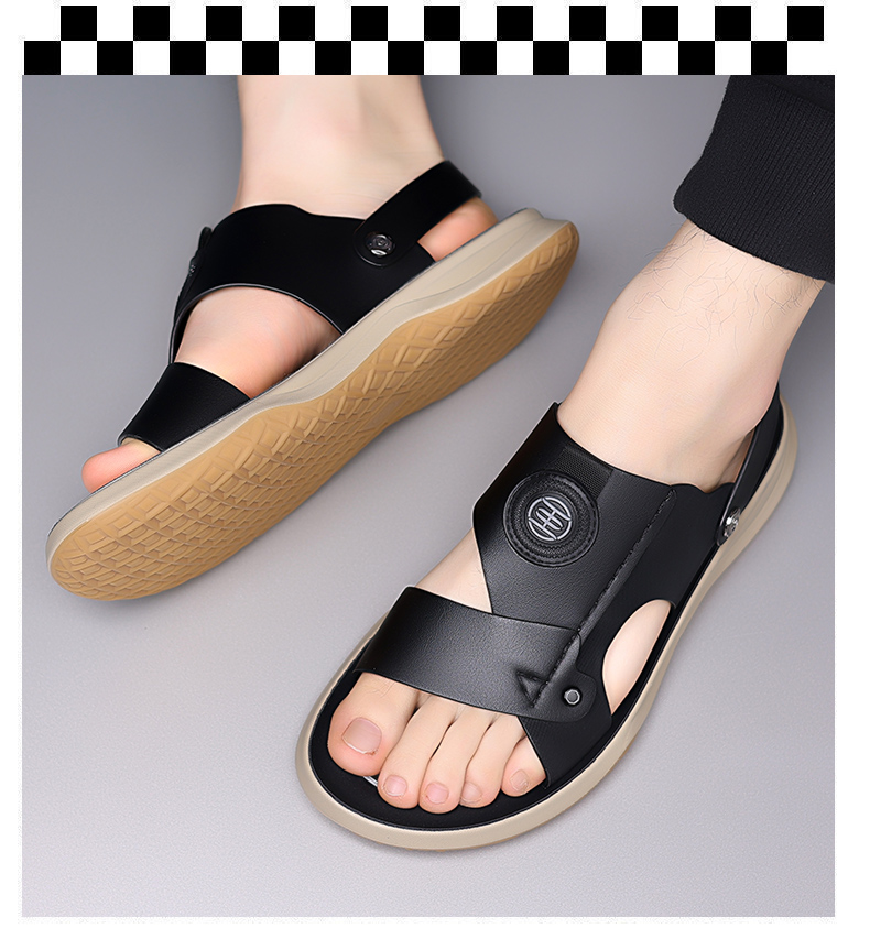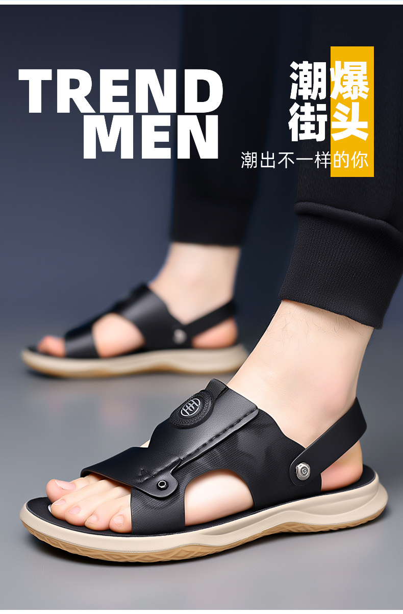 Men's Sandals 2025 Summer New Style Rubber Sole Trendy Casual Beach Shoes Men's Soft Sole Outdoor Driving Dual-Use Slippers
