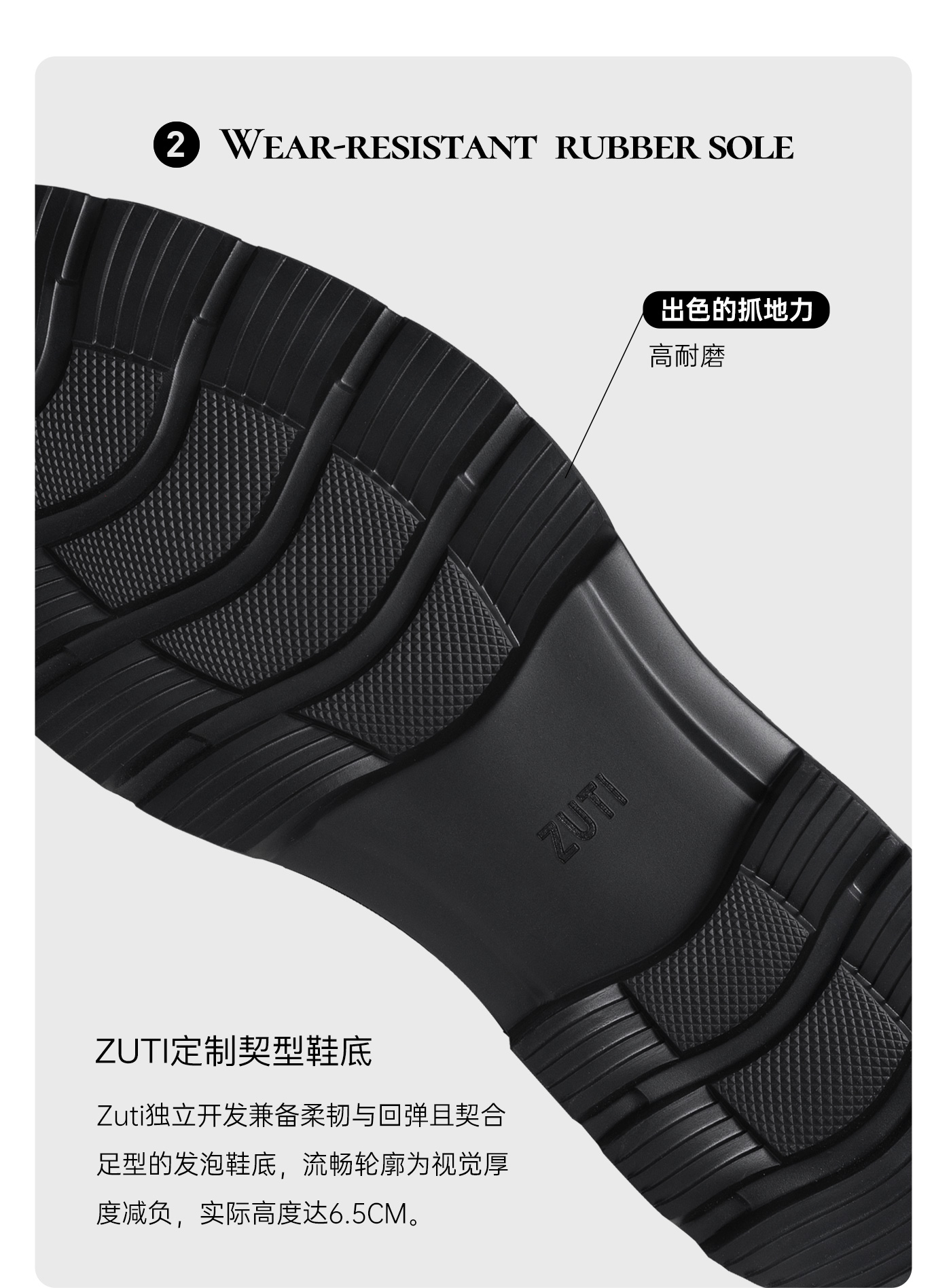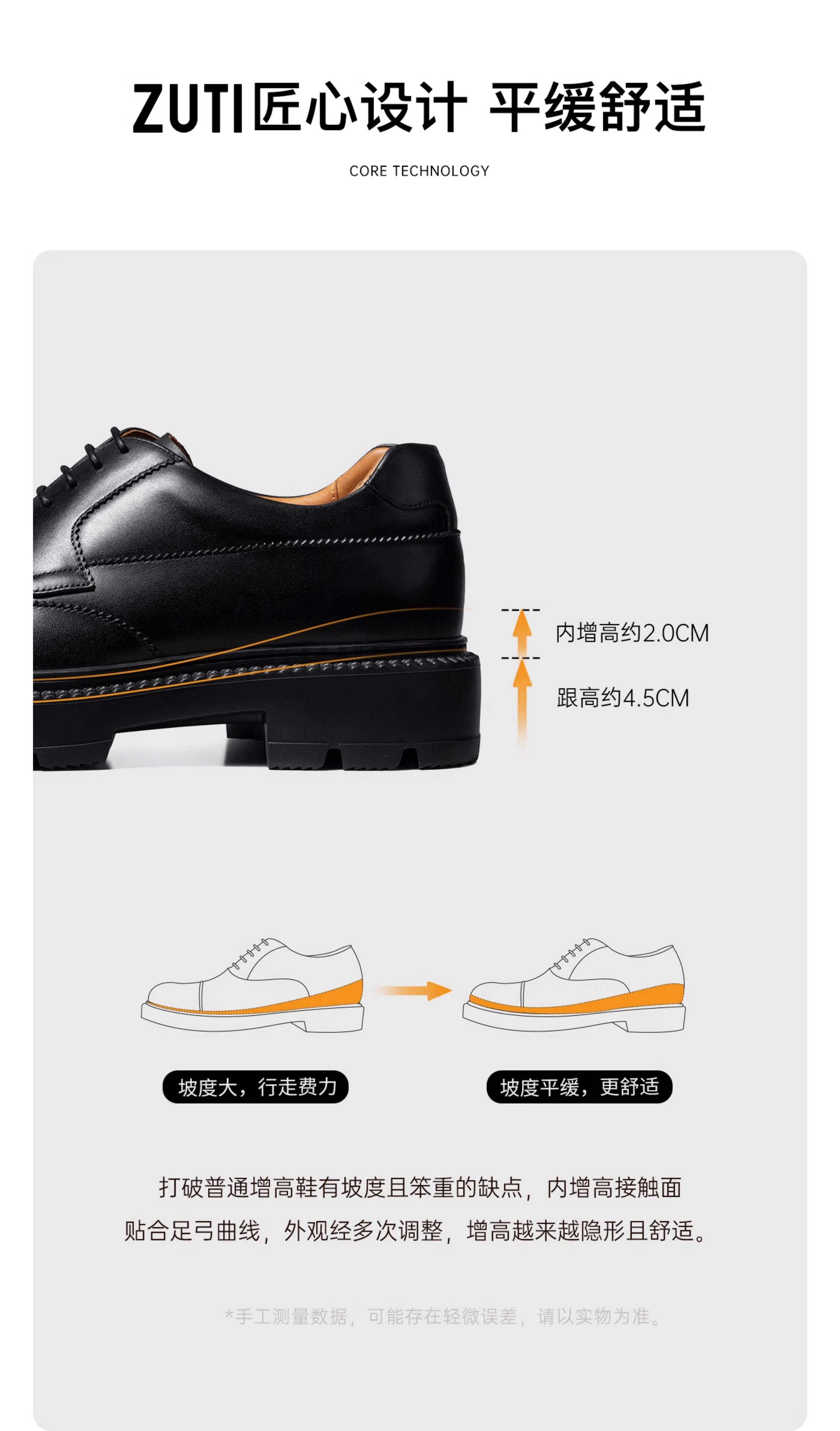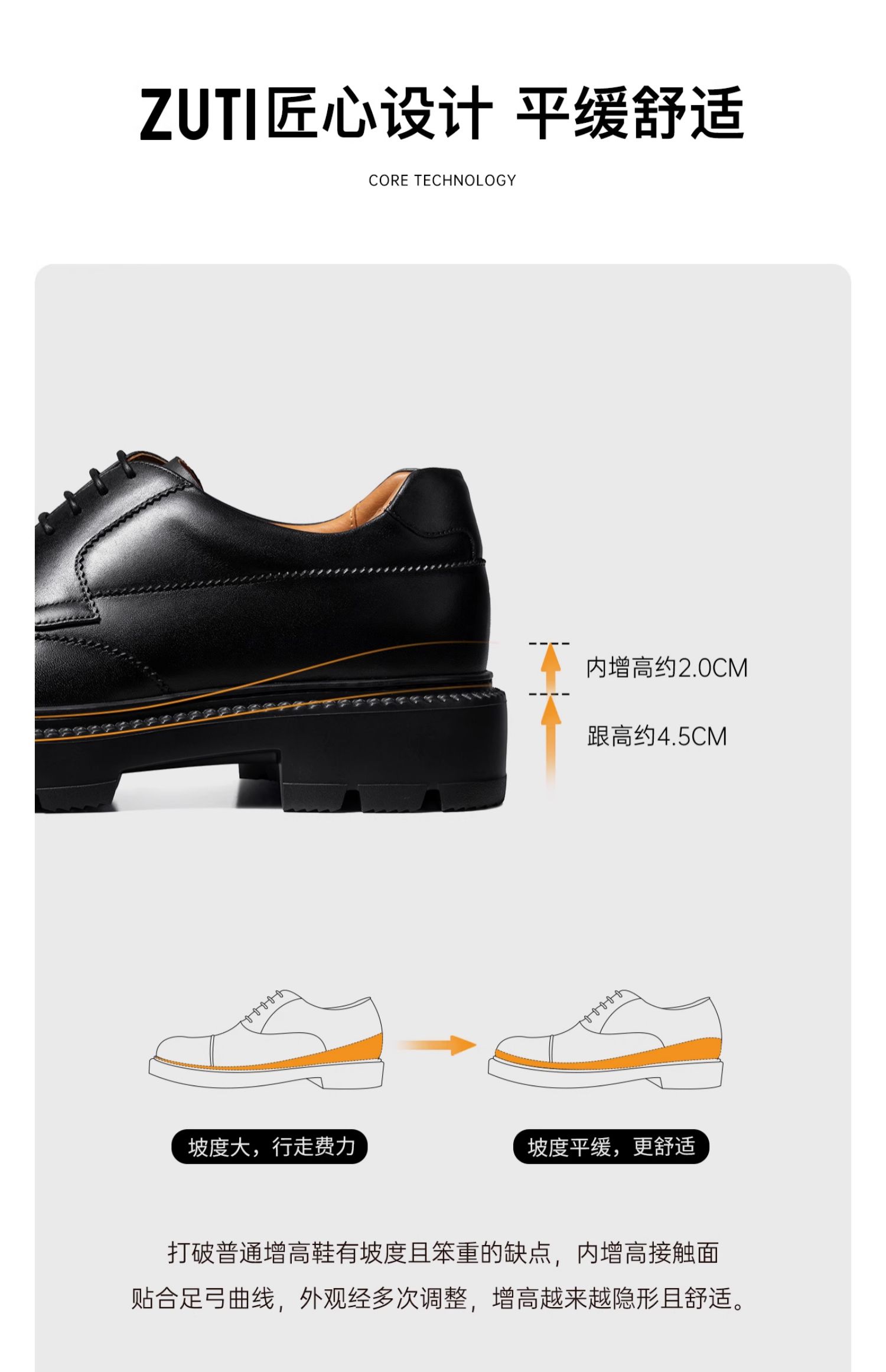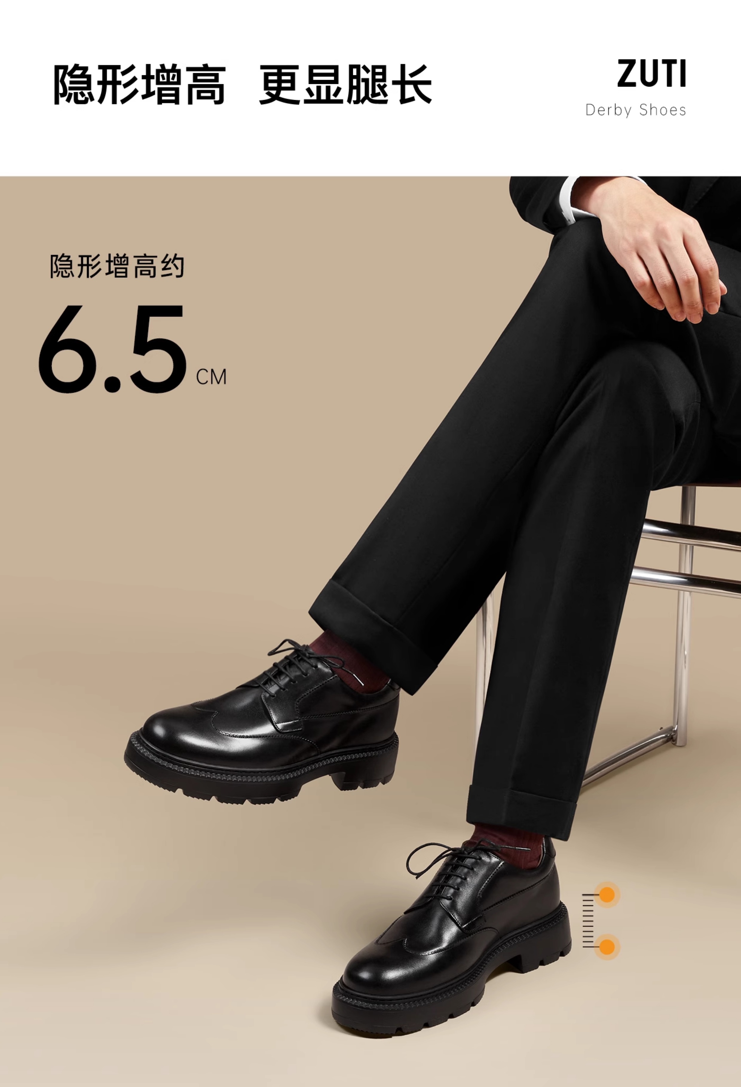 [Same Style as Wu Lei, Increases Height by about 6.5cm] Zuti Formal Leather Shoes for Men, Round Toe, Thick-Soled Derby Shoes, Casual Autumn and Winter