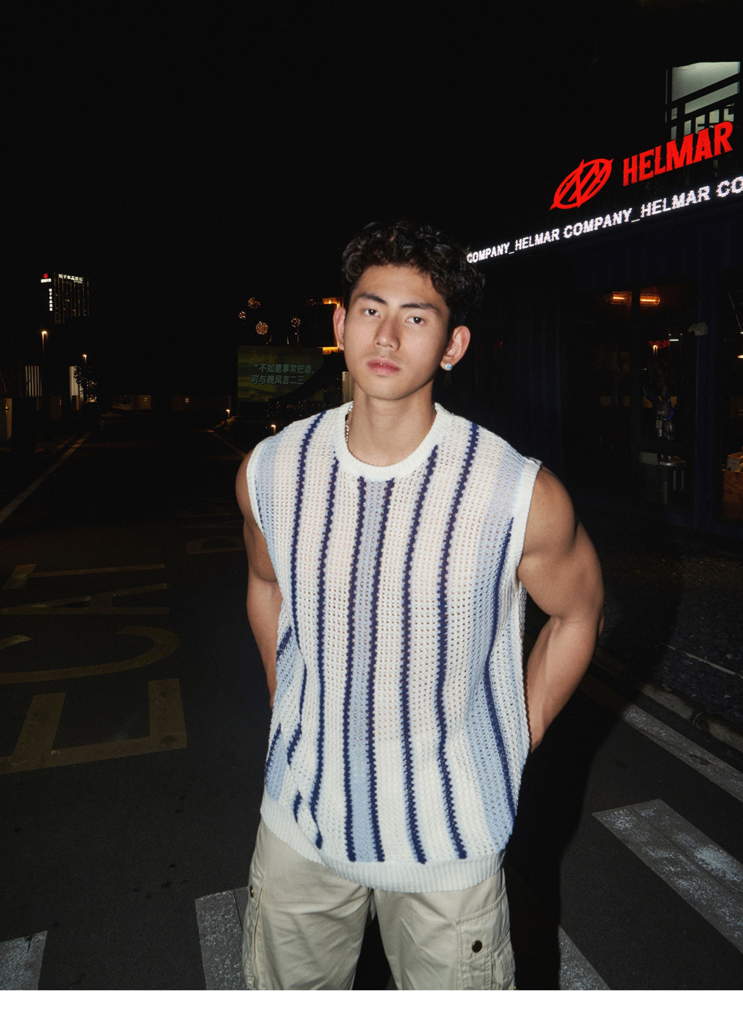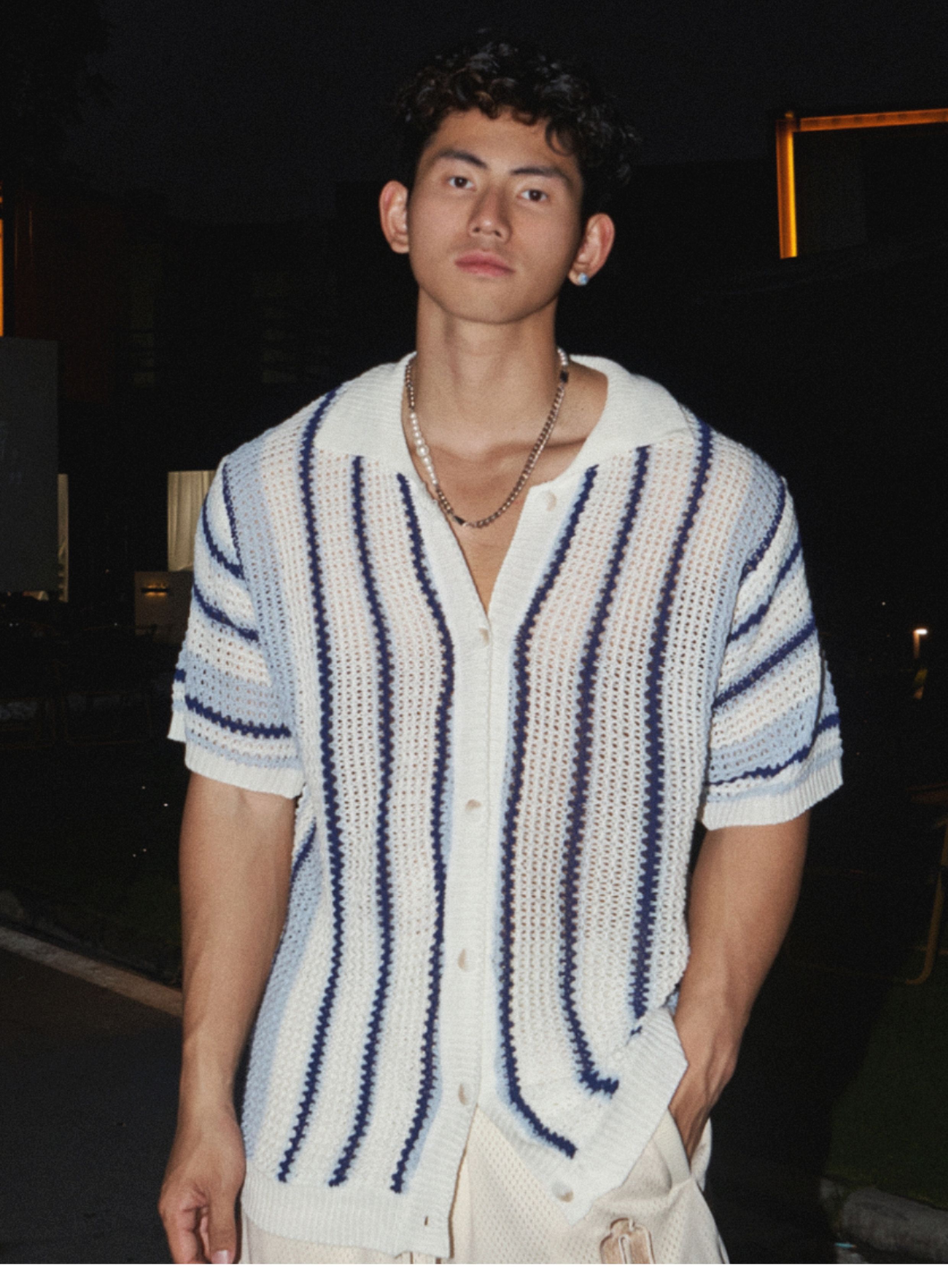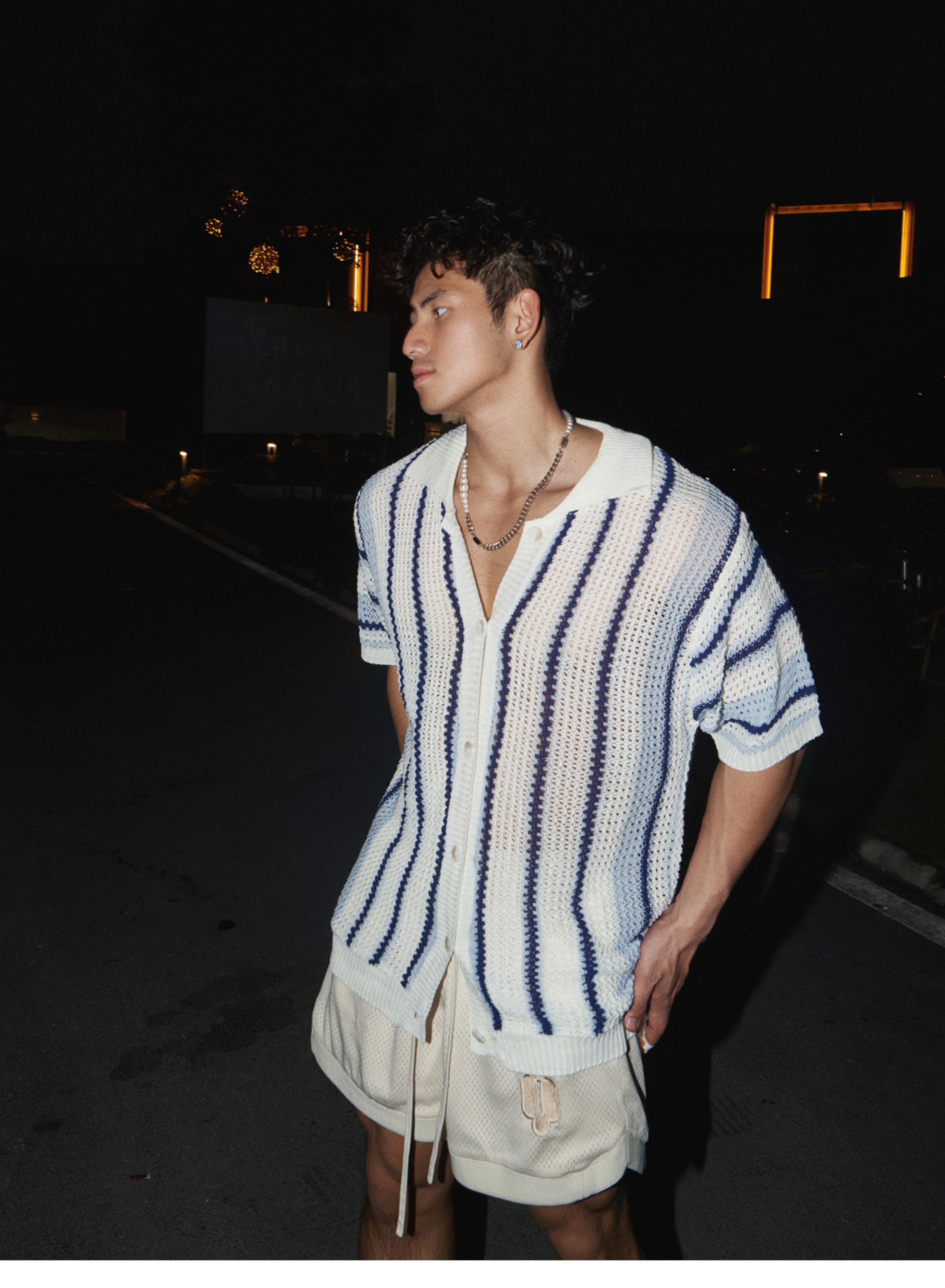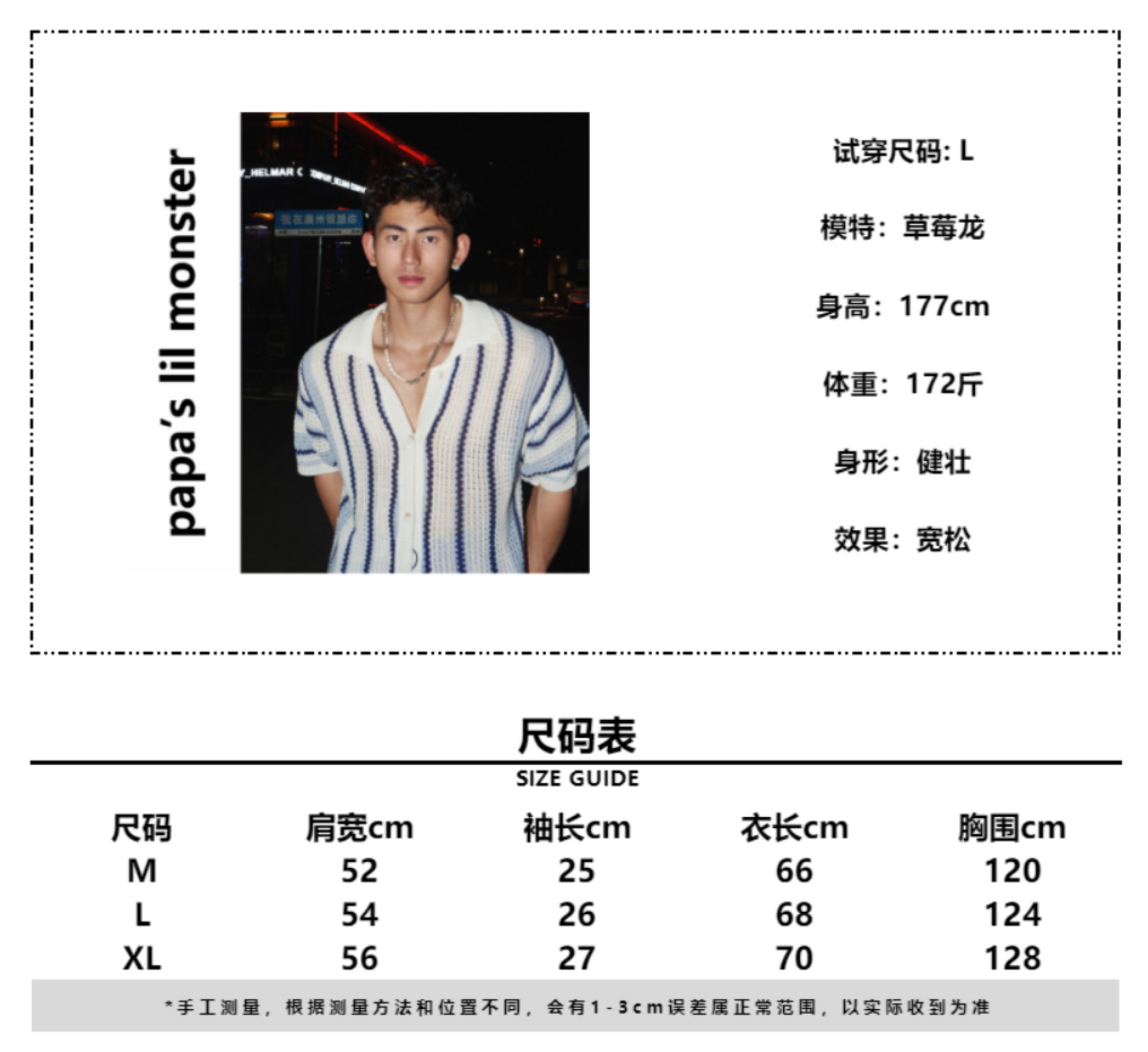 Lil Monster American-Style Summer Island Vacation Beach Striped Loose Short-Sleeved Knitted Shirt Original Design