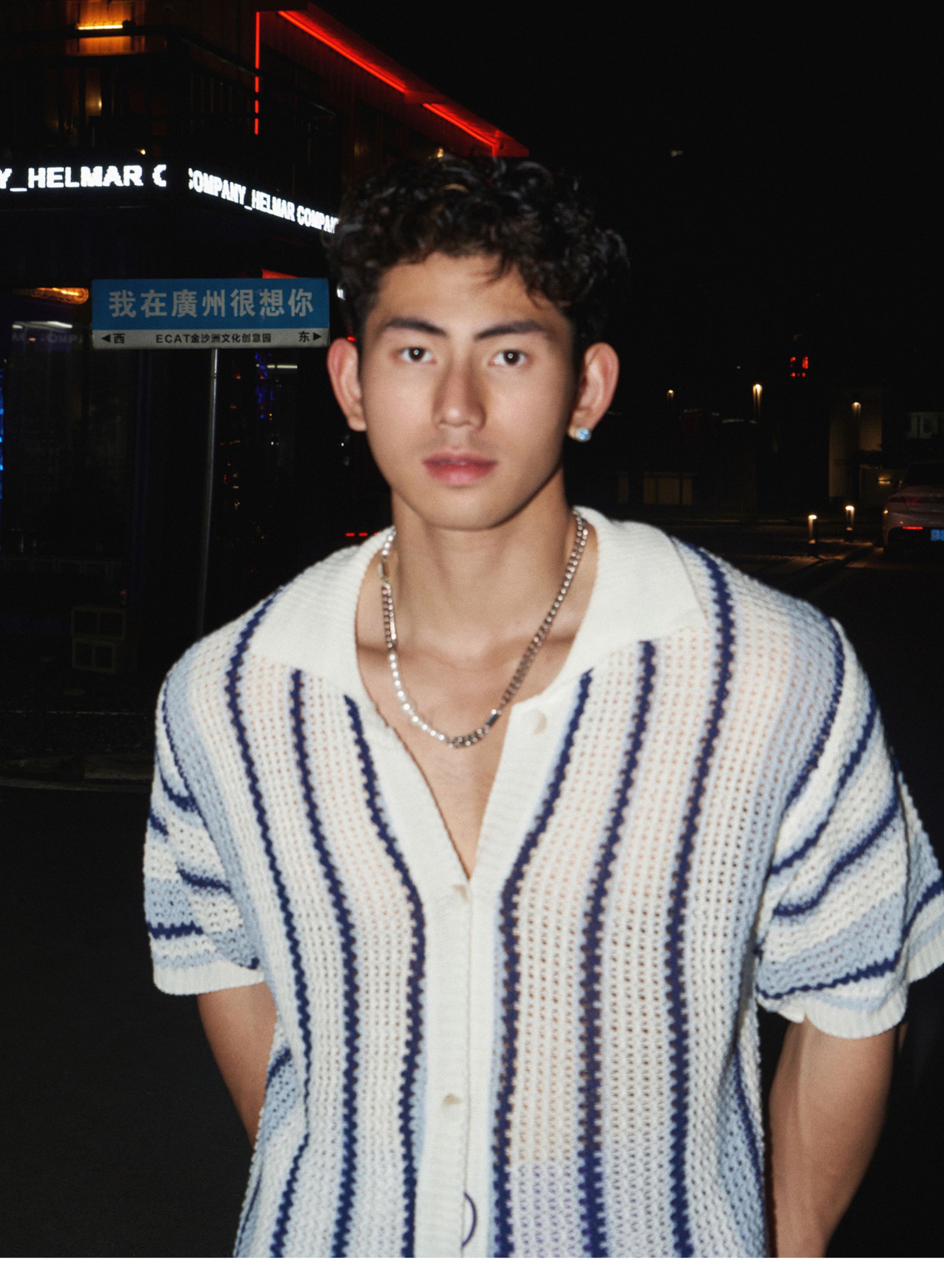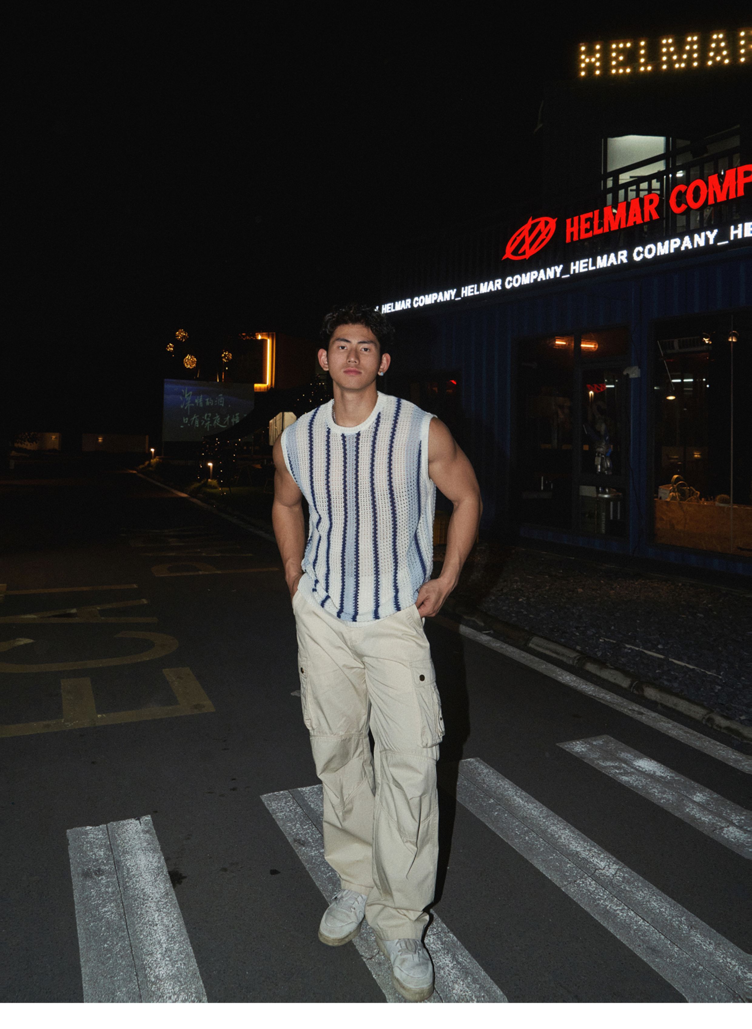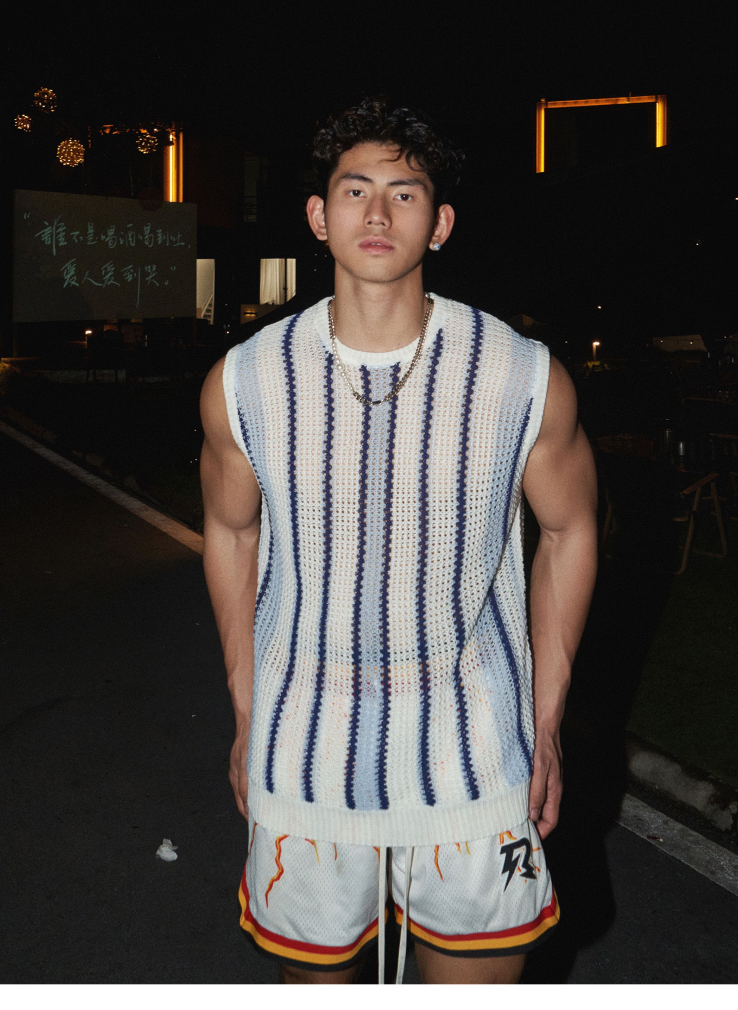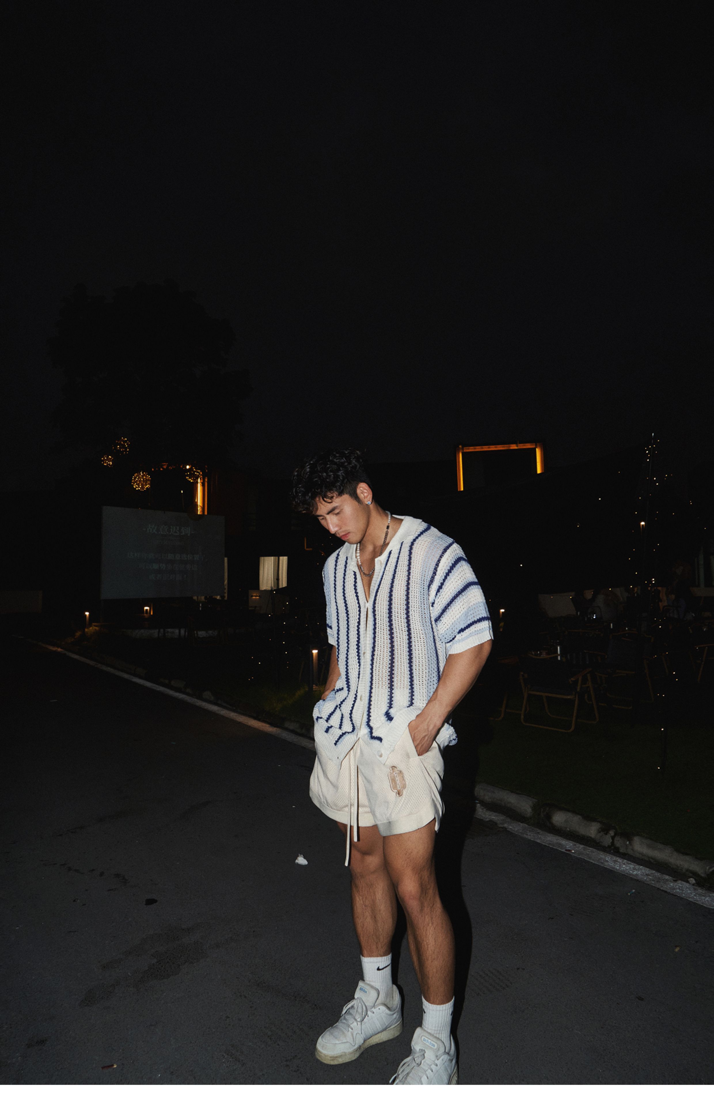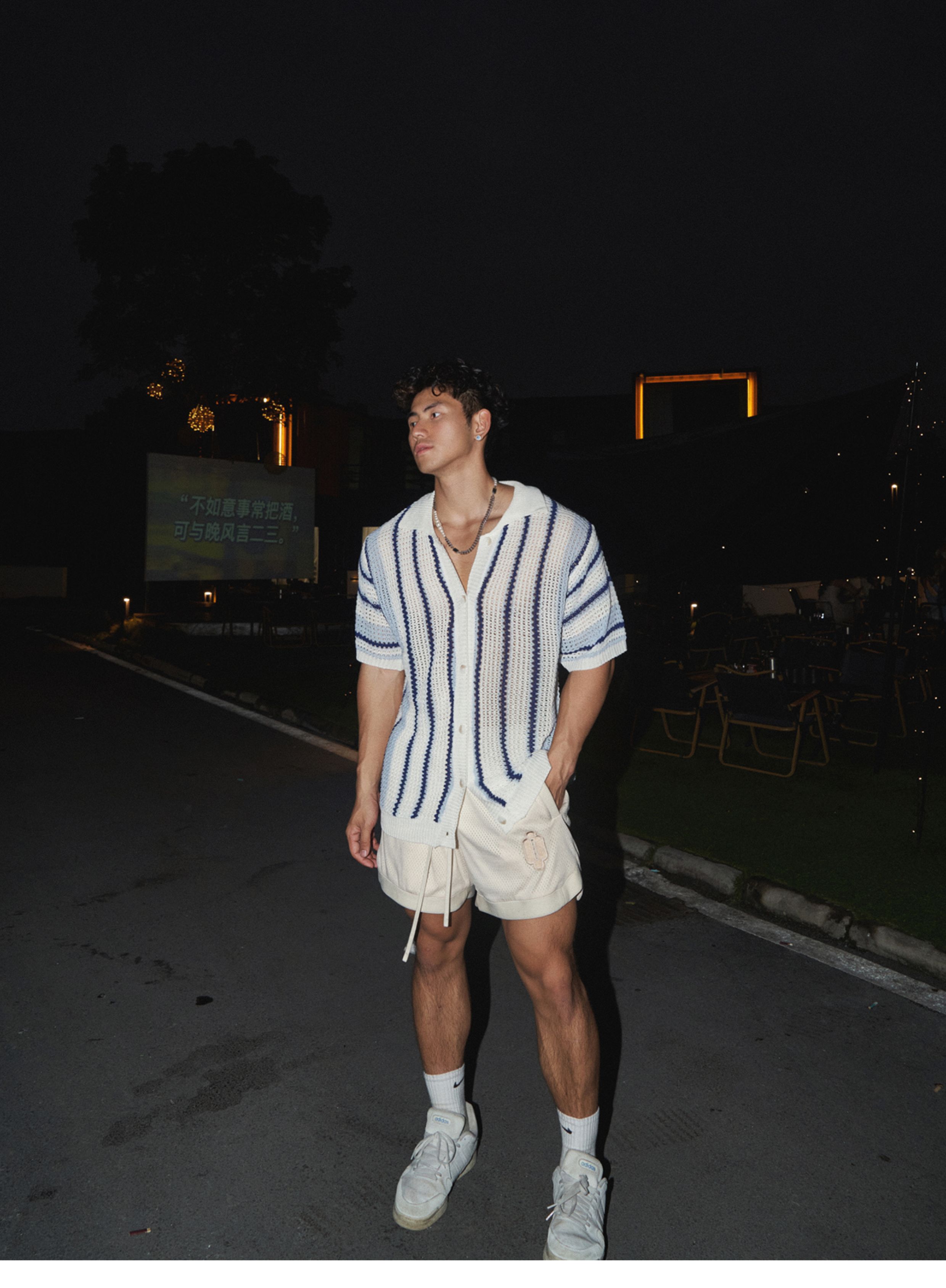 Lil Monster American-Style Summer Island Vacation Beach Striped Loose Short-Sleeved Knitted Shirt Original Design
