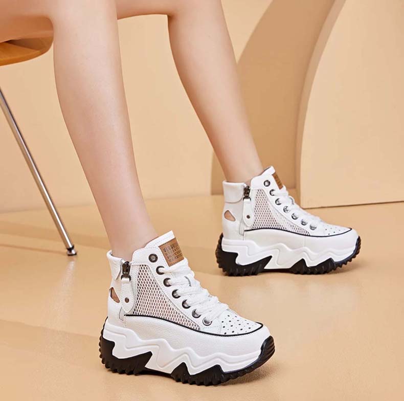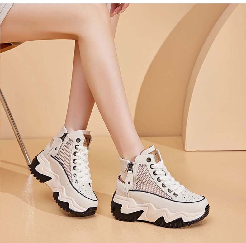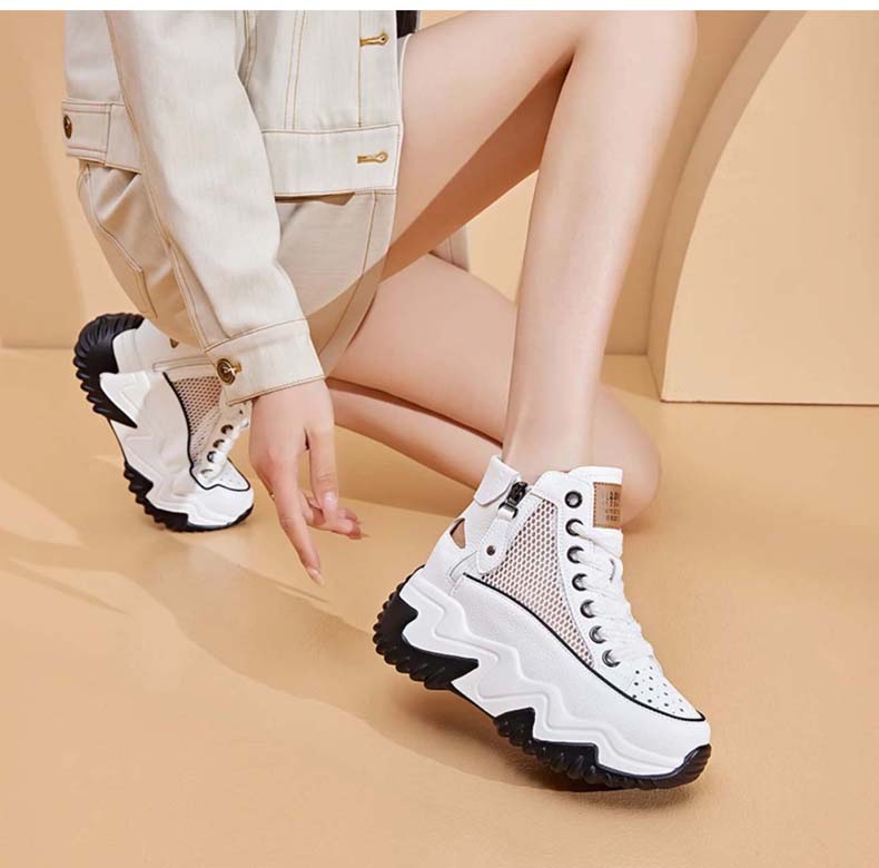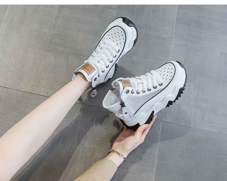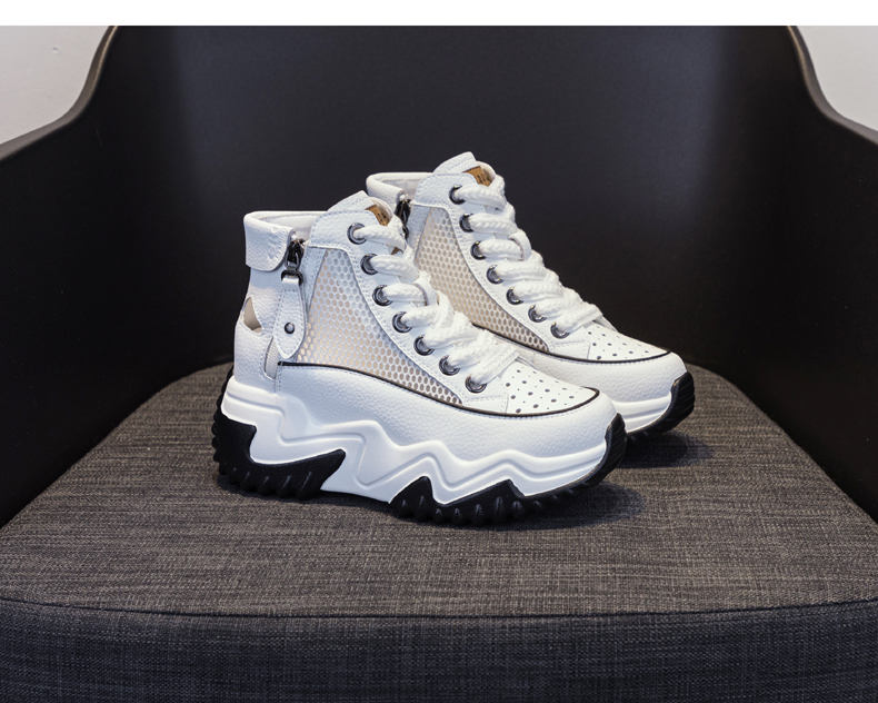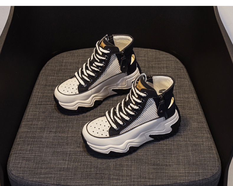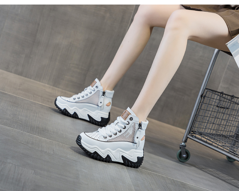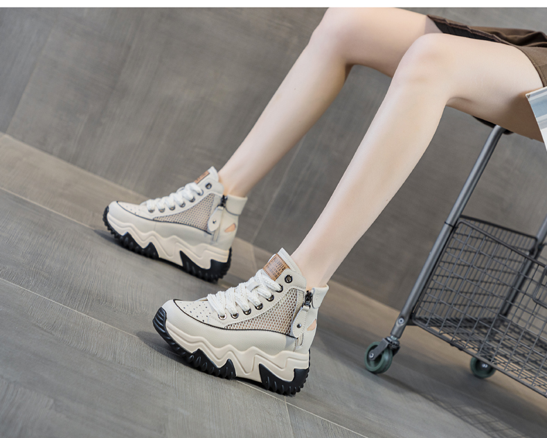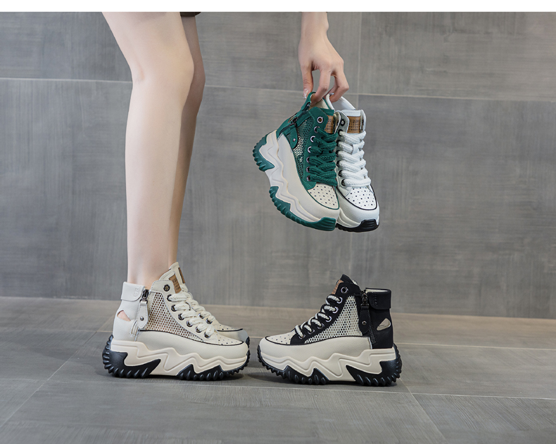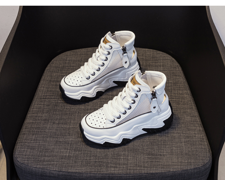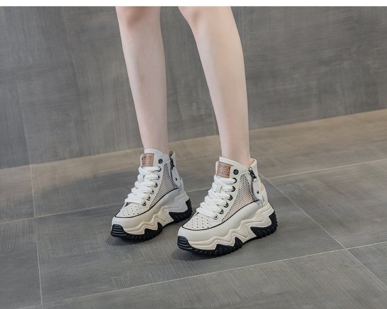 Mesh High-Top Dad Shoes for Women 2025 New Summer and Autumn Genuine Leather Breathable Sandals Versatile Height-Increasing Hollow White Shoes