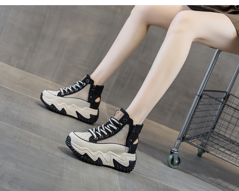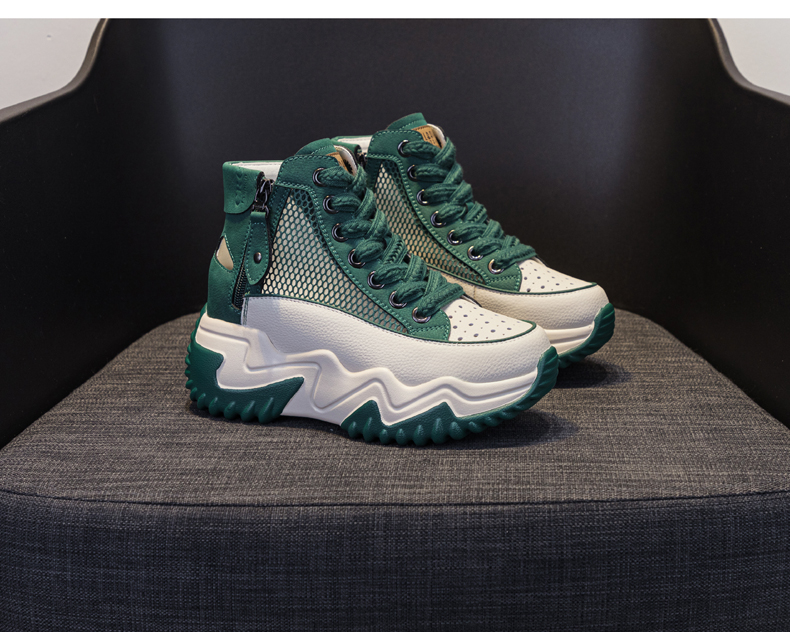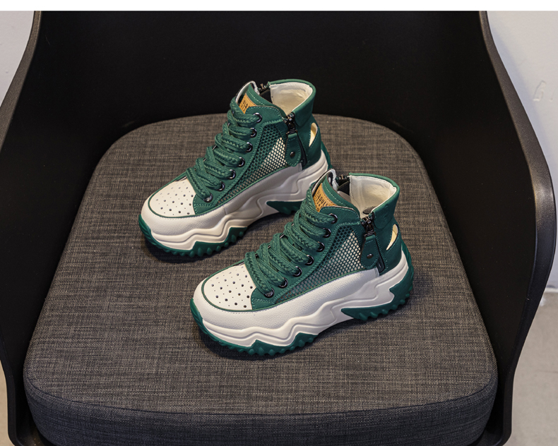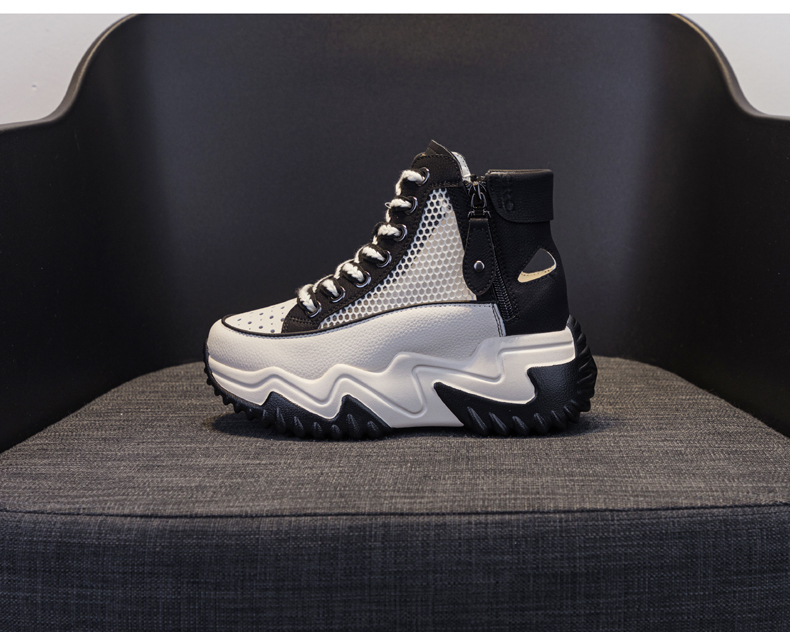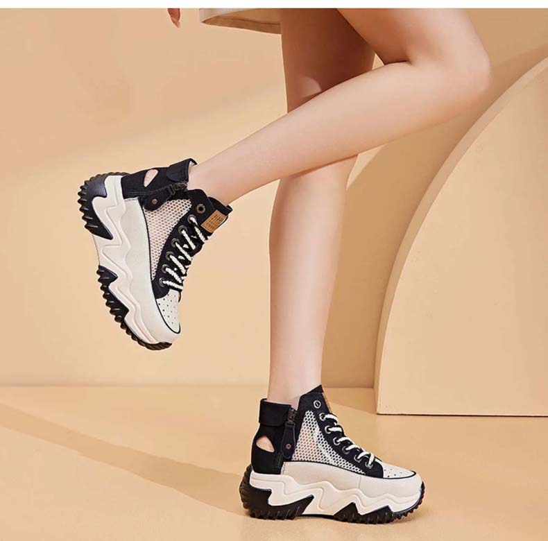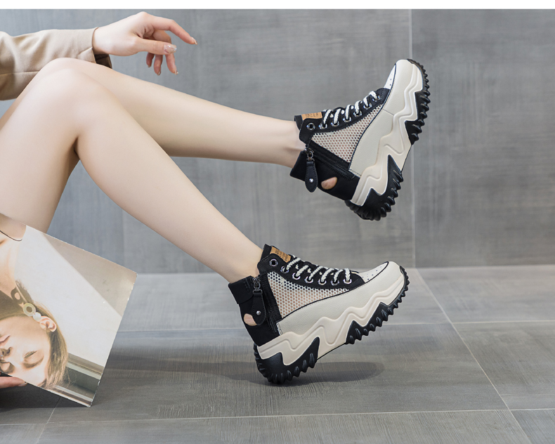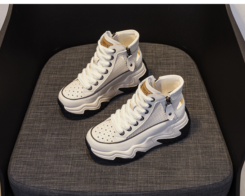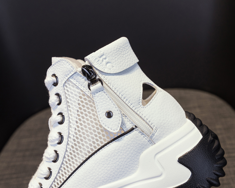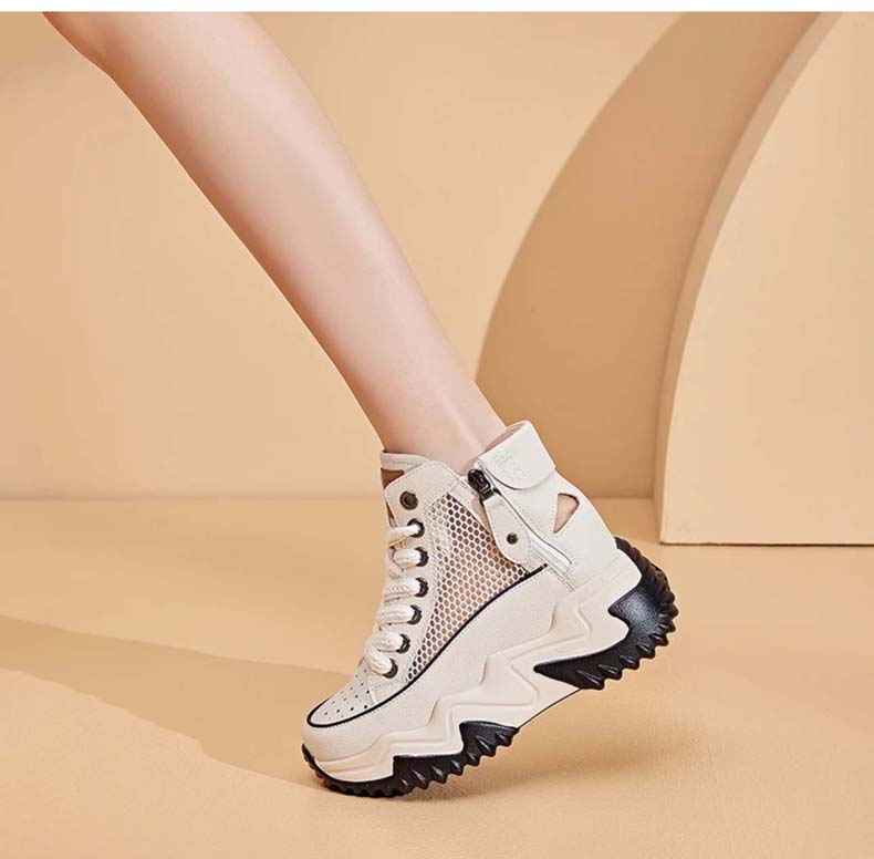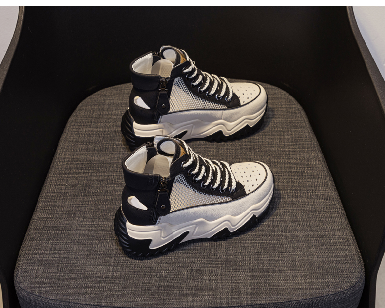 Mesh High-Top Dad Shoes for Women 2025 New Summer and Autumn Genuine Leather Breathable Sandals Versatile Height-Increasing Hollow White Shoes
