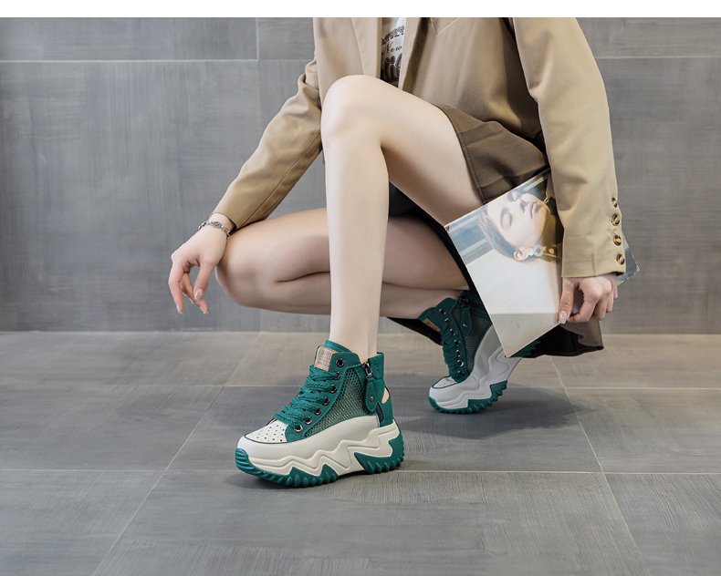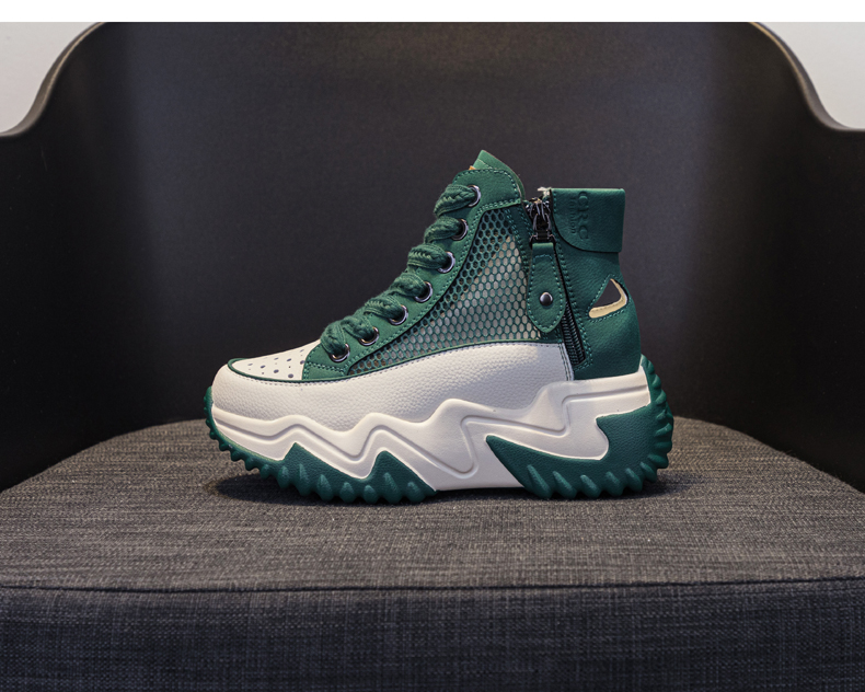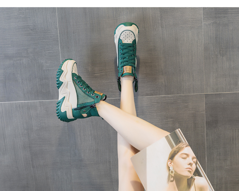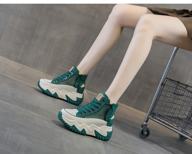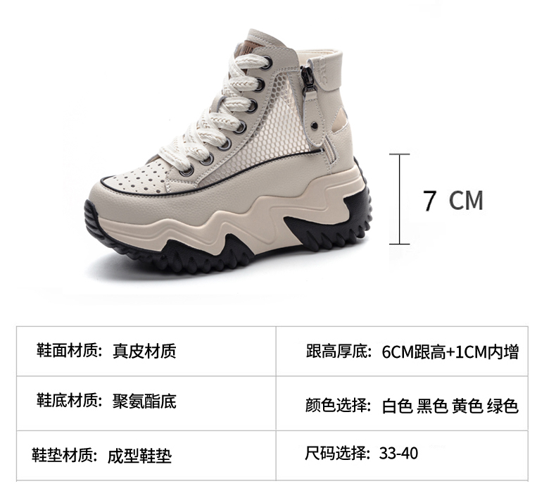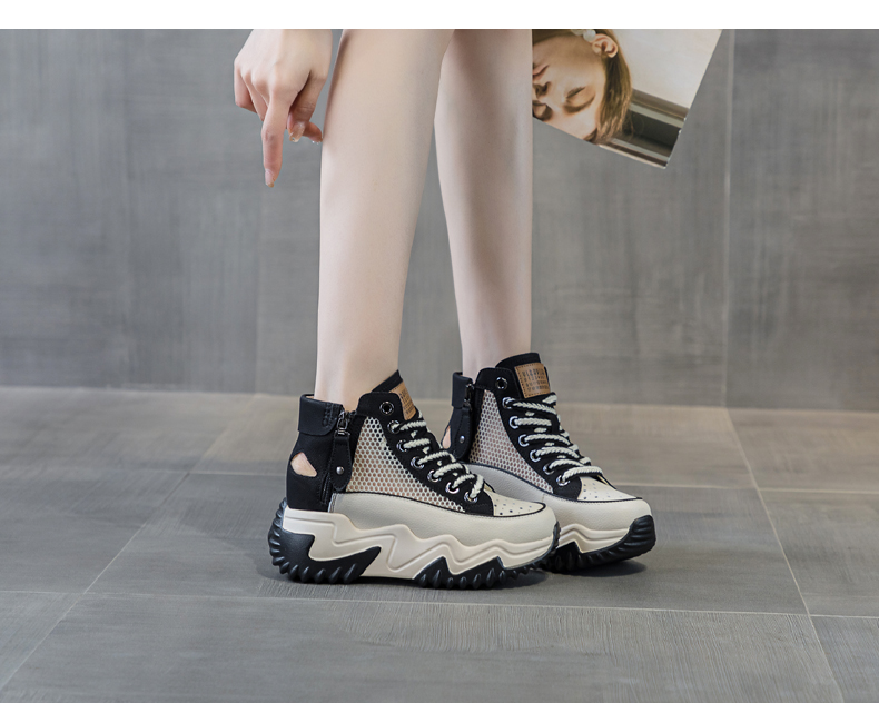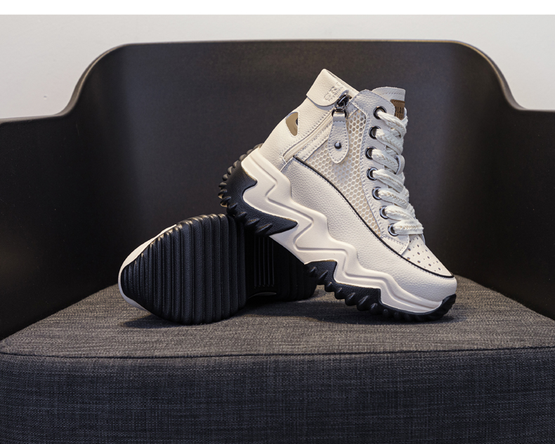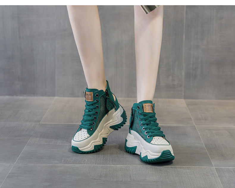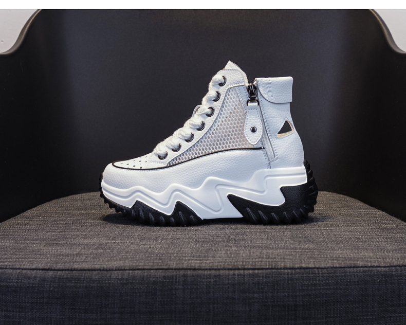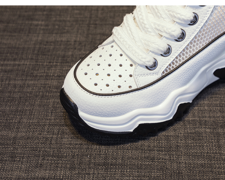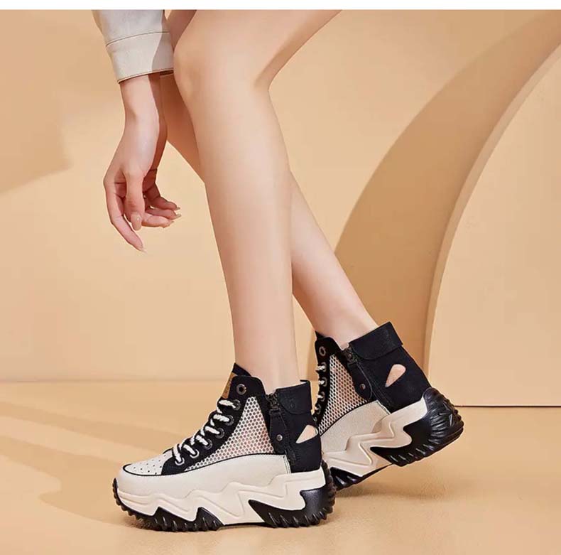 Mesh High-Top Dad Shoes for Women 2025 New Summer and Autumn Genuine Leather Breathable Sandals Versatile Height-Increasing Hollow White Shoes