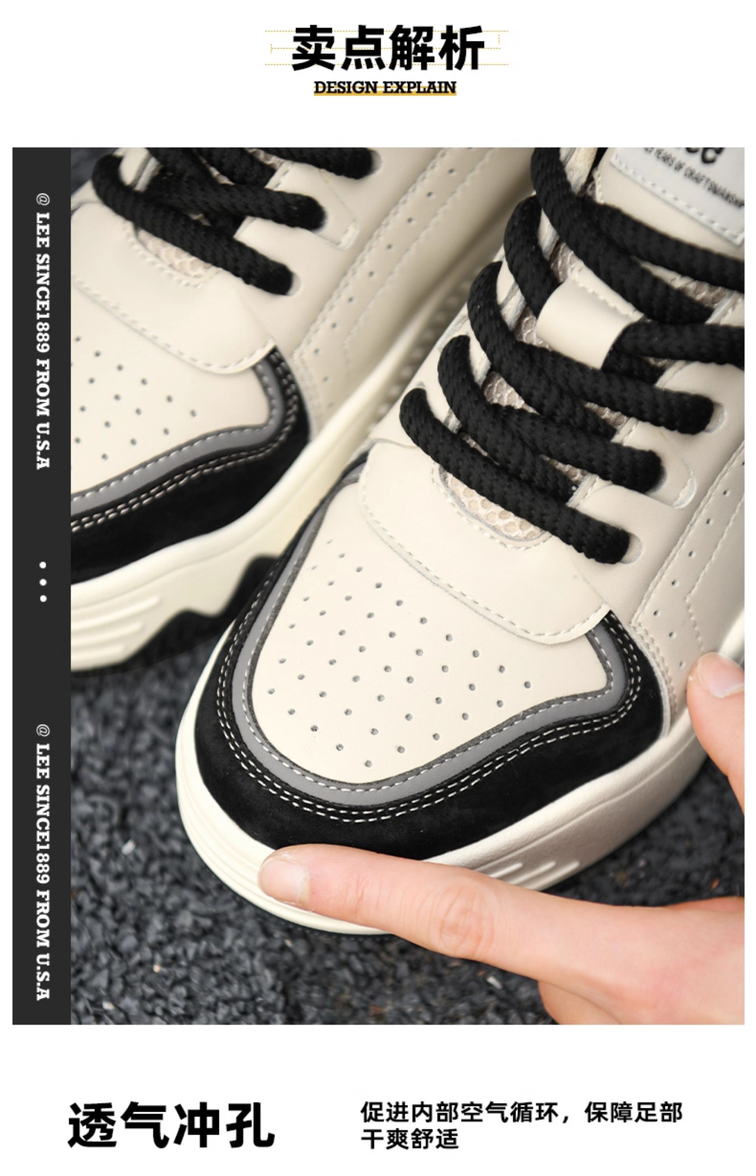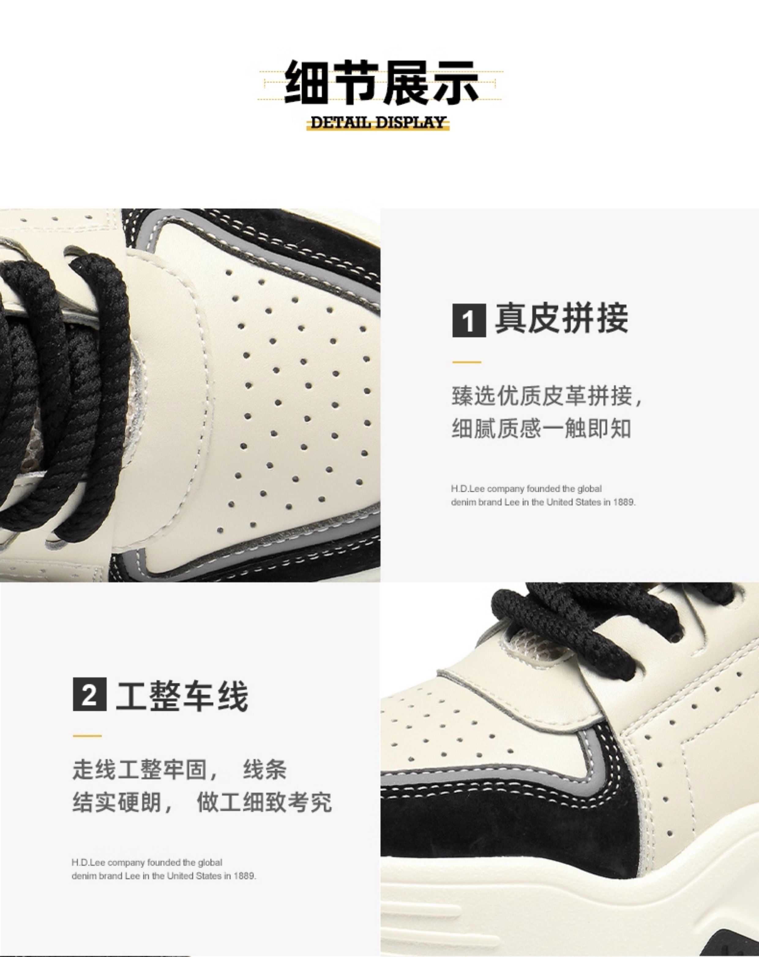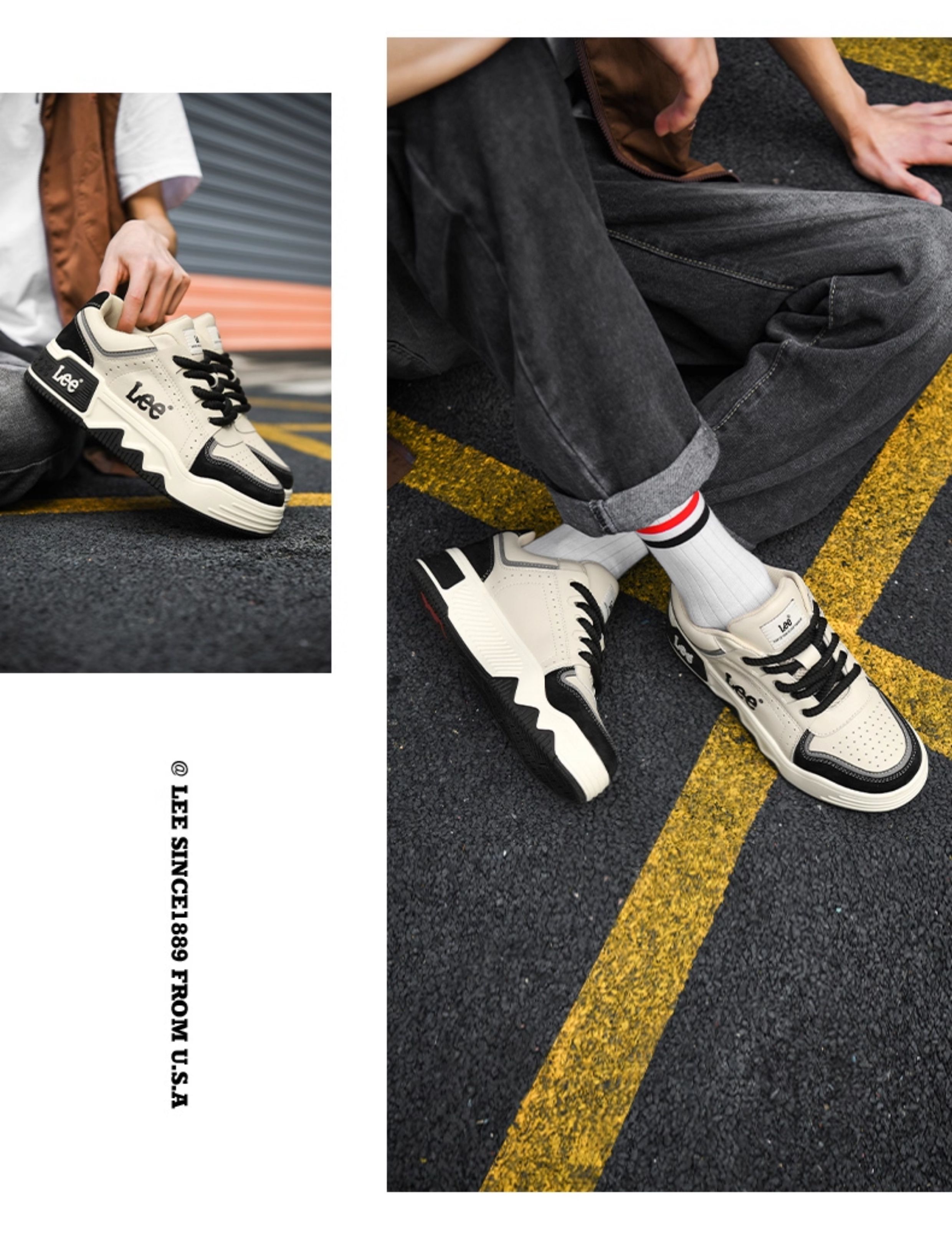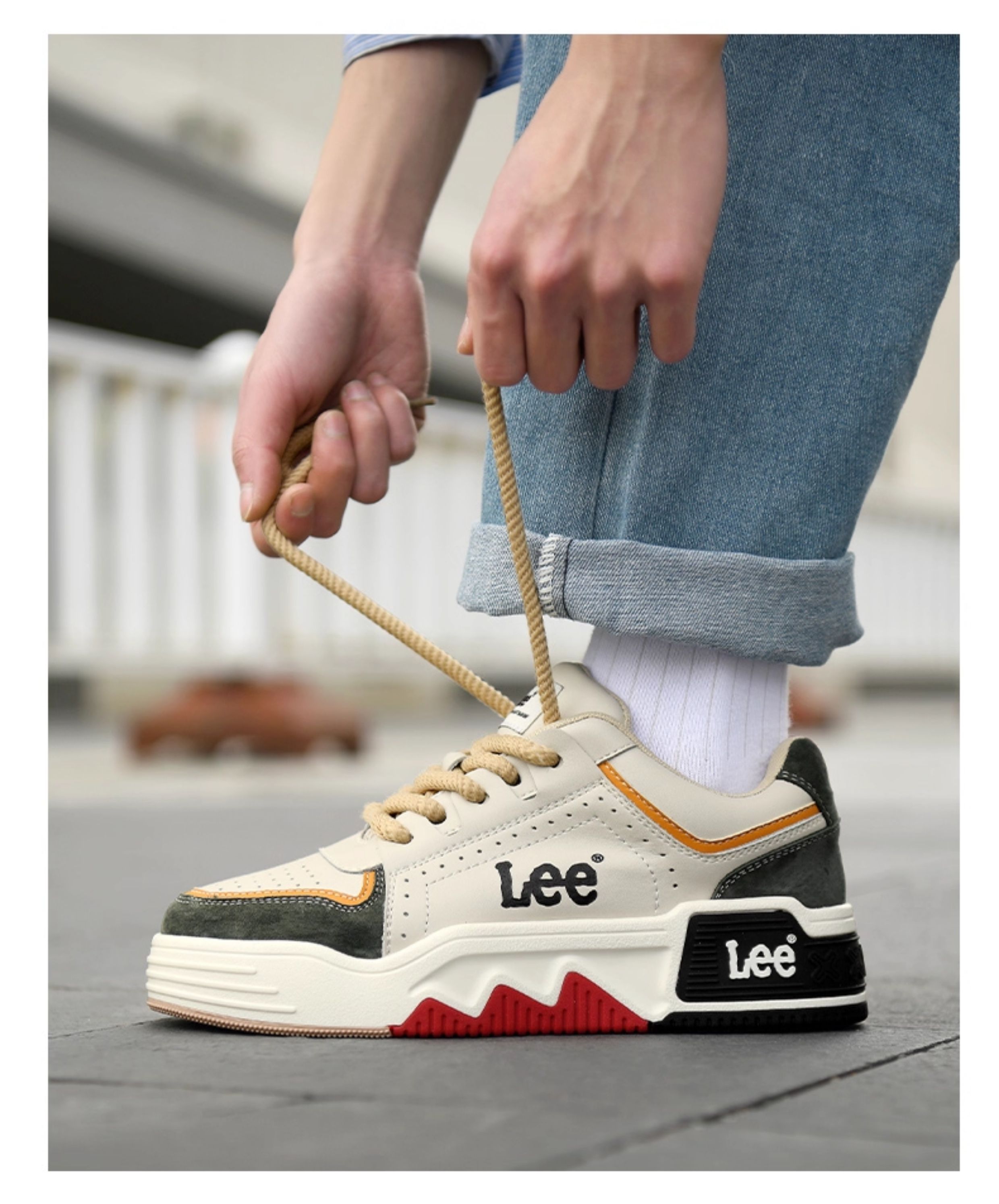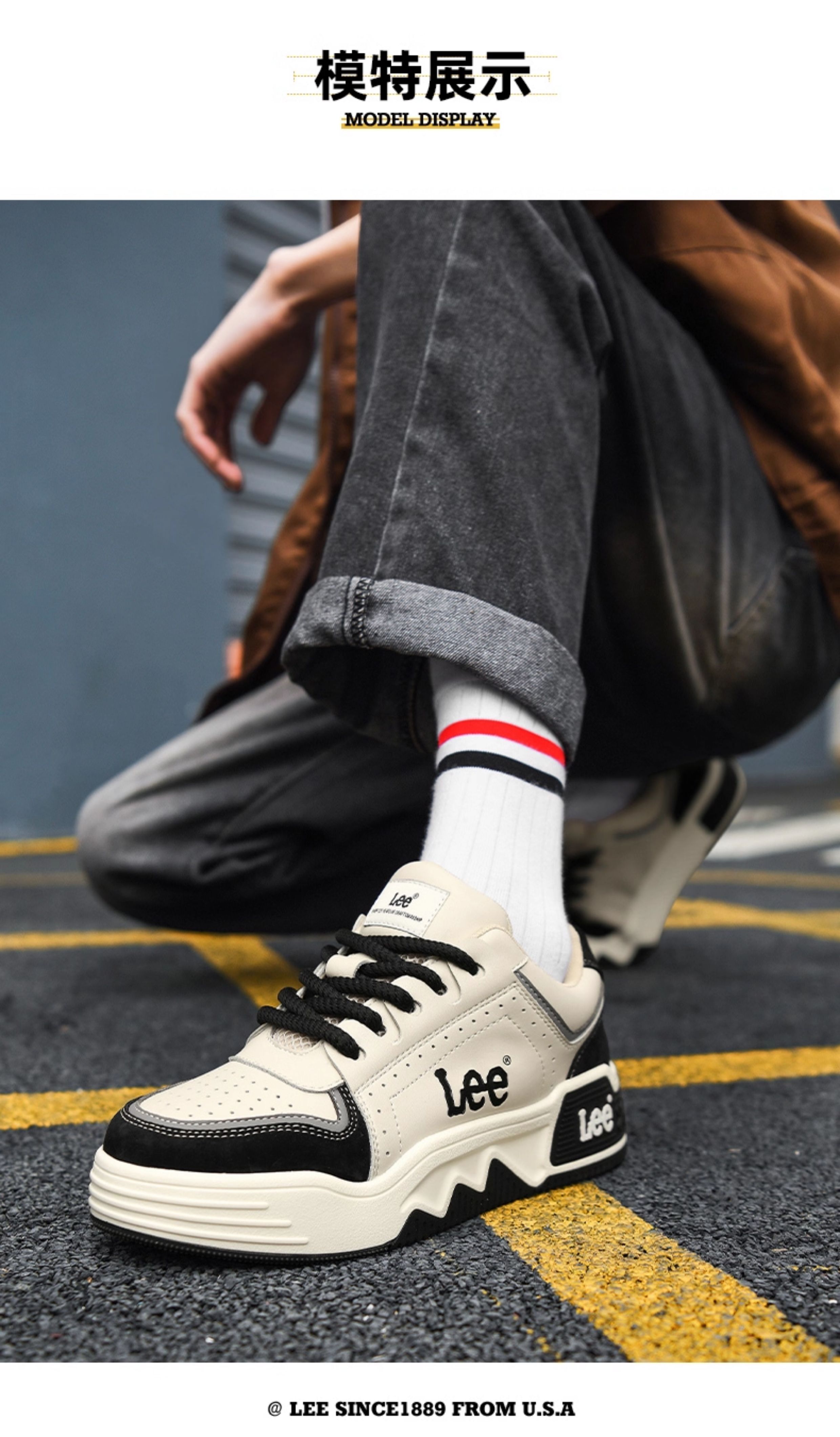 Lee Men's Shoes 2025 New Autumn Sports Casual Shoes Men's Thick-Soled Height-Increasing Genuine Leather Sneakers Versatile Trendy Shoes