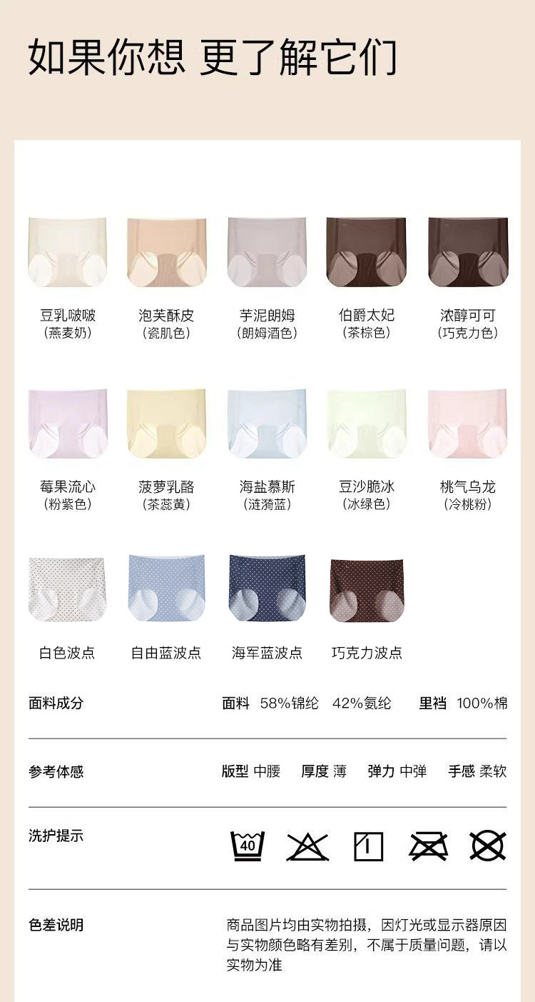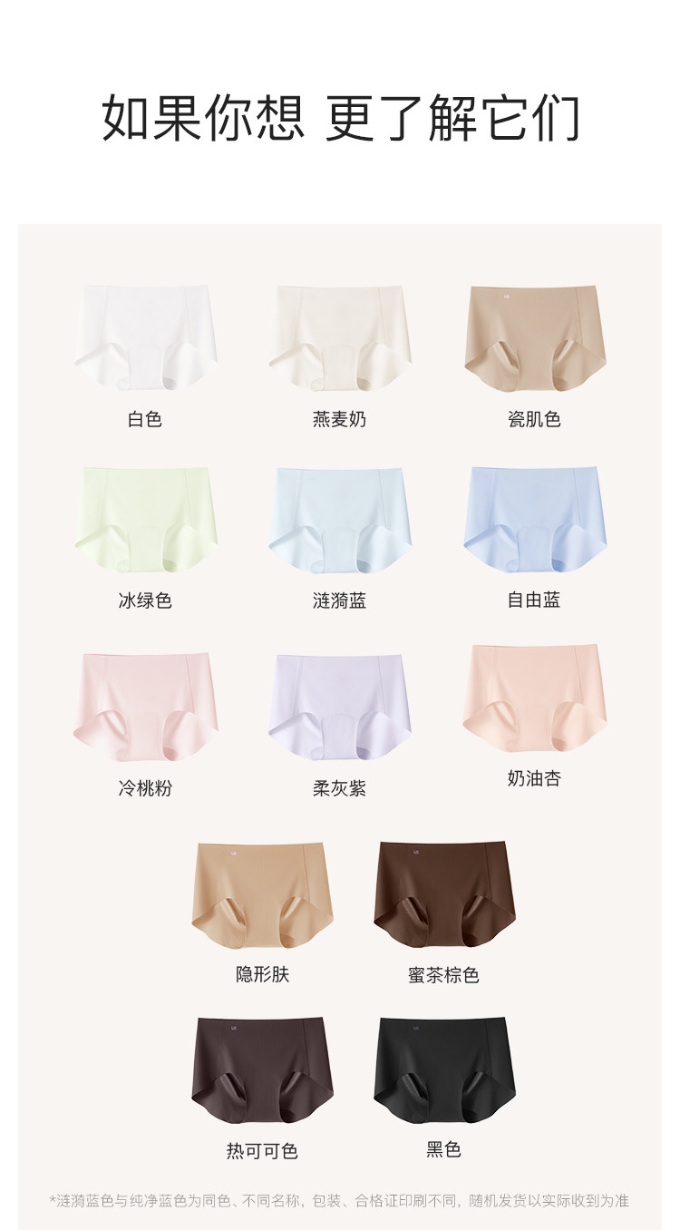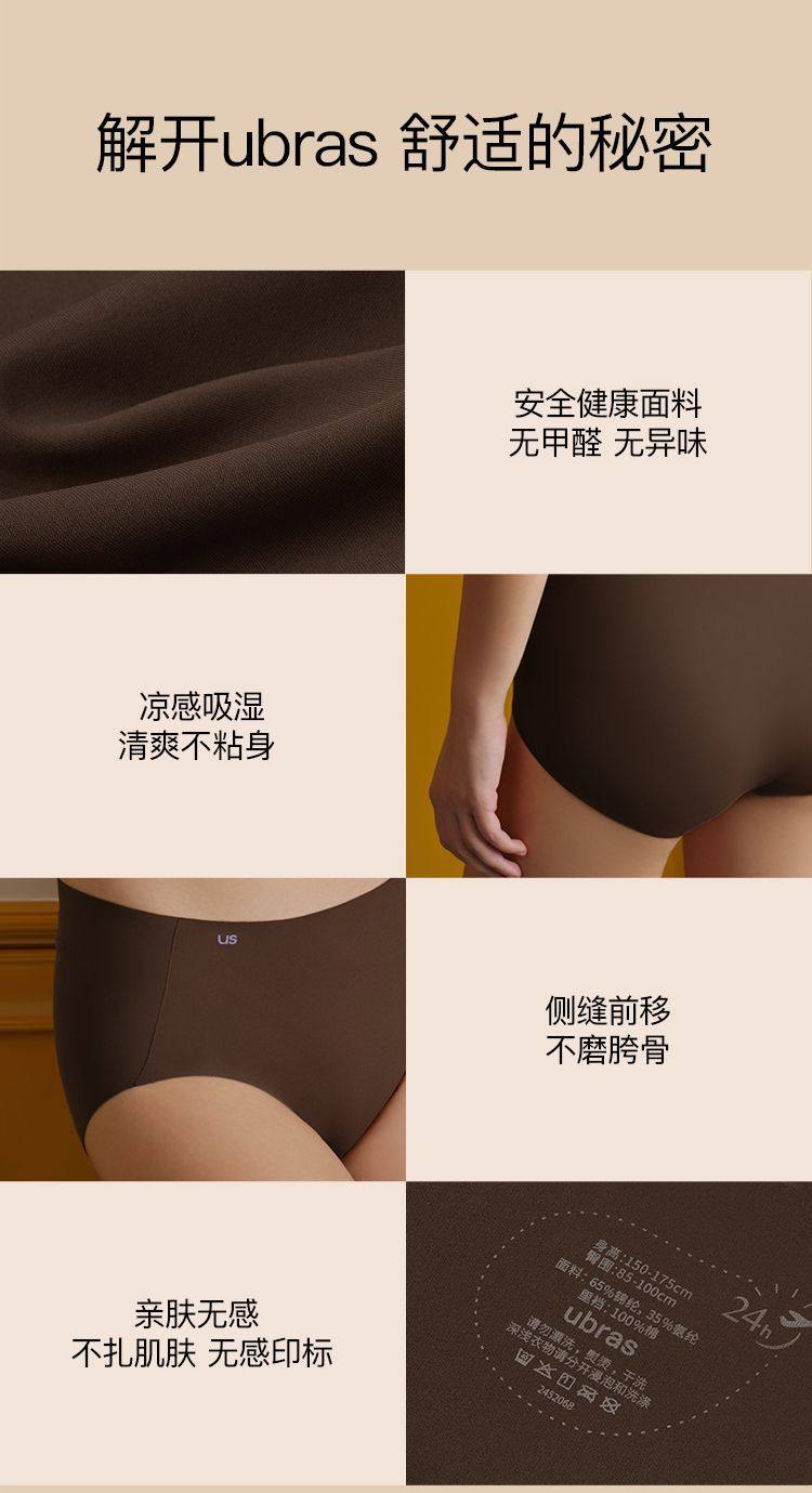 Ubras Size-Free Seamless Underwear for Women, Antibacterial, Small Breast Skin-Friendly, Pure Cotton Crotch, Breathable Mid-Waist Briefs, 3-Pack