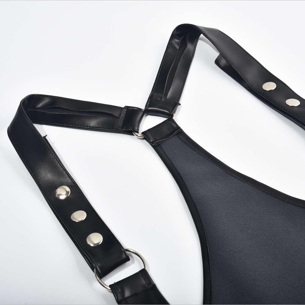Sexy Men's Thong with Large Chest Armor Pu Leather Suit Muscle Nightclub Stage Performance Costume Personalized Trendy Shapewear