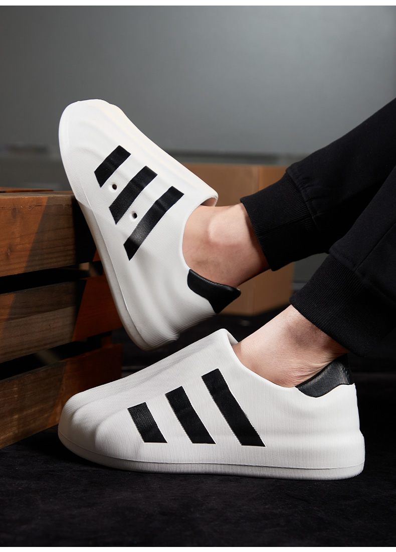 Men's Three-Stripe Shell-Toe Clogs, Non-Slip and Odor-Resistant, 2025 New Summer Eva Men's Closed-Toe Sandals for Outdoor Wear