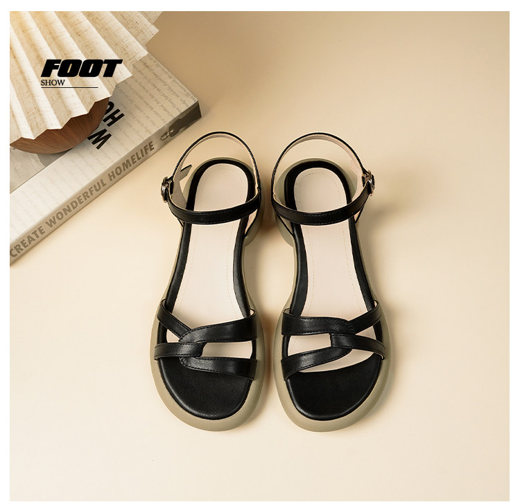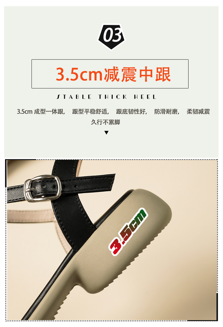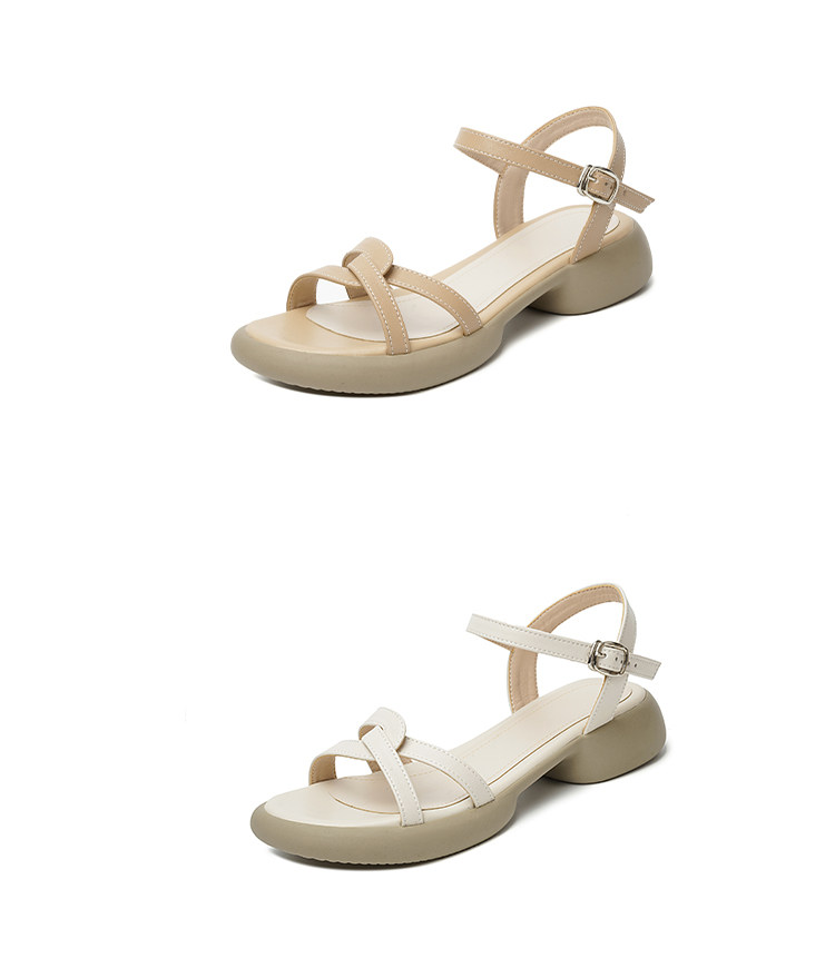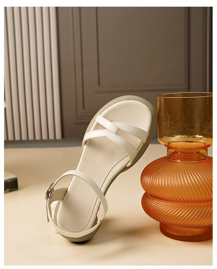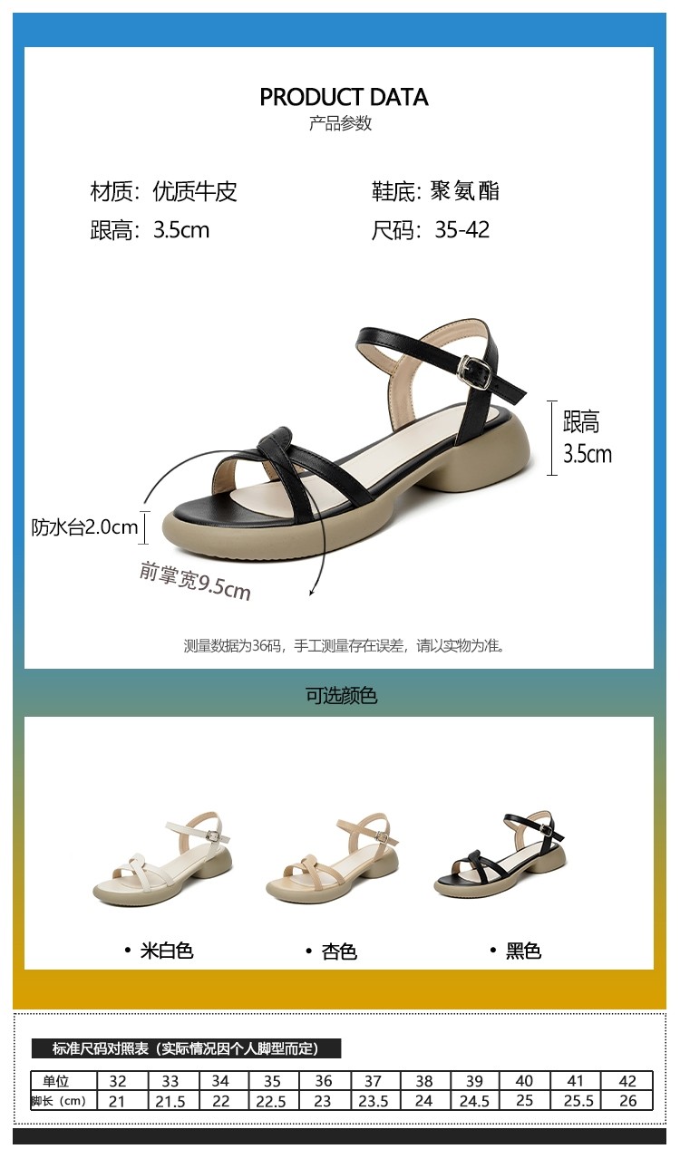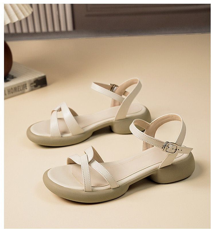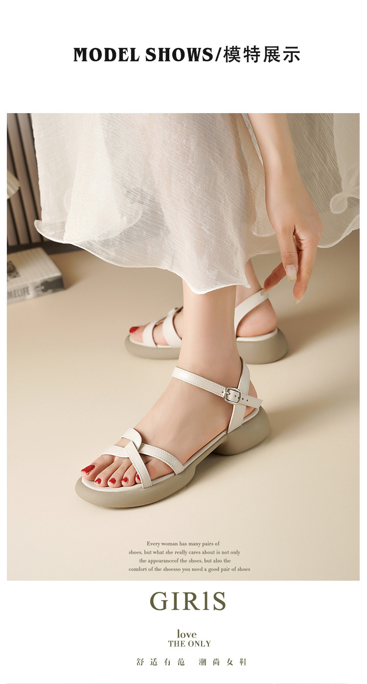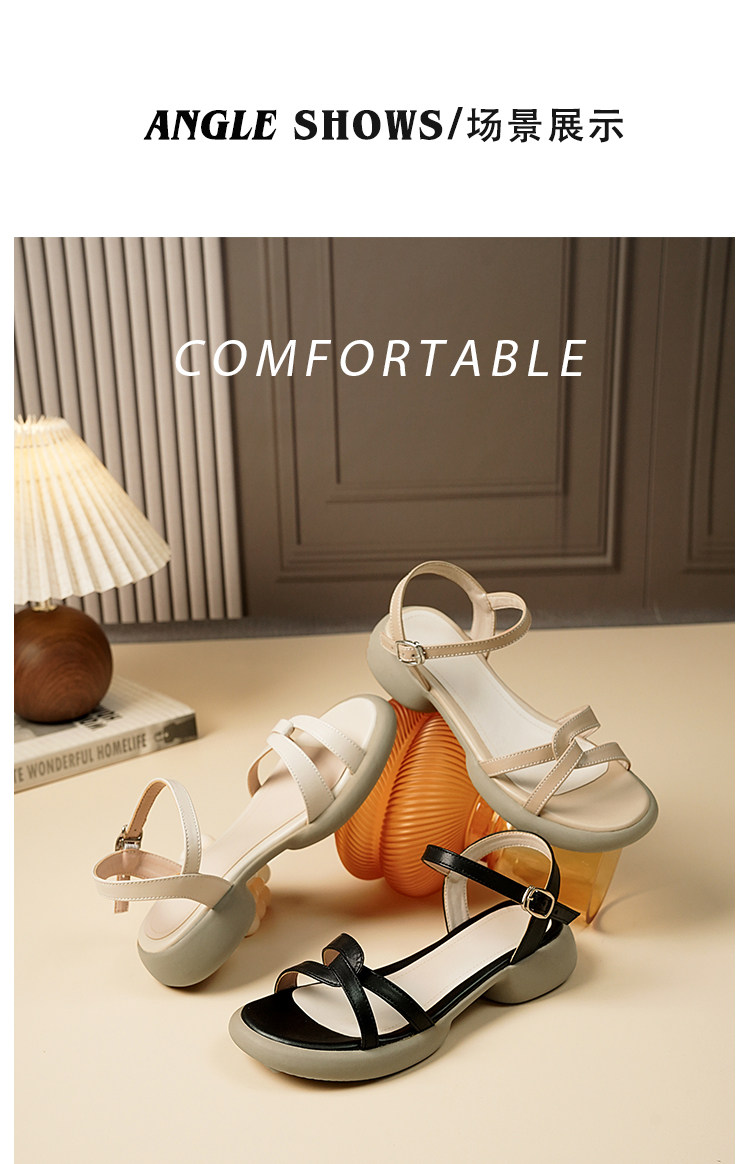 Full Cowhide Genuine Leather Round Toe Open Toe Low Heel Fashionable New Sandals for Women Summer Thick Sole Low Heel Soft Sole Non-Slip Women's Shoes
