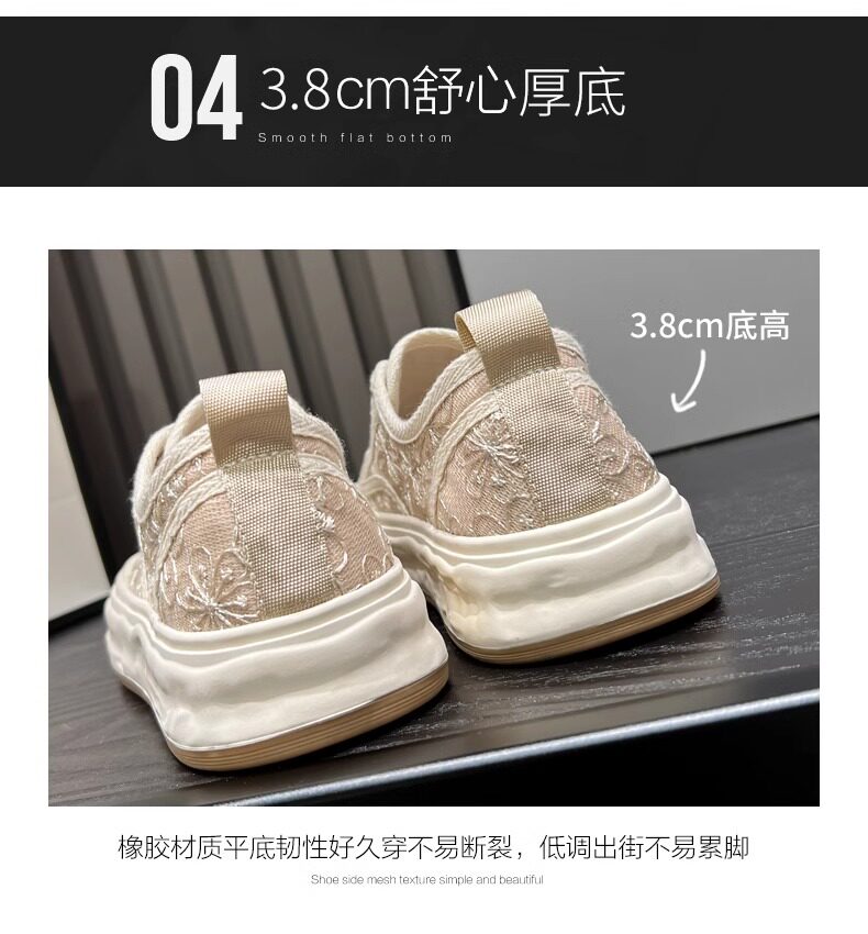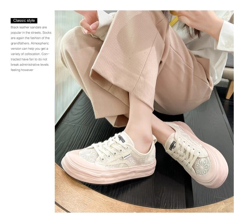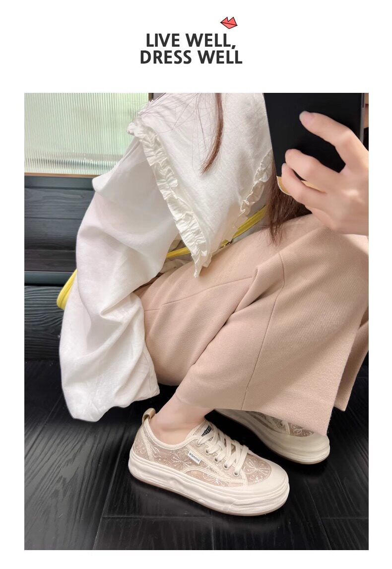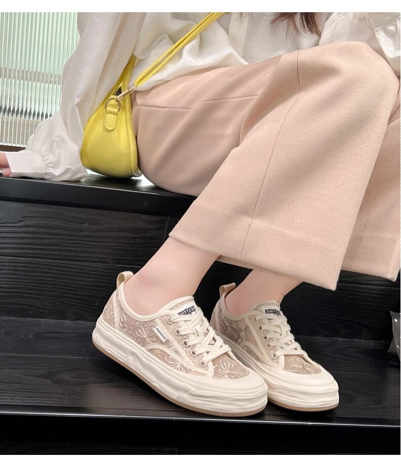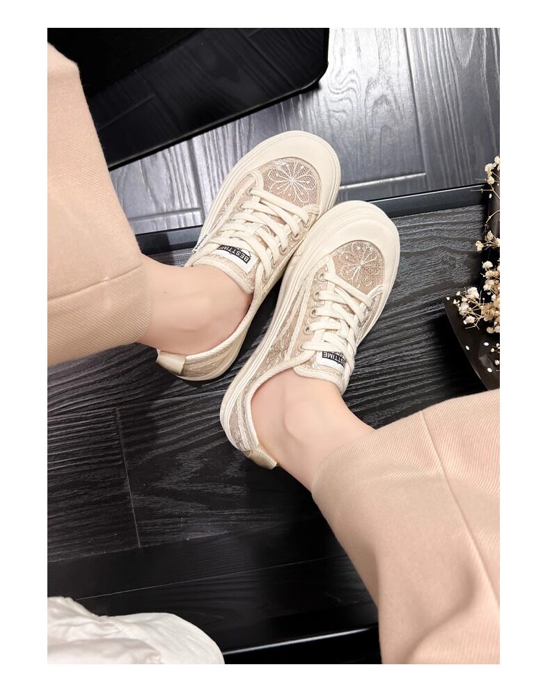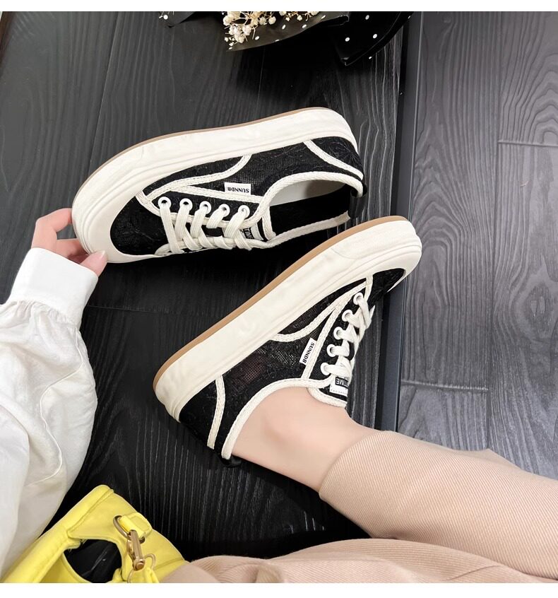 Hong Kong Embroidered Lace Fisherman Shoes for Women, 2026 Spring and Autumn New Versatile Breathable Mesh Flat Canvas Sneakers