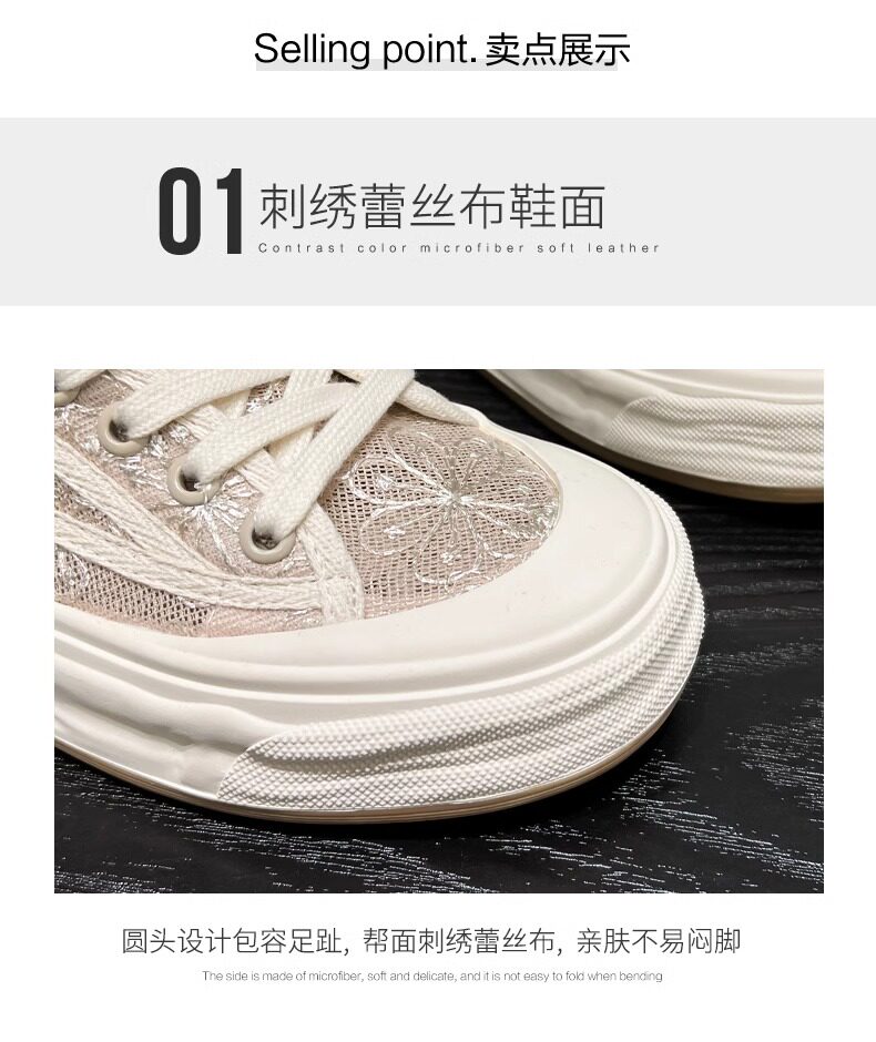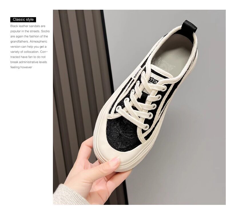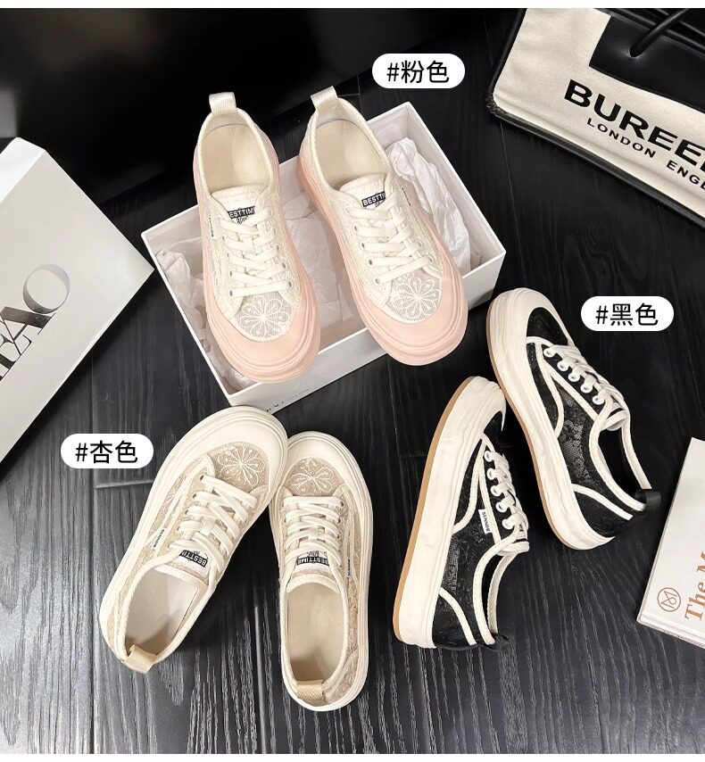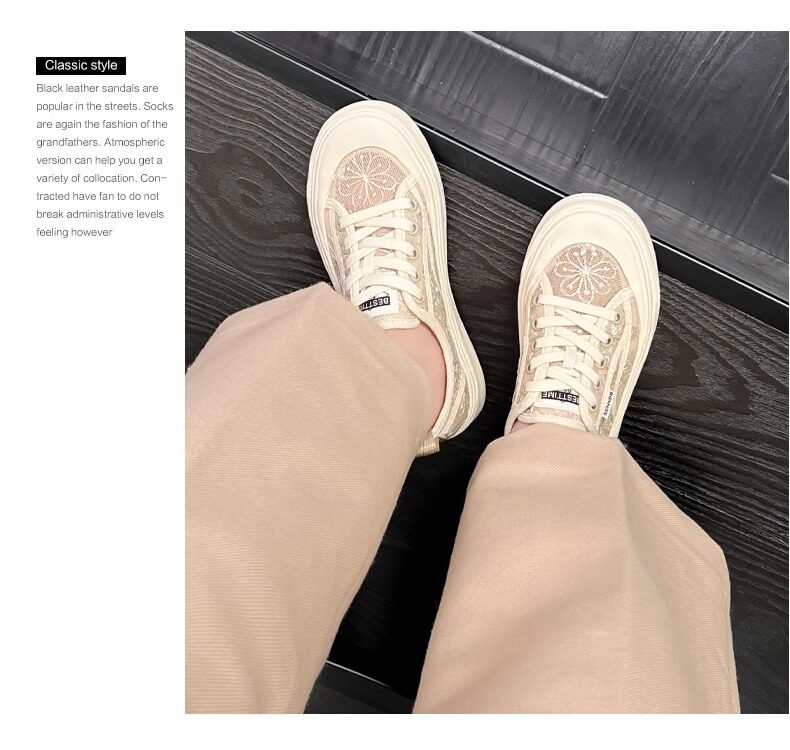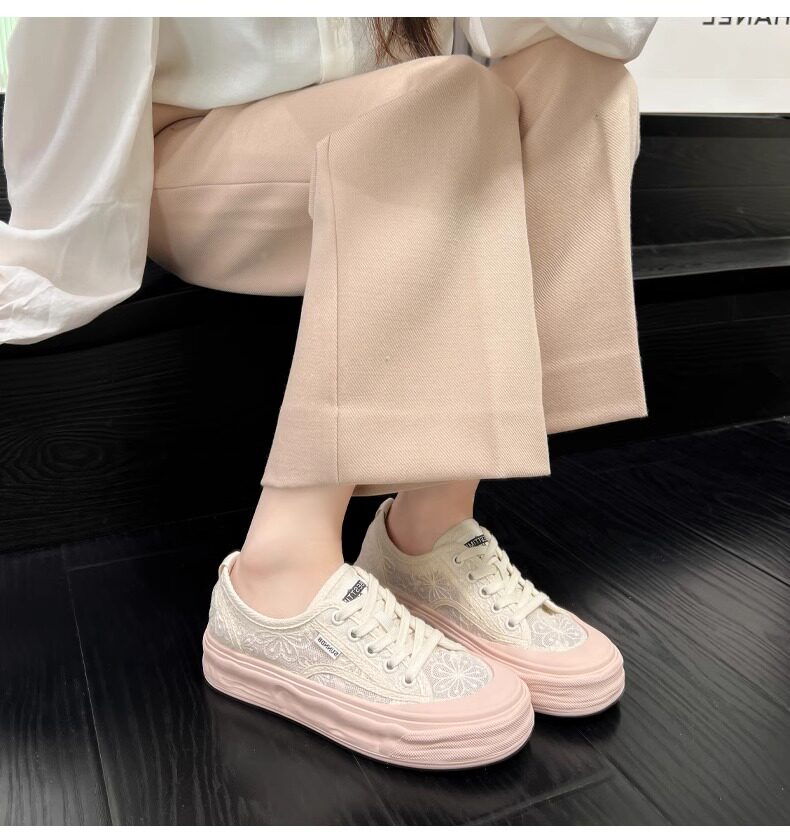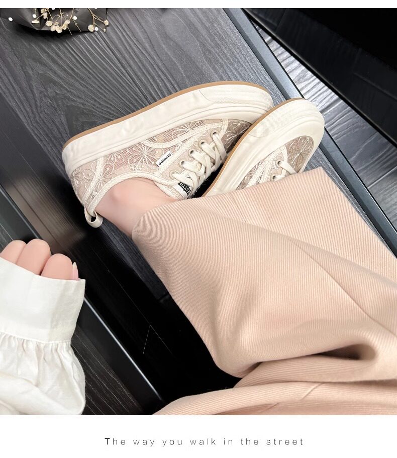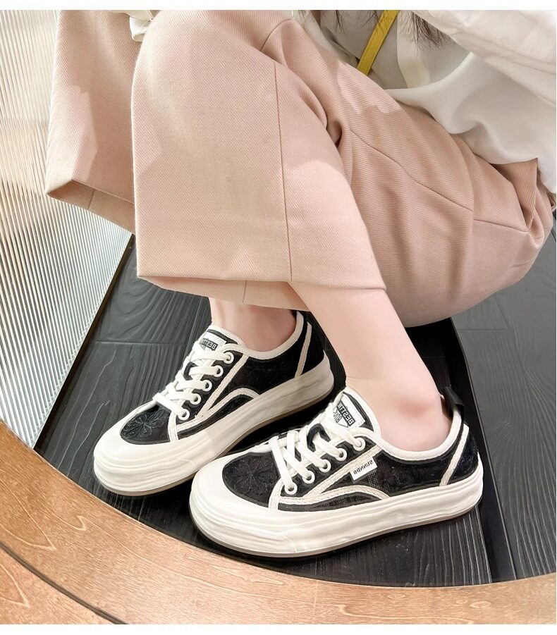 Hong Kong Embroidered Lace Fisherman Shoes for Women, 2026 Spring and Autumn New Versatile Breathable Mesh Flat Canvas Sneakers