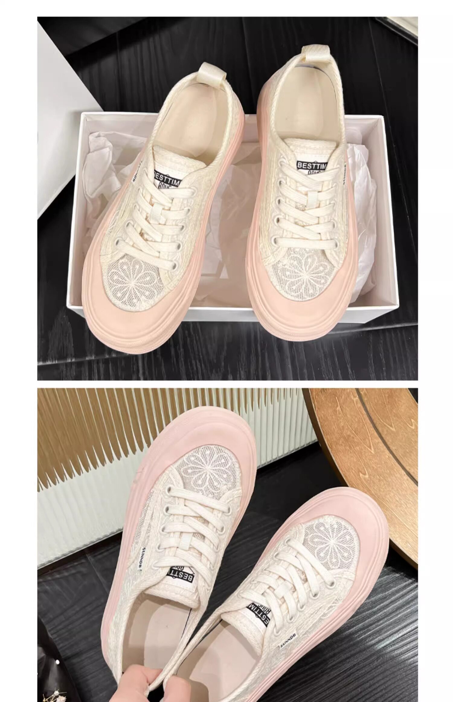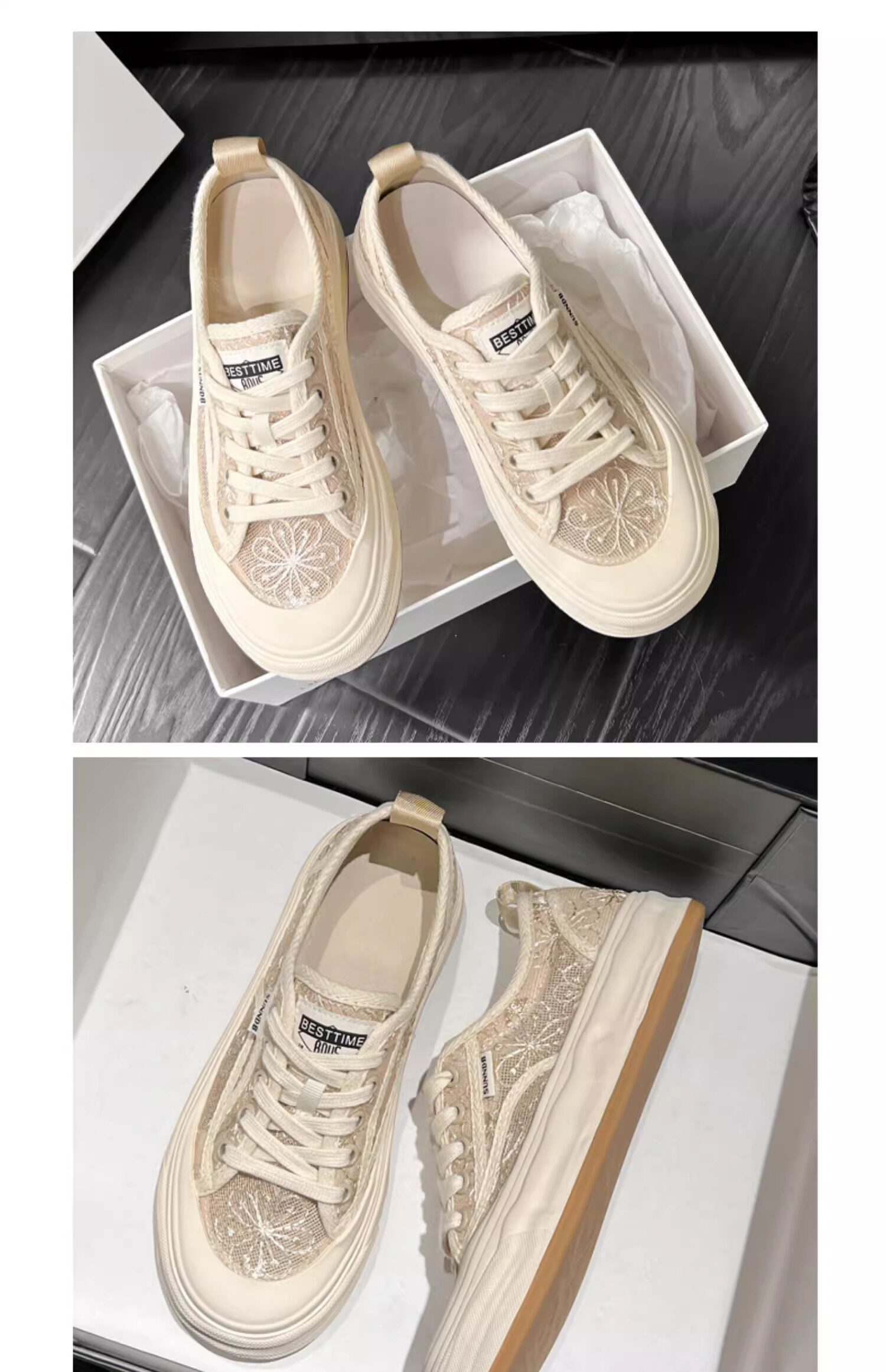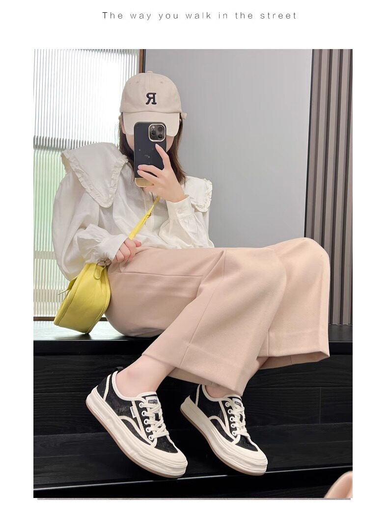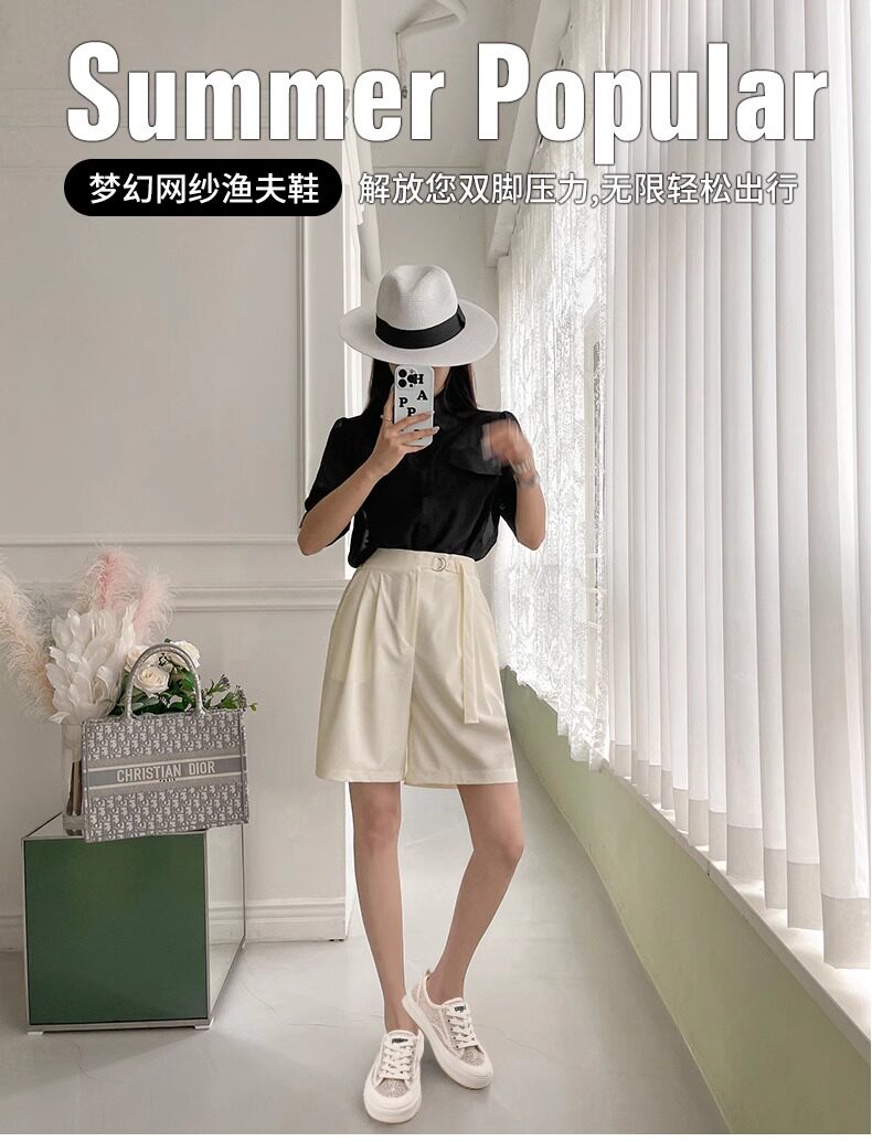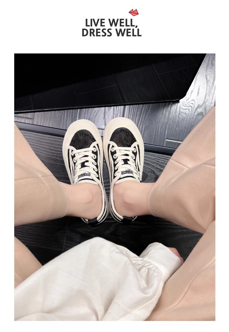 Hong Kong Embroidered Lace Fisherman Shoes for Women, 2026 Spring and Autumn New Versatile Breathable Mesh Flat Canvas Sneakers
