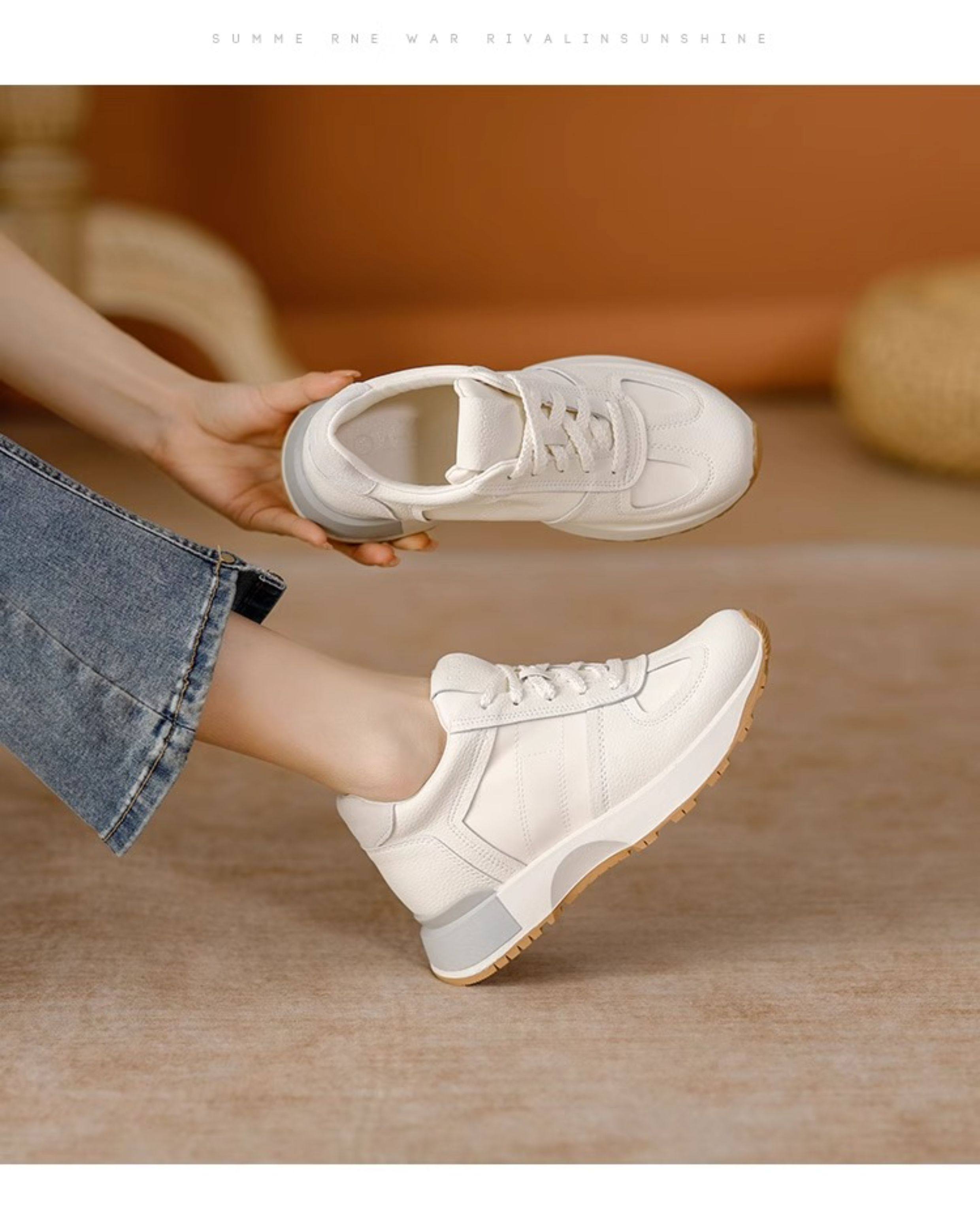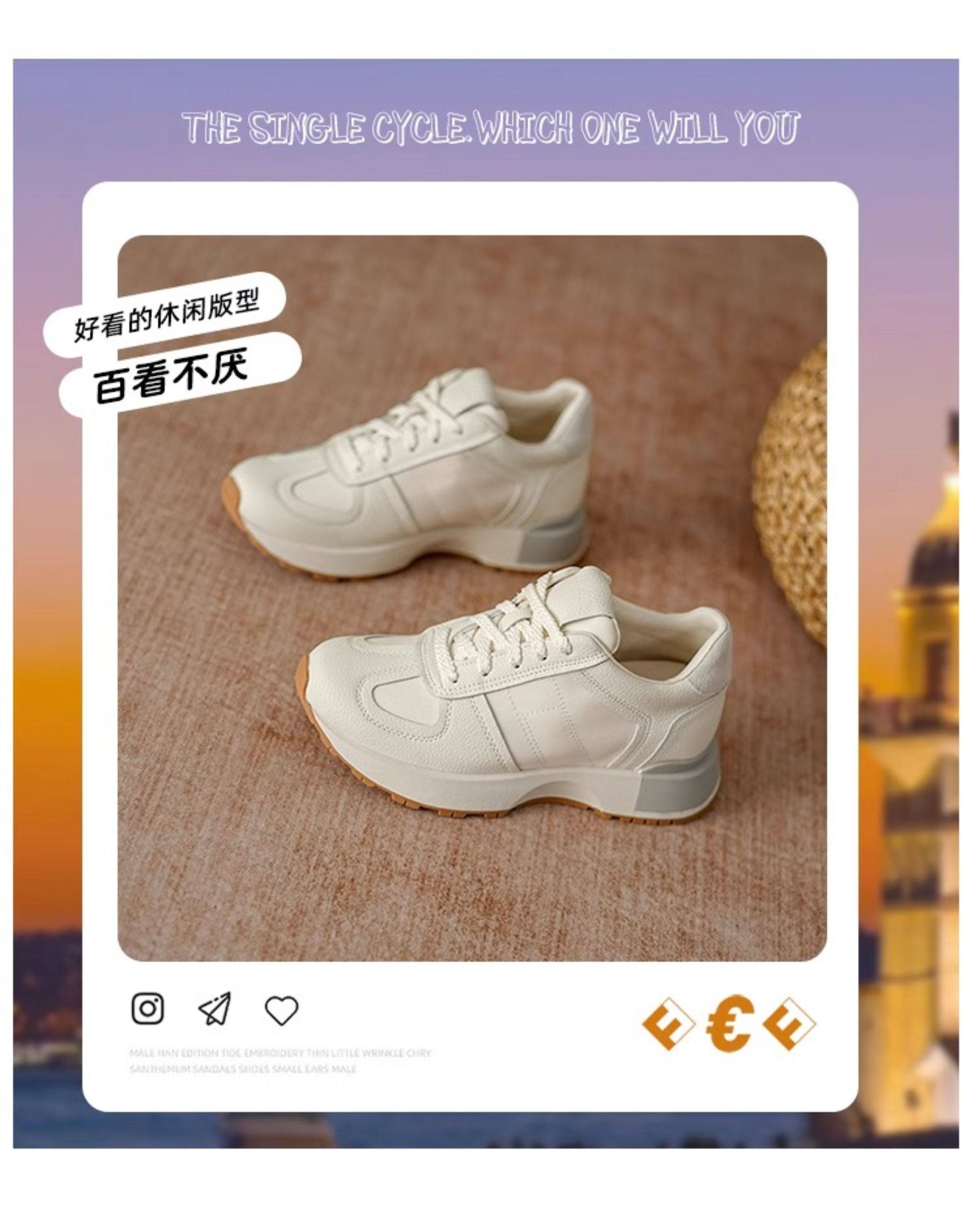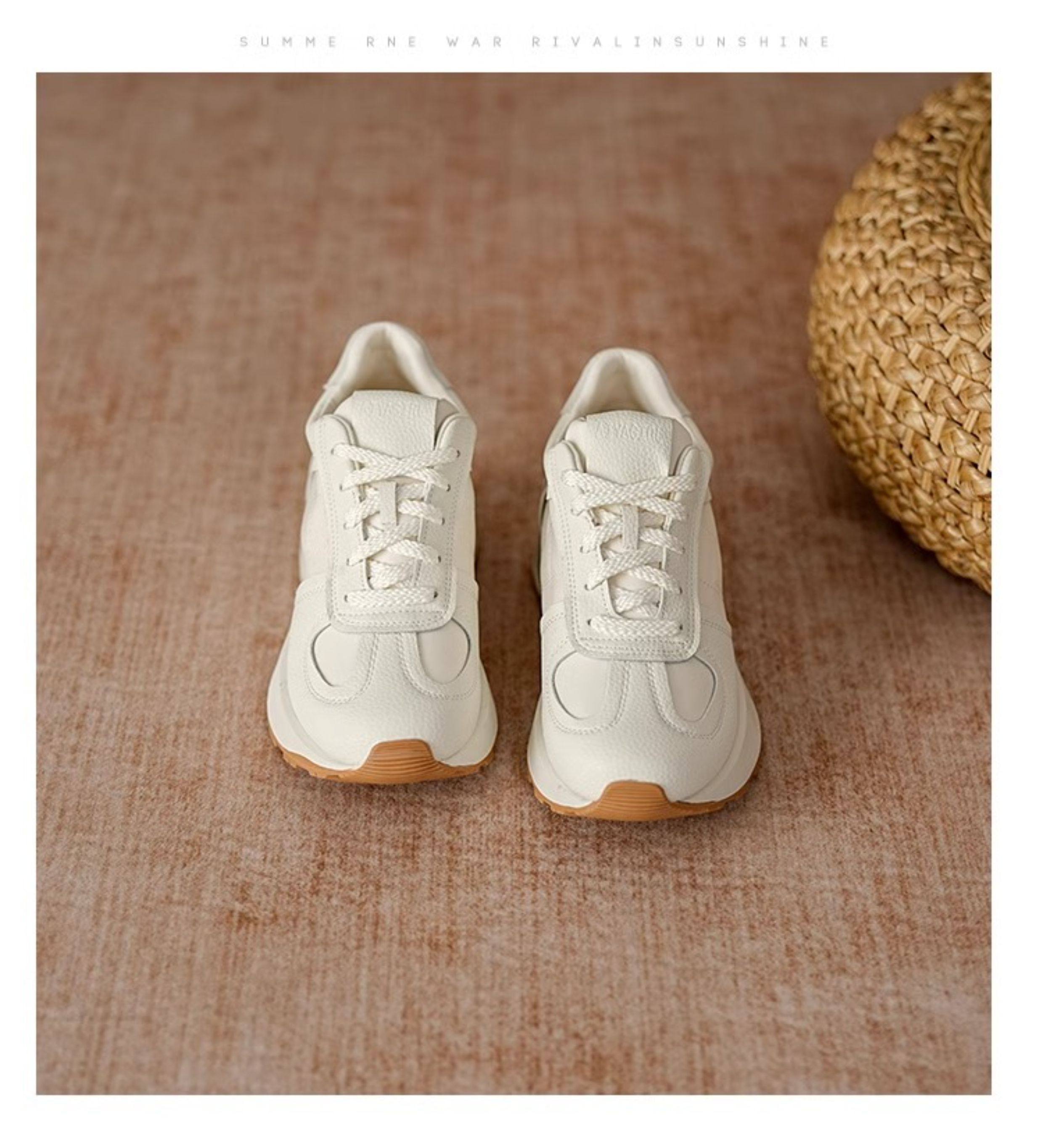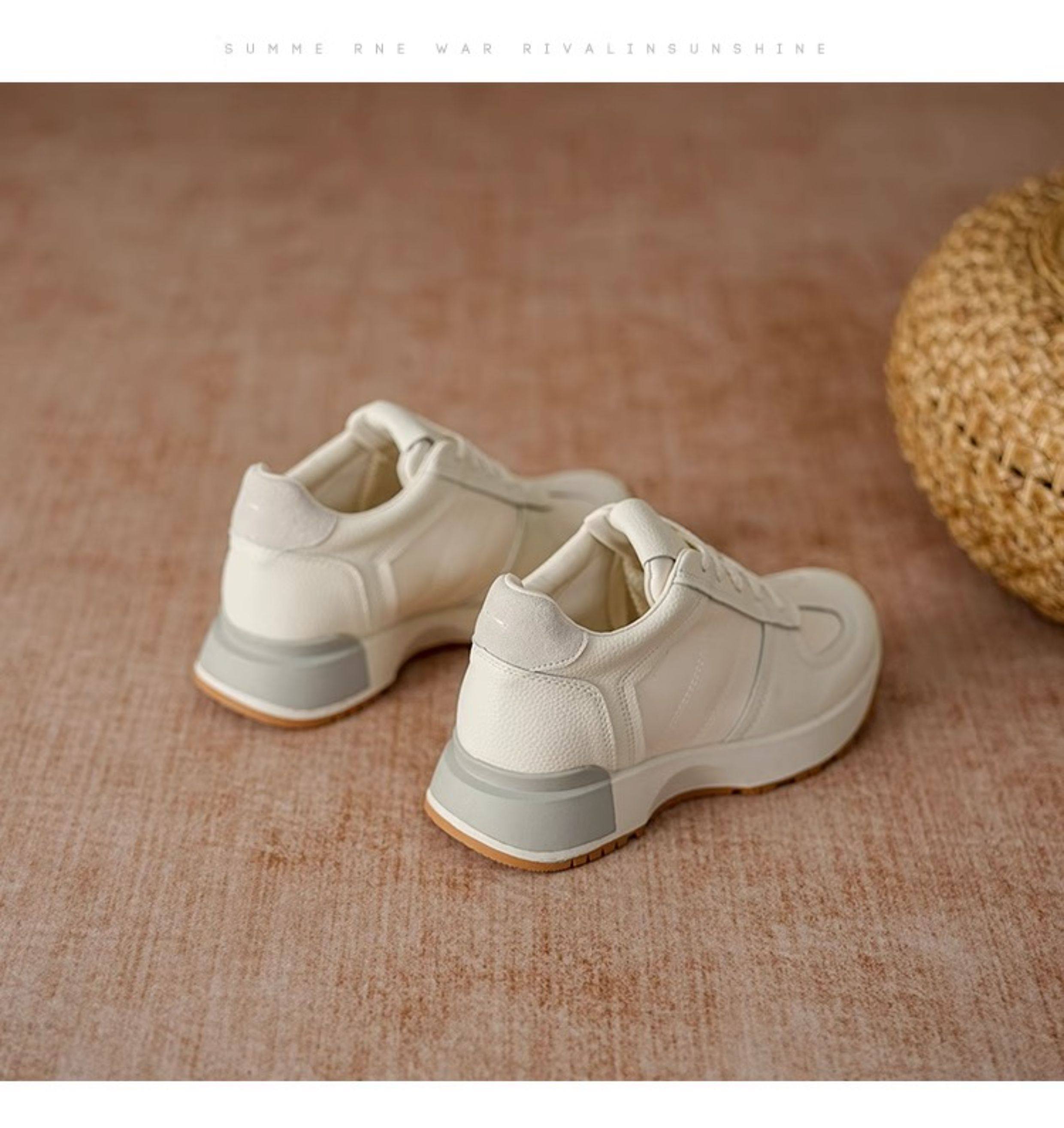 Hong Kong Genuine Leather Height-Increasing Training Shoes for Women 2025 Spring New Thick-Soled White Shoes Casual Sports Sneakers
