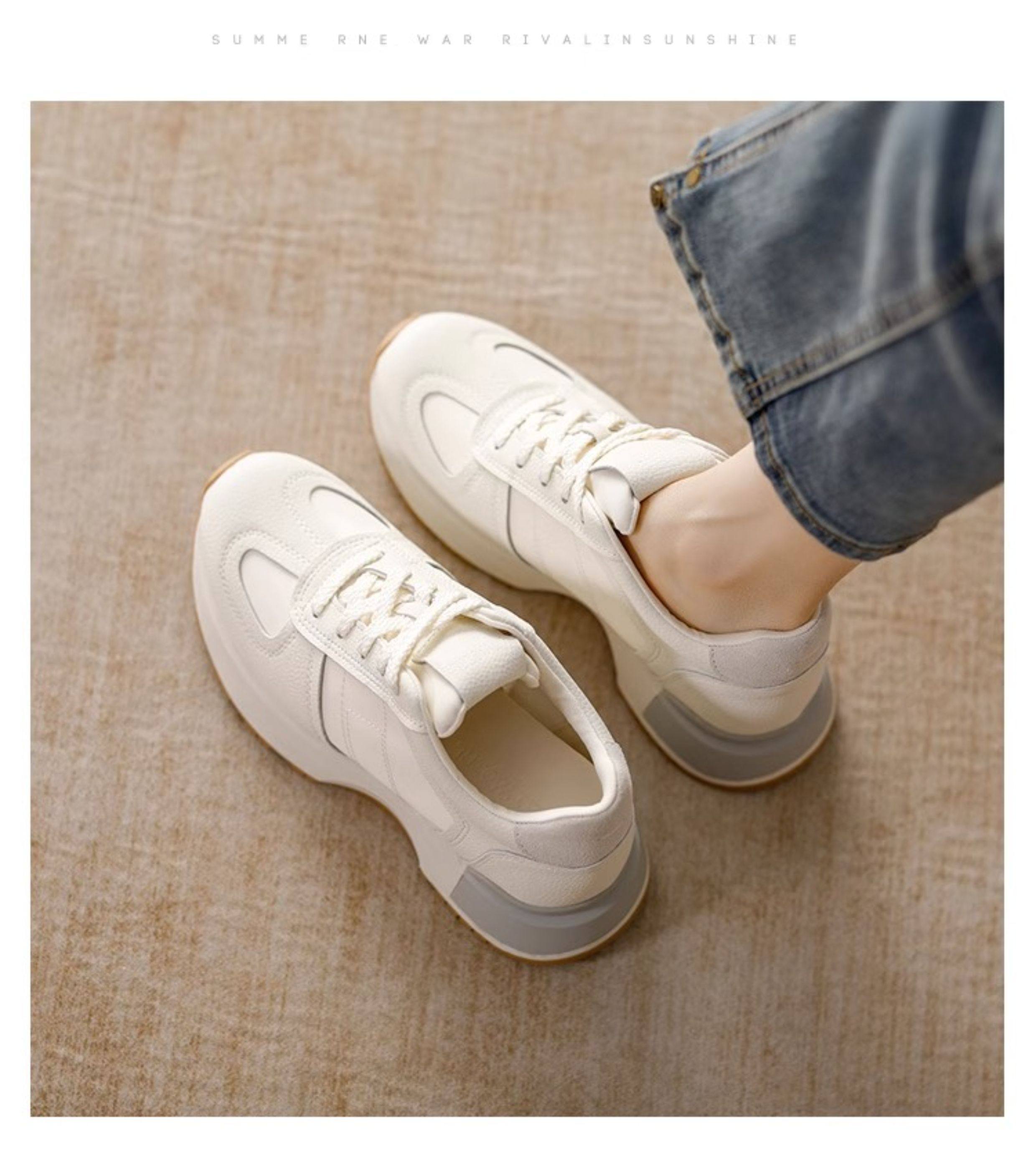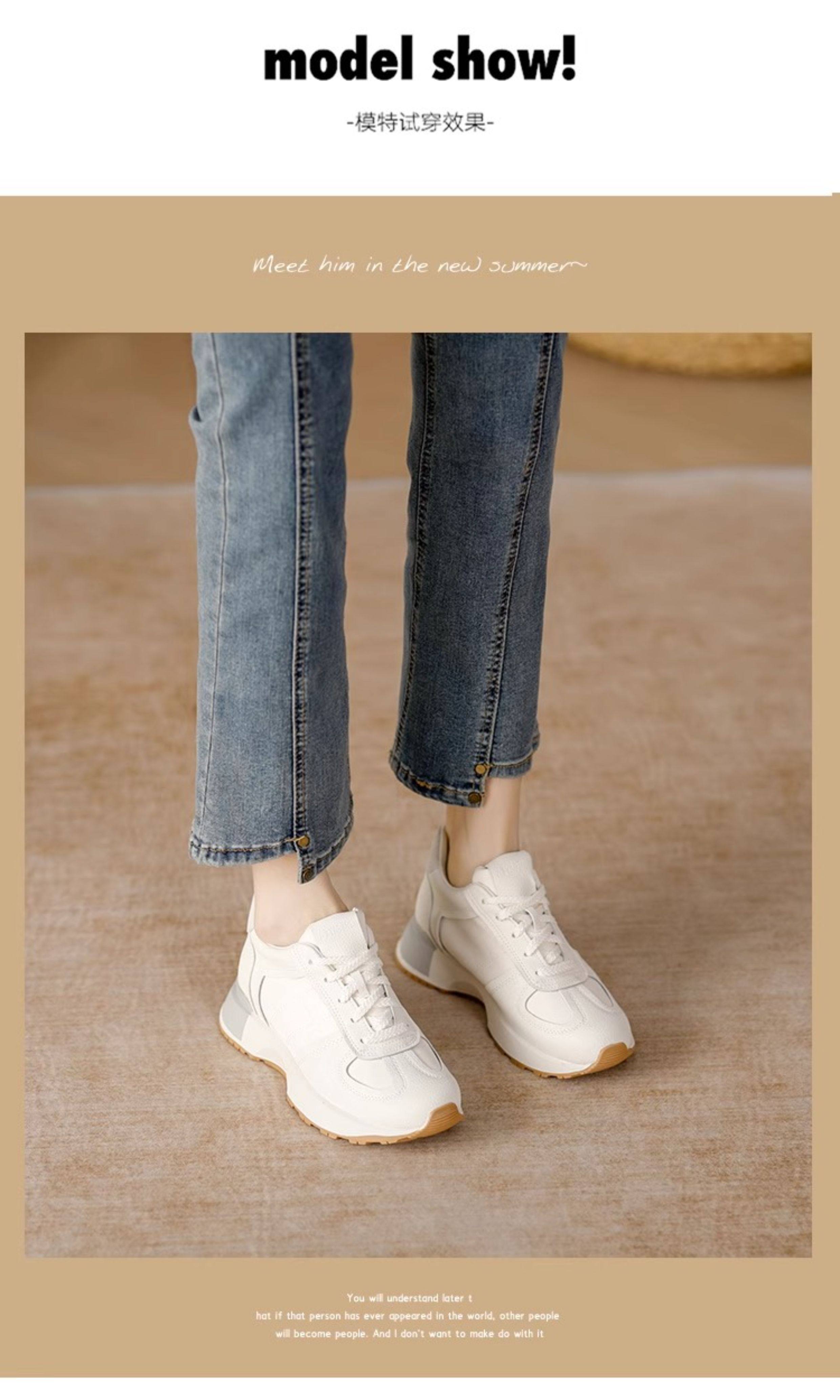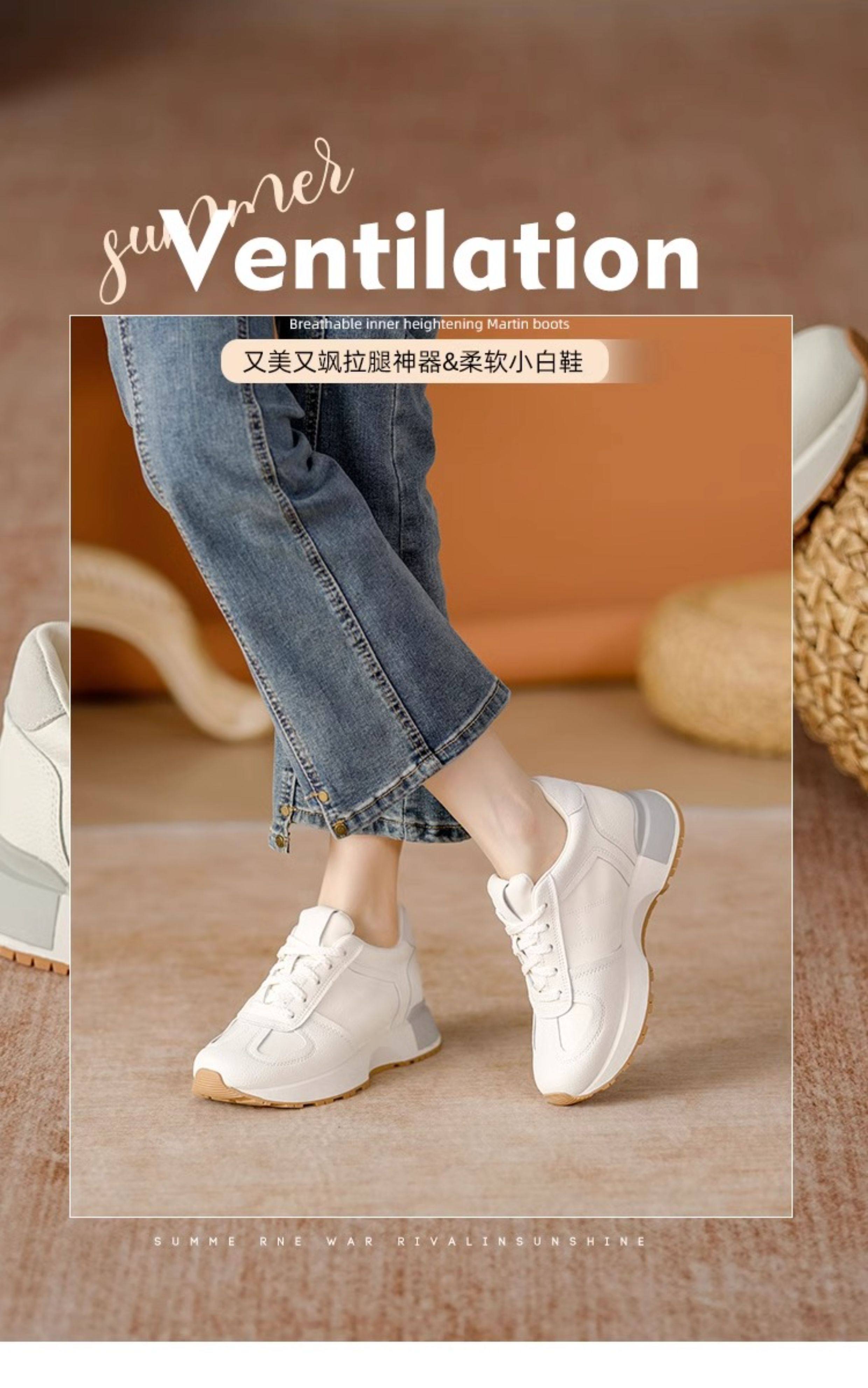 Hong Kong Genuine Leather Height-Increasing Training Shoes for Women 2025 Spring New Thick-Soled White Shoes Casual Sports Sneakers