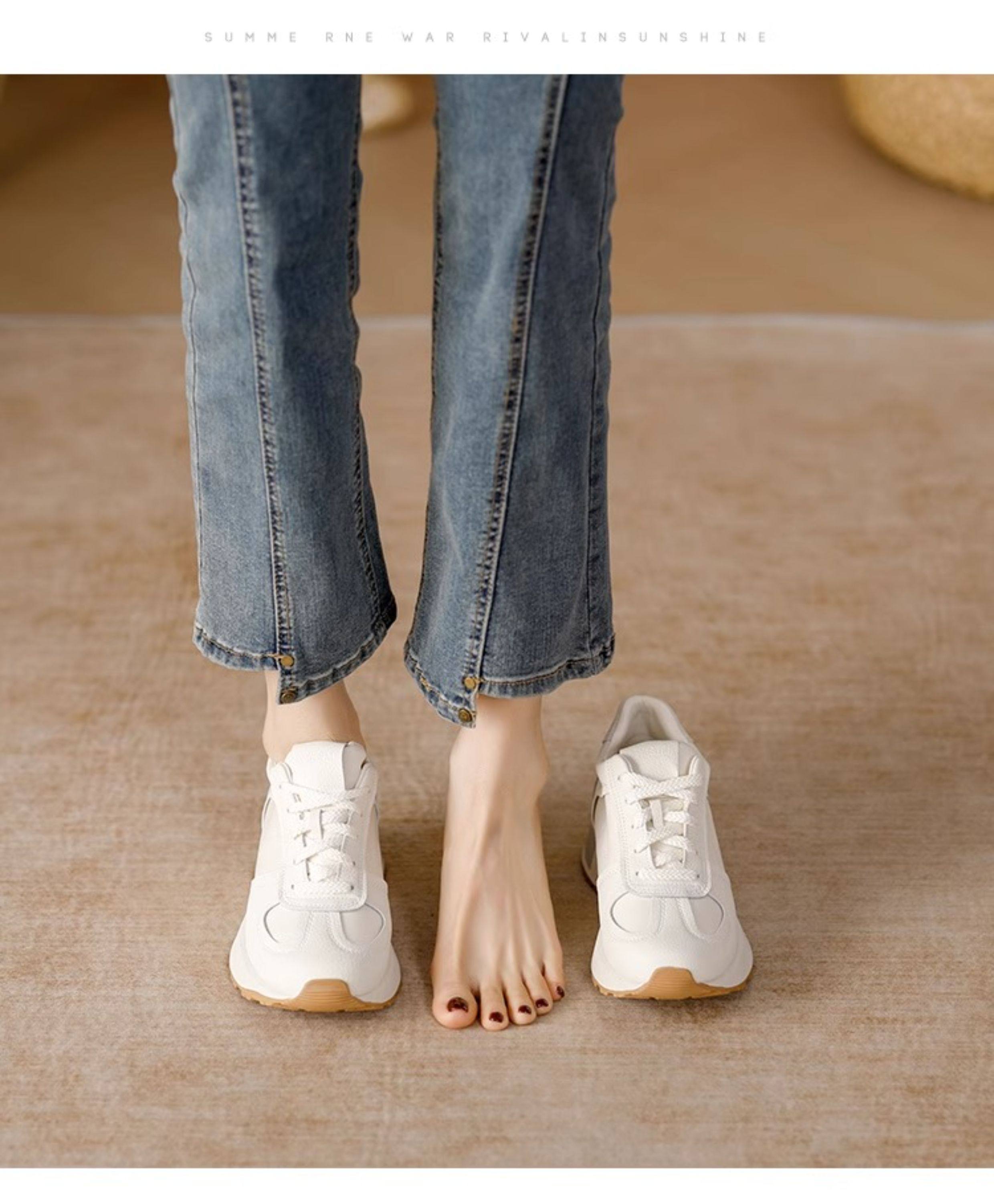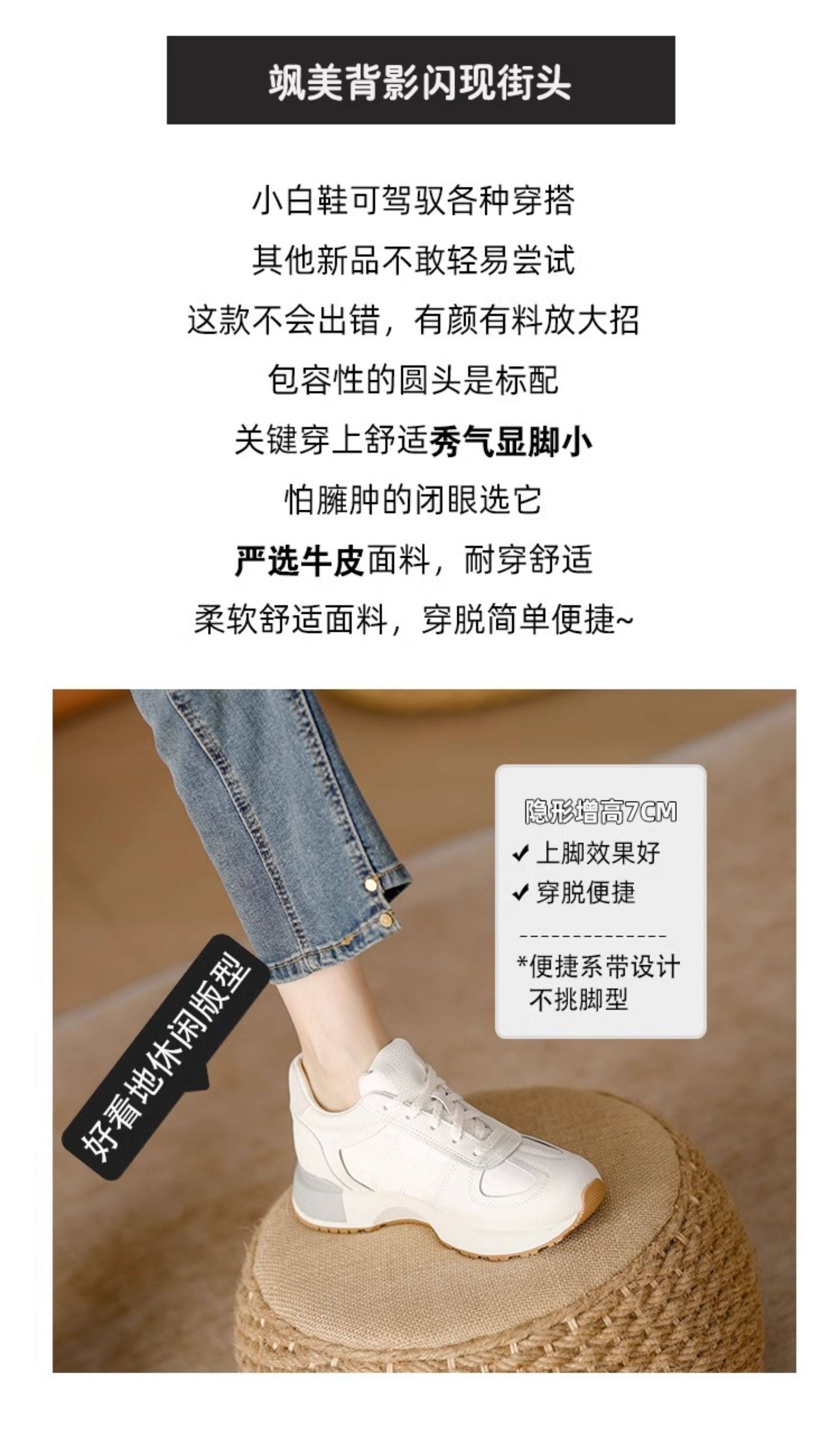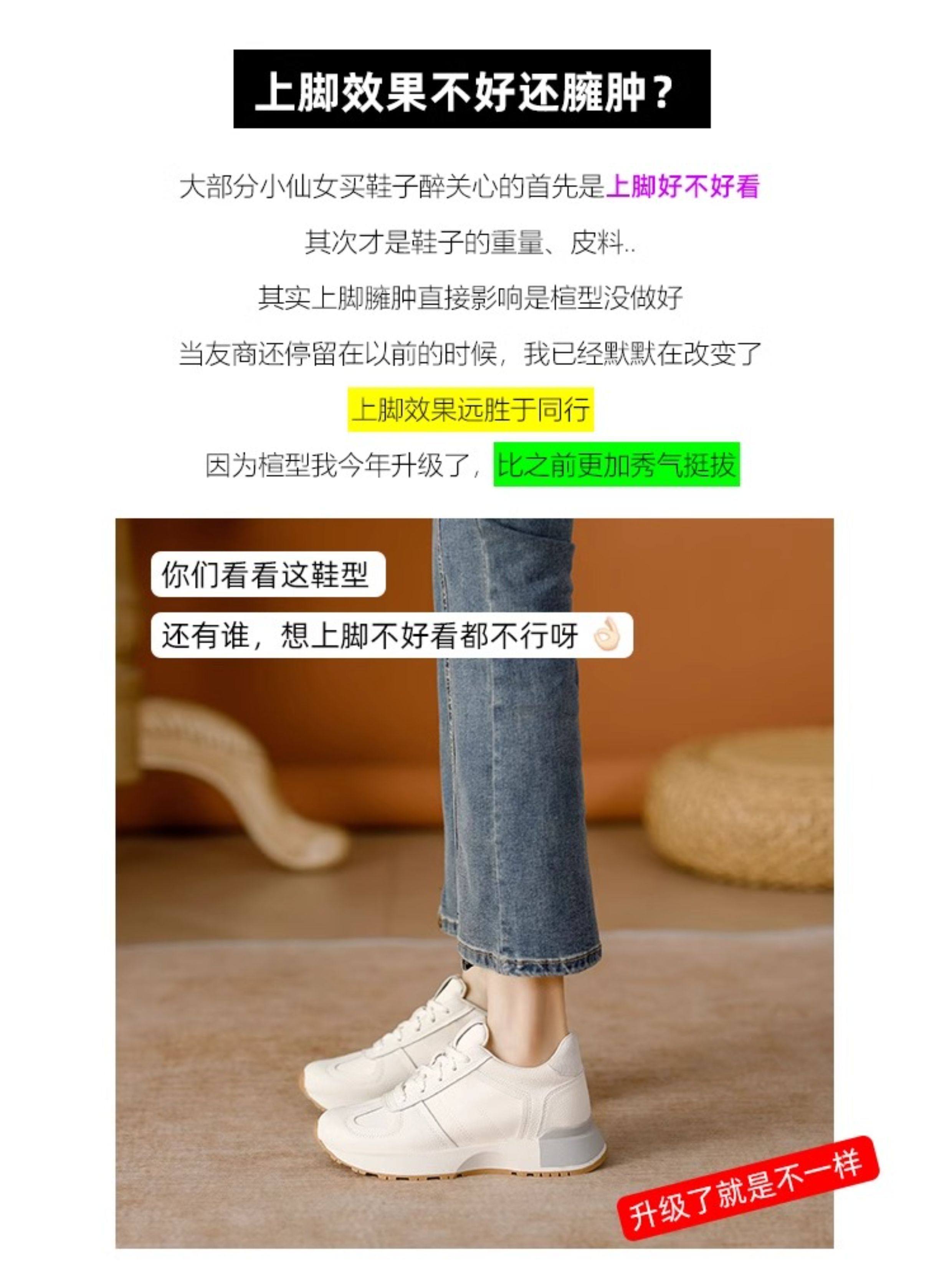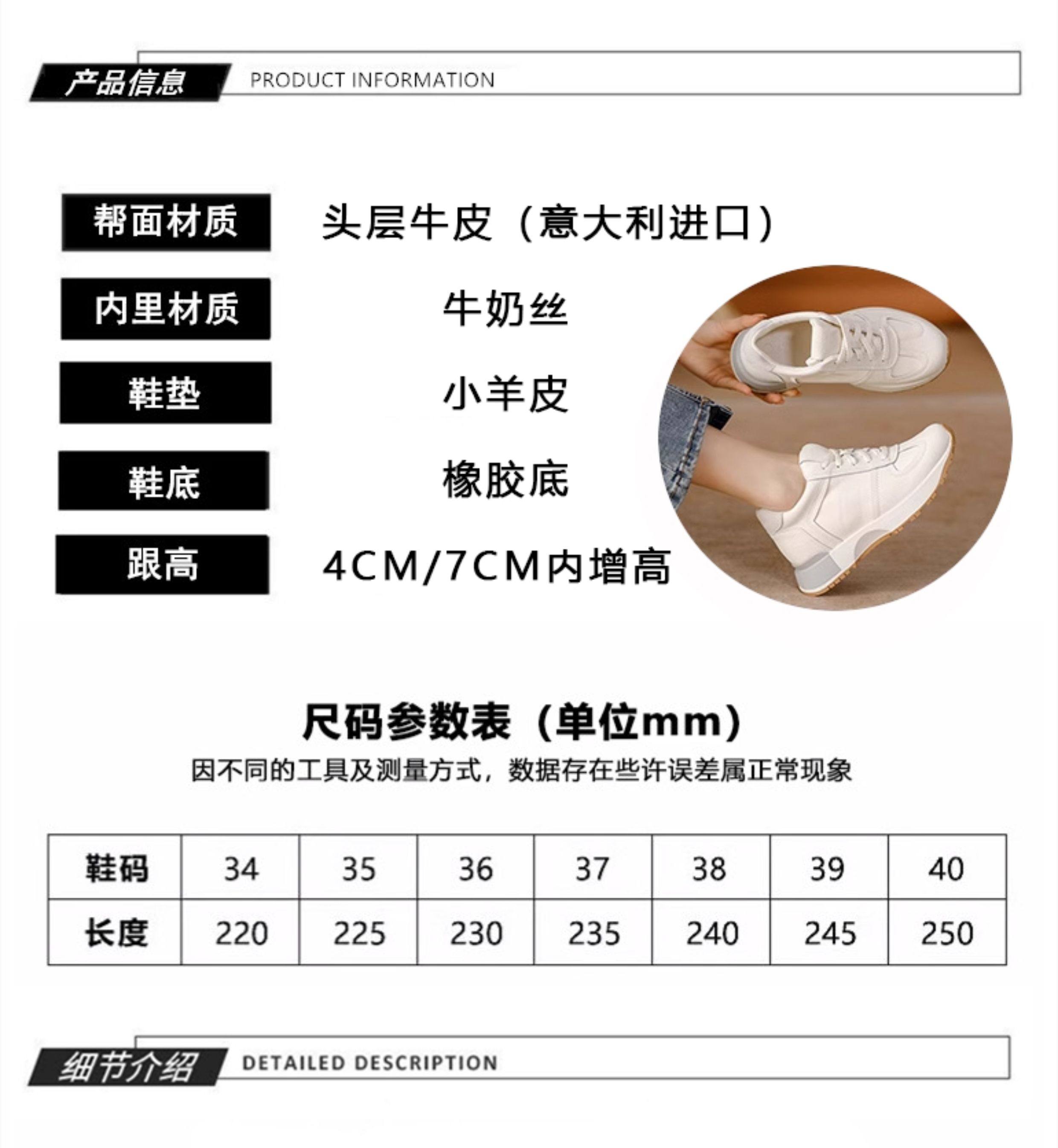 Hong Kong Genuine Leather Height-Increasing Training Shoes for Women 2025 Spring New Thick-Soled White Shoes Casual Sports Sneakers