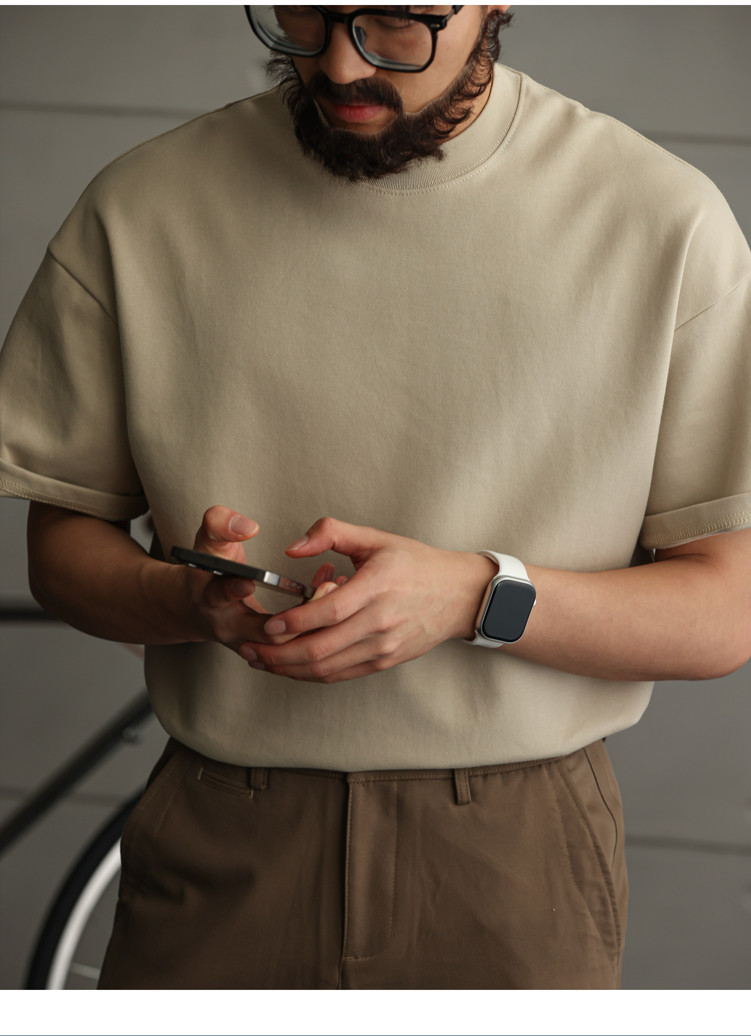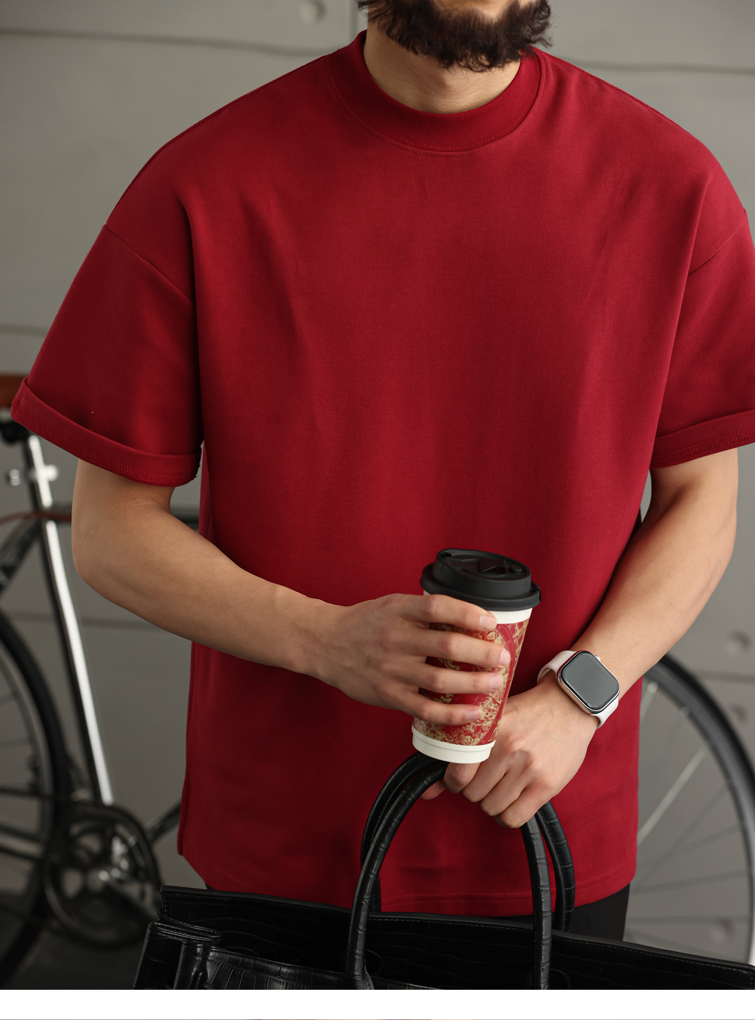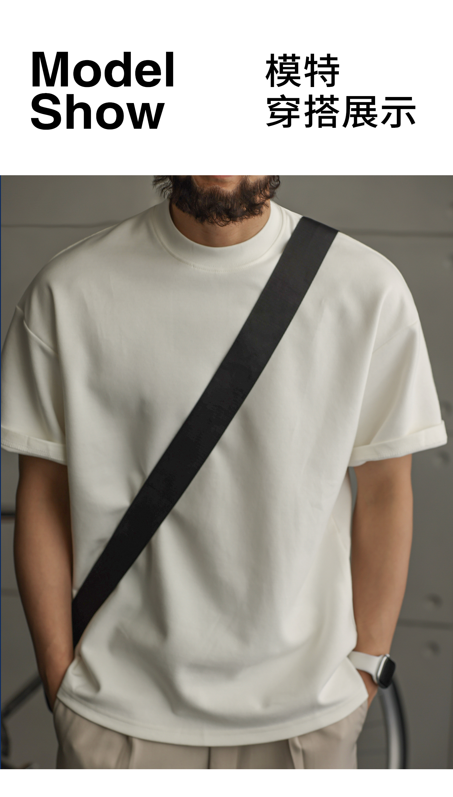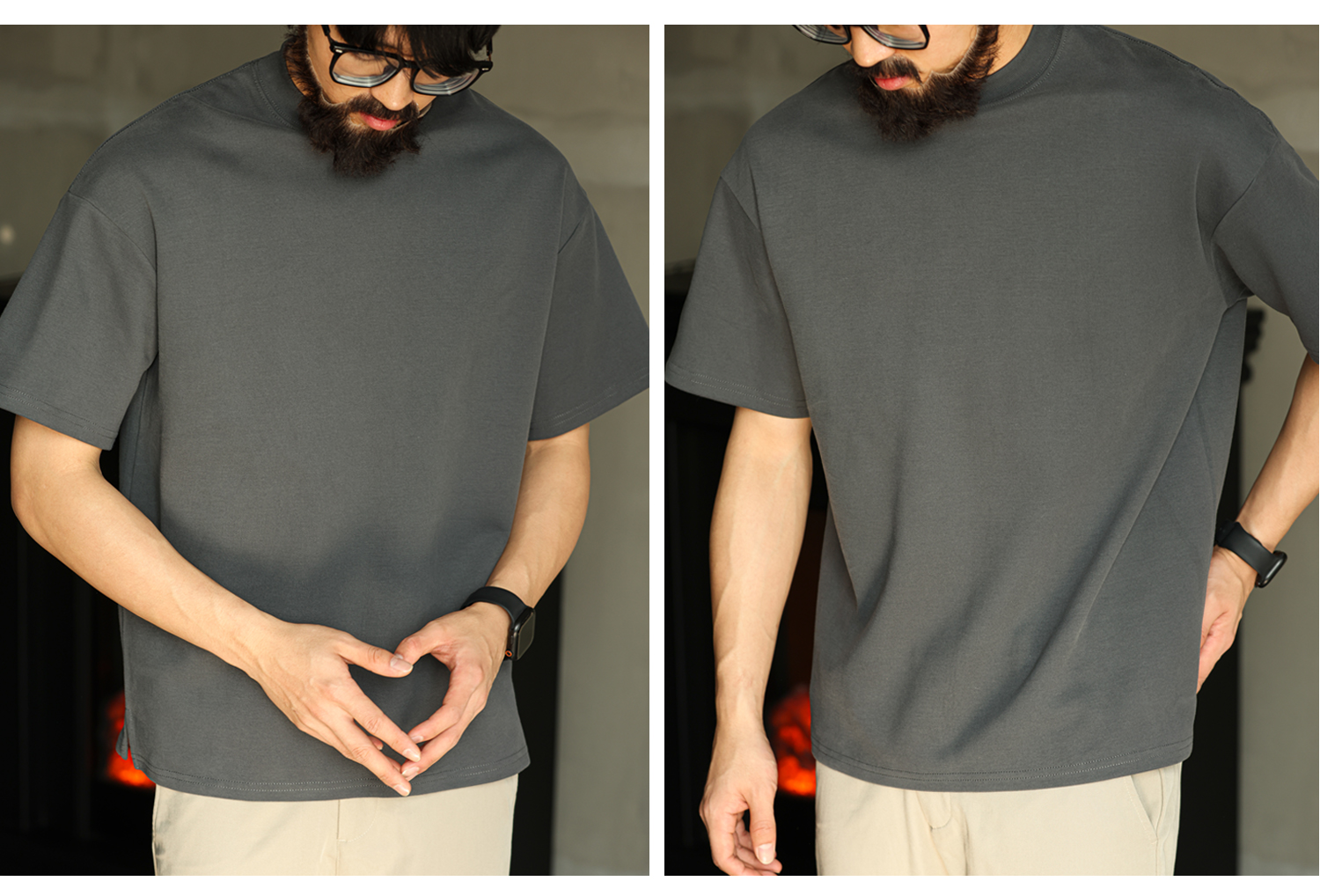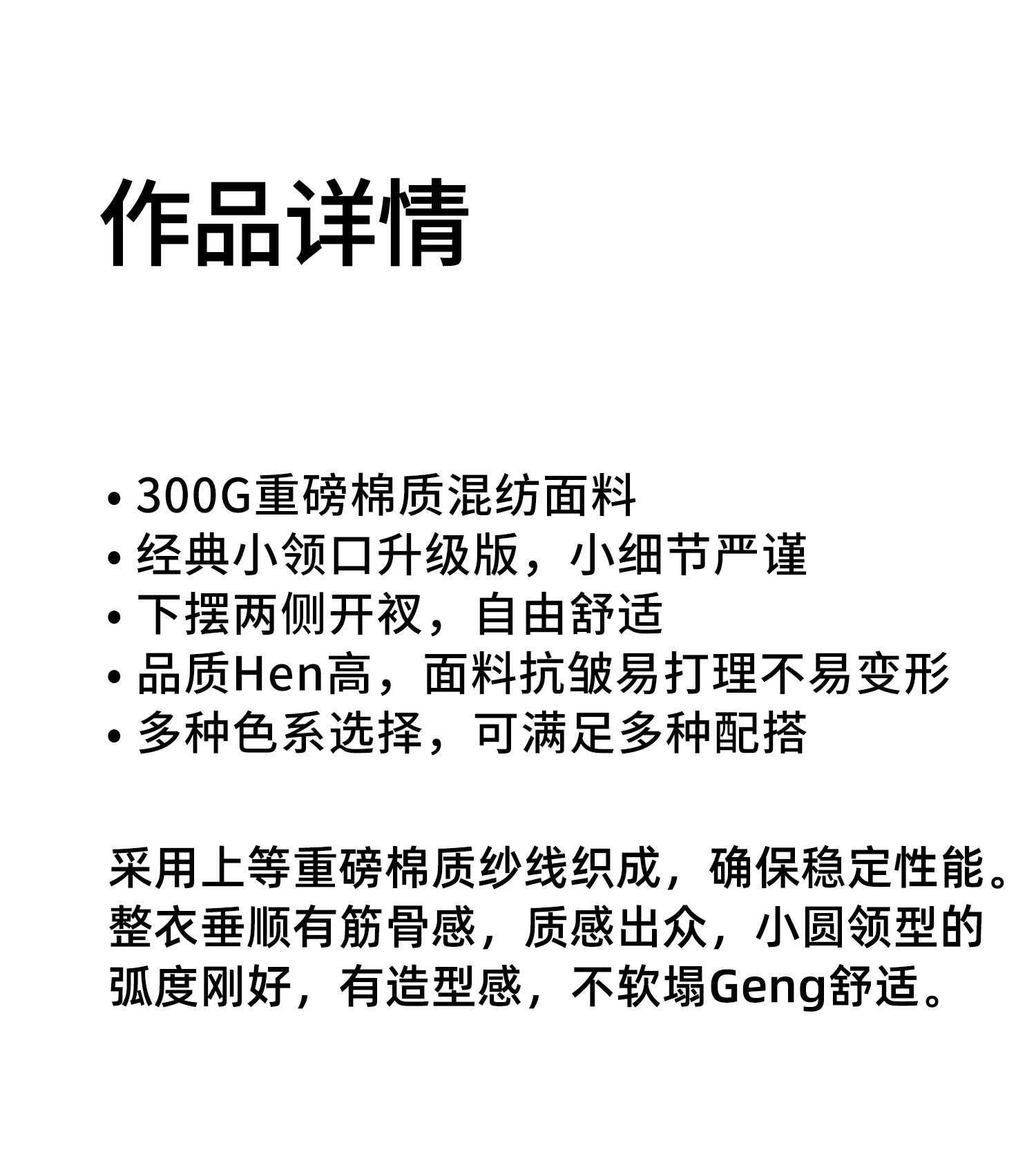Summer Loose-Fitting Small-Neck Short-Sleeve T-Shirt for Men, Heavyweight 300g Solid Color Wrinkle-Resistant Half-Sleeve Five-Point T-Shirt with a Half-High Collar