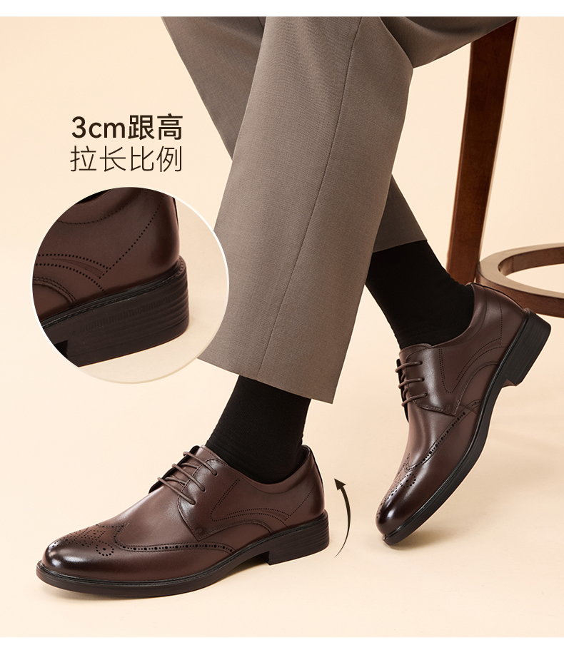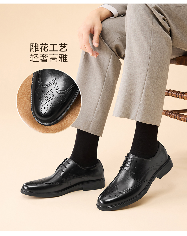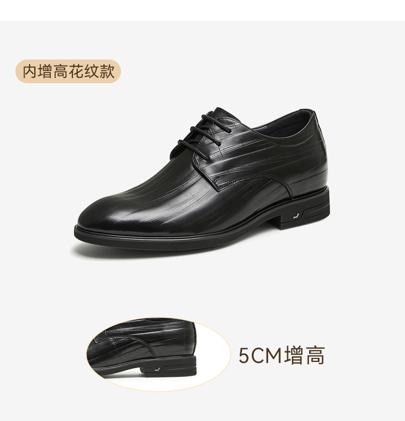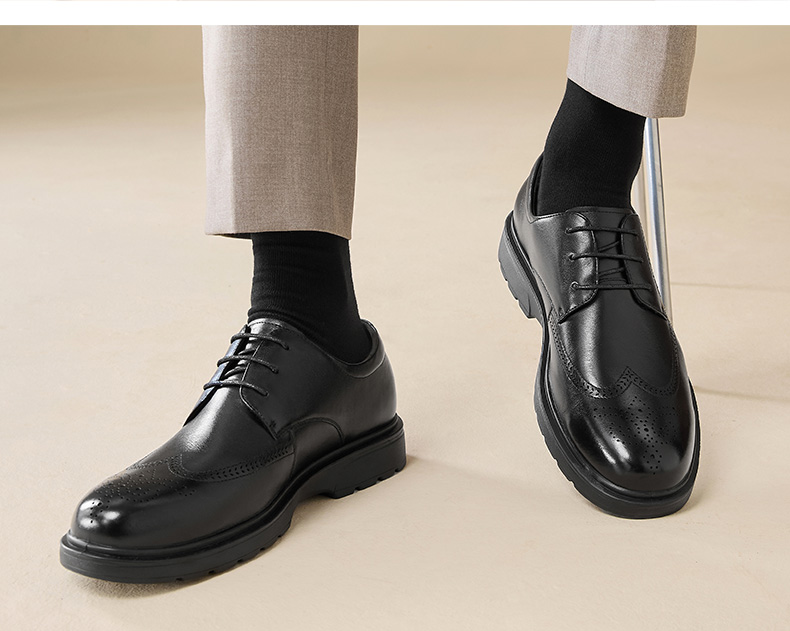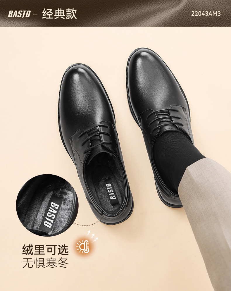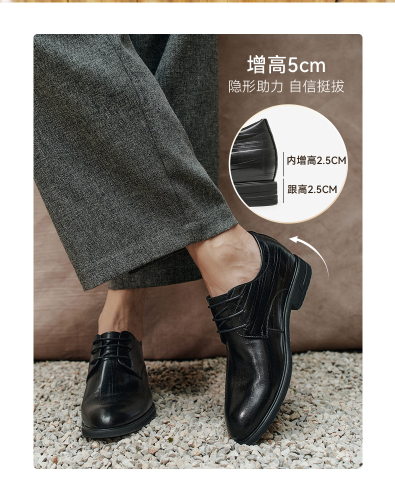 Bestu Winter Men's Leather Shoes with Fleece Lining, Height Increasing, Business Formal Oxford Leather Shoes, Groom Wedding Shoes 22043Am3