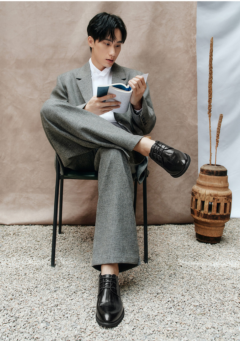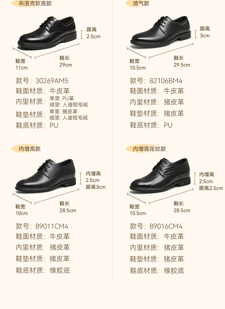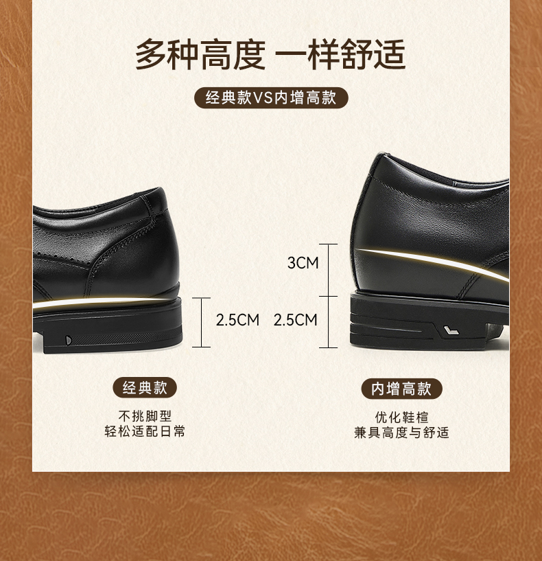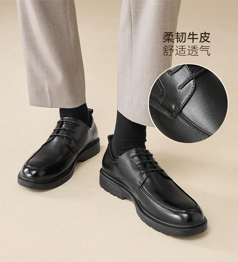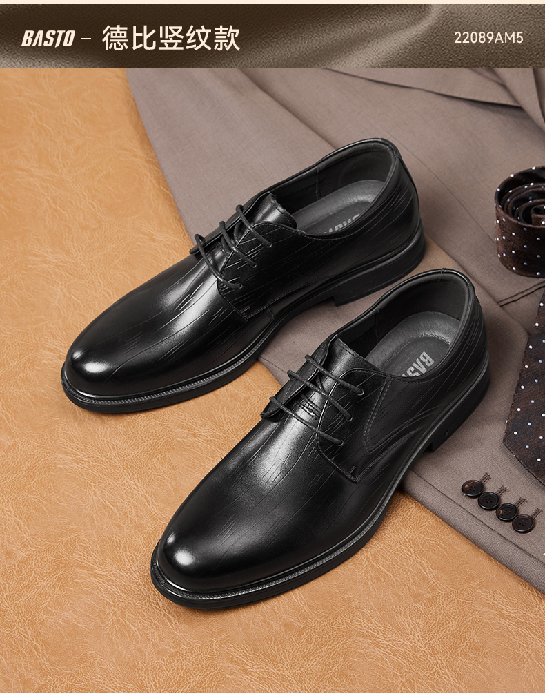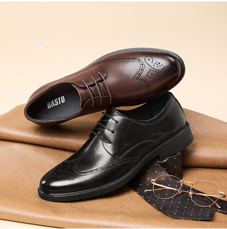 Bestu Winter Men's Leather Shoes with Fleece Lining, Height Increasing, Business Formal Oxford Leather Shoes, Groom Wedding Shoes 22043Am3