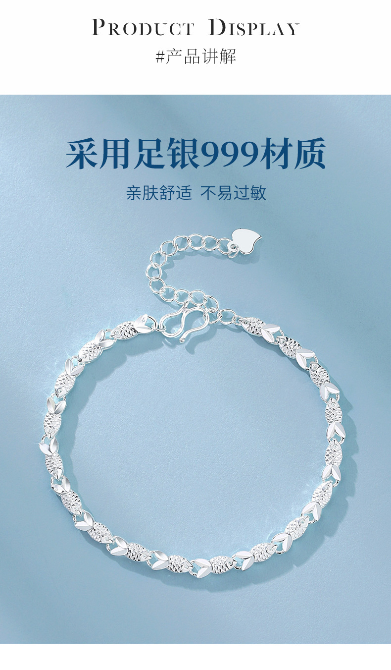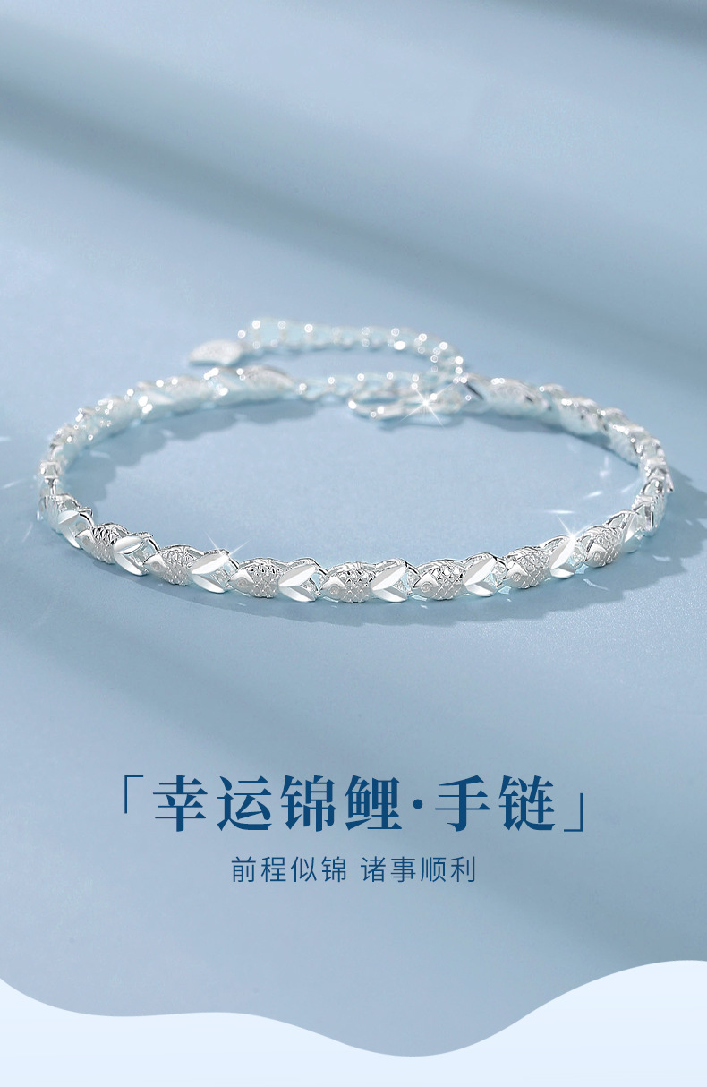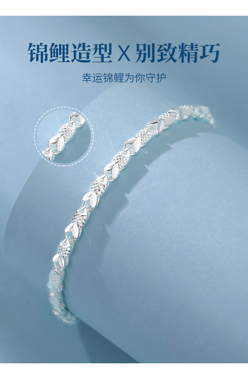 999 Pure Silver Koi Bracelet for Women, Sterling Silver, Light Luxury, Niche, High-End Feel, Engraved, Birthday Gift for Best Friend or Girlfriend