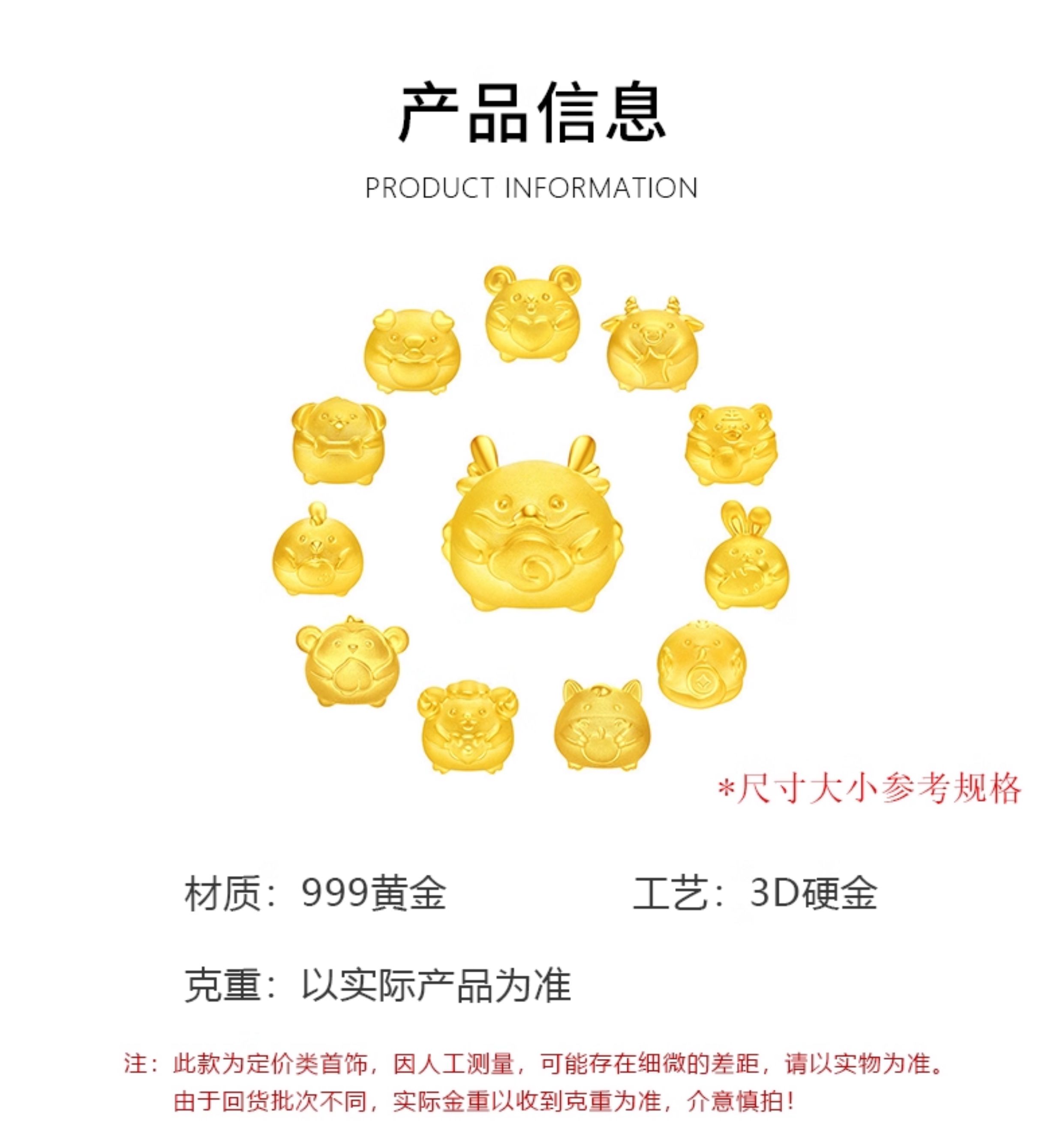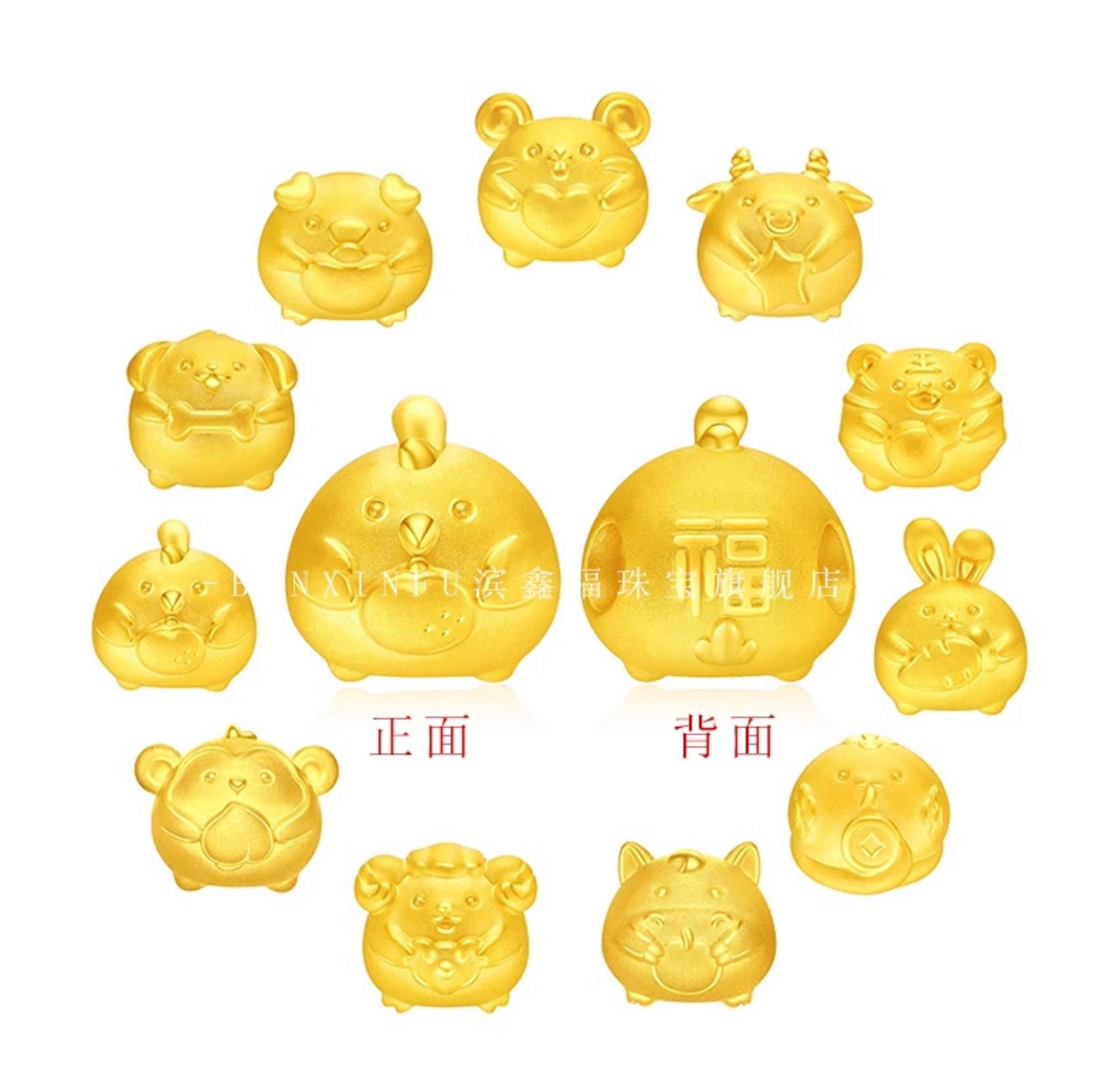 999 gold twelve Zodiac Bracelet Gold transfer bead baby lucky zodiac snake Rabbit Dragon Horse Sheep Monkey chicken dog Pig