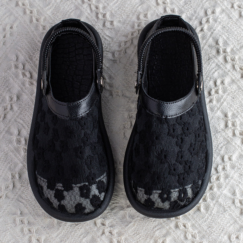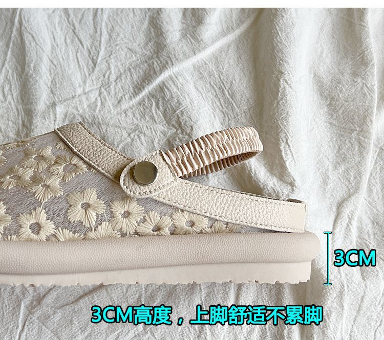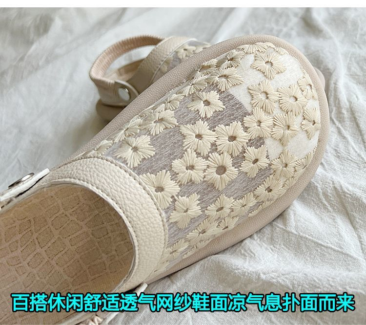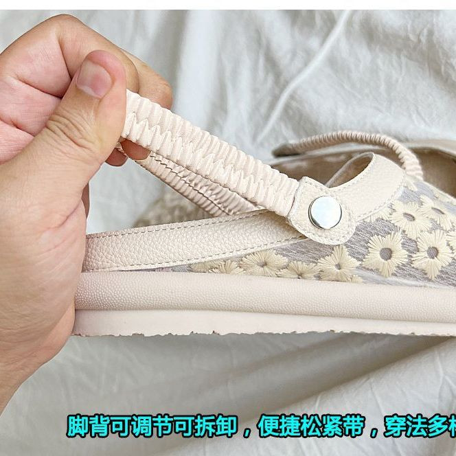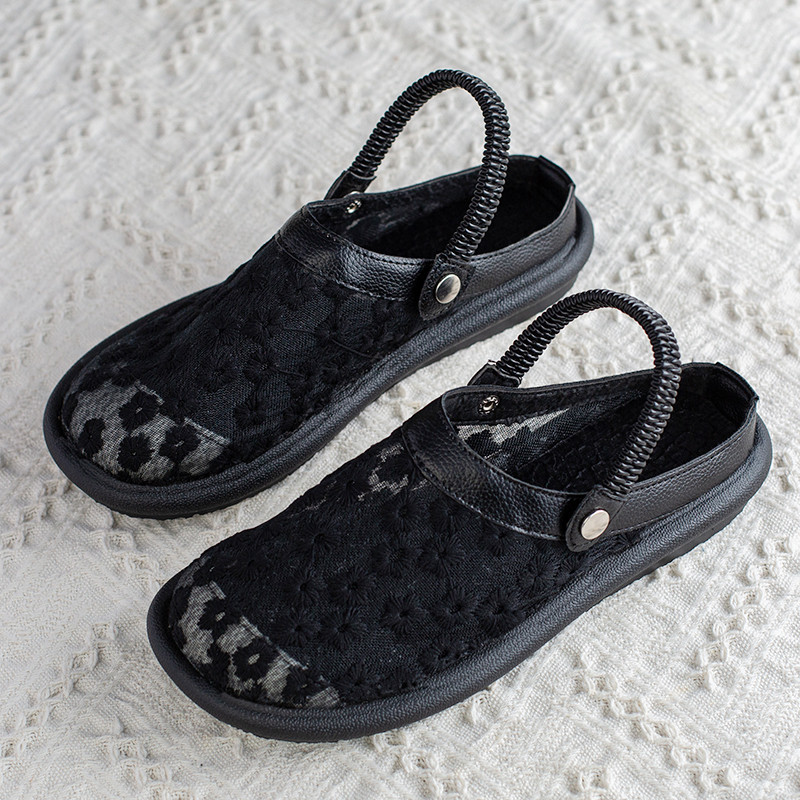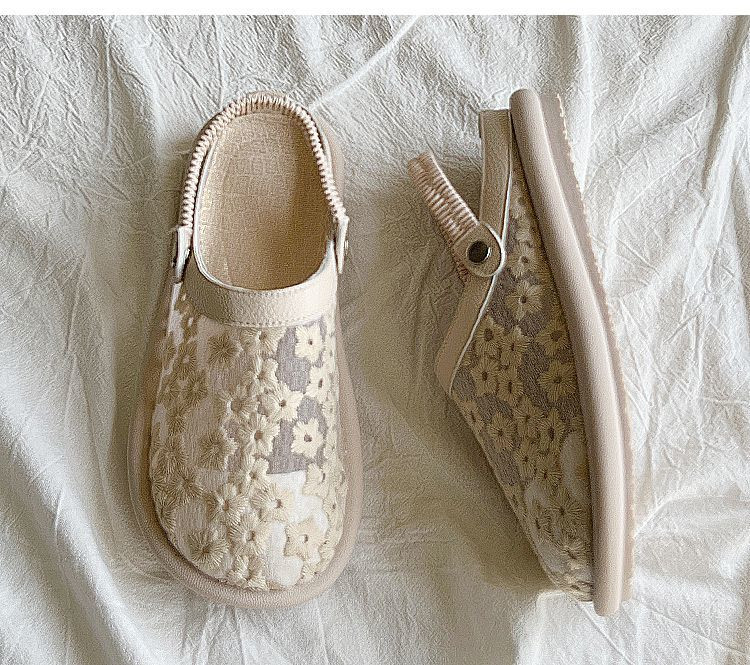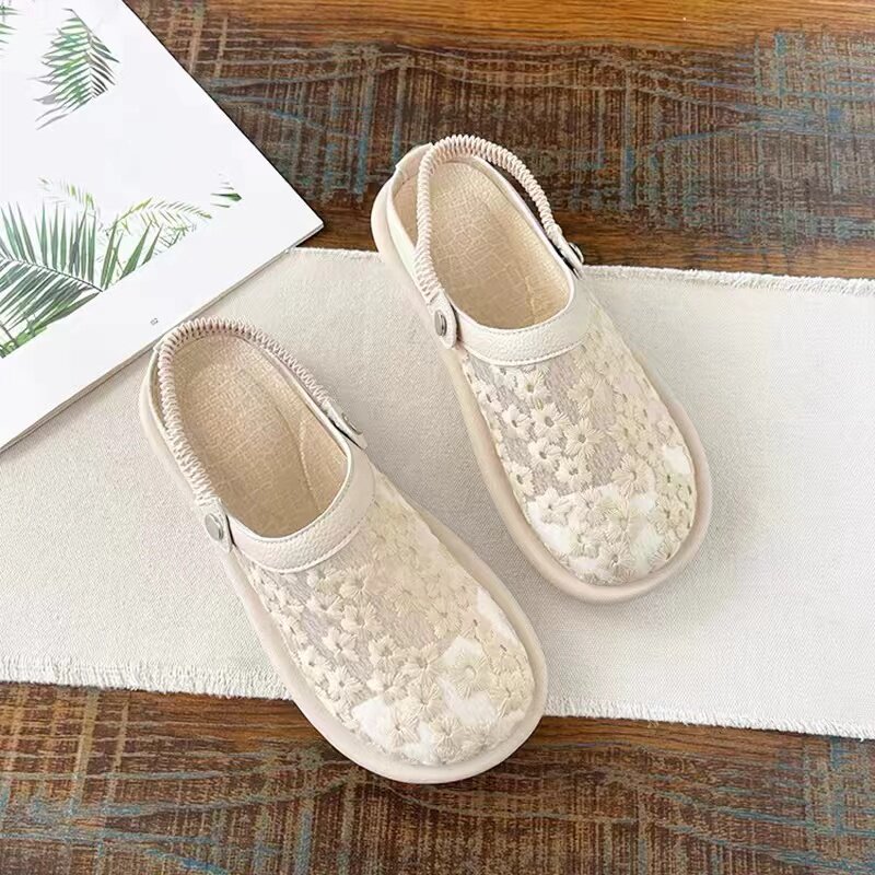 2024 Summer New Japanese Style Two-Way Closed-Toe Sandals Lace Breathable Soft Sole Casual Versatile Hollow-Out Slippers