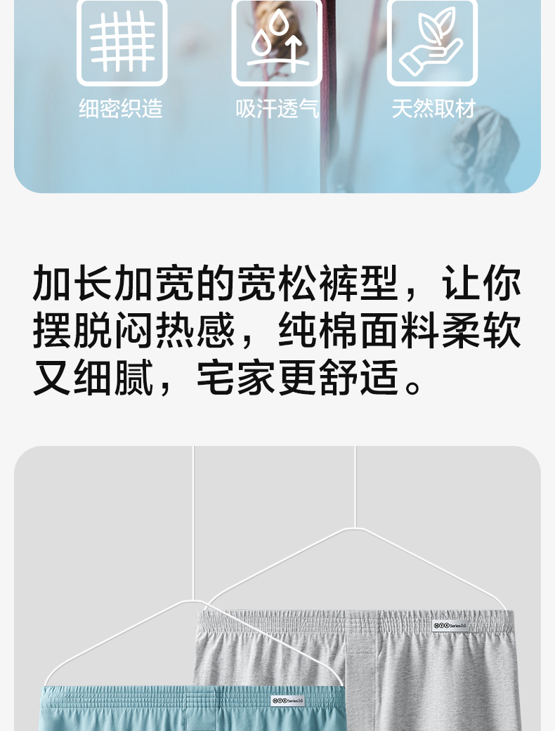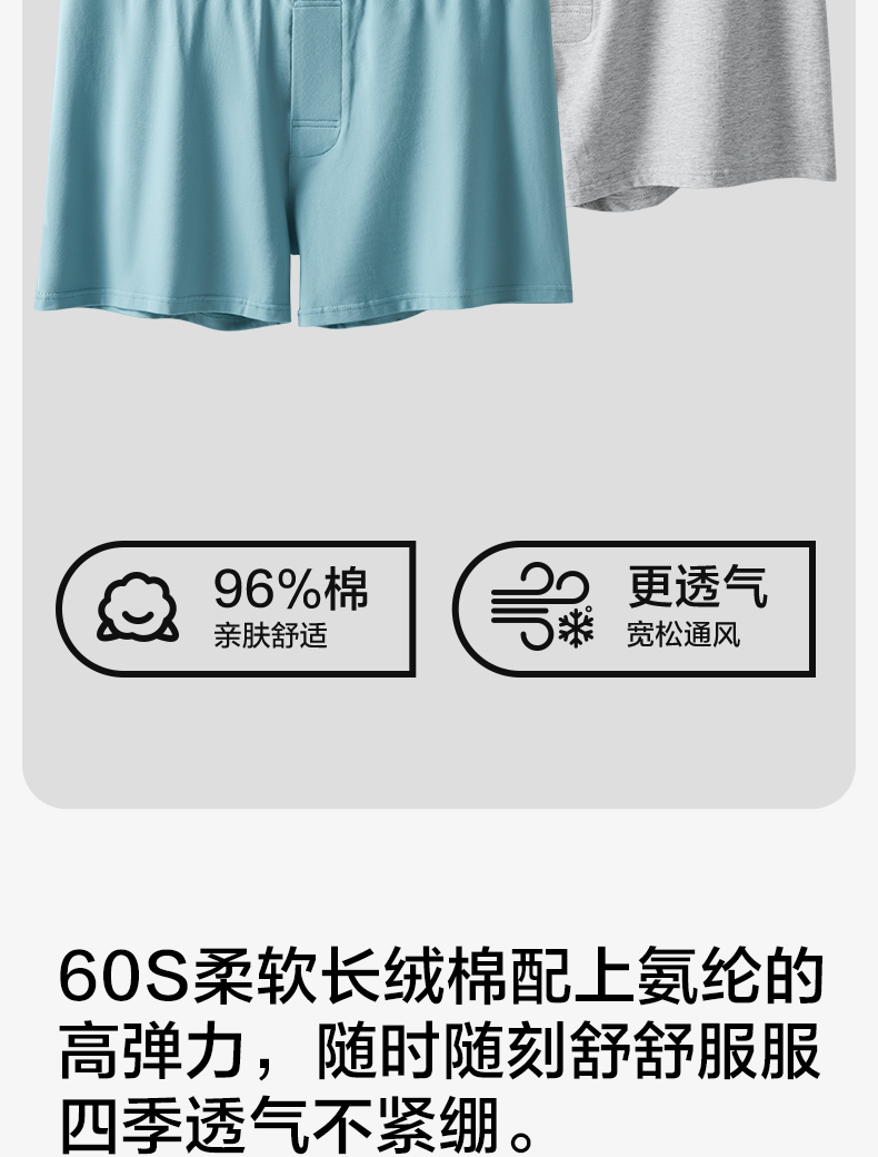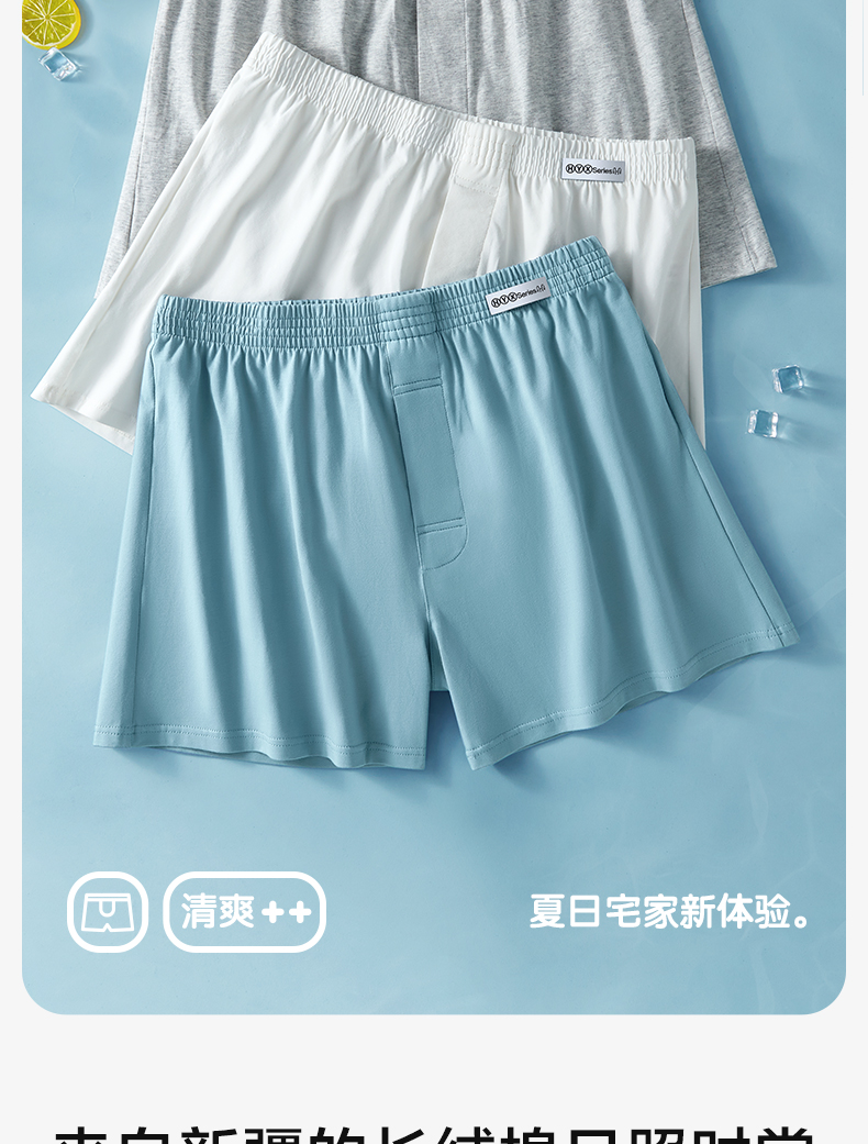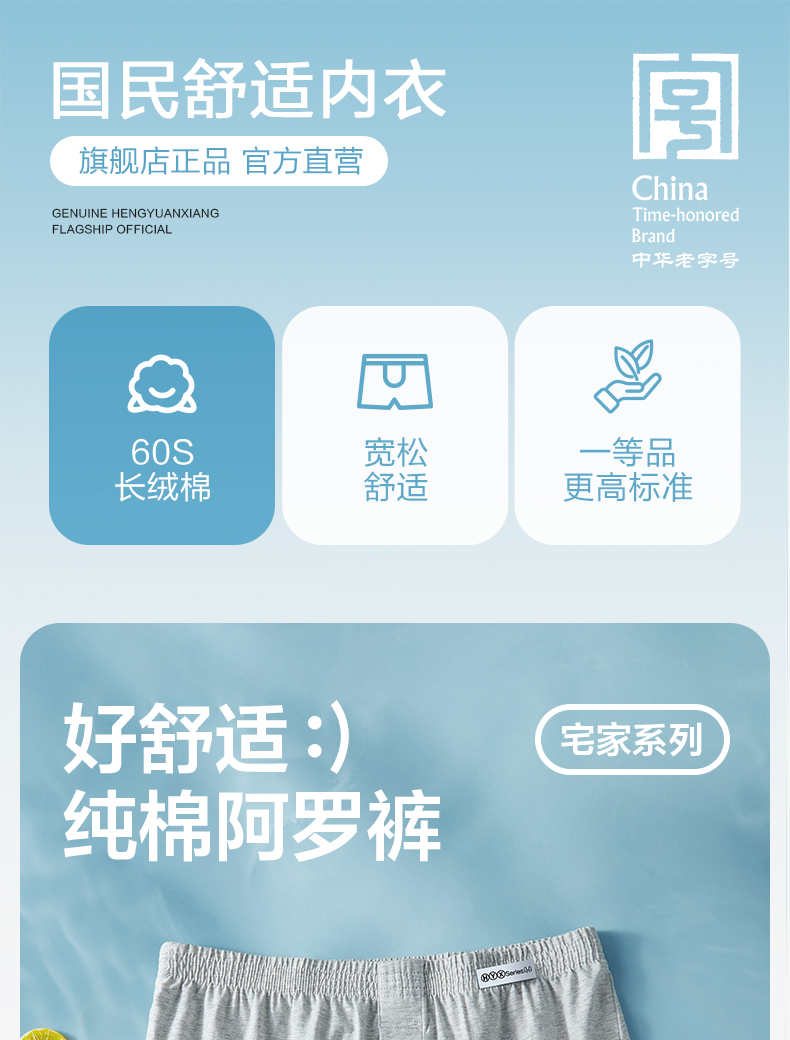 Hengyuanxiang Men's Pure Cotton Boxer Briefs, Home Wear, Summer, Loose, Breathable, Large Size, Square-Leg Underwear
