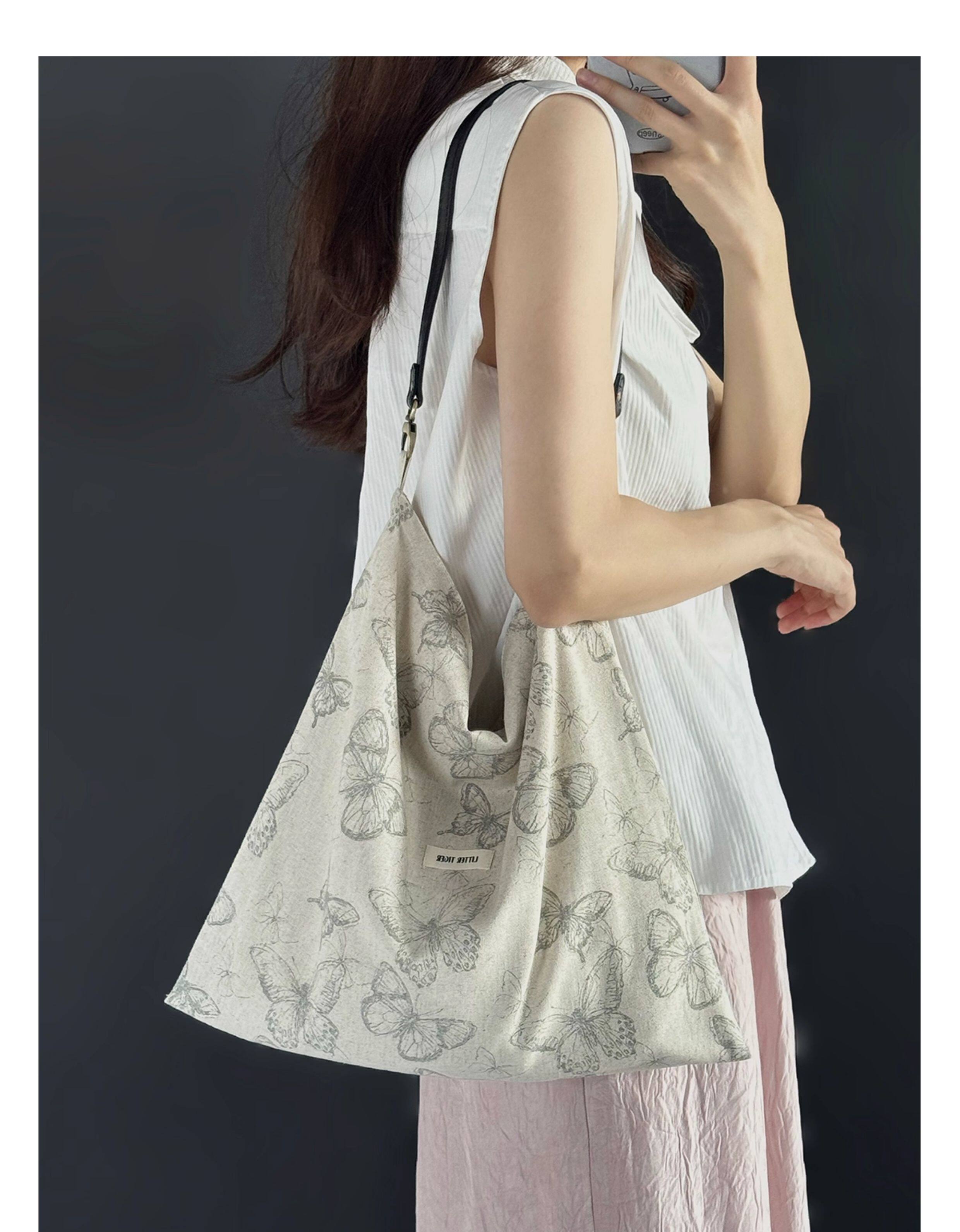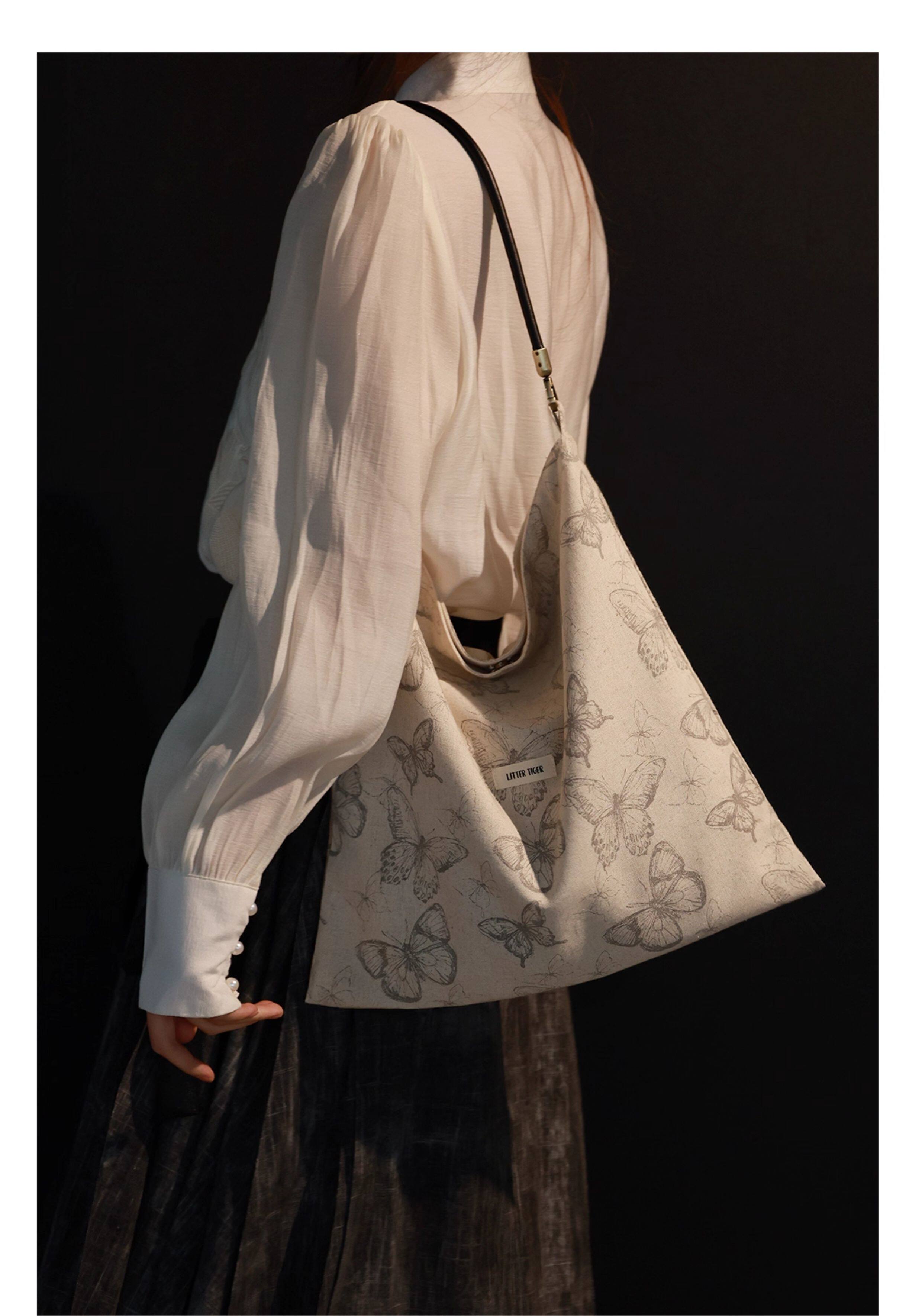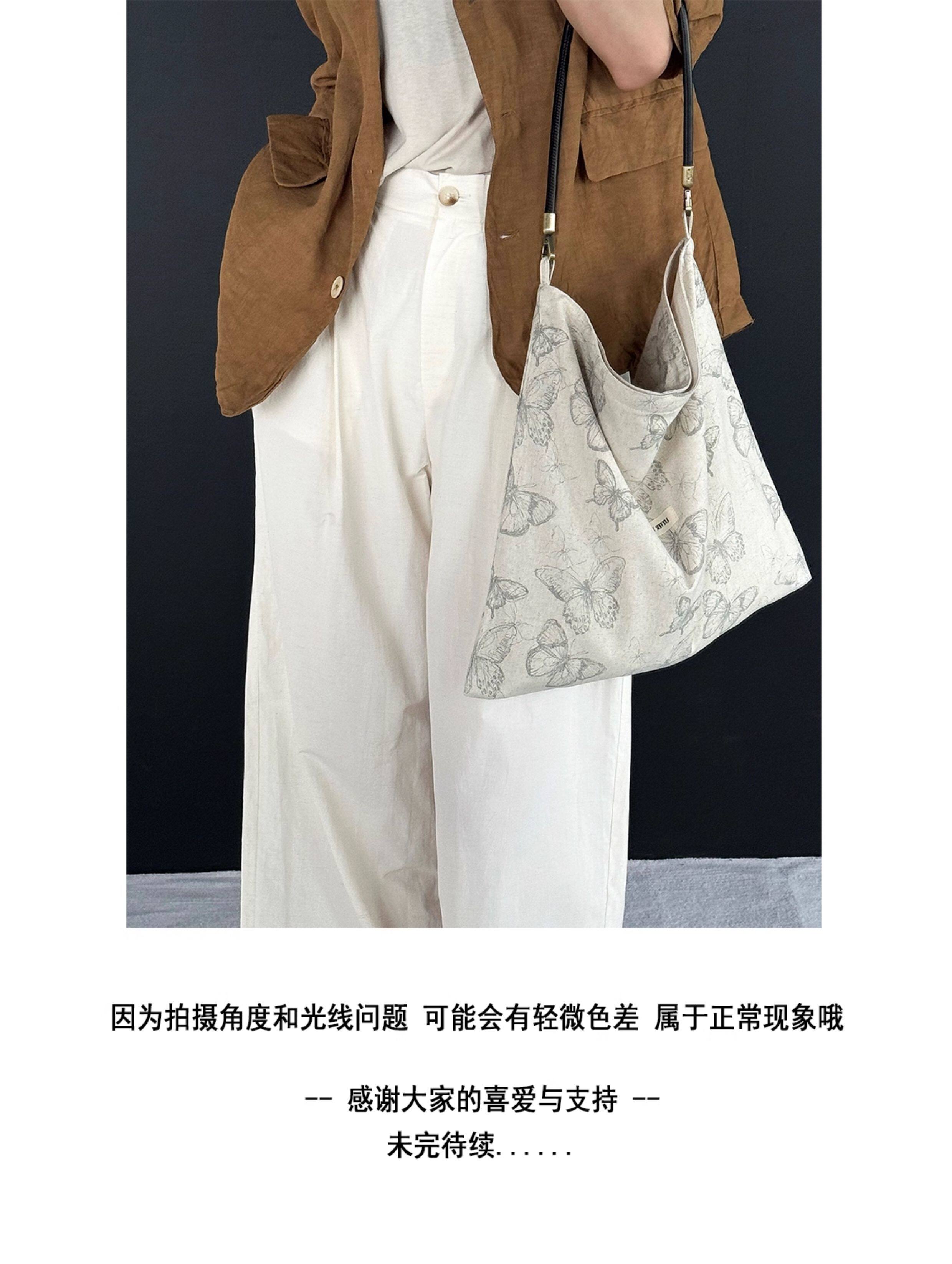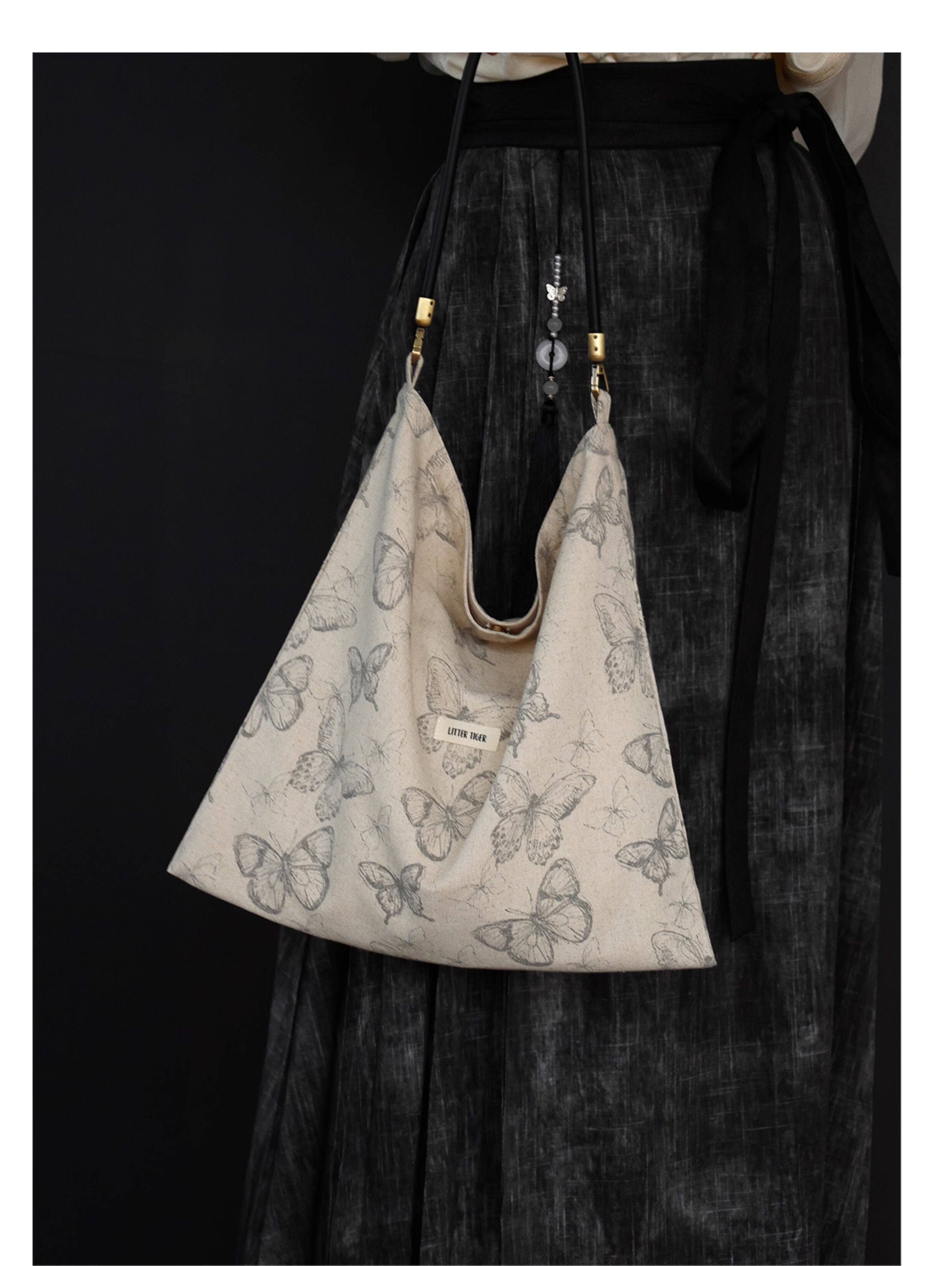 Litter Tiger Original Cloth Bag "Butterfly Dream" New Chinese Style Linen Cotton Butterfly Print Retro Shoulder Bag