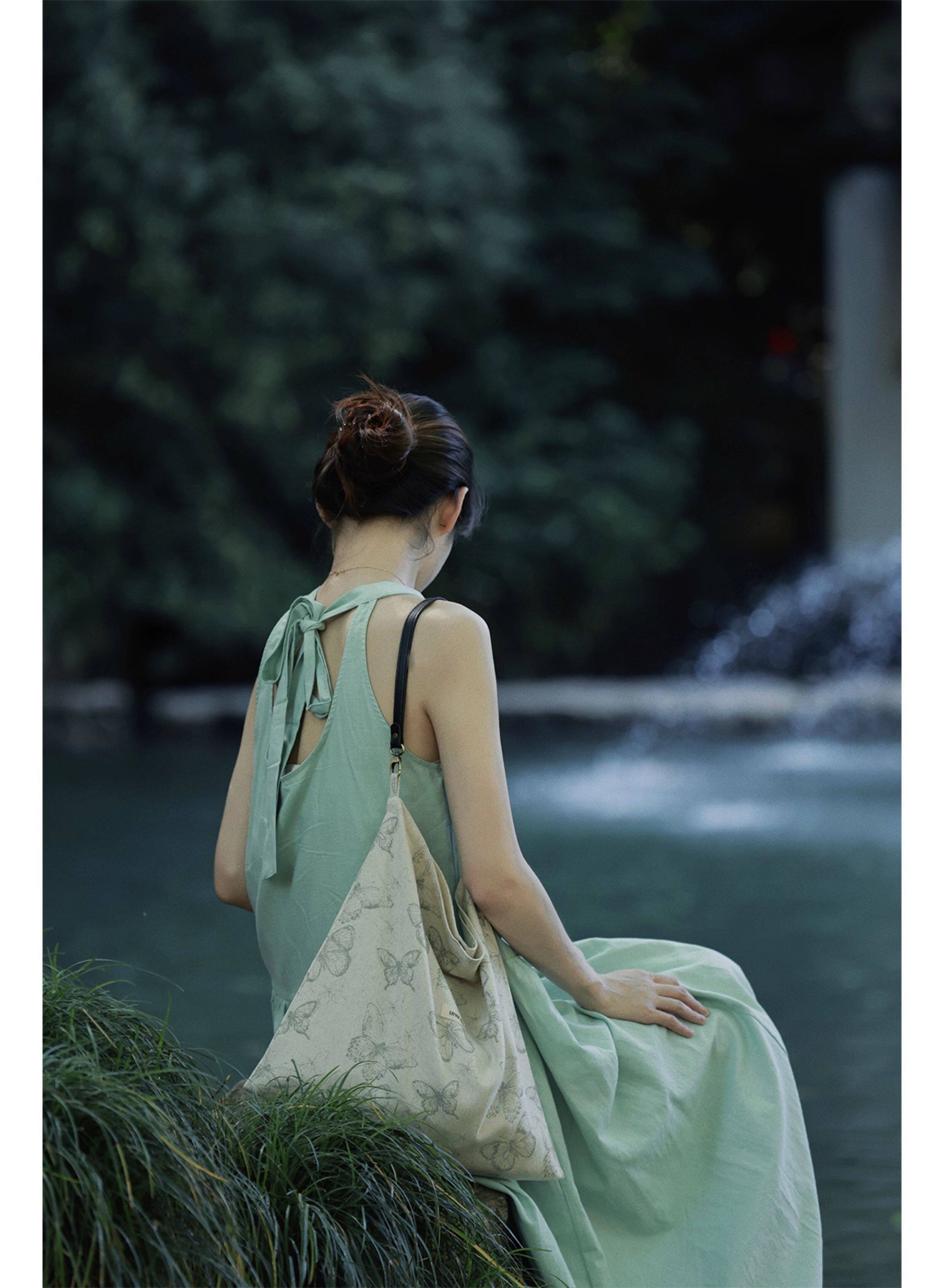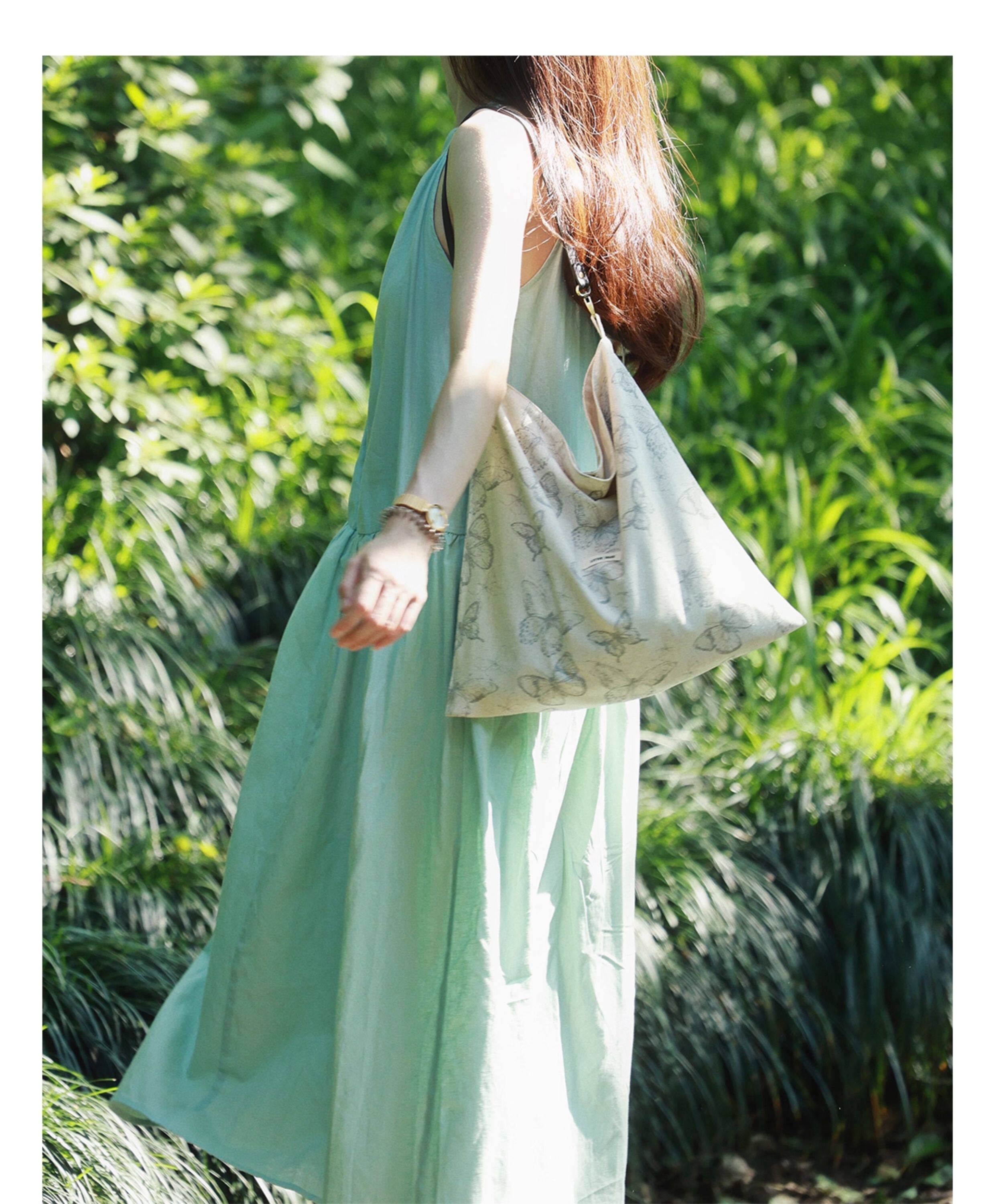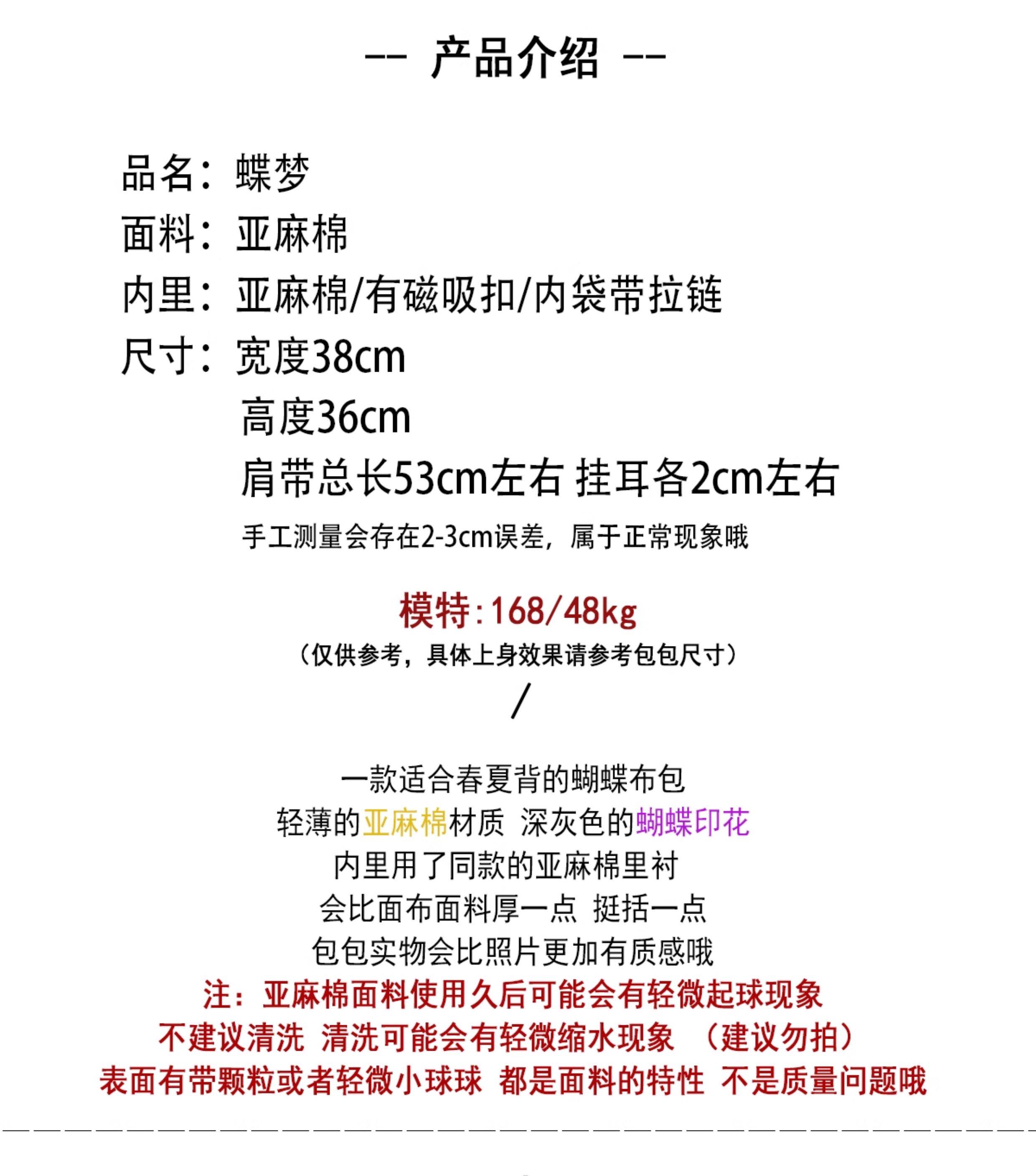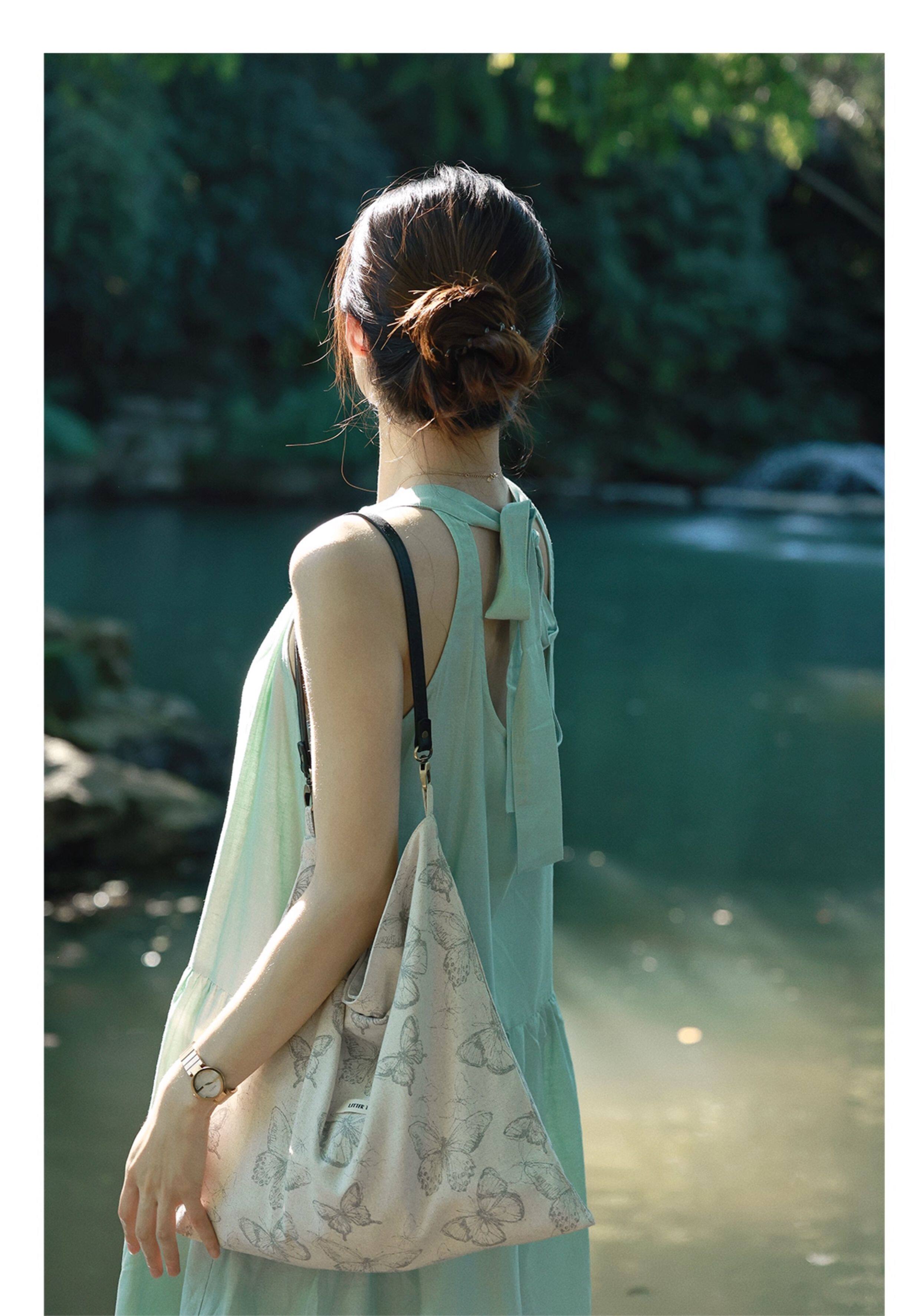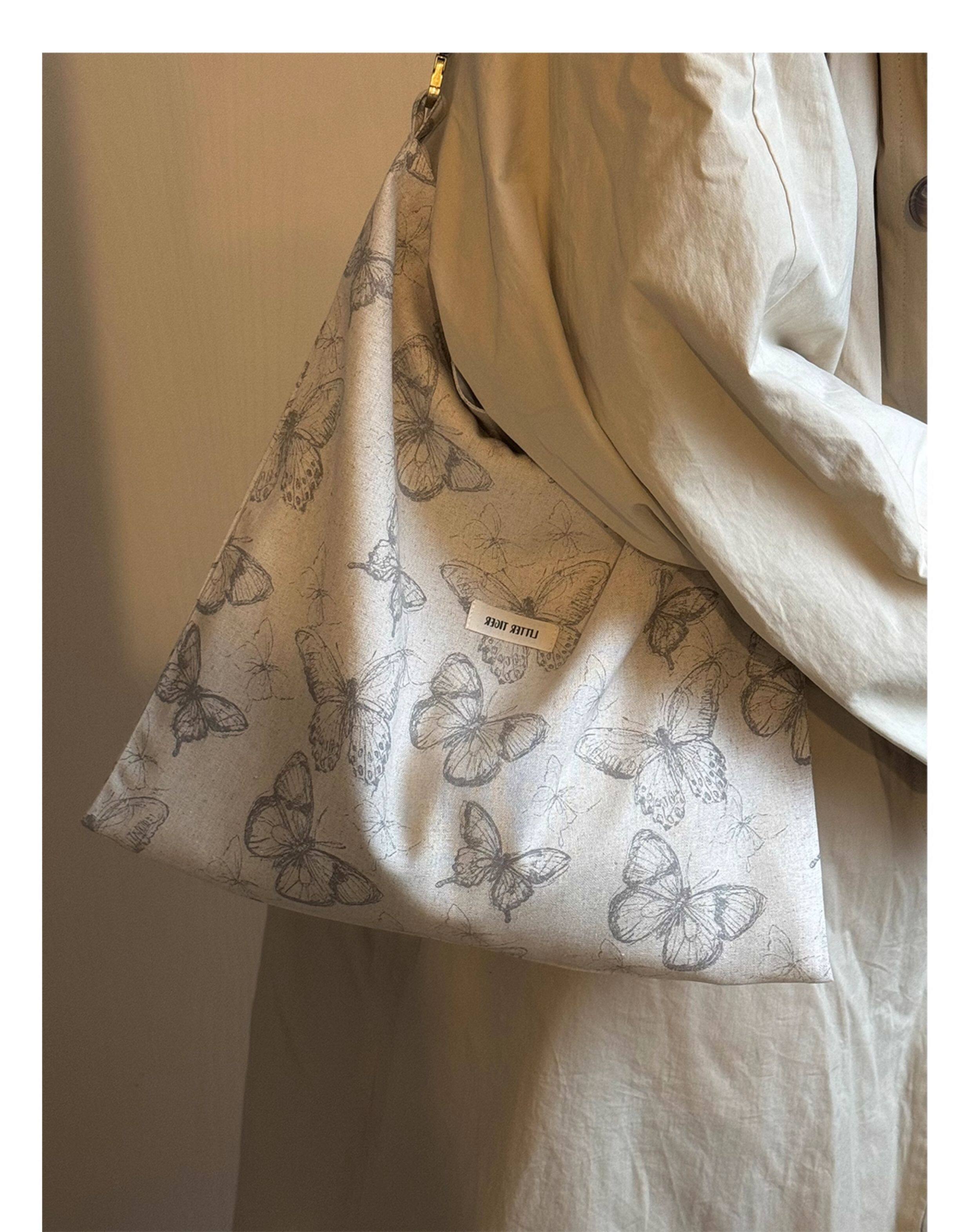 Litter Tiger Original Cloth Bag "Butterfly Dream" New Chinese Style Linen Cotton Butterfly Print Retro Shoulder Bag