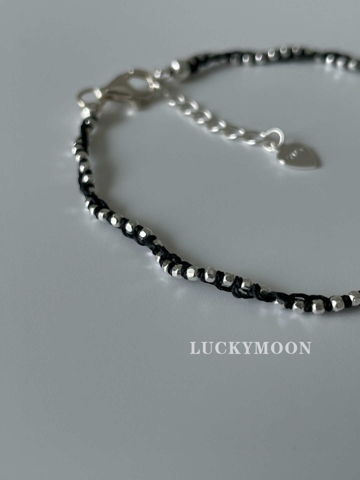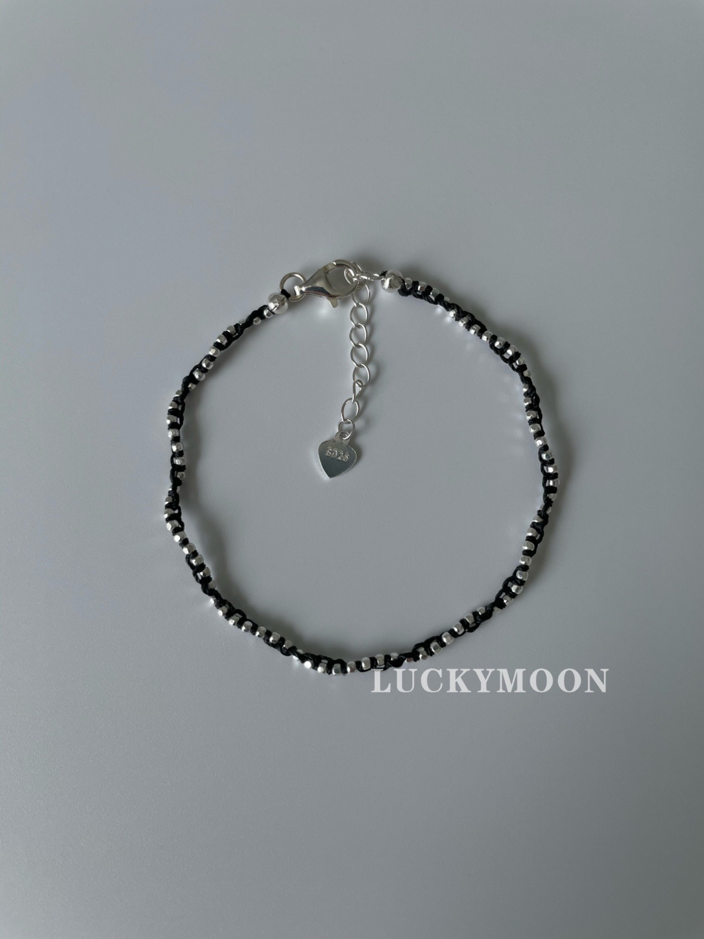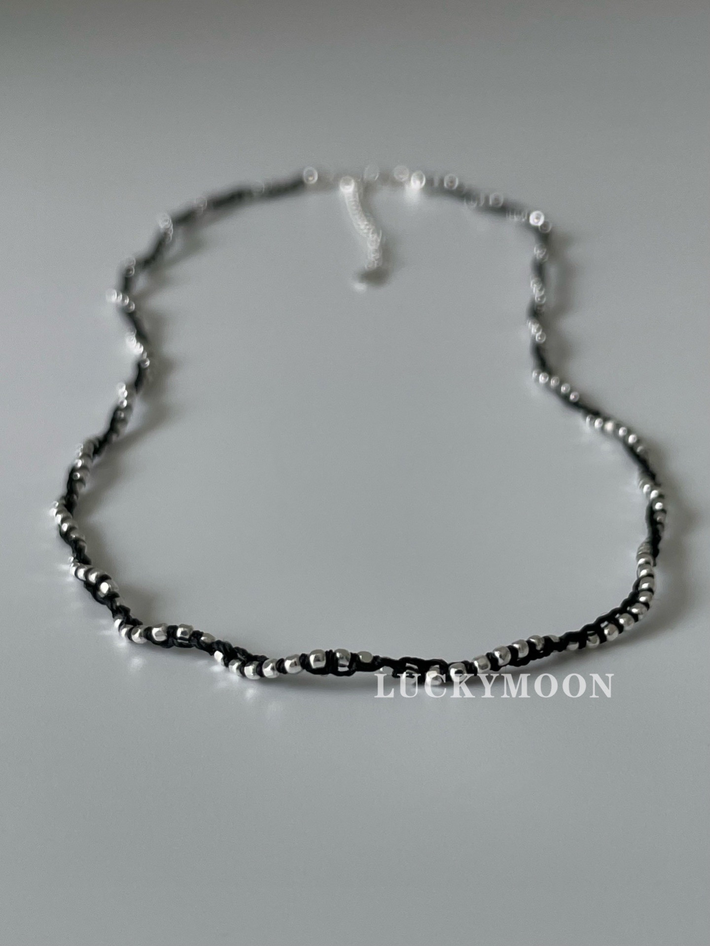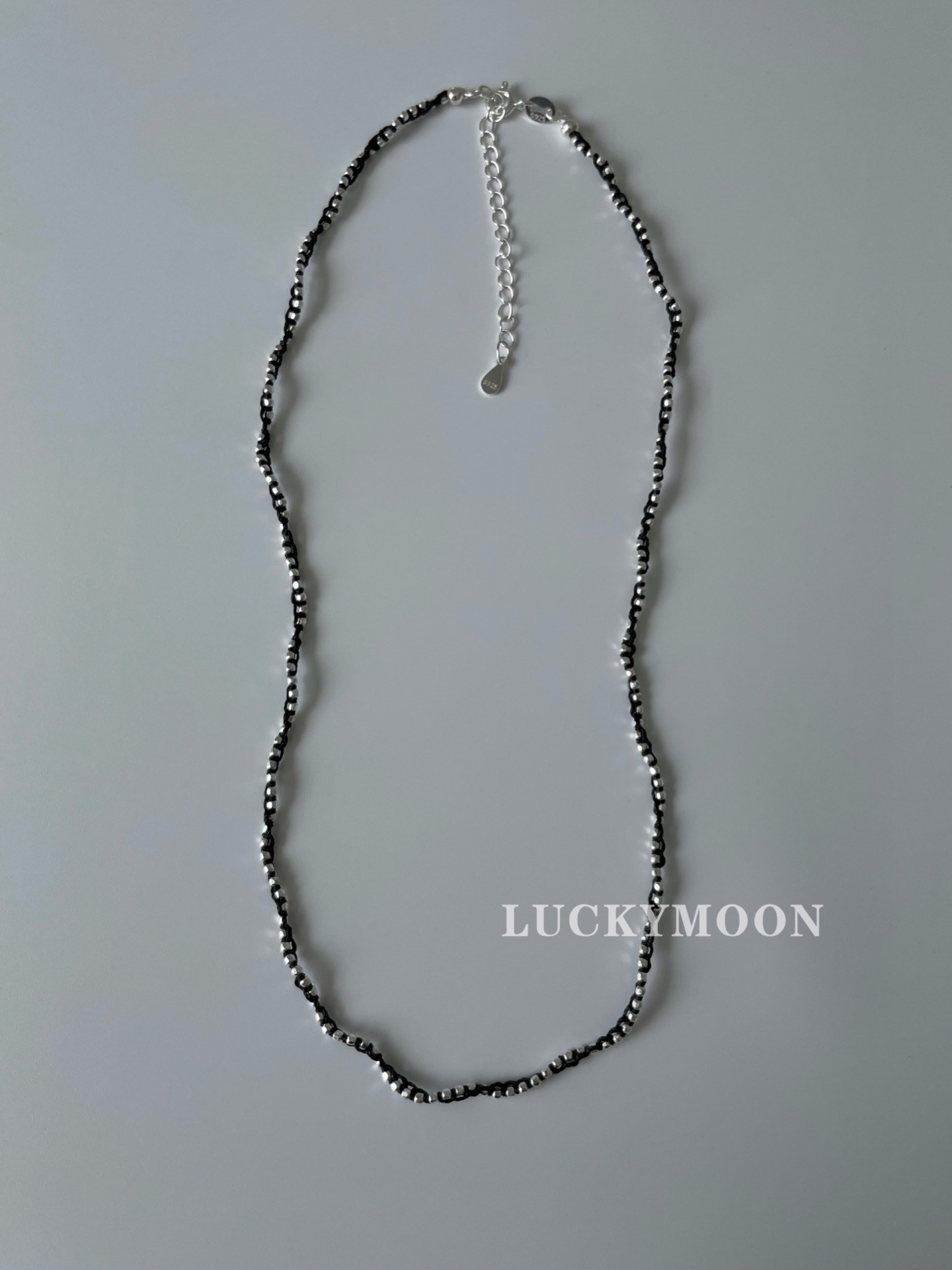 Luckymoon Hand-Woven Sparkling Silver Bead Necklace and Bracelet, All Made of 925 Sterling Silver N083/B027