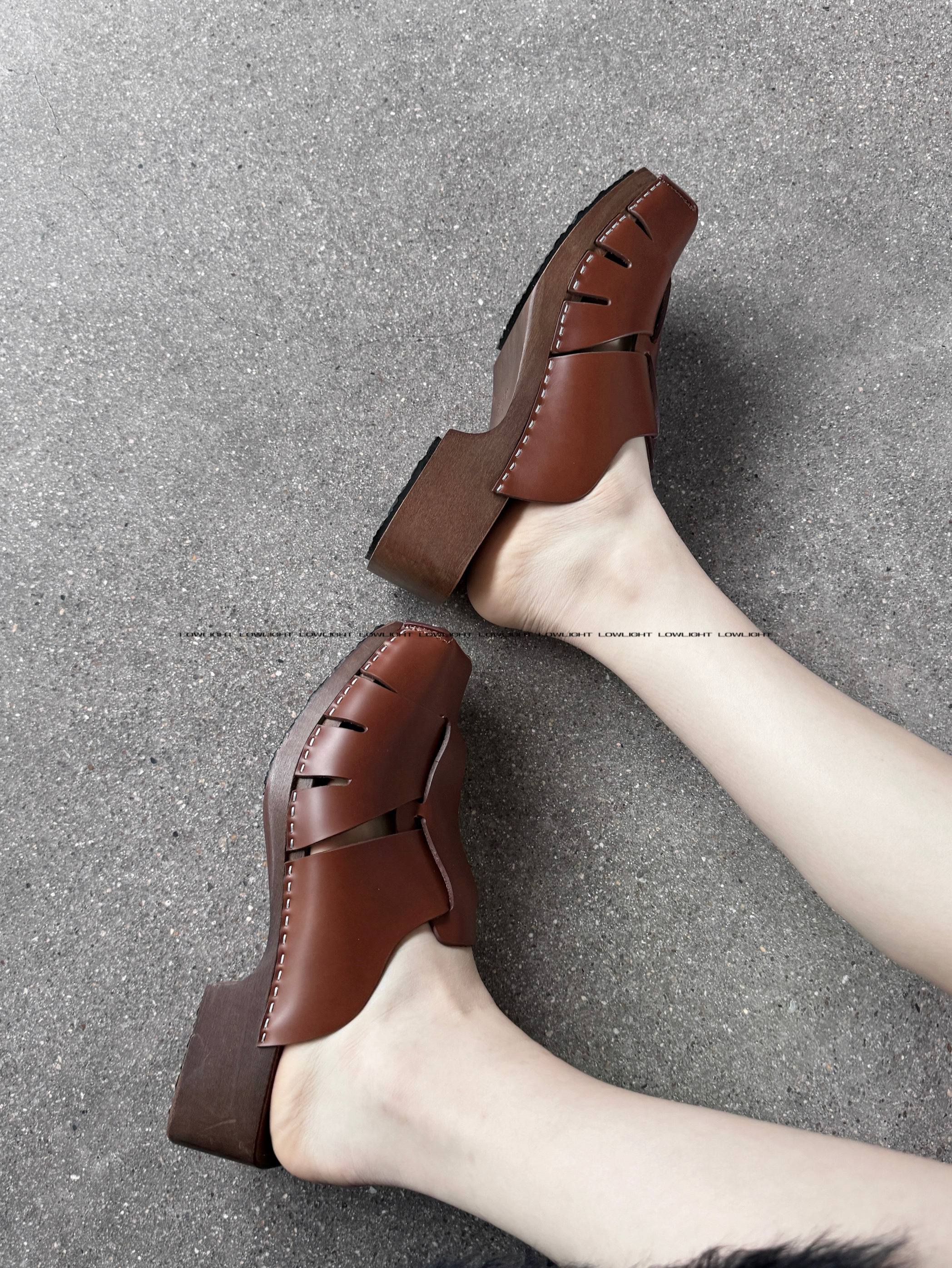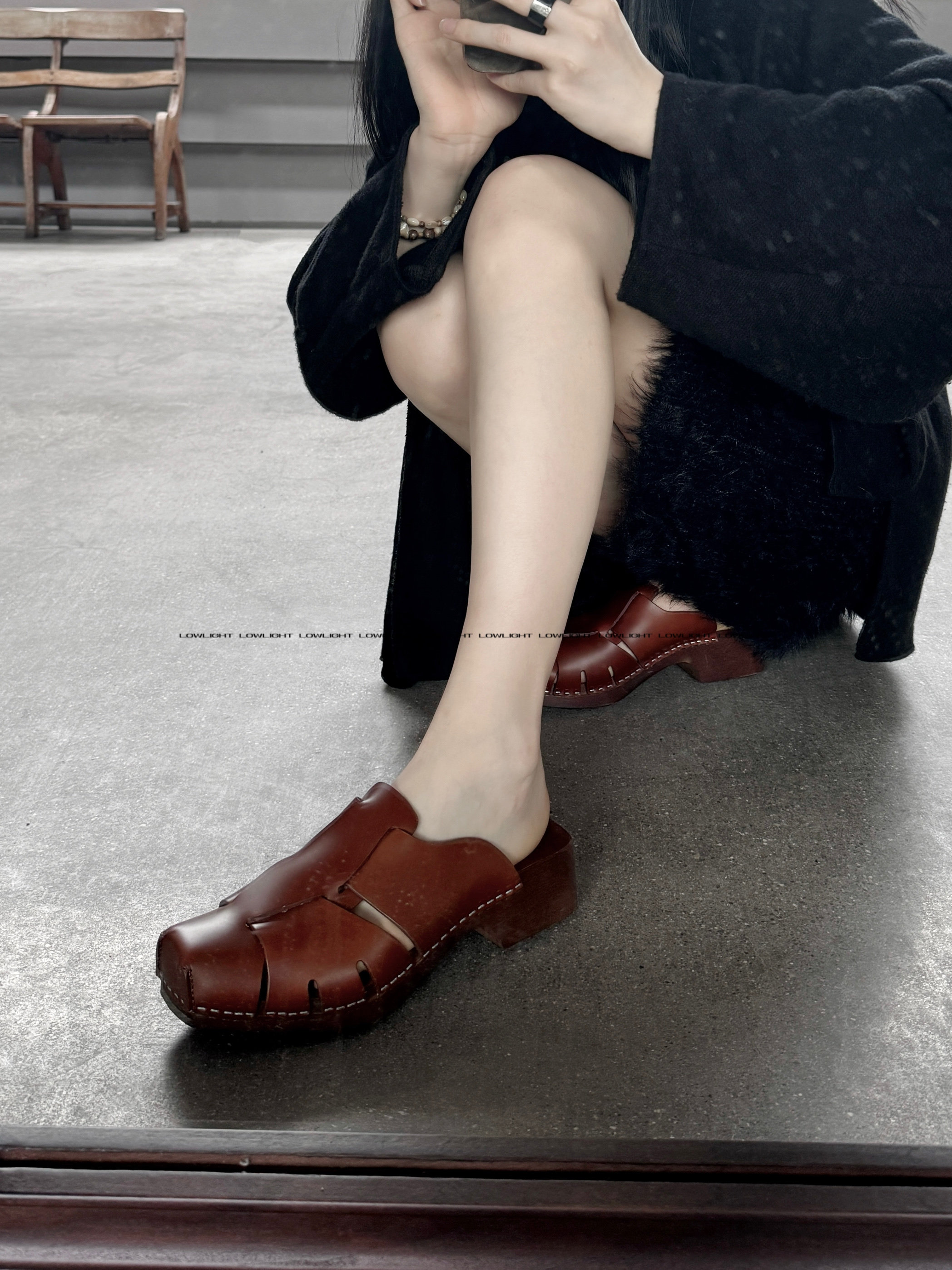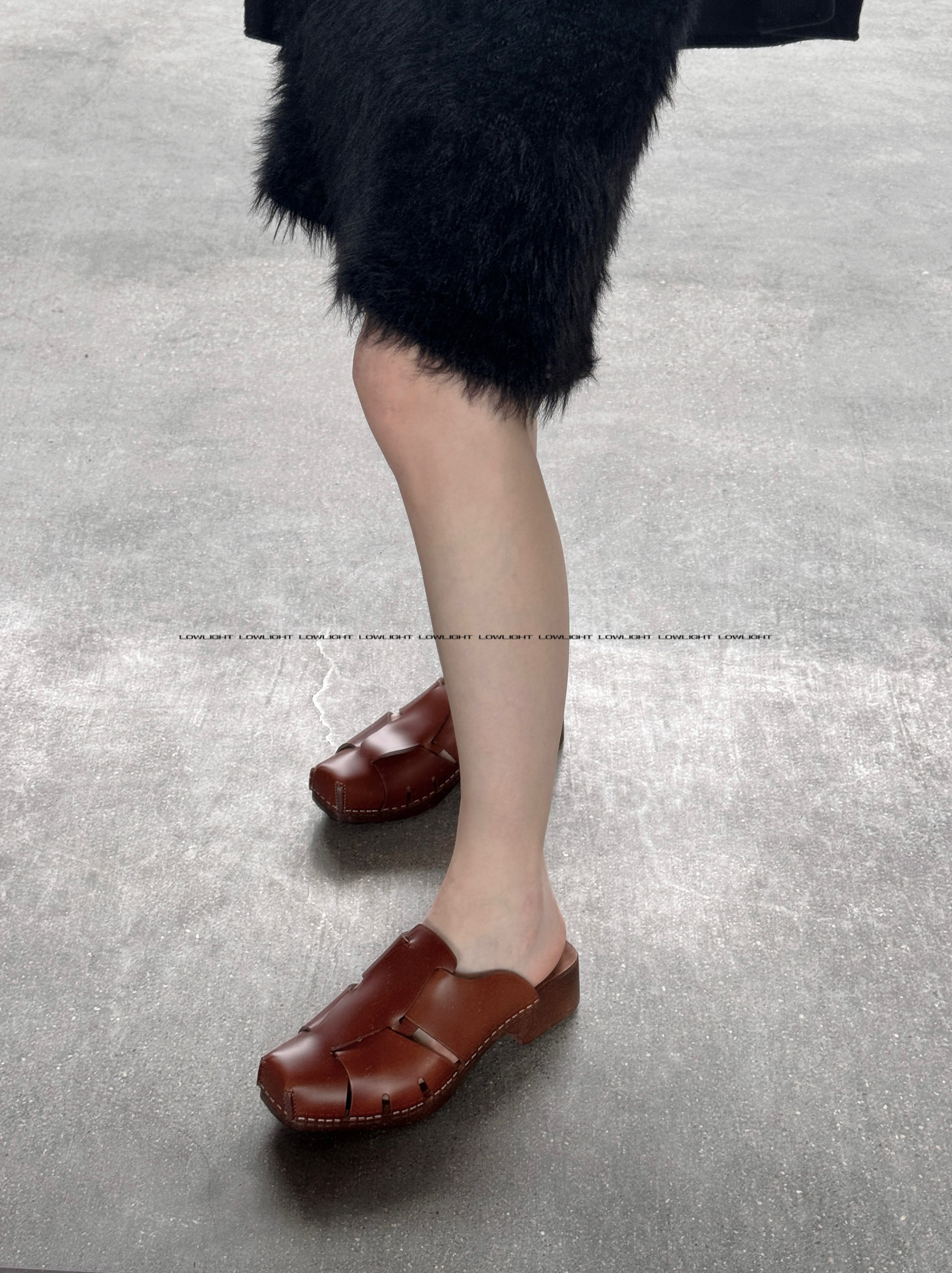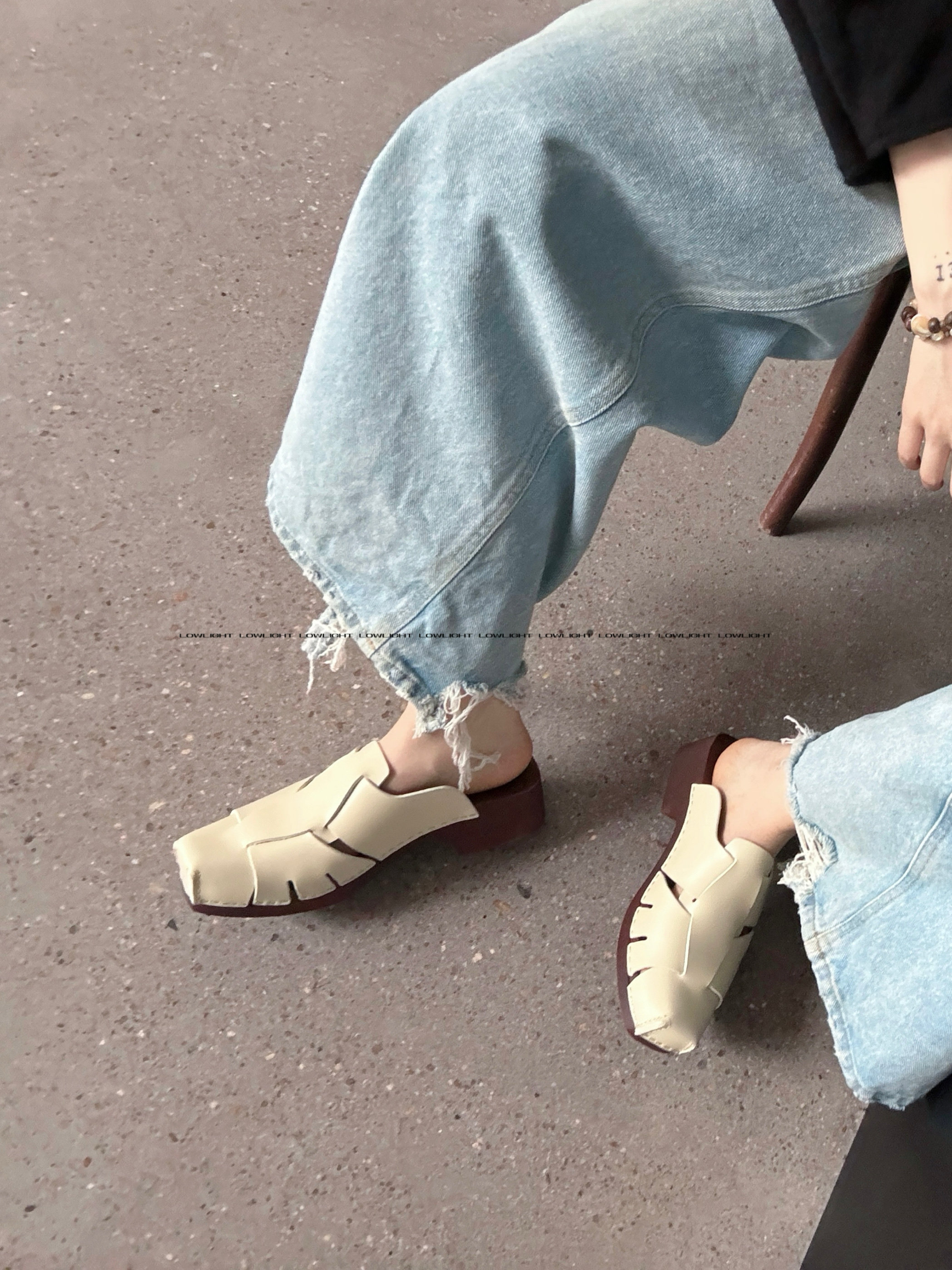 【 40% off 】Hereu Spanish Three-Color Casual Everyday Square-Toe Half-Slip Woven Clogs with Thick Soles and Height-Increasing Slippers