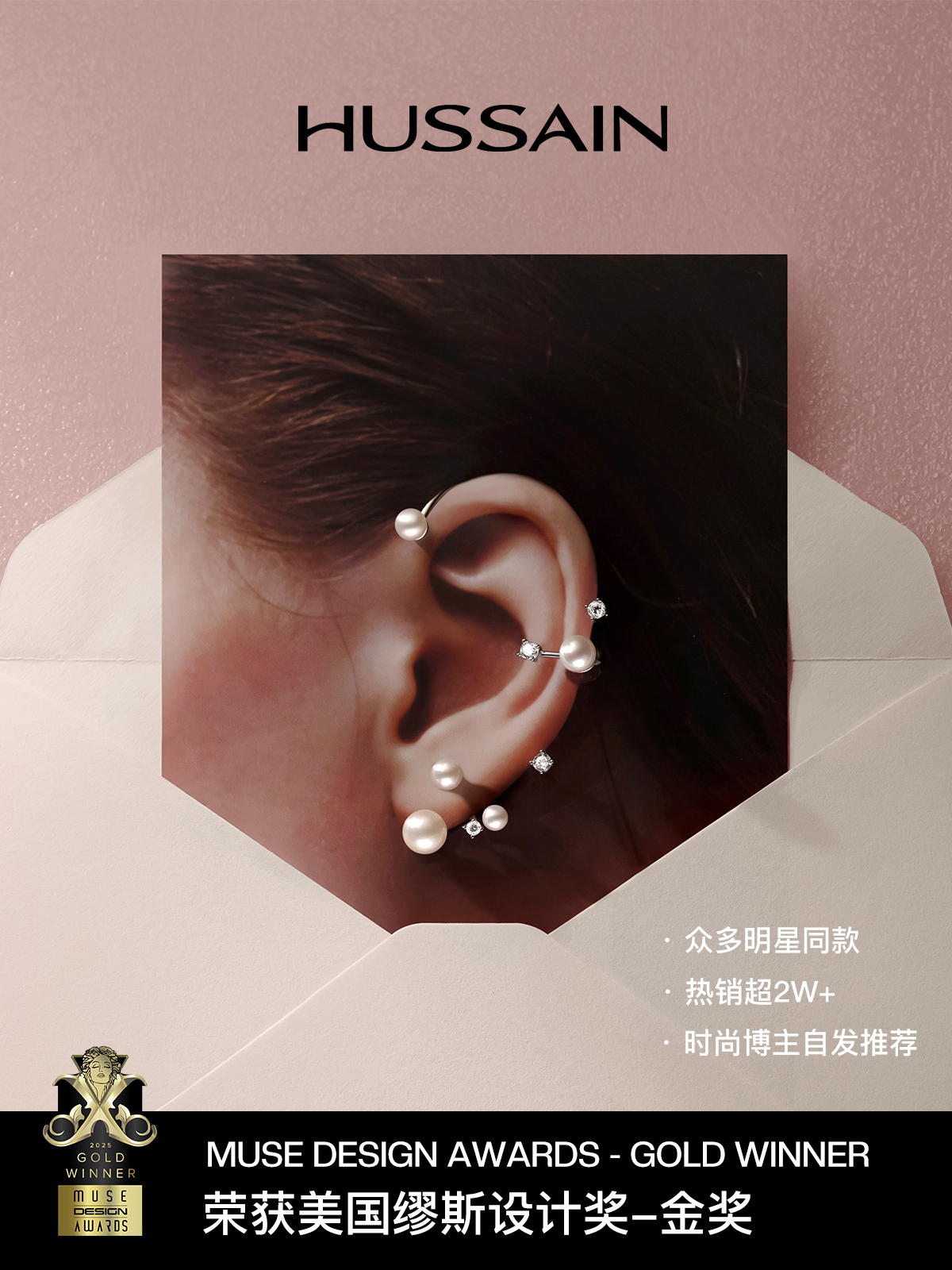 [Celebrity Style] Hussain Star Dot Floating Pearl Earrings Sterling Silver Asymmetric Autumn and Winter Earrings