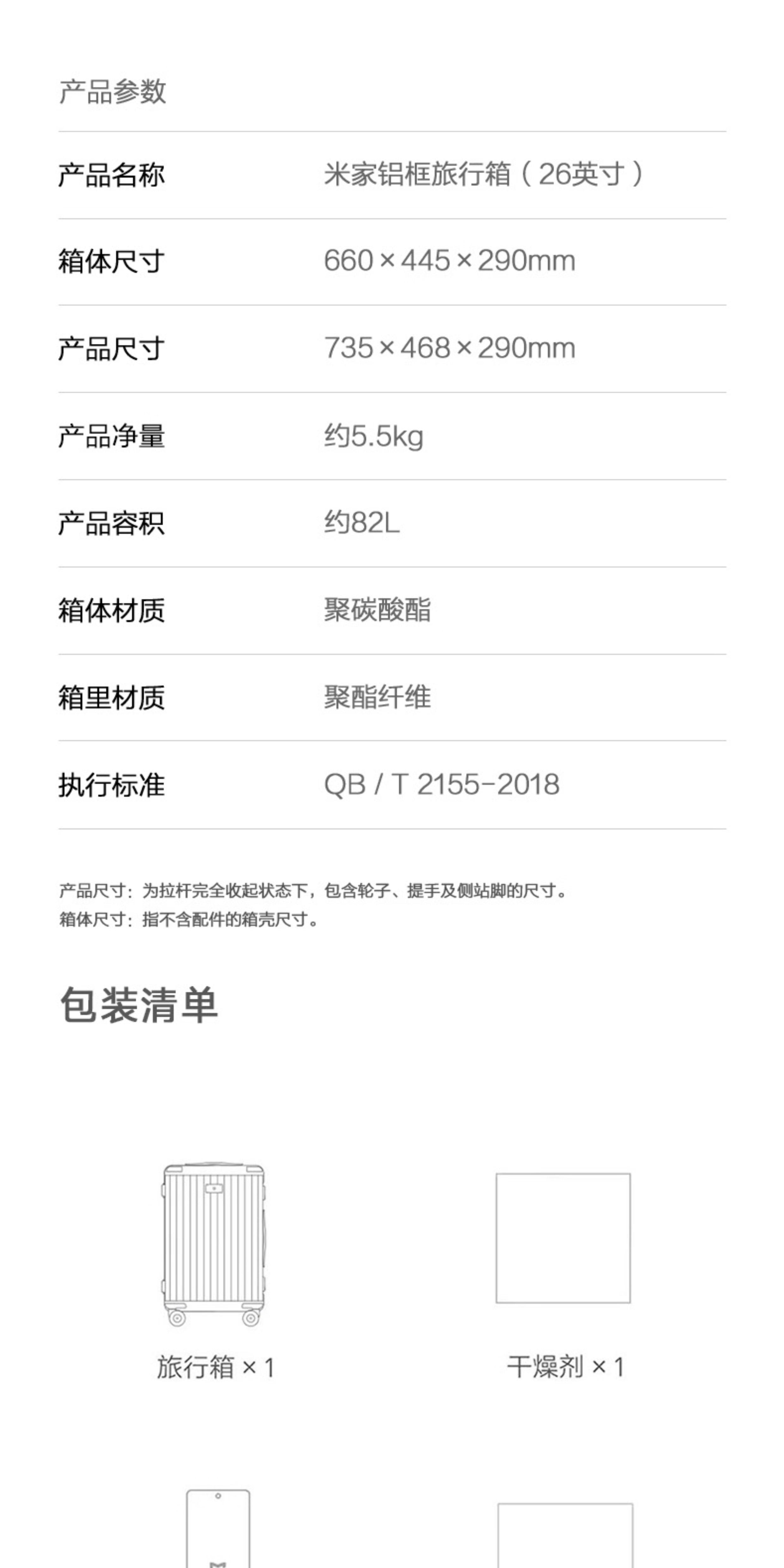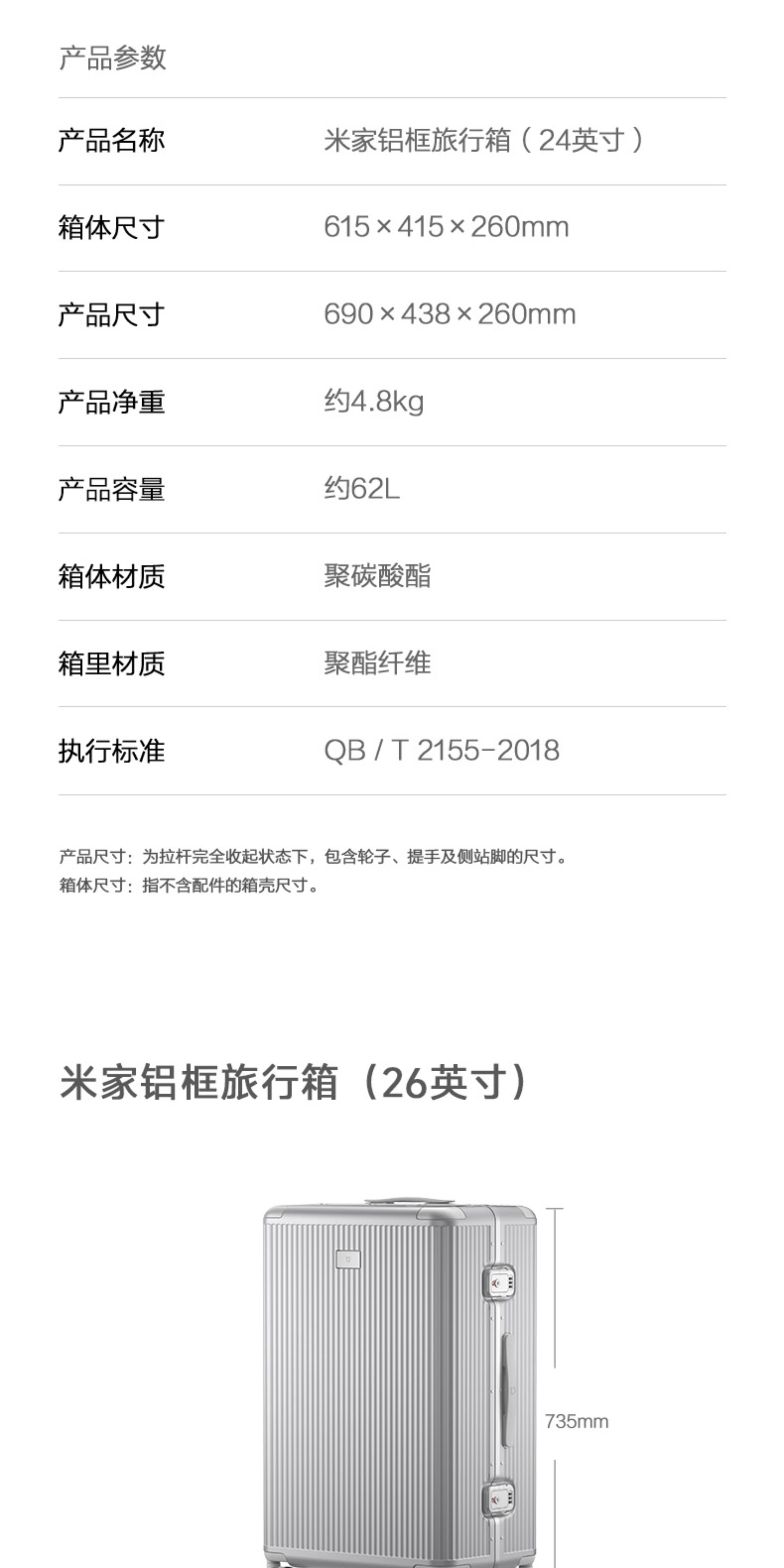 [Lei Zong Same Model] Xiaomi Mijia Luggage Aluminum Frame Suitcase Trolley Case boarding case Universal Wheel Case
