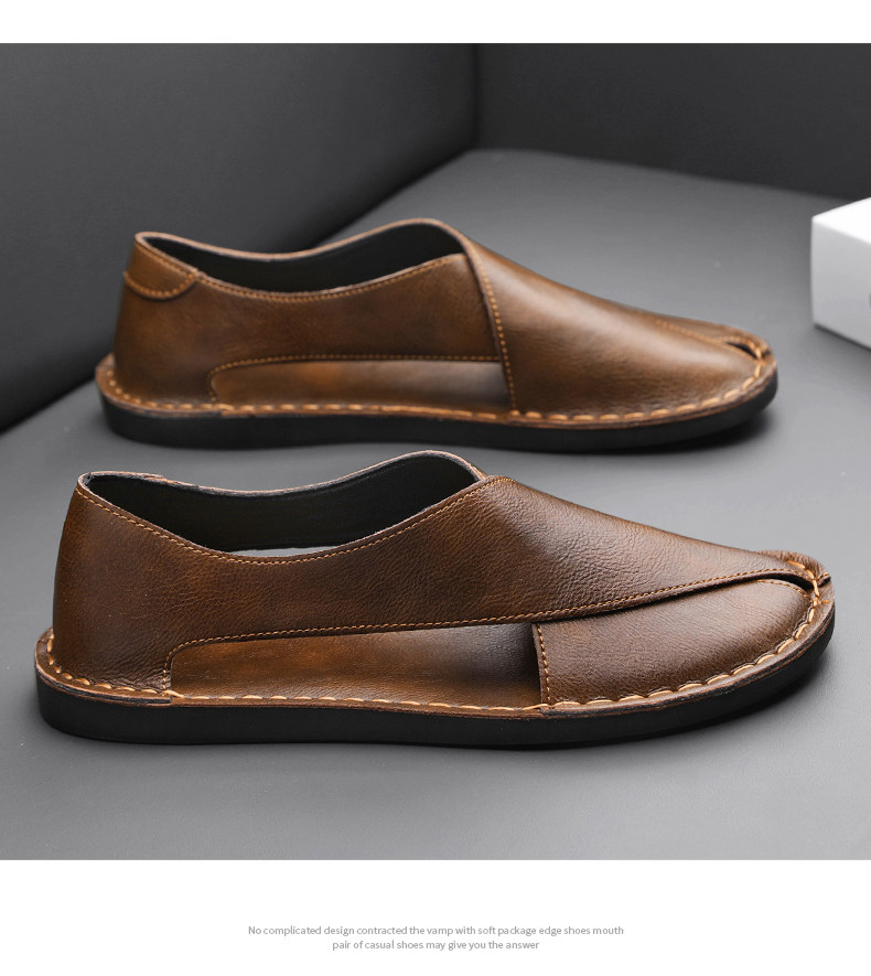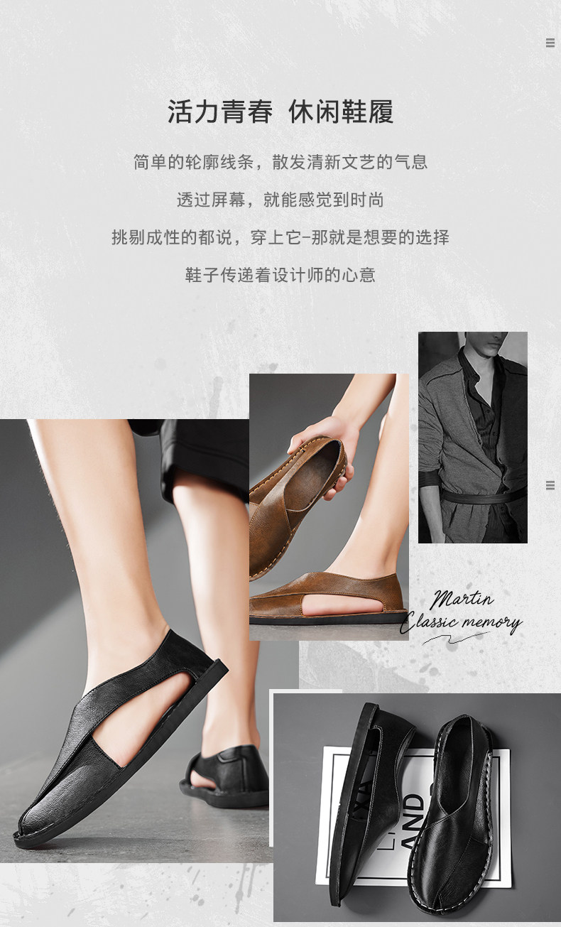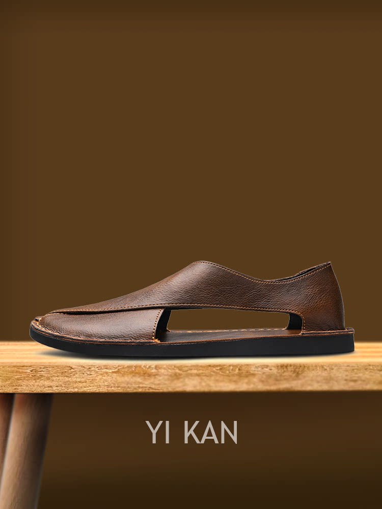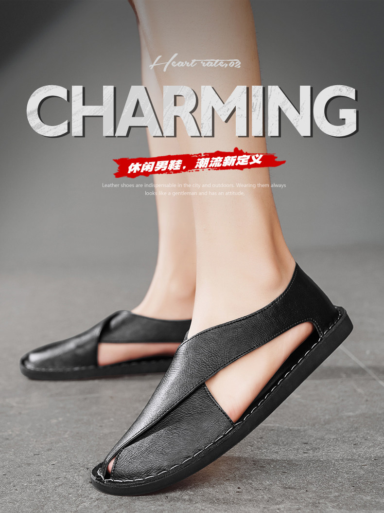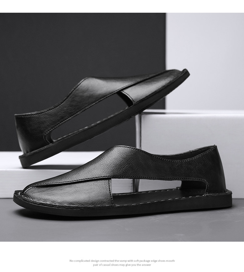 Men's Leather Sandals Trendy European Style Roman Sandals Youth Clogs Size 47 Large Size Casual Shoes Breathable Beach Shoes