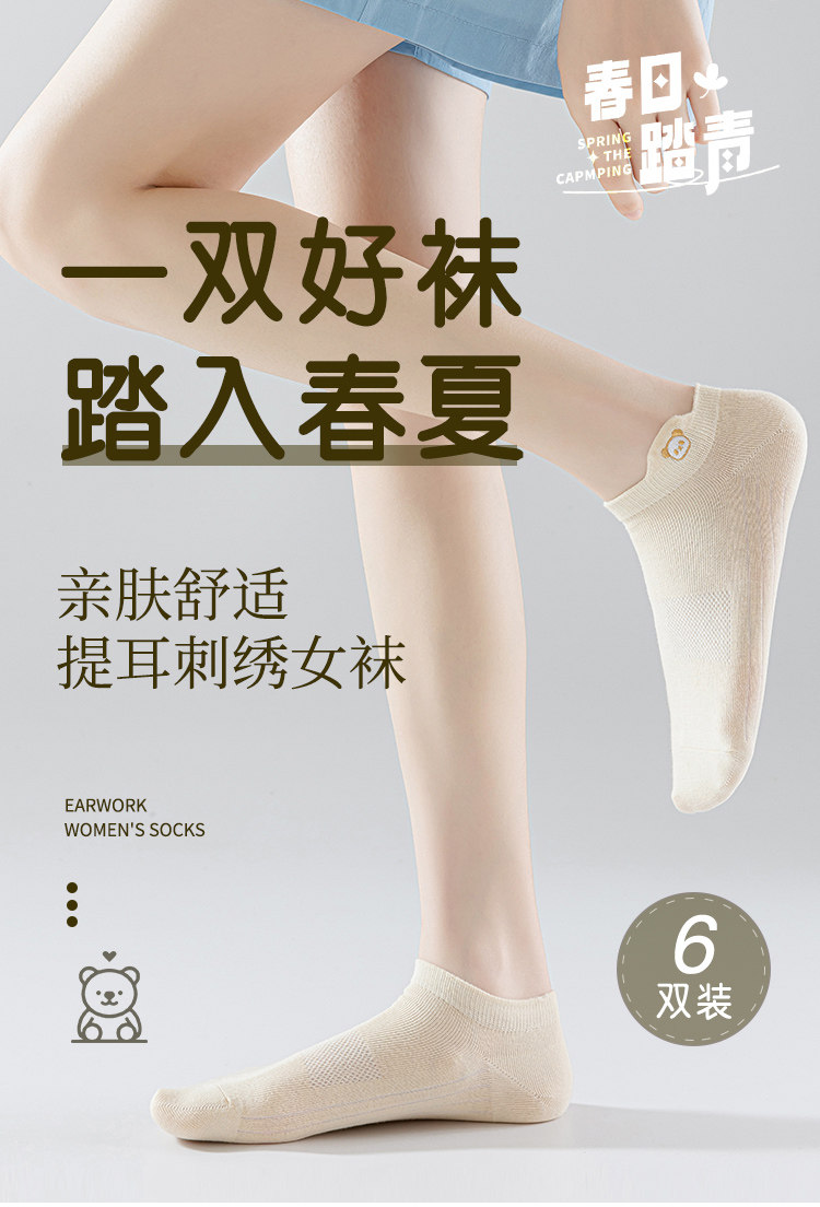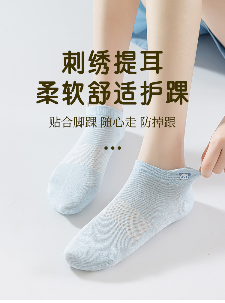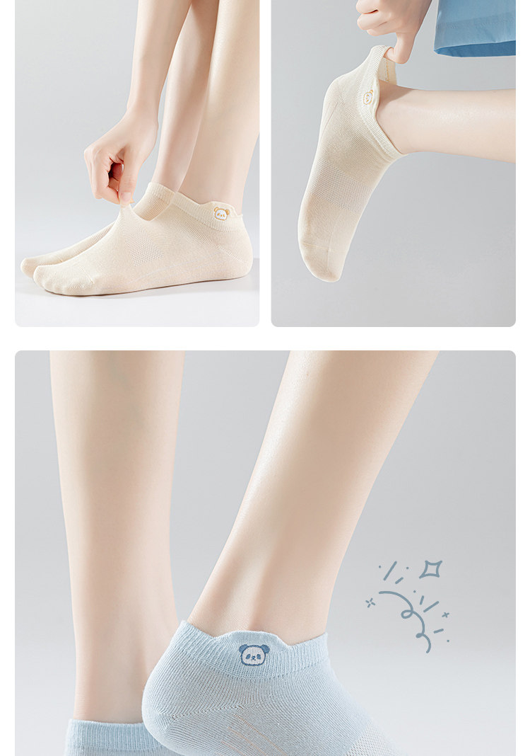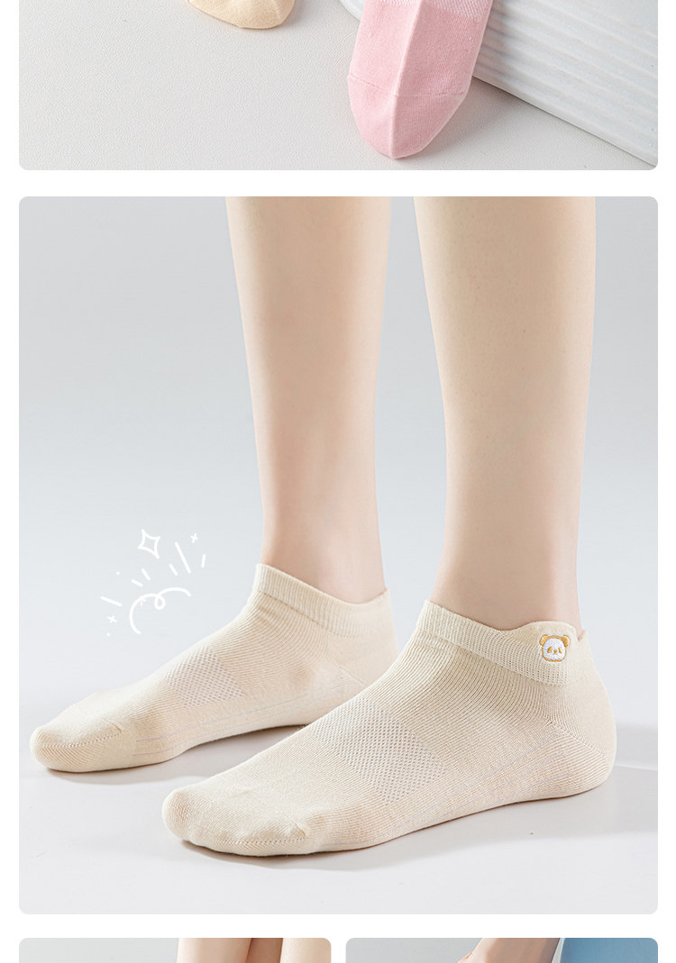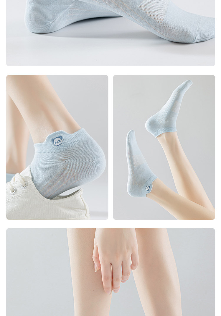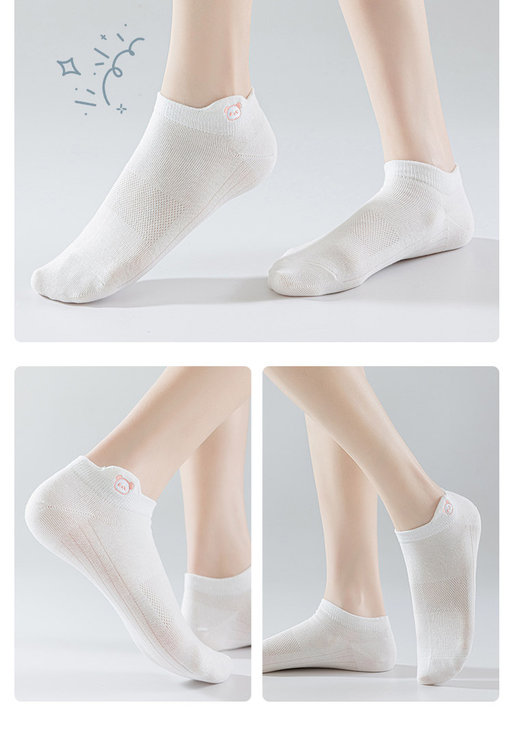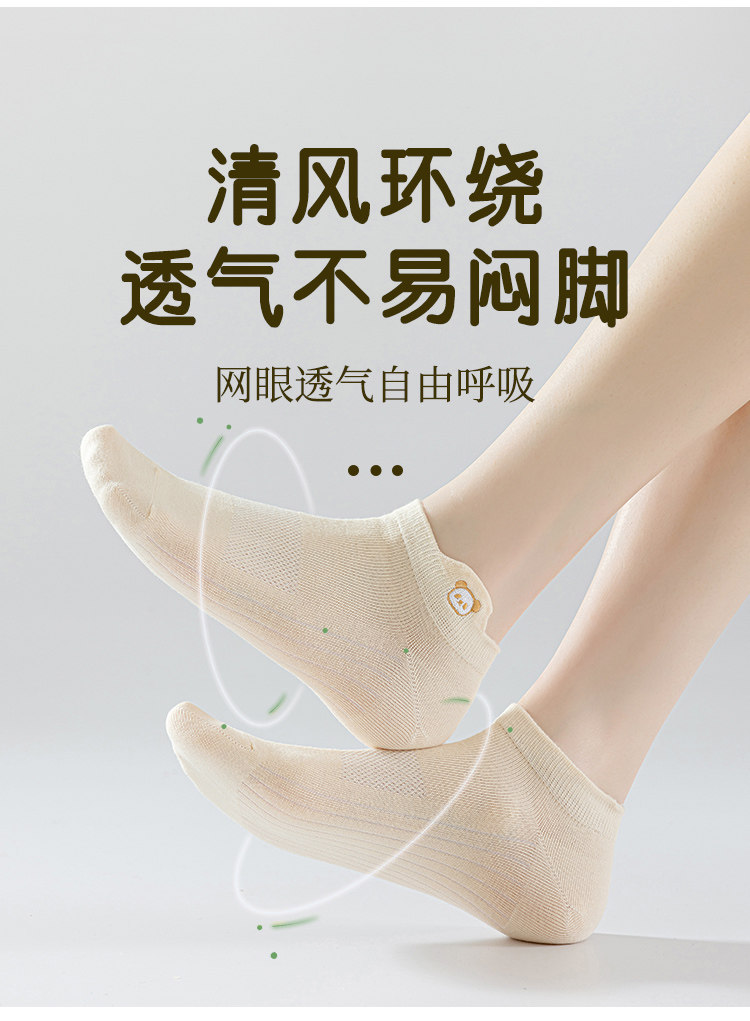 Langsha Socks for Women, Summer Thin No-Show Socks, Breathable Mesh, Odor-Resistant, Cute Cartoon Short Socks for Spring and Autumn, Non-Slip