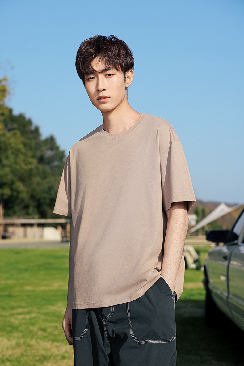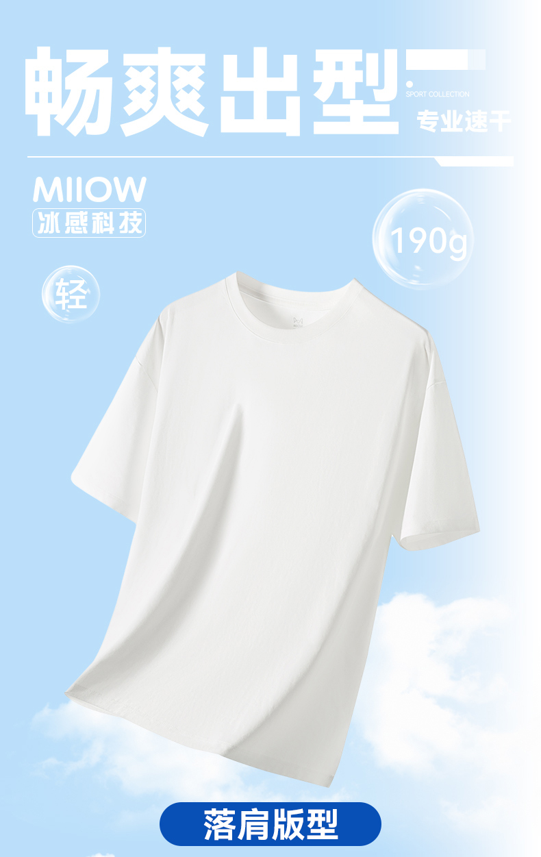 Catman Sorona Cool Ice Silk Short-Sleeved T-Shirt for Men, Ice Oxygen Cotton Quick-Drying Solid Color Loose Top, Breathable Base Shirt