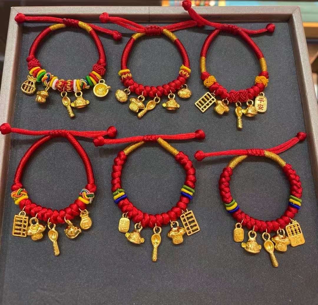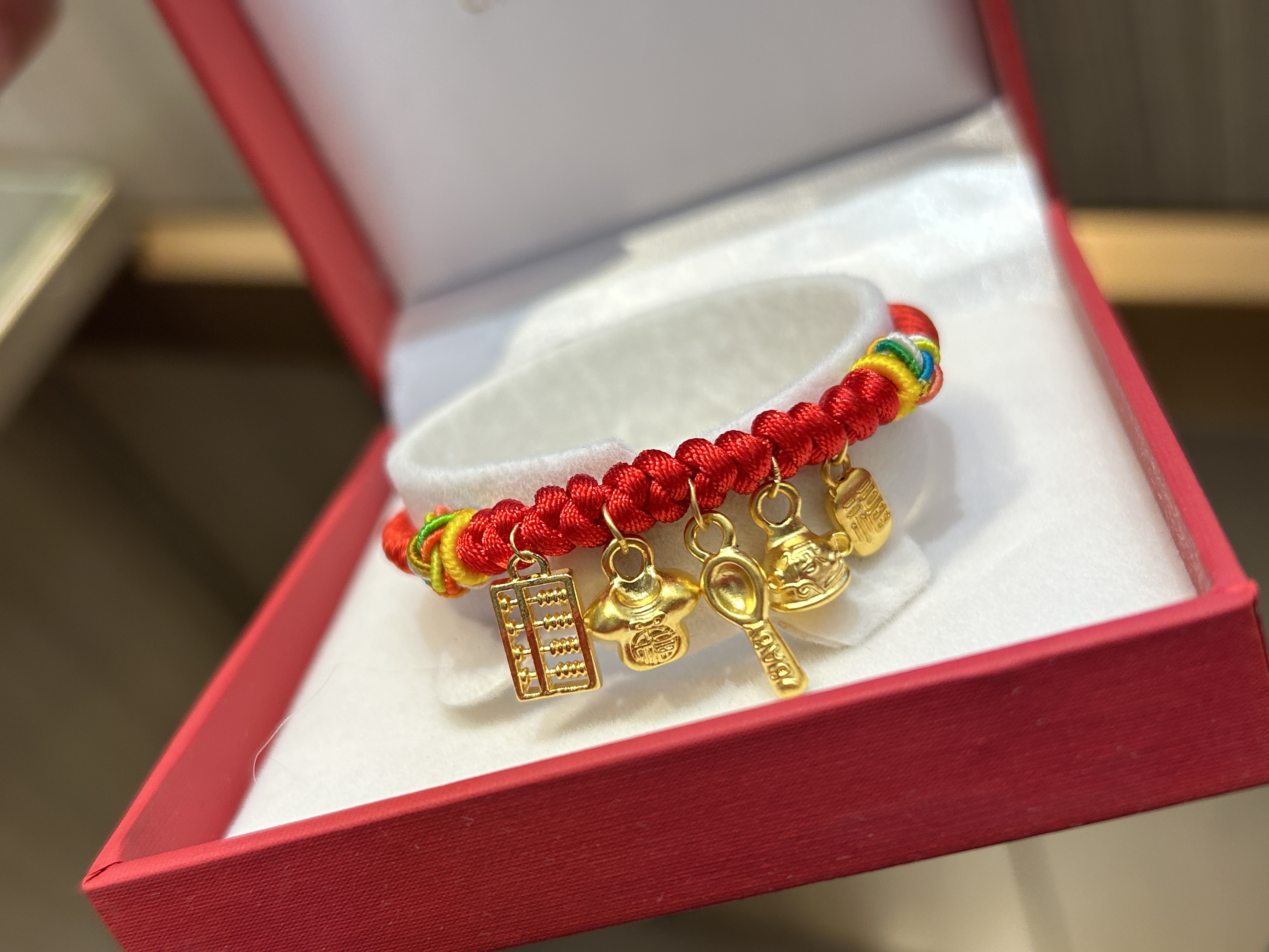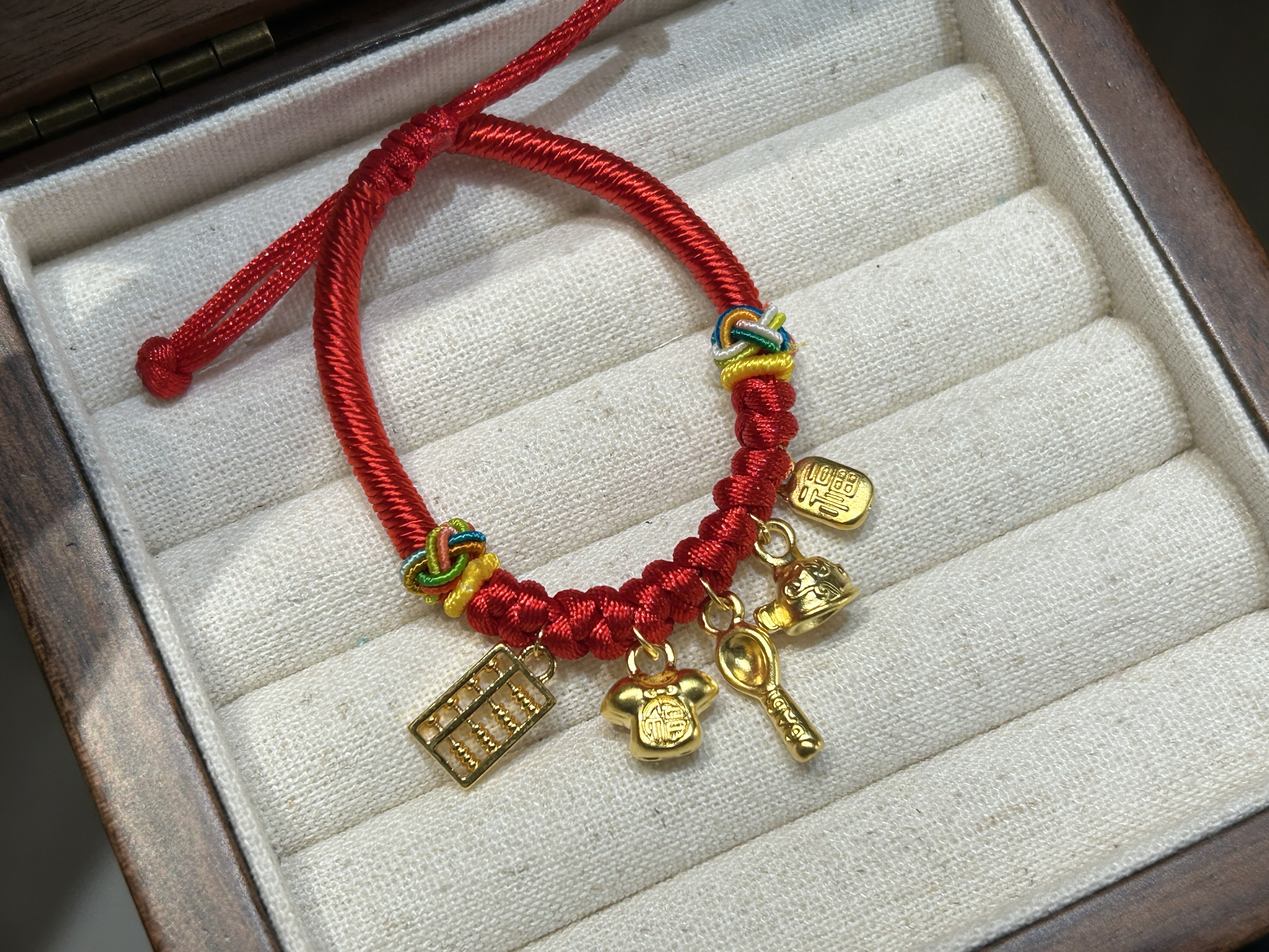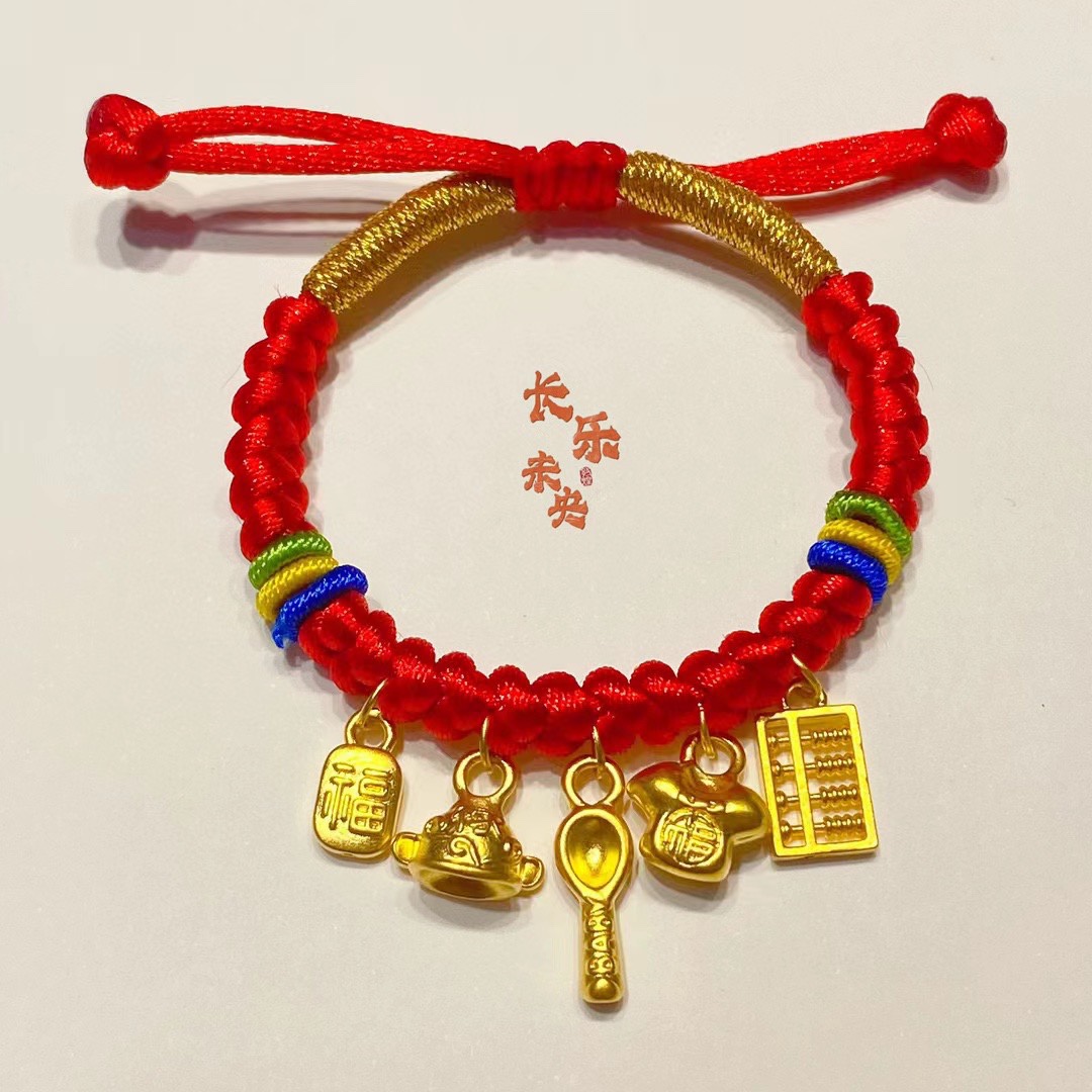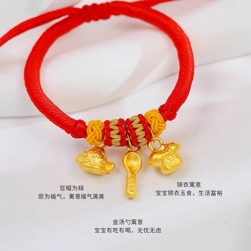 Pure Gold 999 Baby Auspicious Three Treasures Gold Bracelet, Worry-Free in Terms of Food and Clothing, Red String Full Moon Gold Bracelet, First Birthday Gift