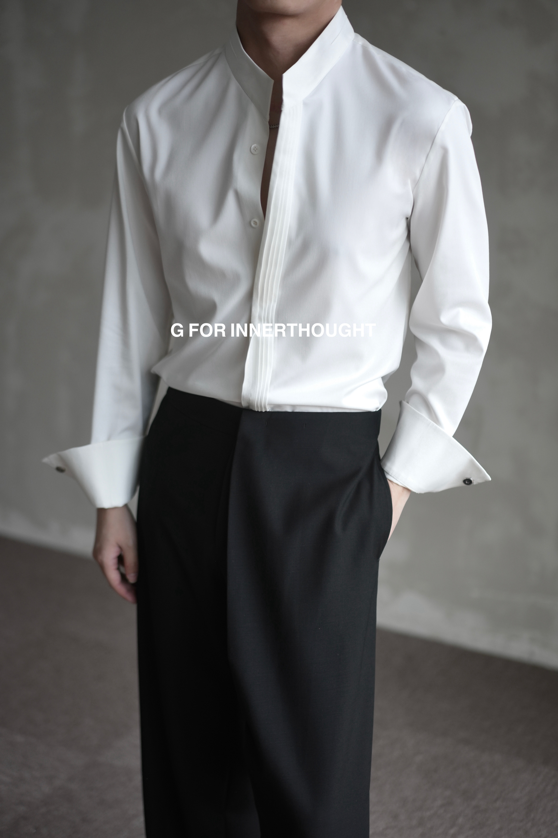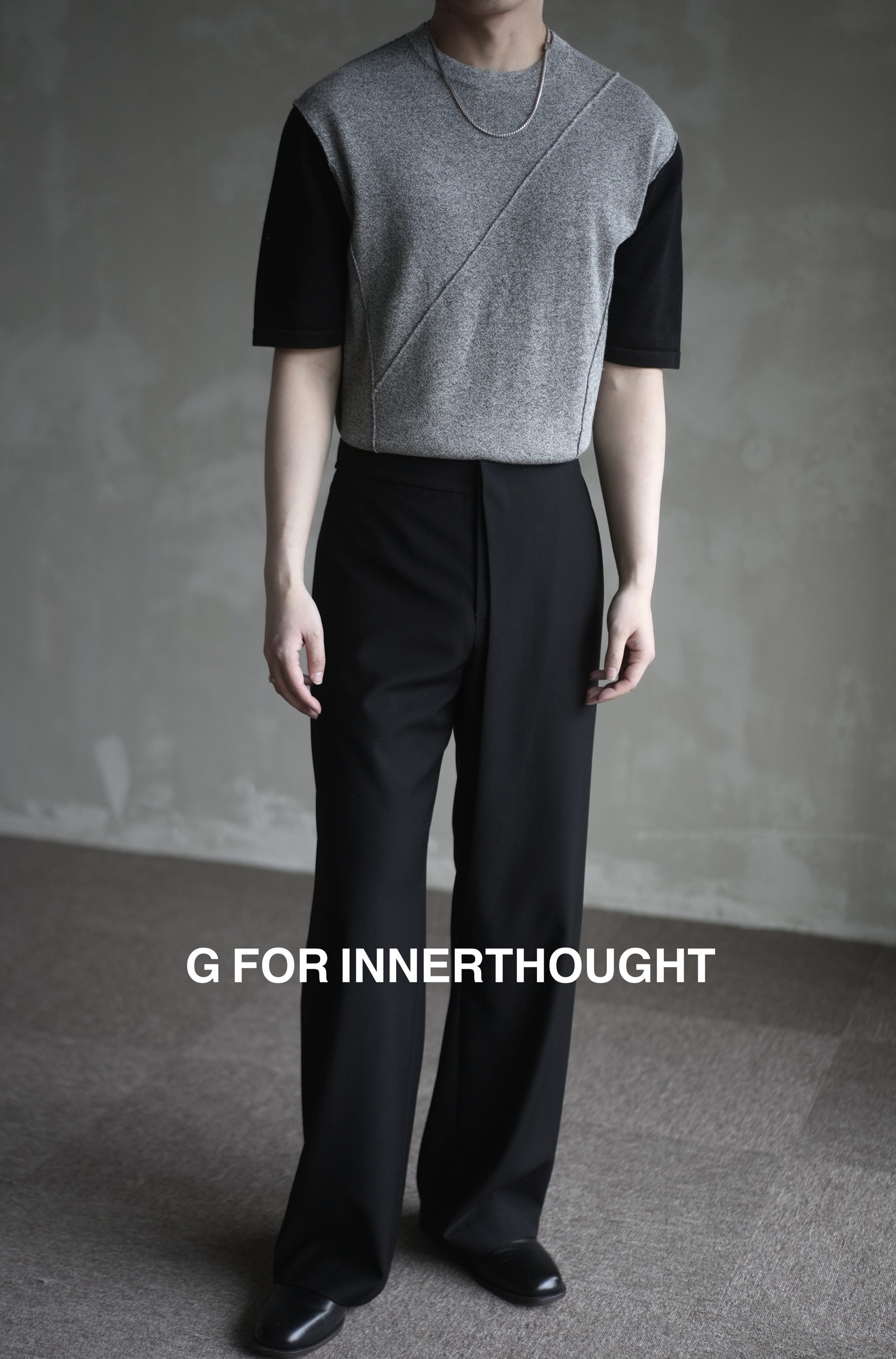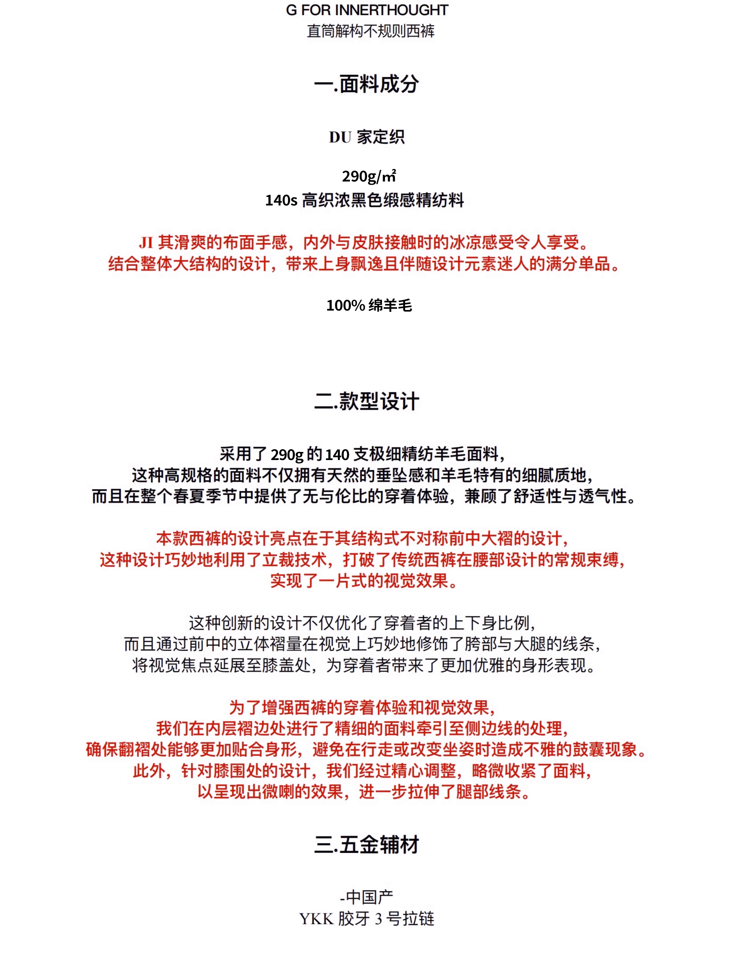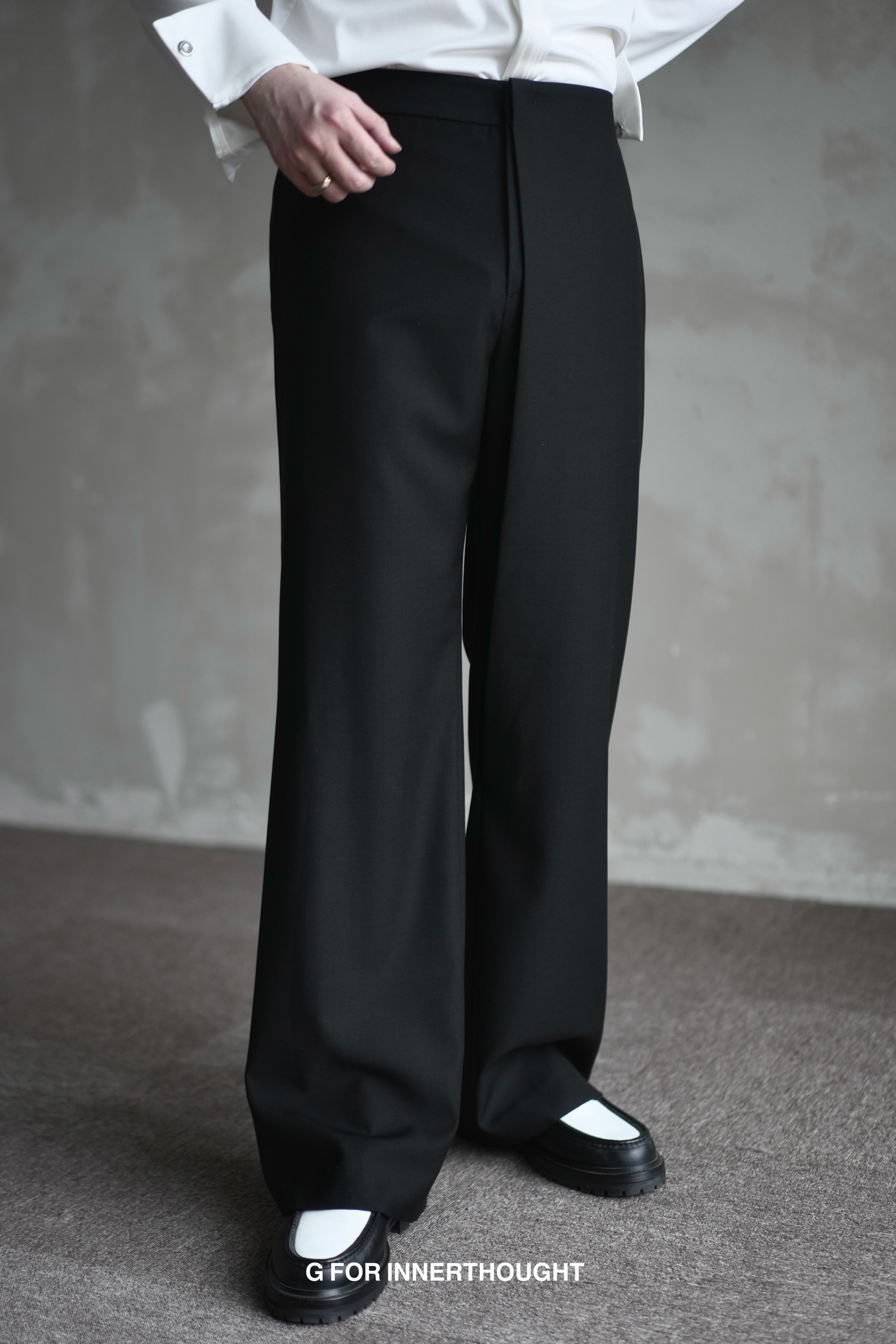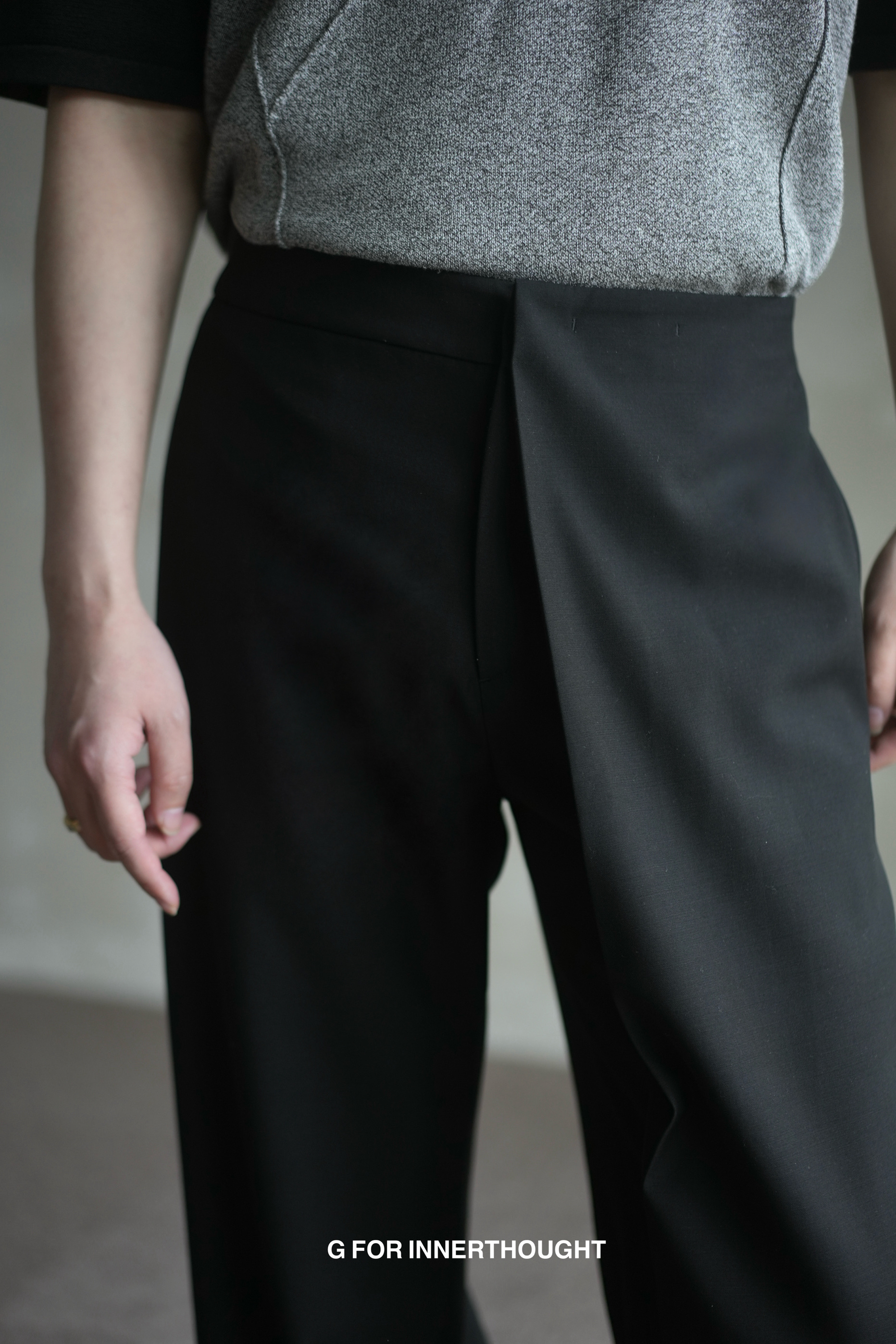 G for Inner Thought | Dingshe 140S High-Density Black Worsted Wool Asymmetric Structure Dress Pants
