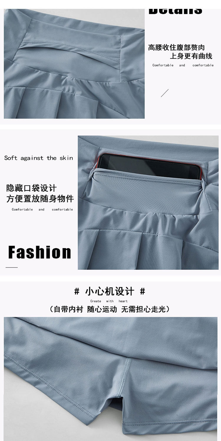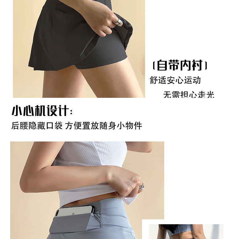 Anti-Exposure Yoga Butt-Covering Fitness Badminton High-Waisted Pocket Tennis Skirt Women's Training Running Sports Half Skirt