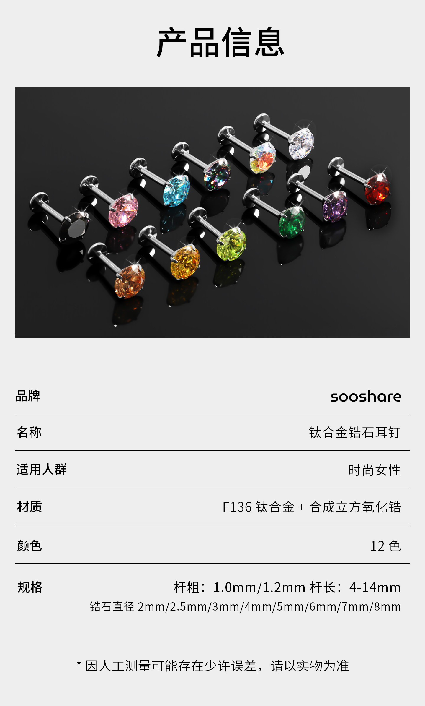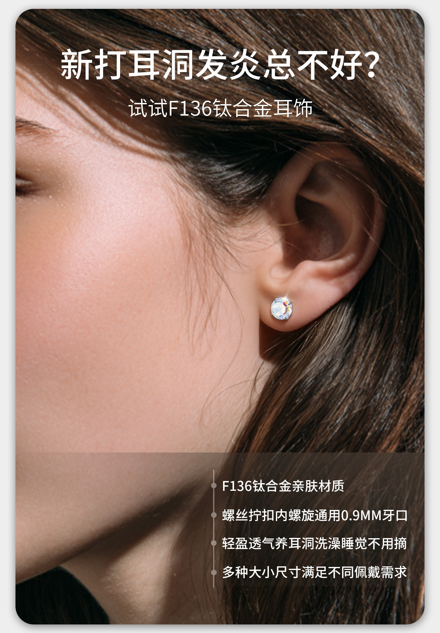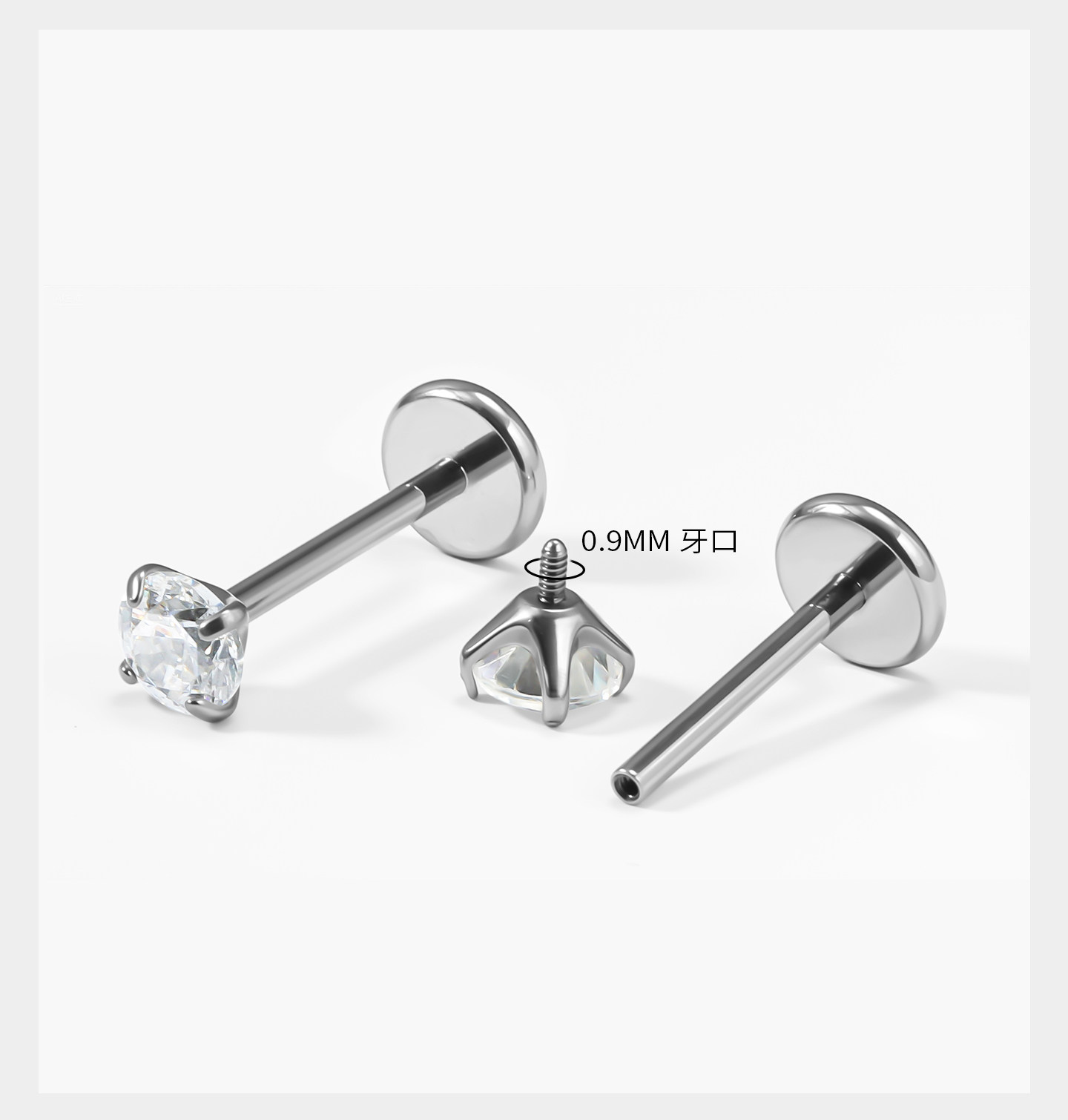 Titanium Alloy Ear Studs, Ear Cartilage Studs, Medical Earrings for Women, Ear Piercing Care, Zirconia Ear Jewelry, Flat-Bottomed Internal Spiral Cochlear Studs