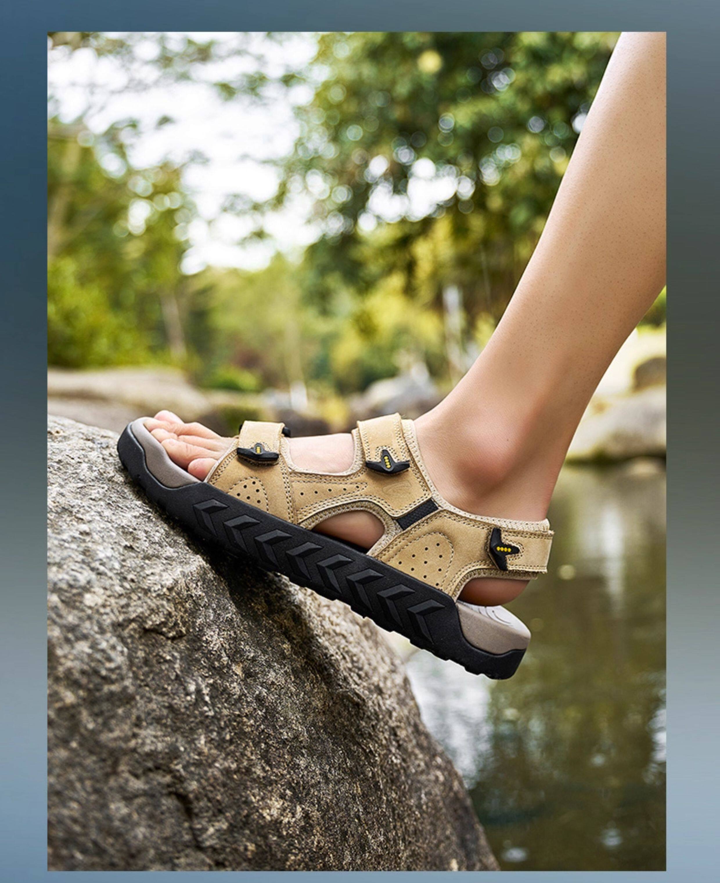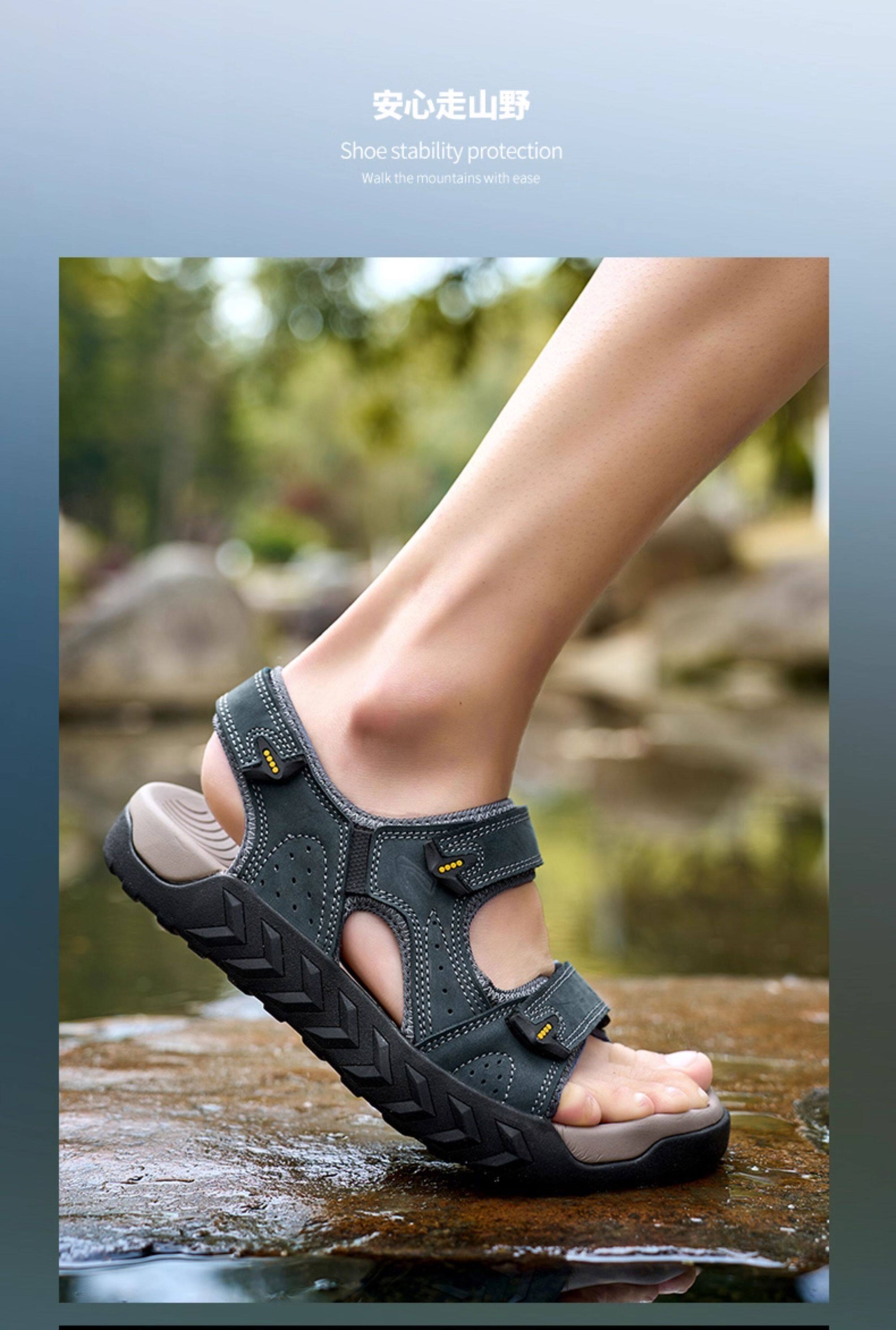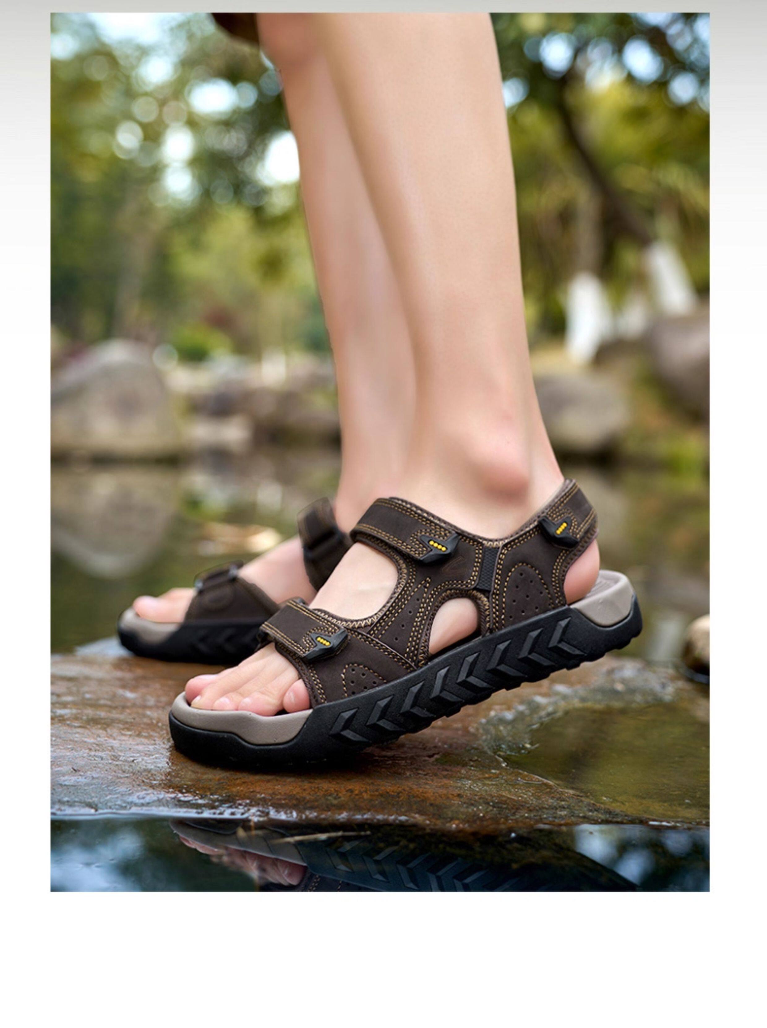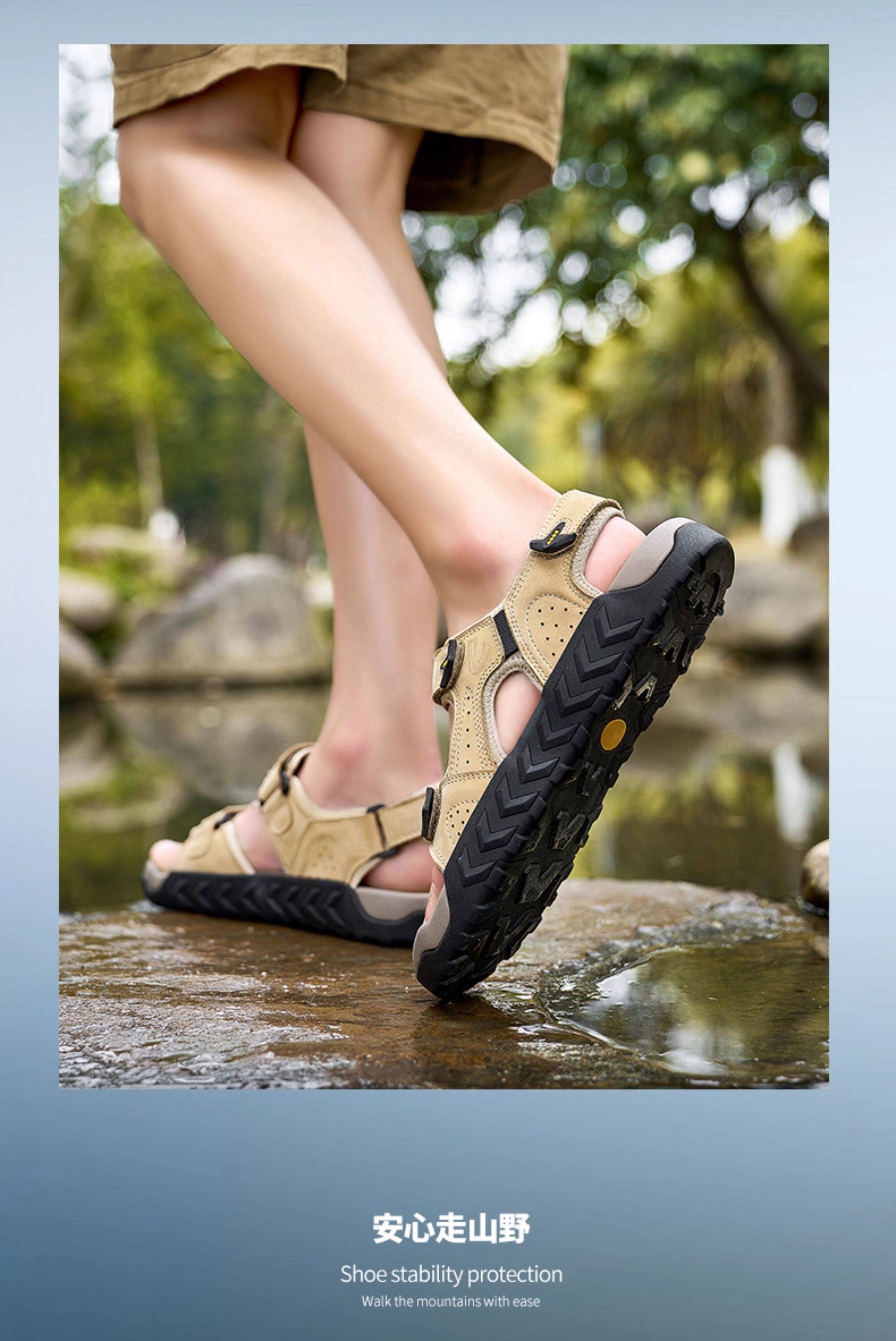 German Camel Dynamic Sandals for Men, Summer Outdoor Non-Slip Dad Sandals, Men's Thick-Soled Genuine Leather Water-Resistant Beach Shoes