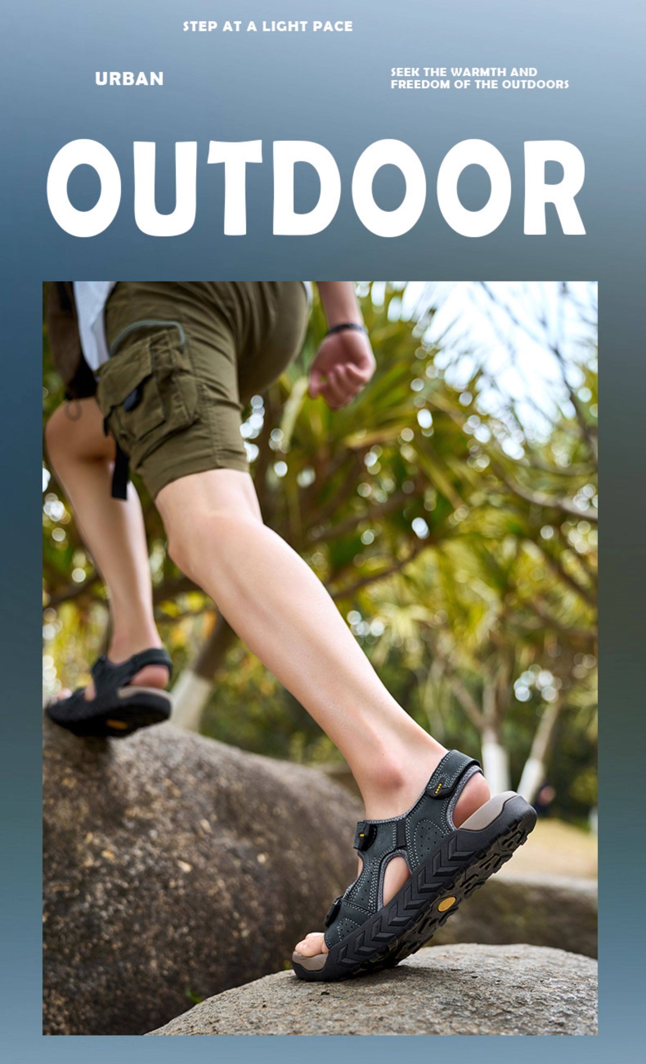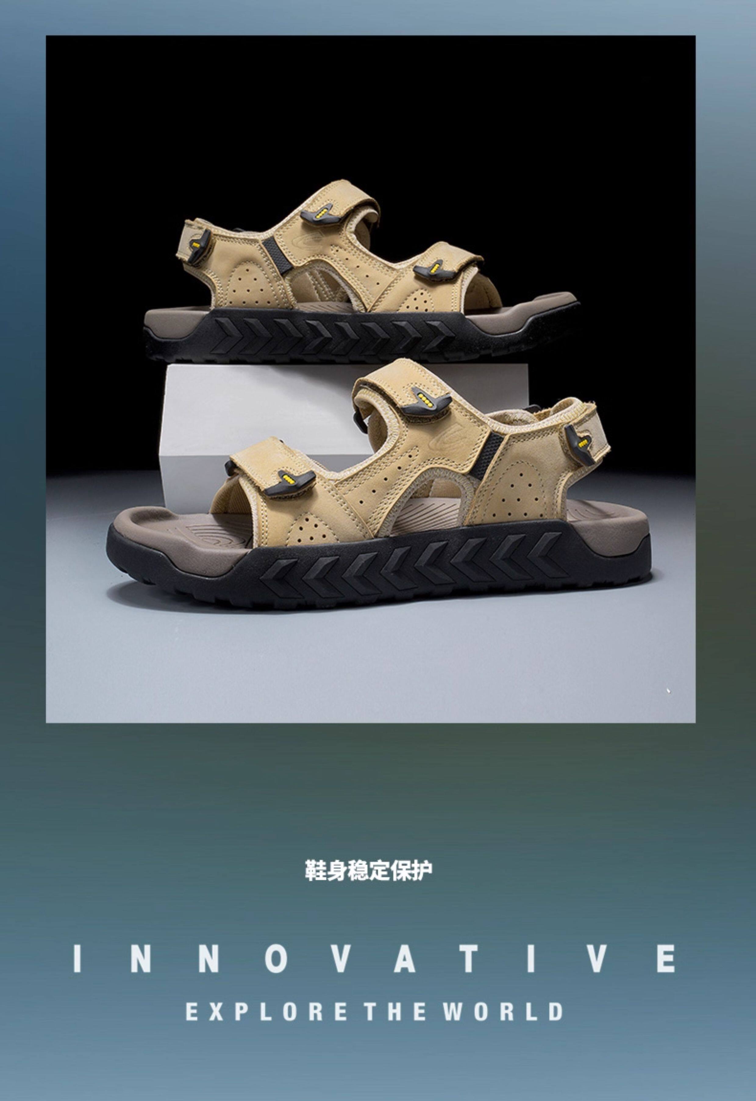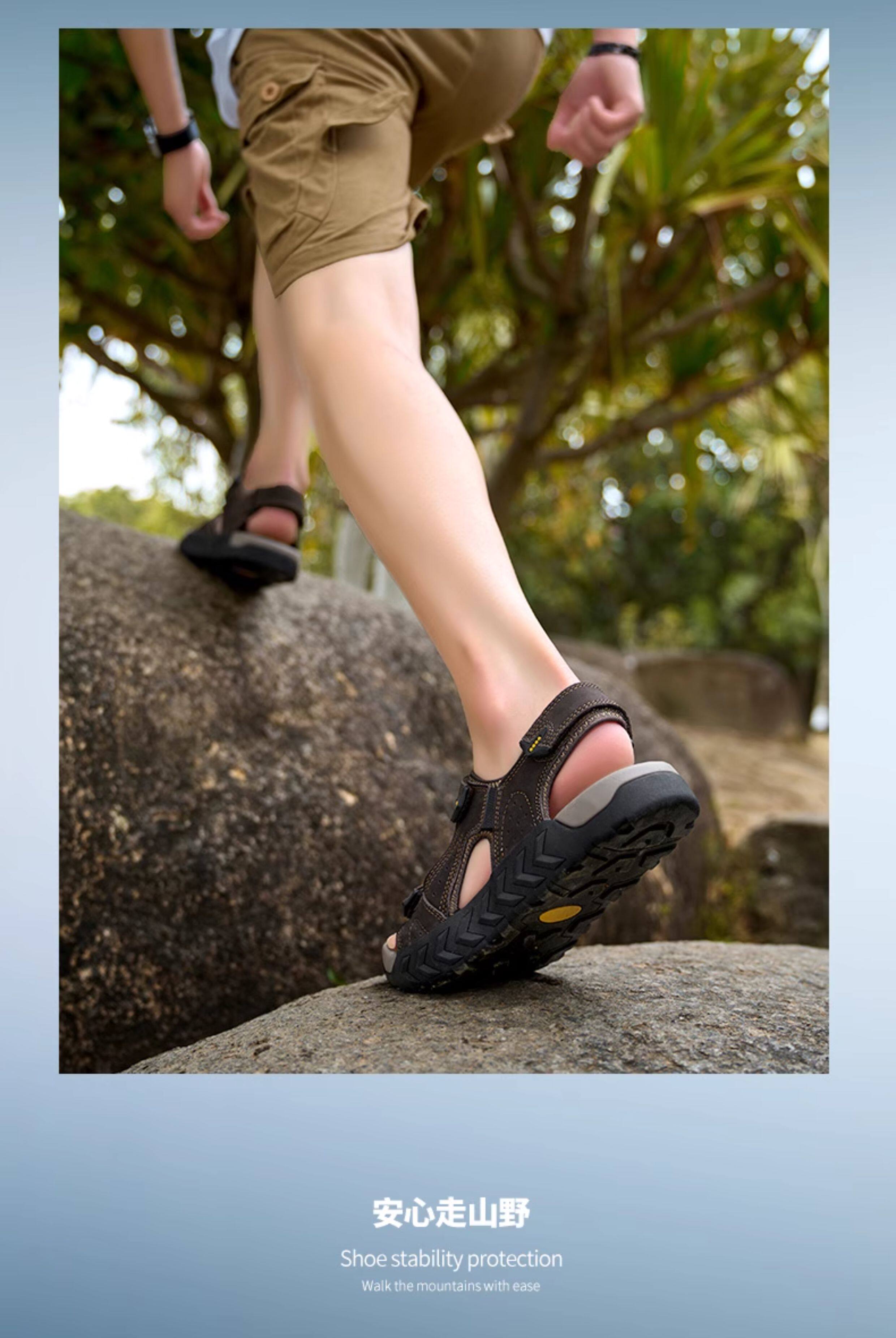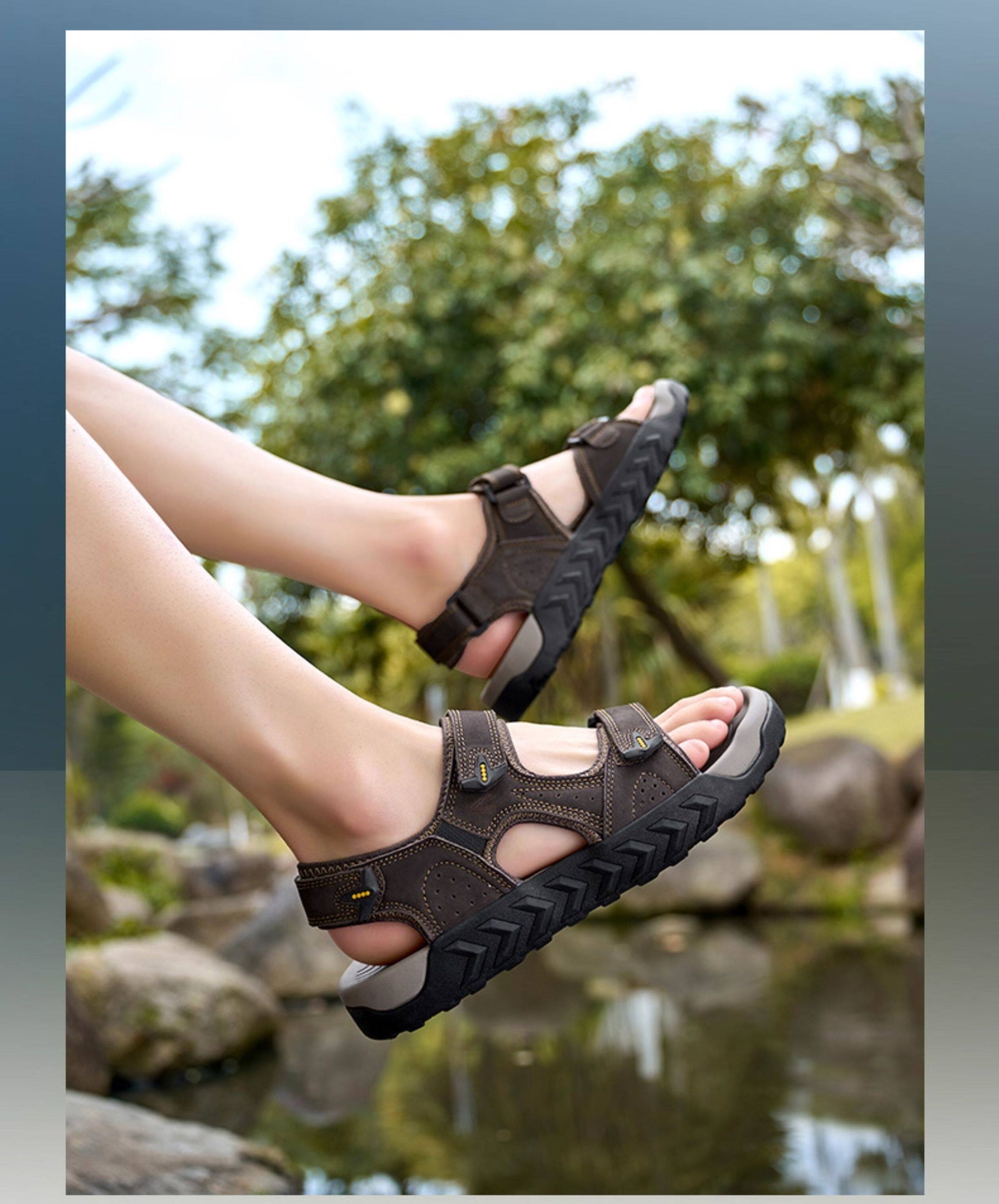 German Camel Dynamic Sandals for Men, Summer Outdoor Non-Slip Dad Sandals, Men's Thick-Soled Genuine Leather Water-Resistant Beach Shoes
