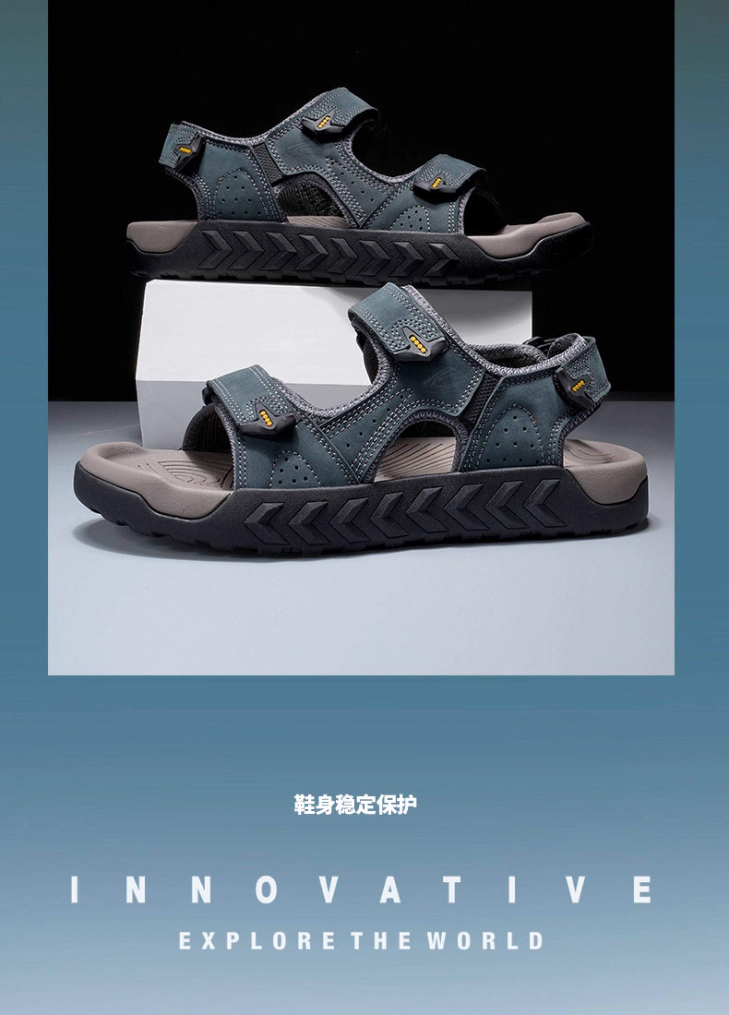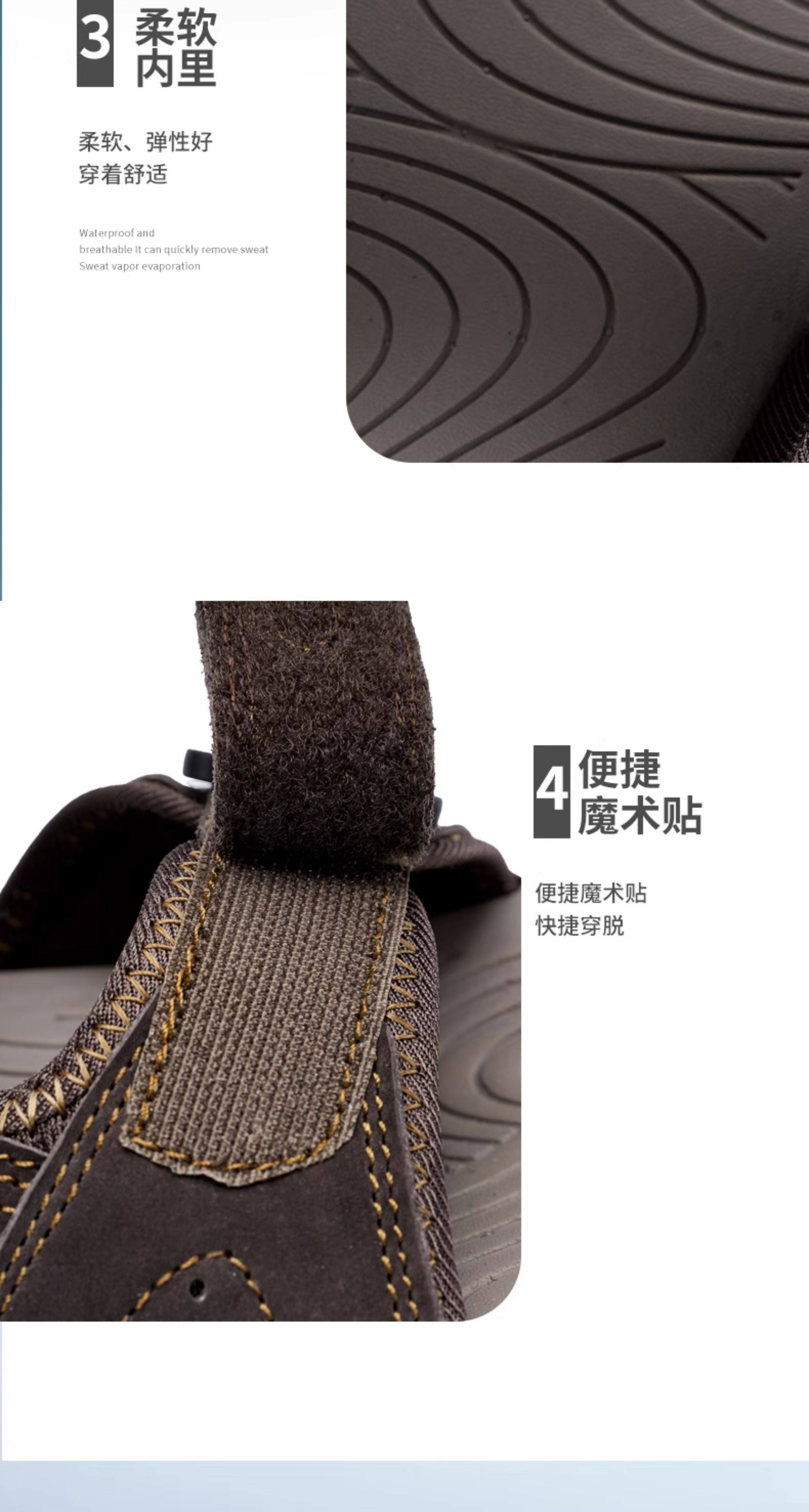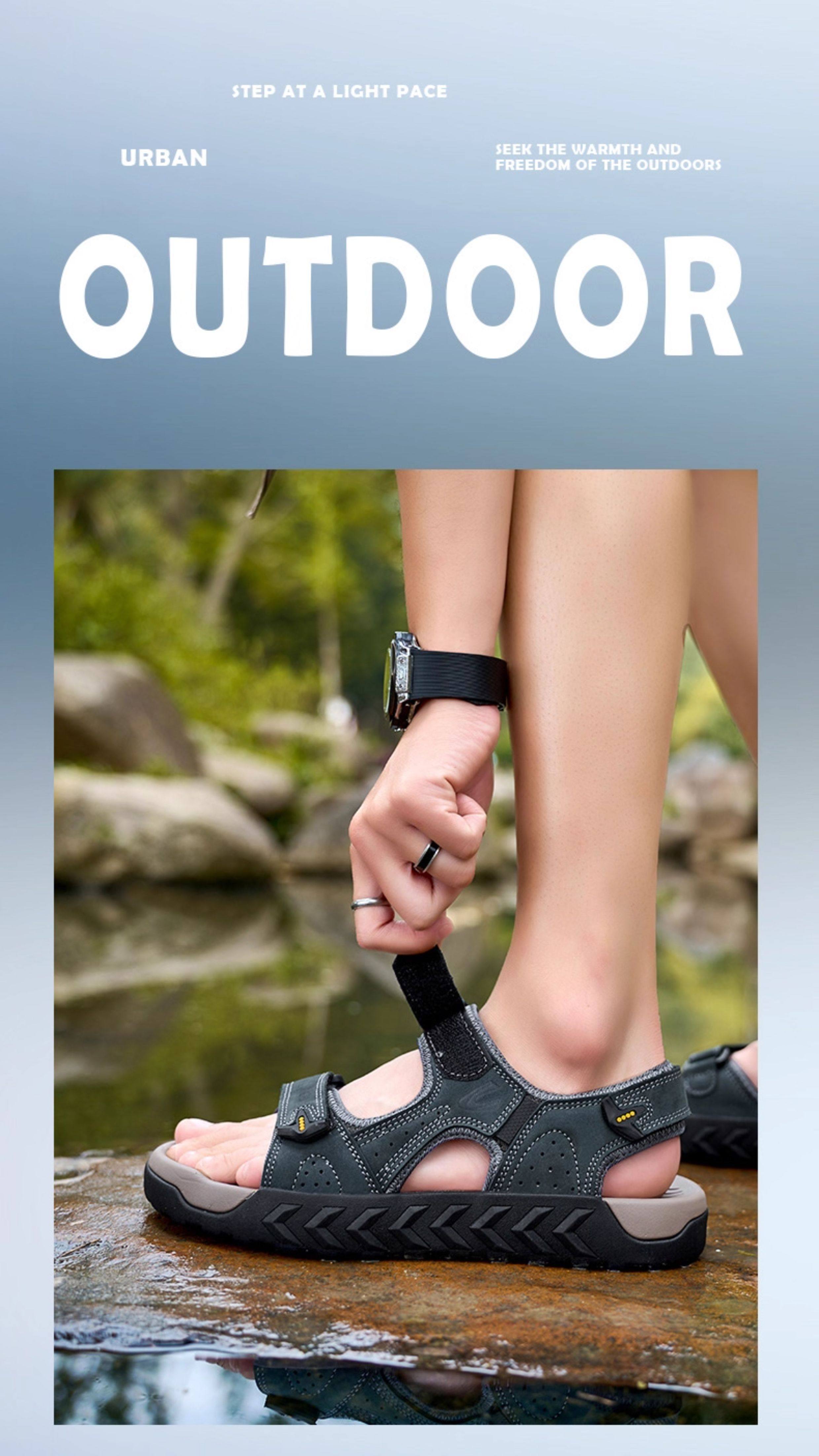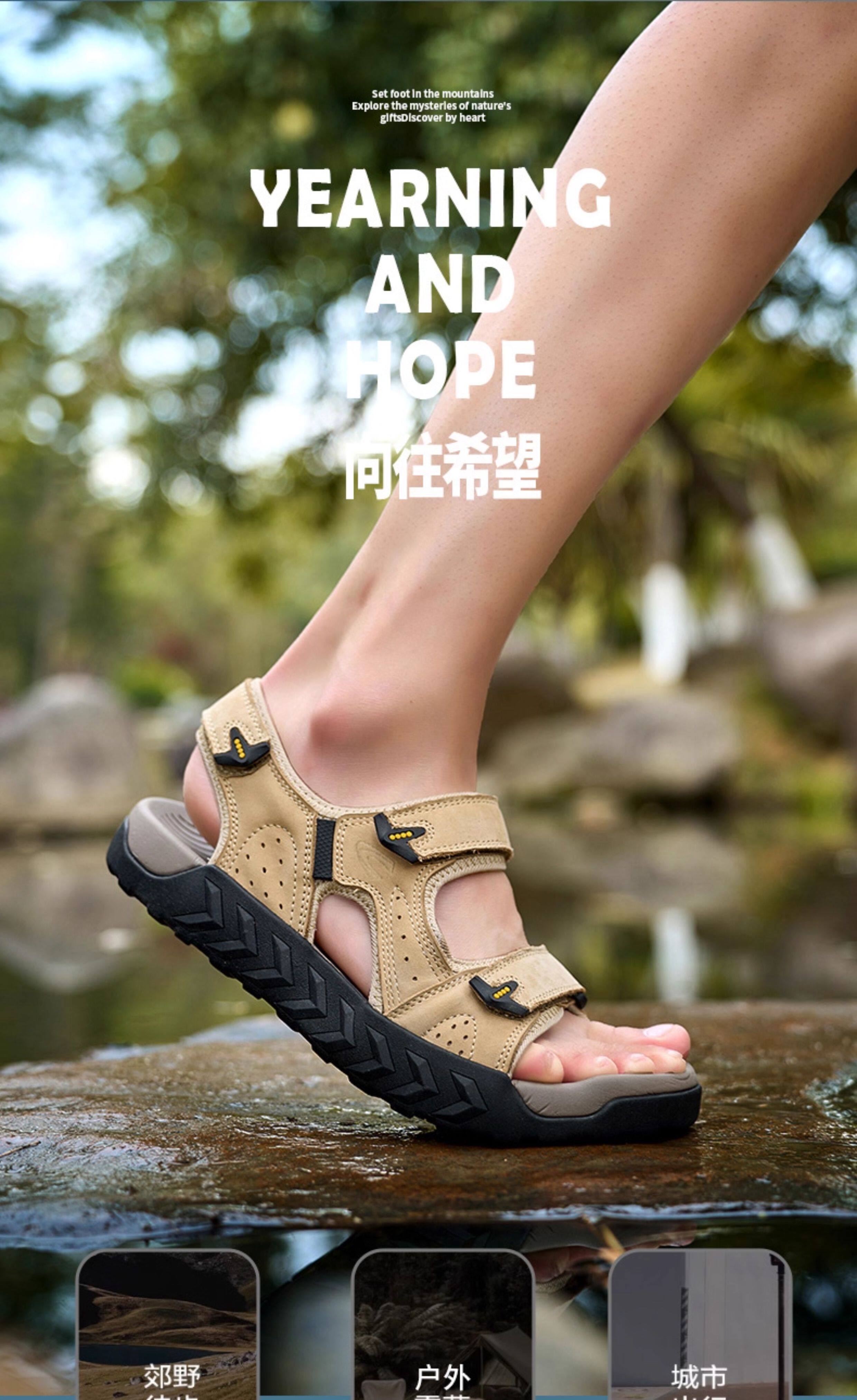 German Camel Dynamic Sandals for Men, Summer Outdoor Non-Slip Dad Sandals, Men's Thick-Soled Genuine Leather Water-Resistant Beach Shoes