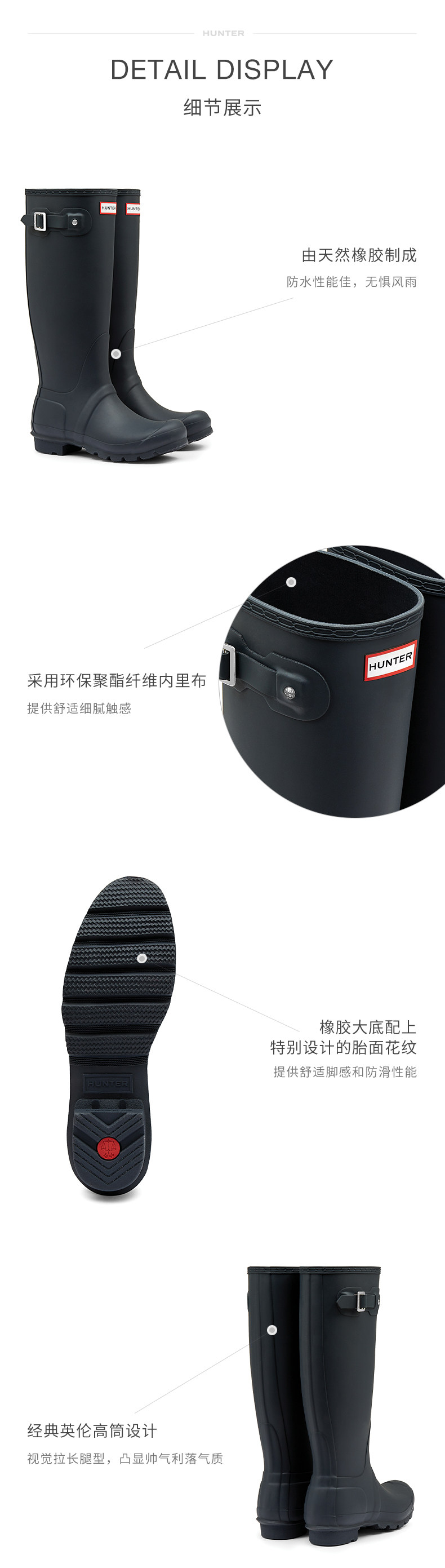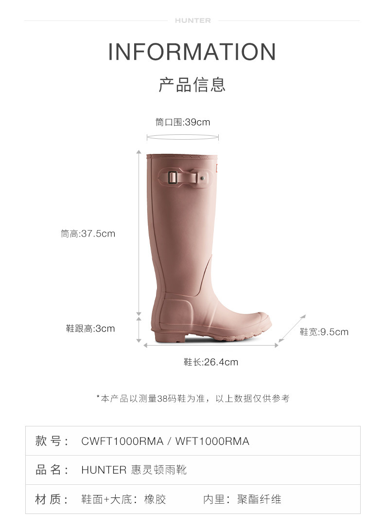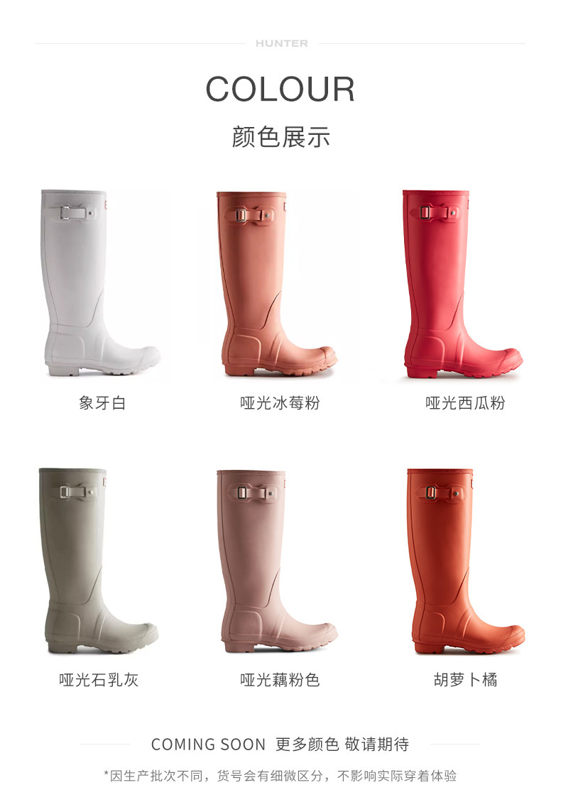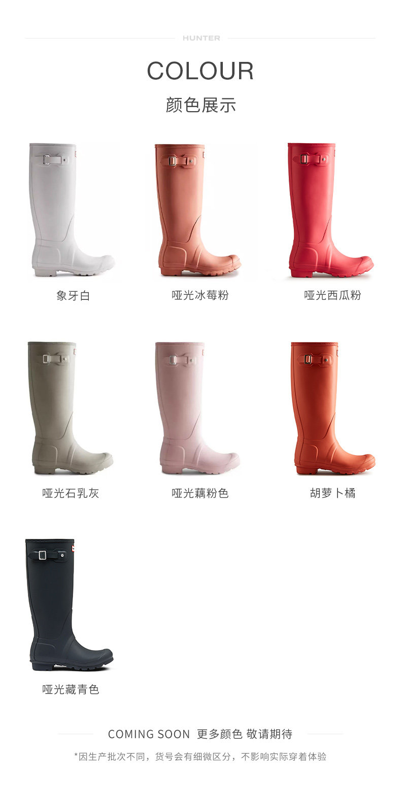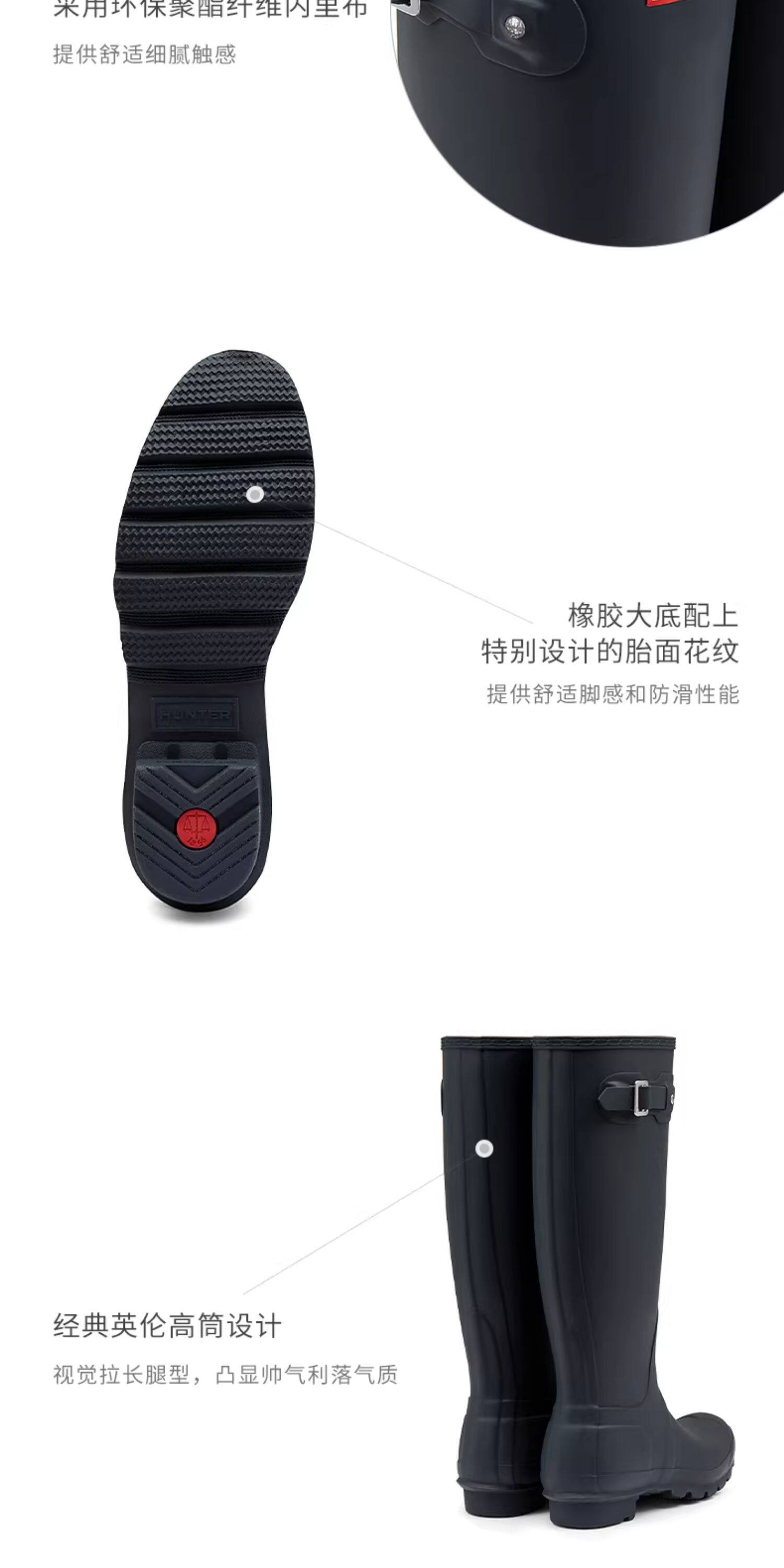 Hunter Women's Shoes Classic Wellington British Rain Boots Outdoor Camping Rain Shoes Wading Shoes Waterproof Long Boots Rubber Shoes