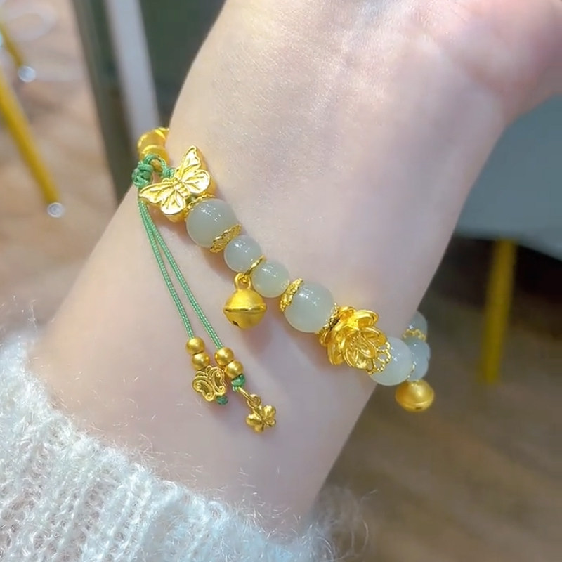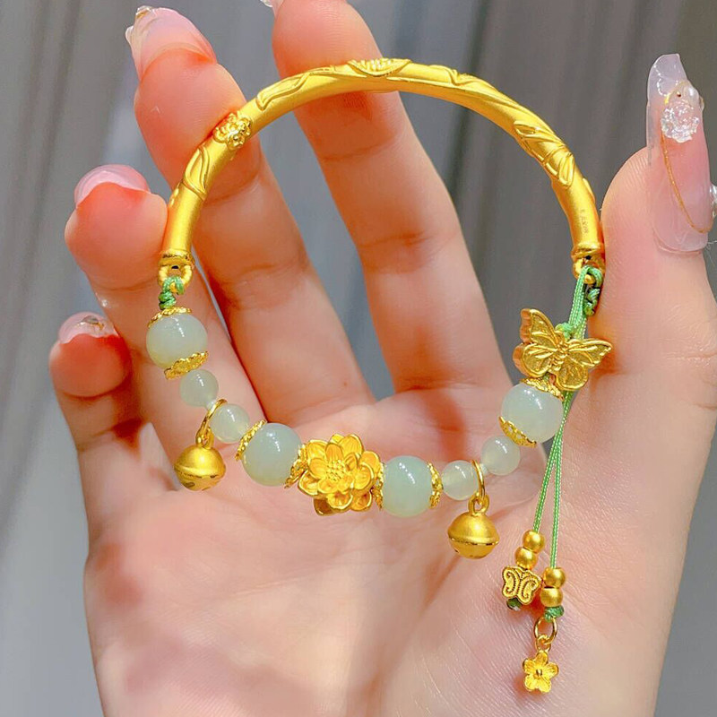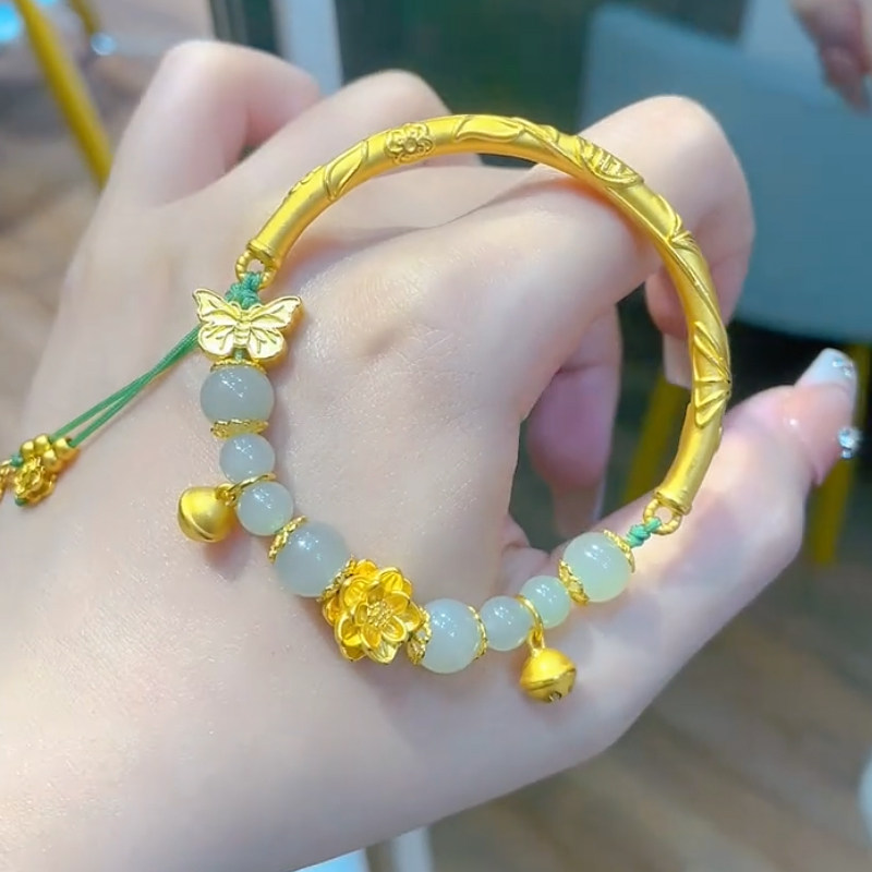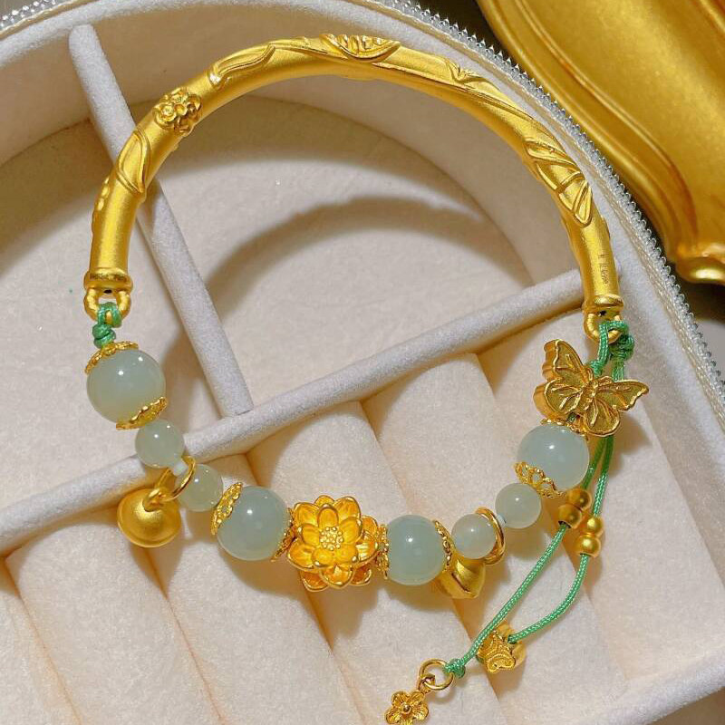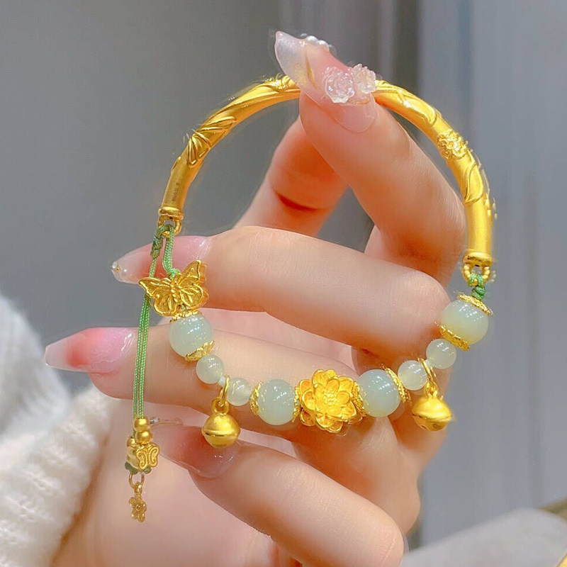 Reno Gold Lotus Bracelet for Women, New Model, 999 Pure Gold and Hetian Jade Butterfly Half Bracelet, Mother's Day Gift for Mom