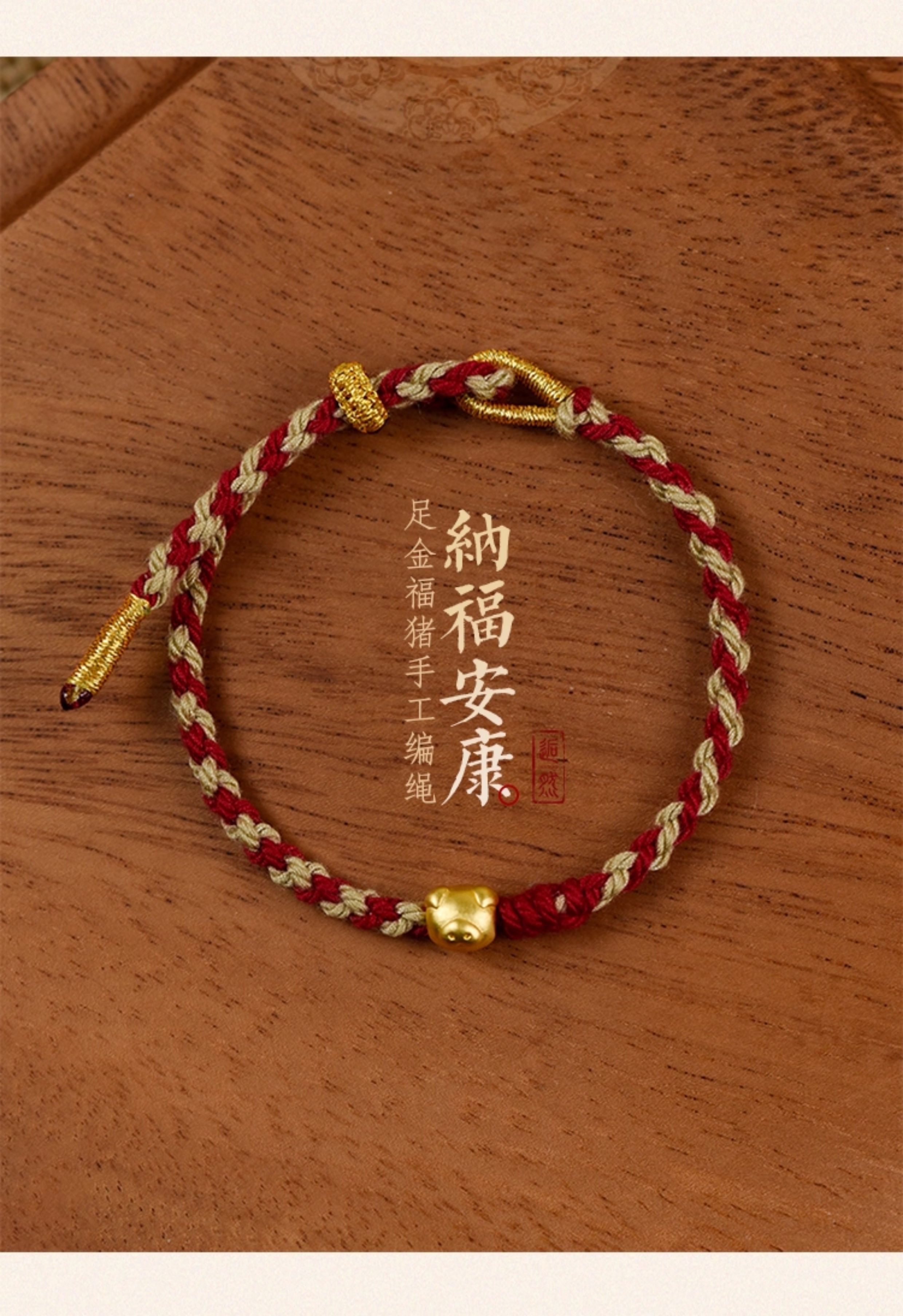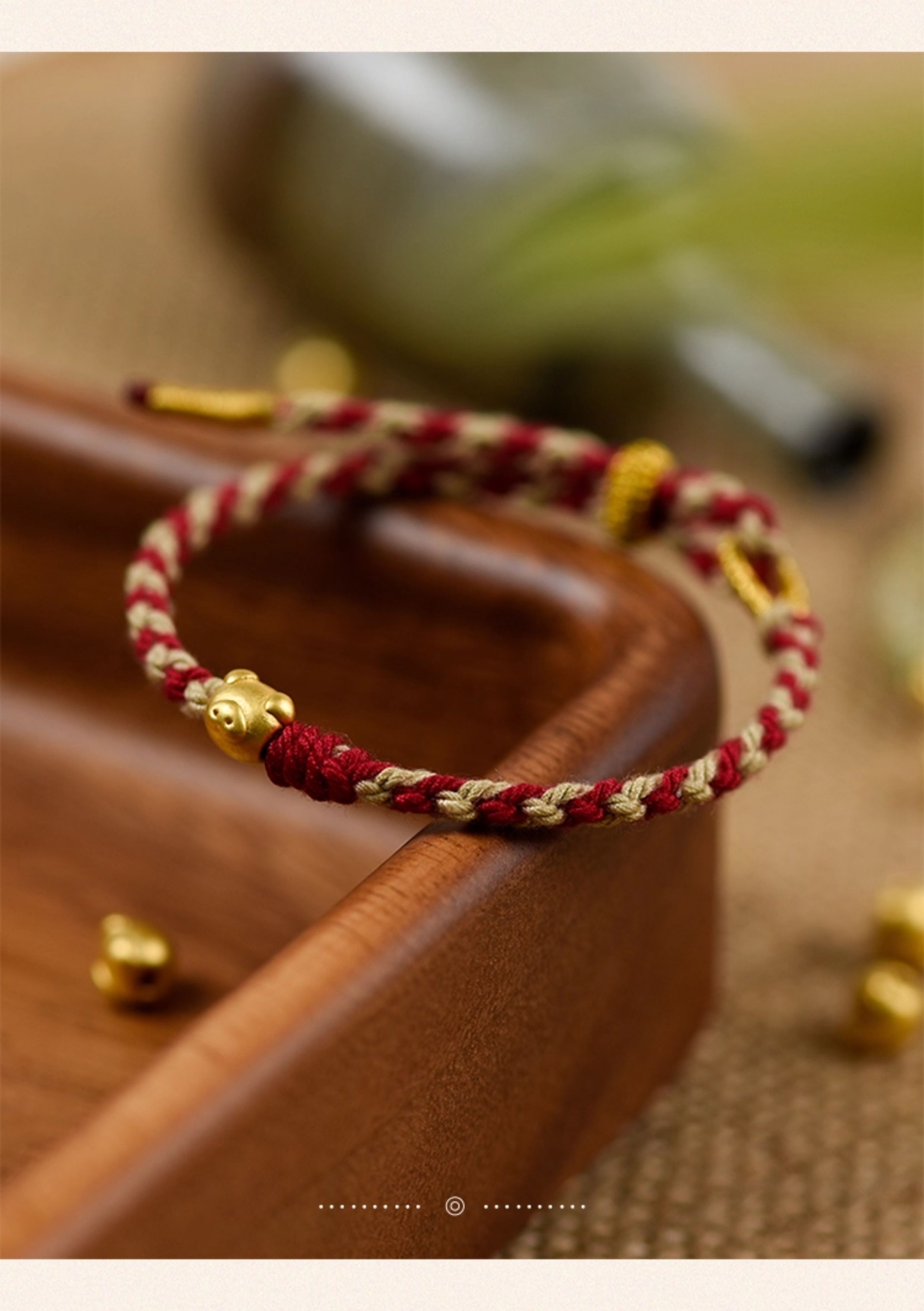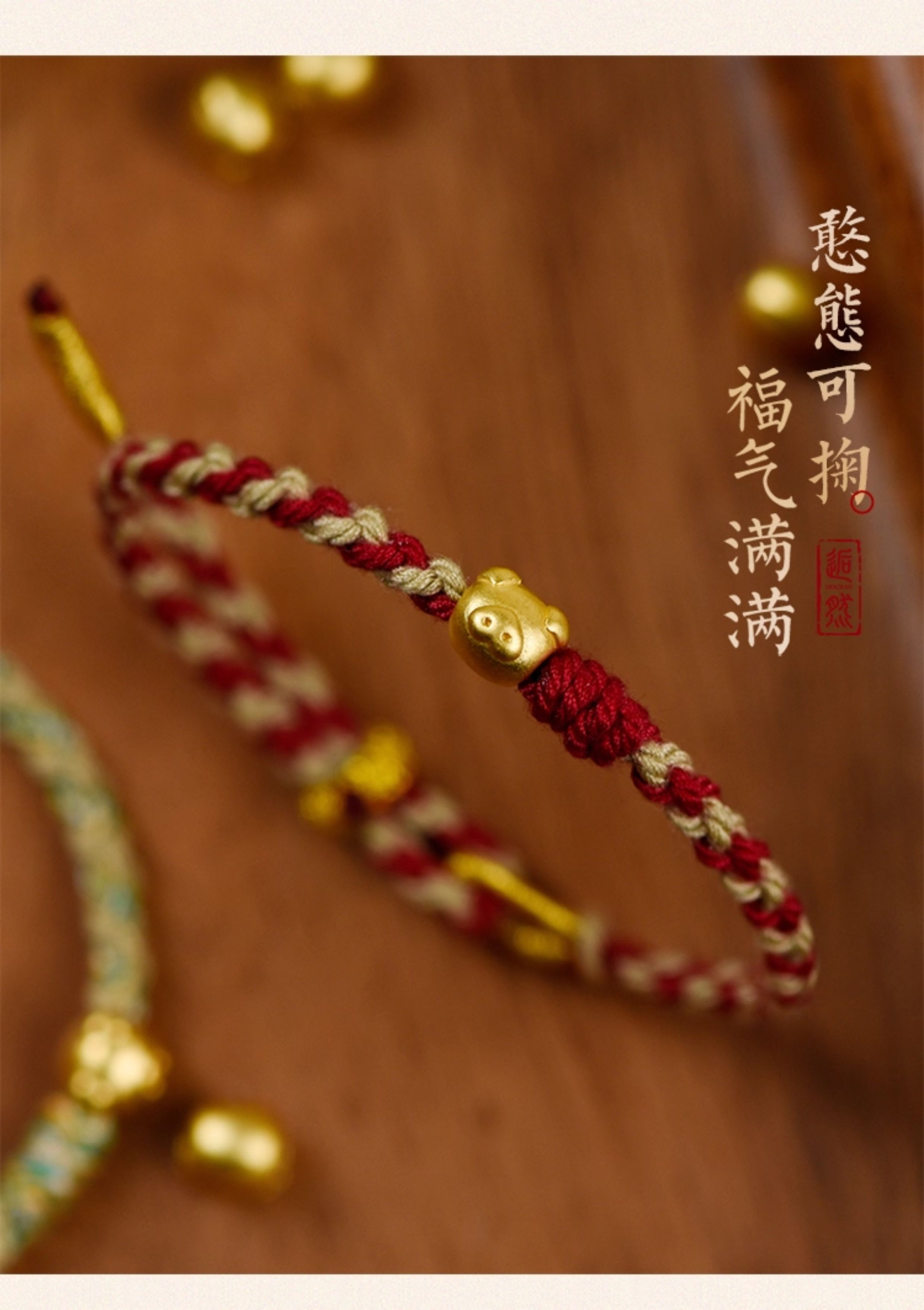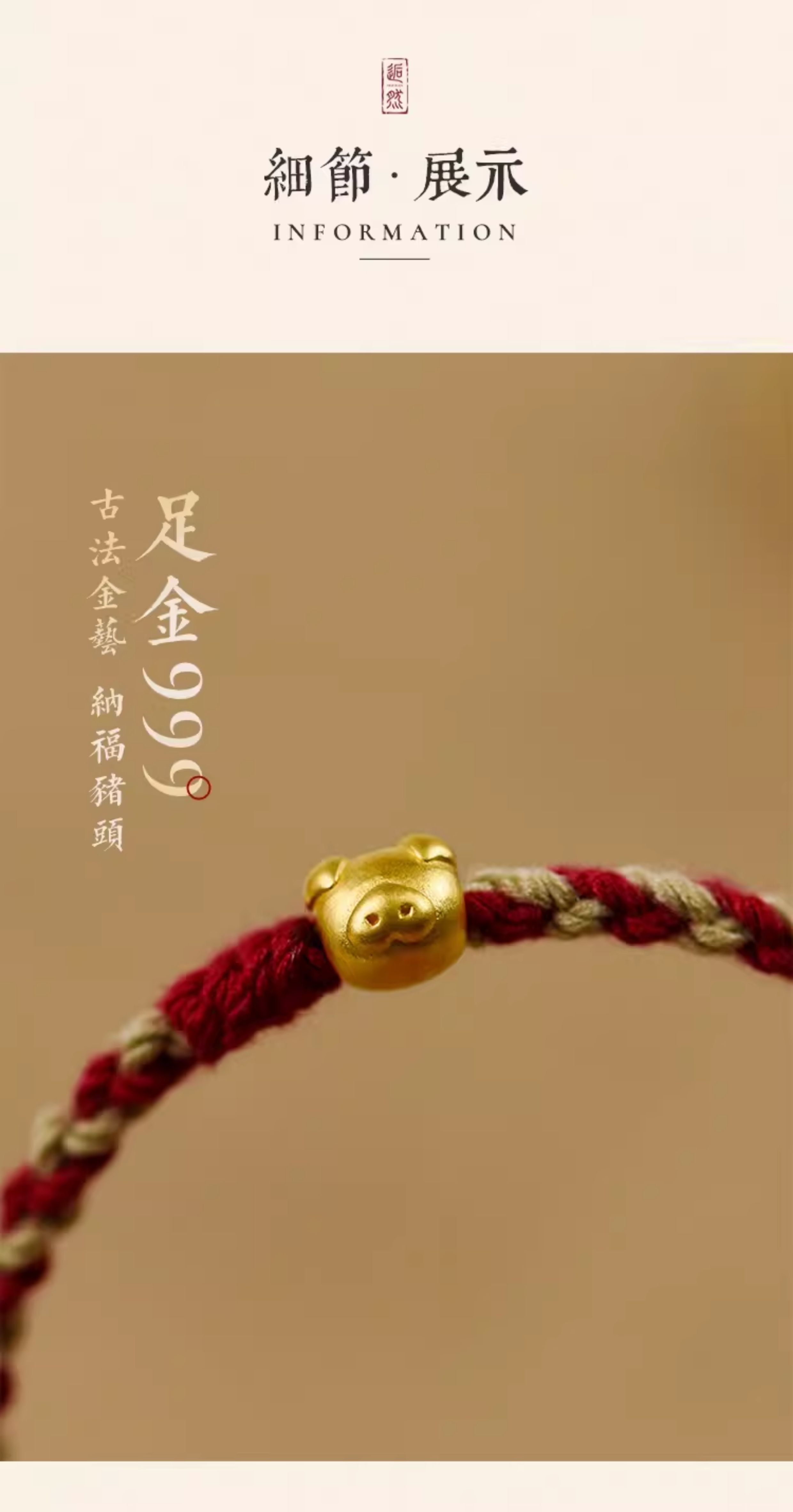 Yiran Original 999 Pure Gold Bring in Wealth and Treasure Golden Pig New Chinese Bracelet Women's Cool Ancient Style Braided Zodiac Bracelet