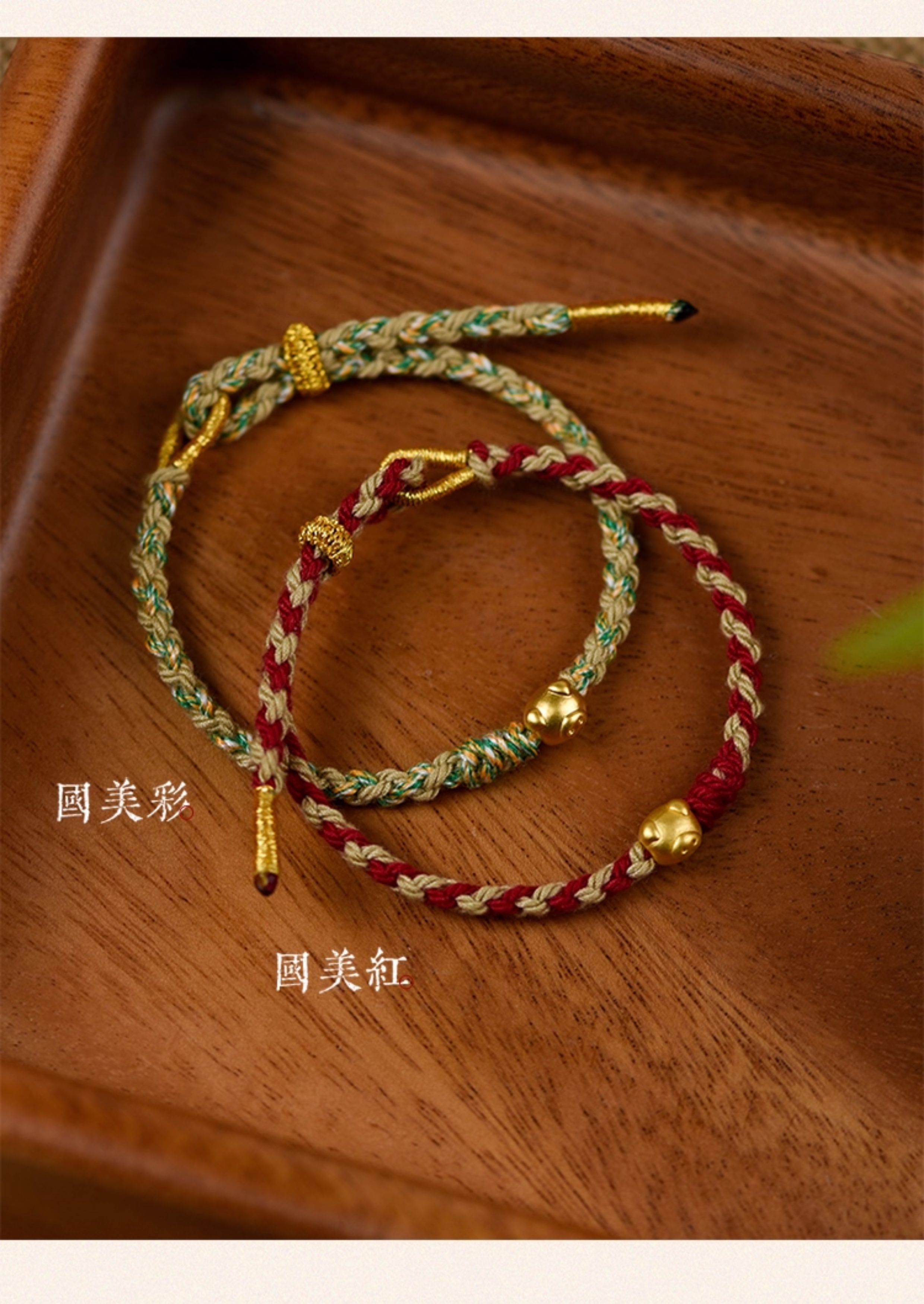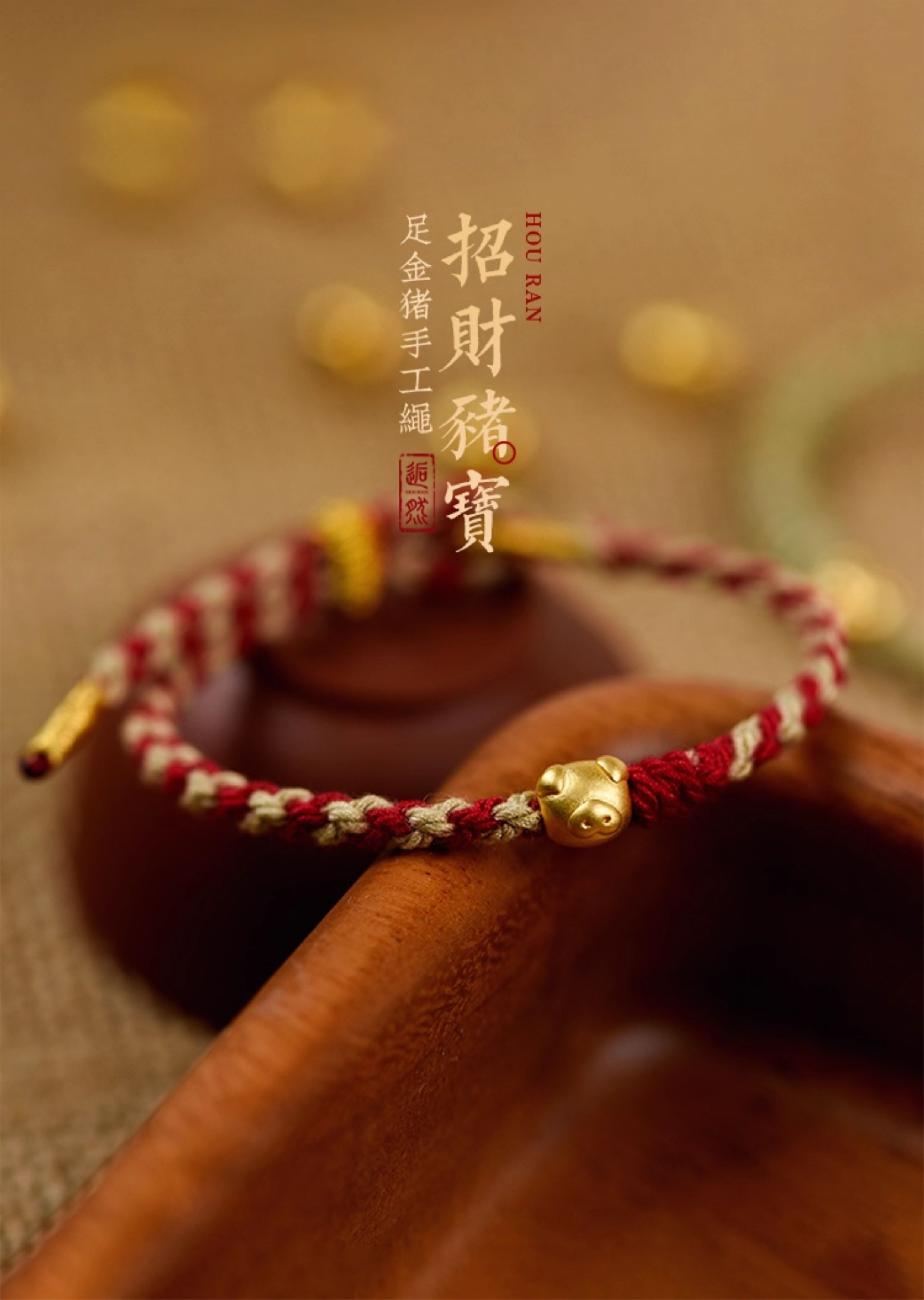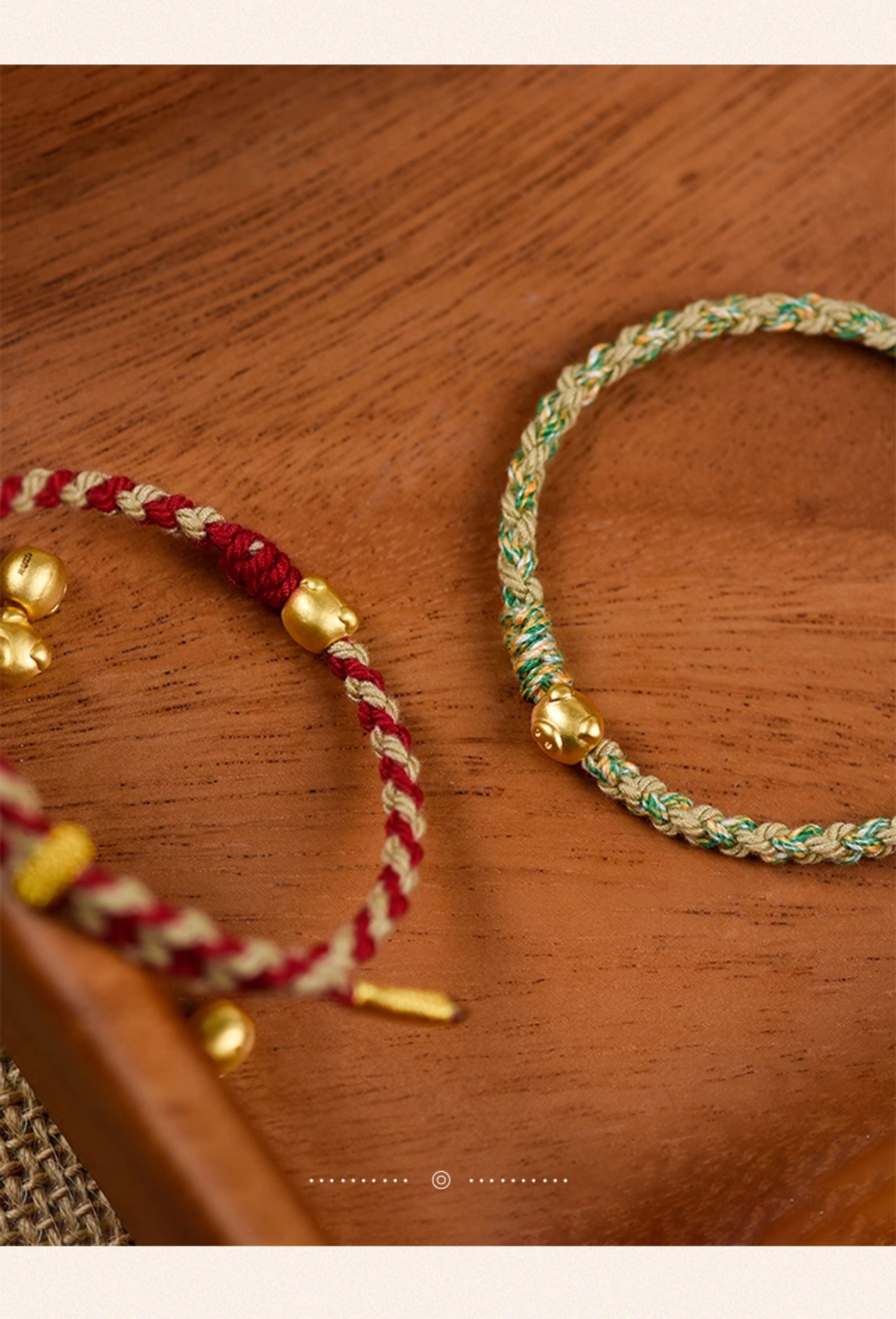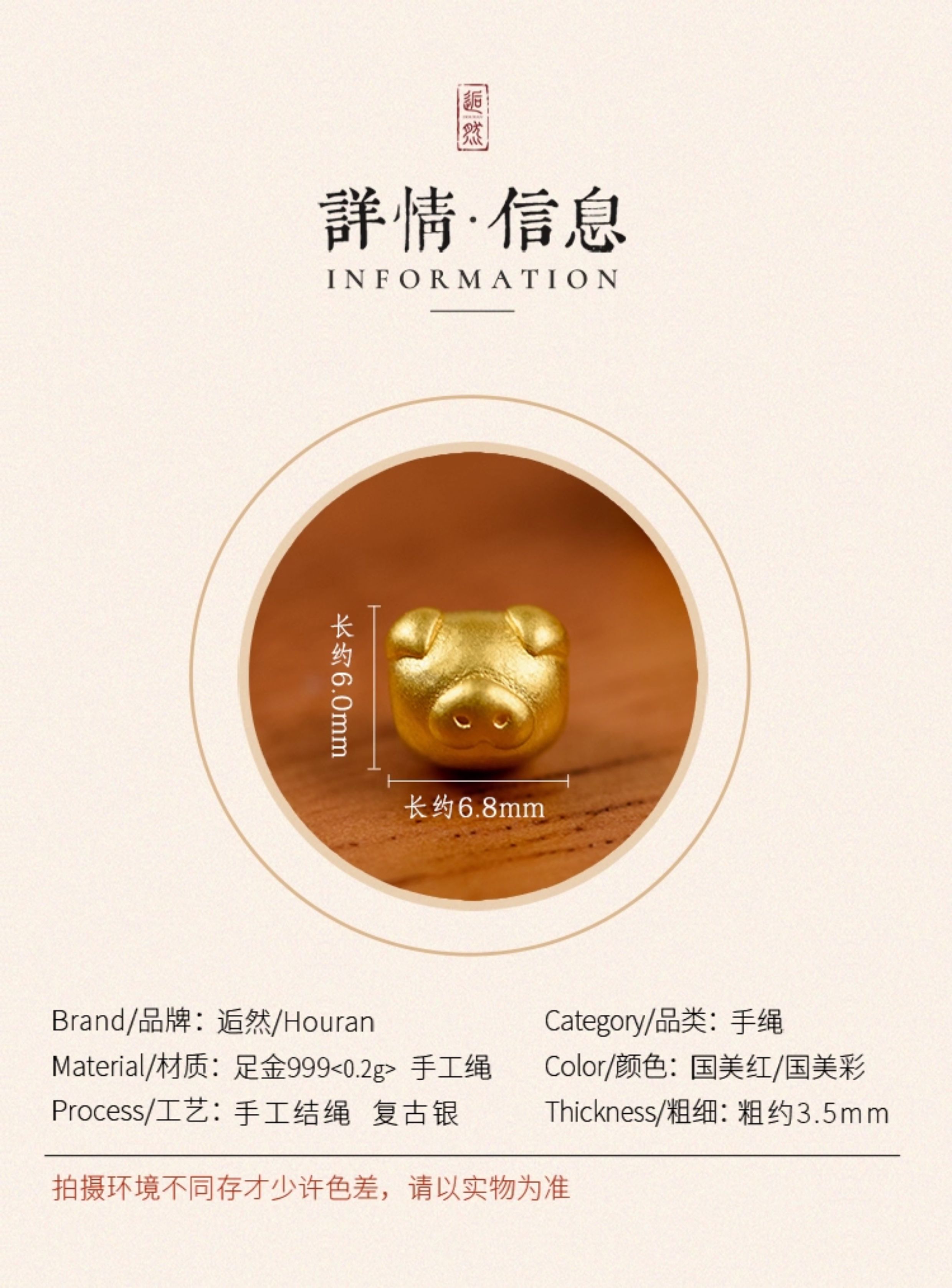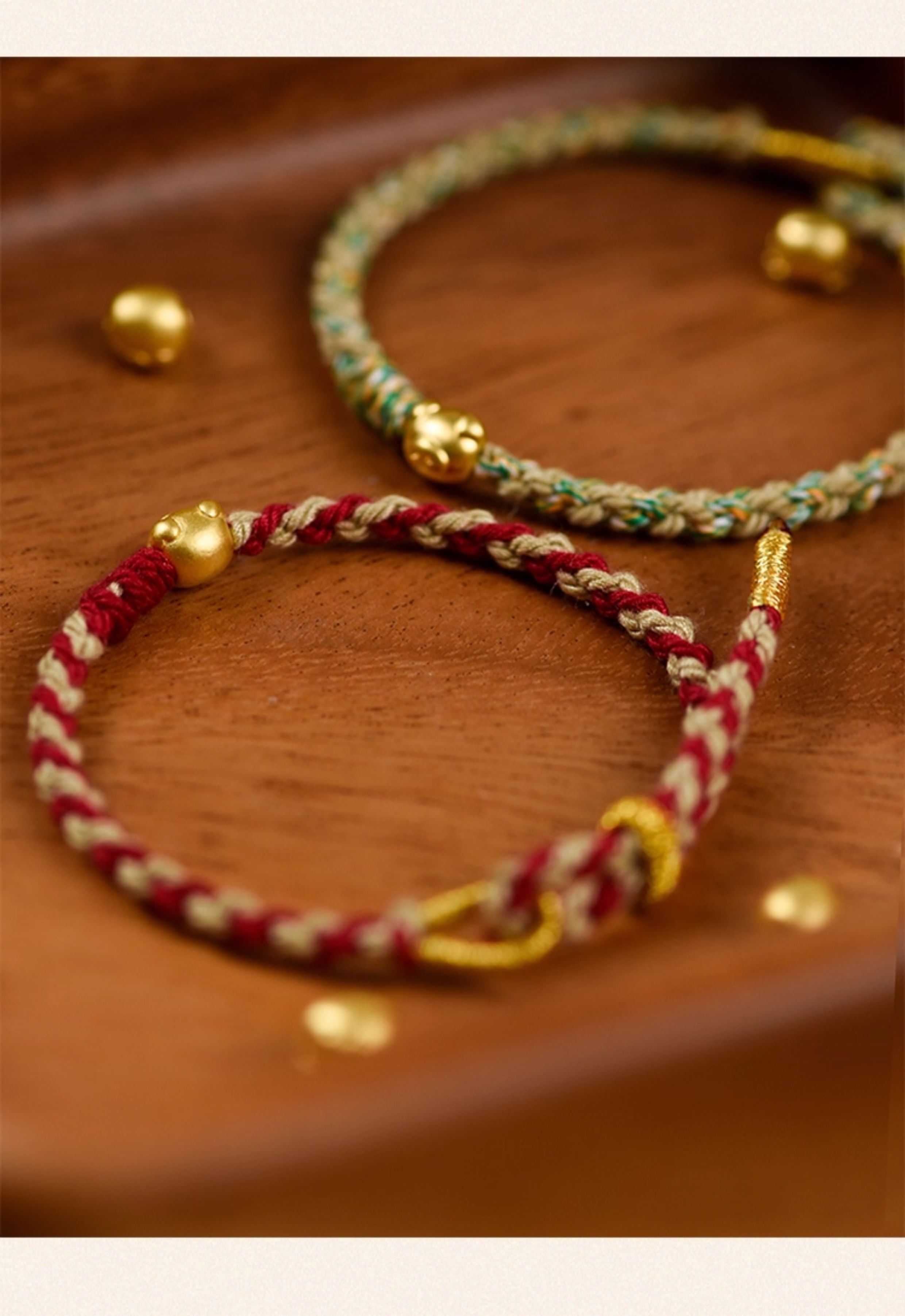Yiran Original 999 Pure Gold Bring in Wealth and Treasure Golden Pig New Chinese Bracelet Women's Cool Ancient Style Braided Zodiac Bracelet