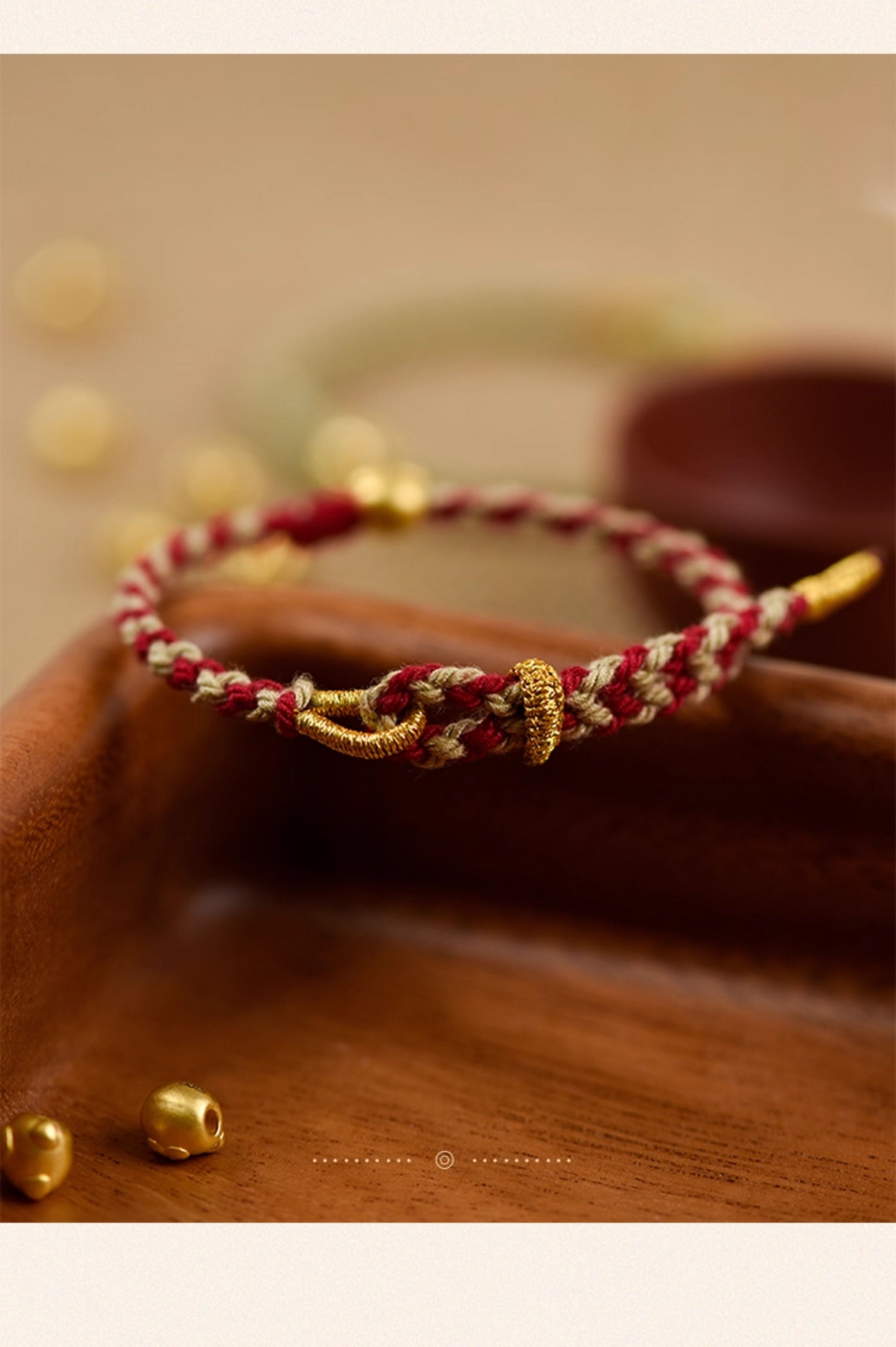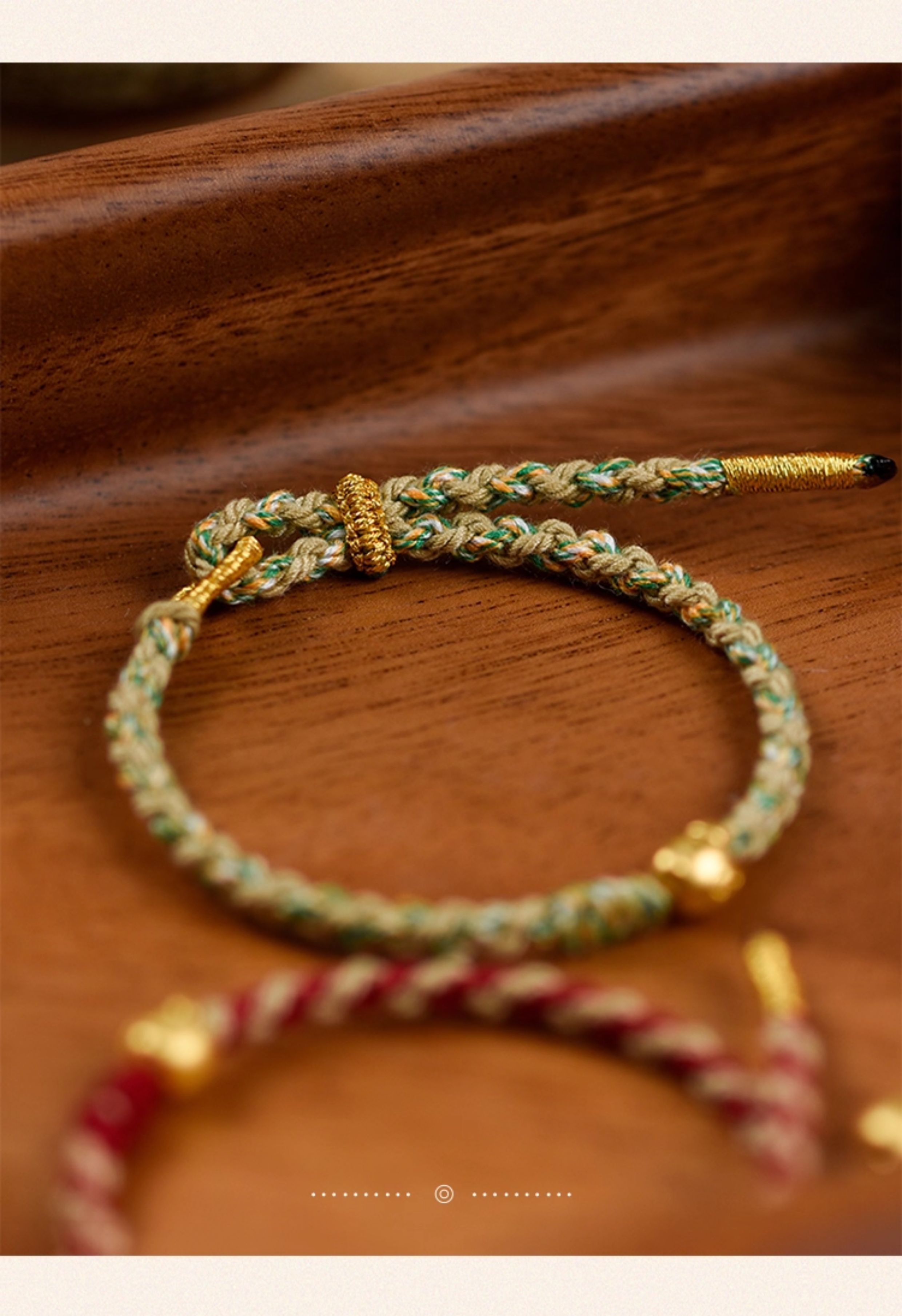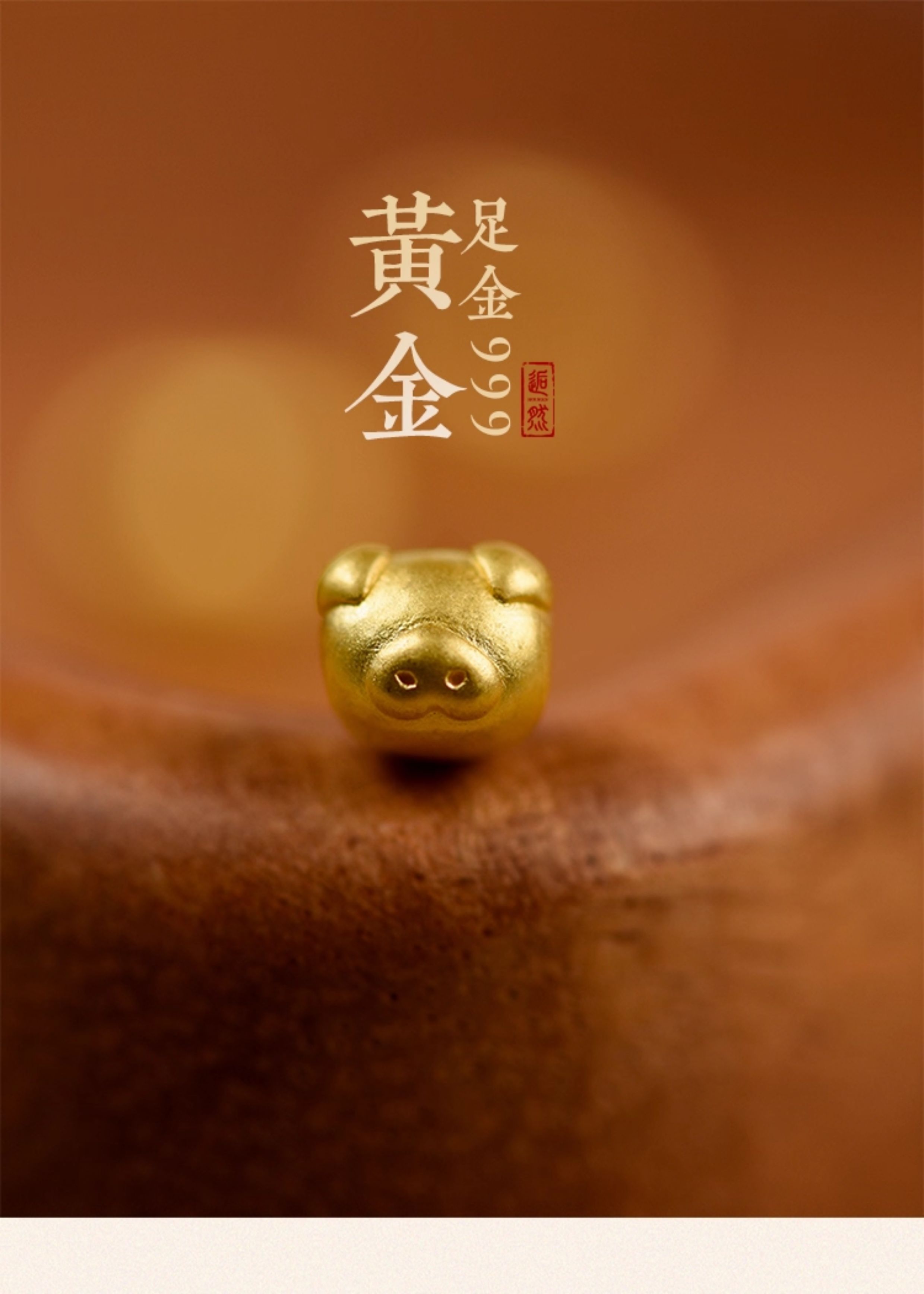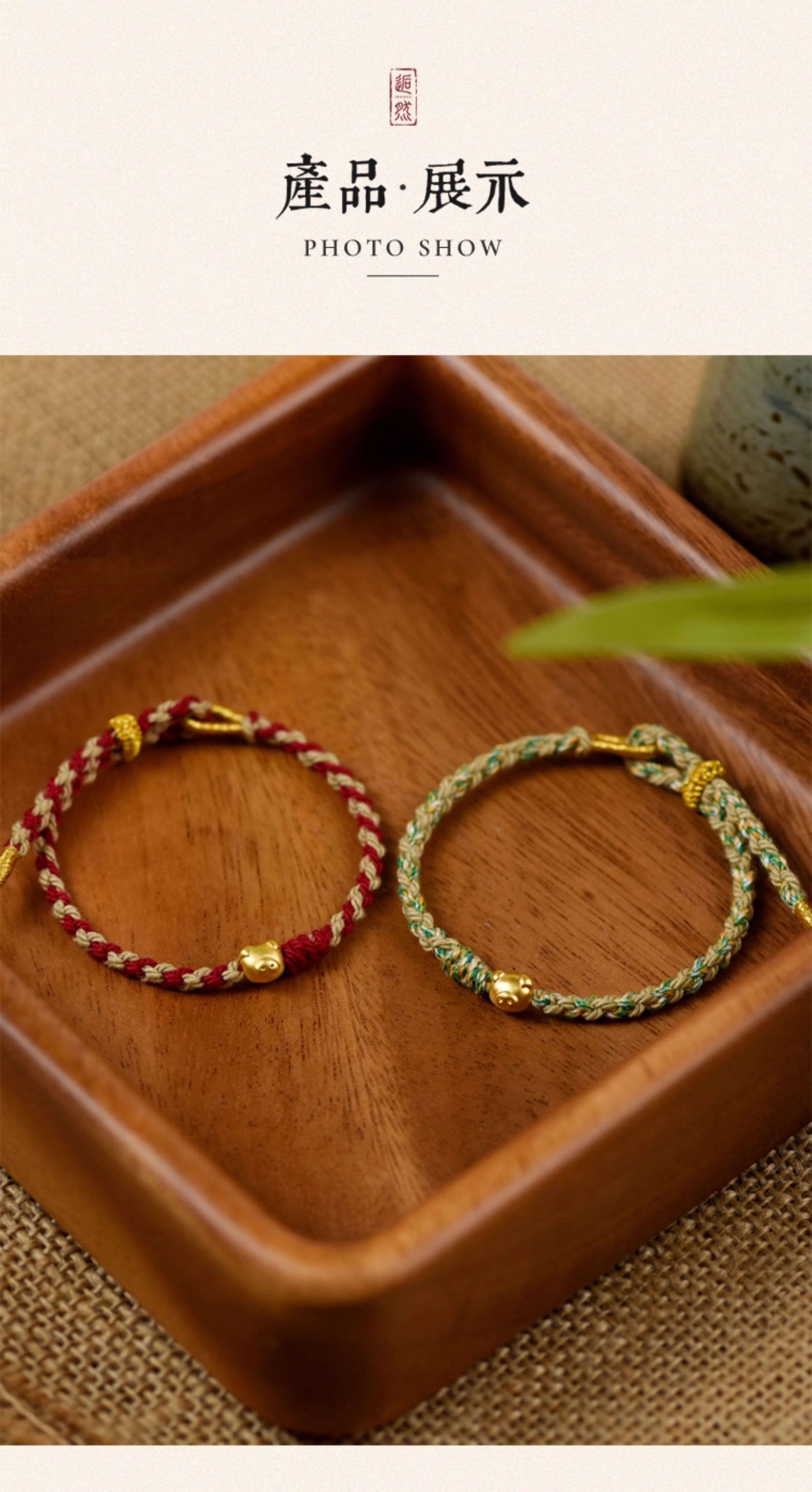Yiran Original 999 Pure Gold Bring in Wealth and Treasure Golden Pig New Chinese Bracelet Women's Cool Ancient Style Braided Zodiac Bracelet